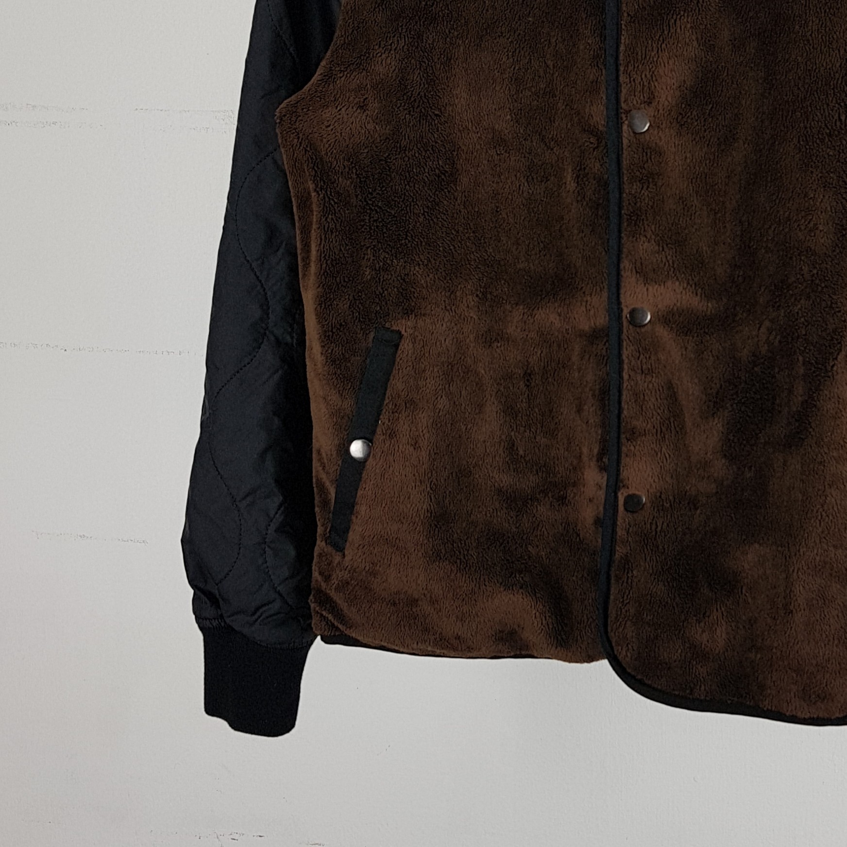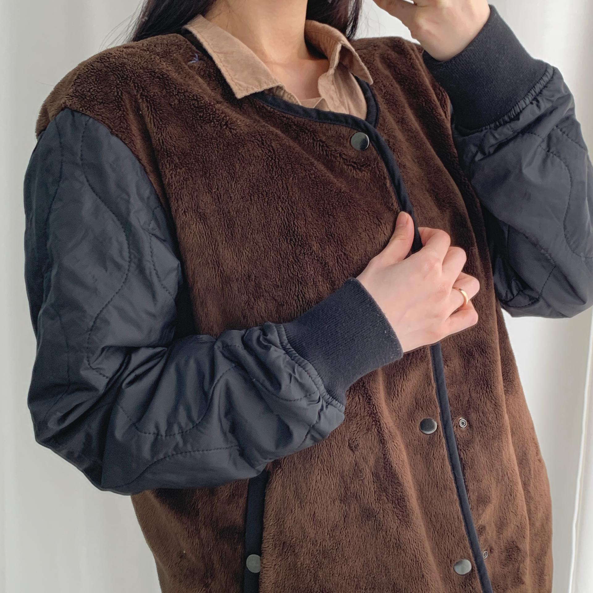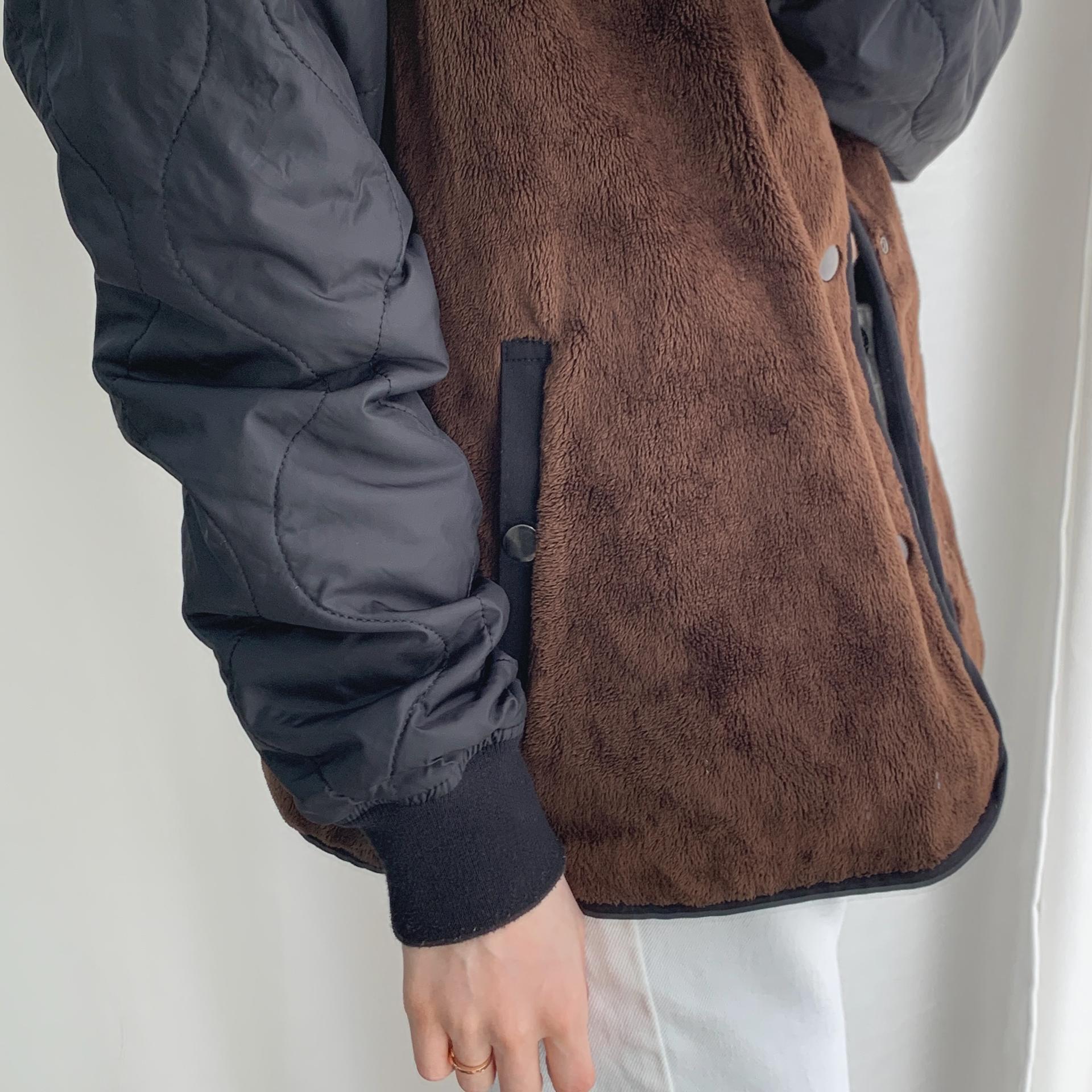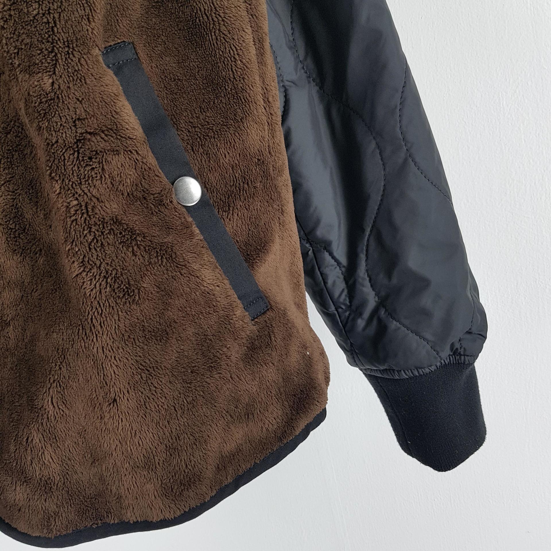 팔 부분은 퀄팅 마감이 되어 있으며, 부드럽고 따듯한 보아털이 겉면으로 드러납니다.