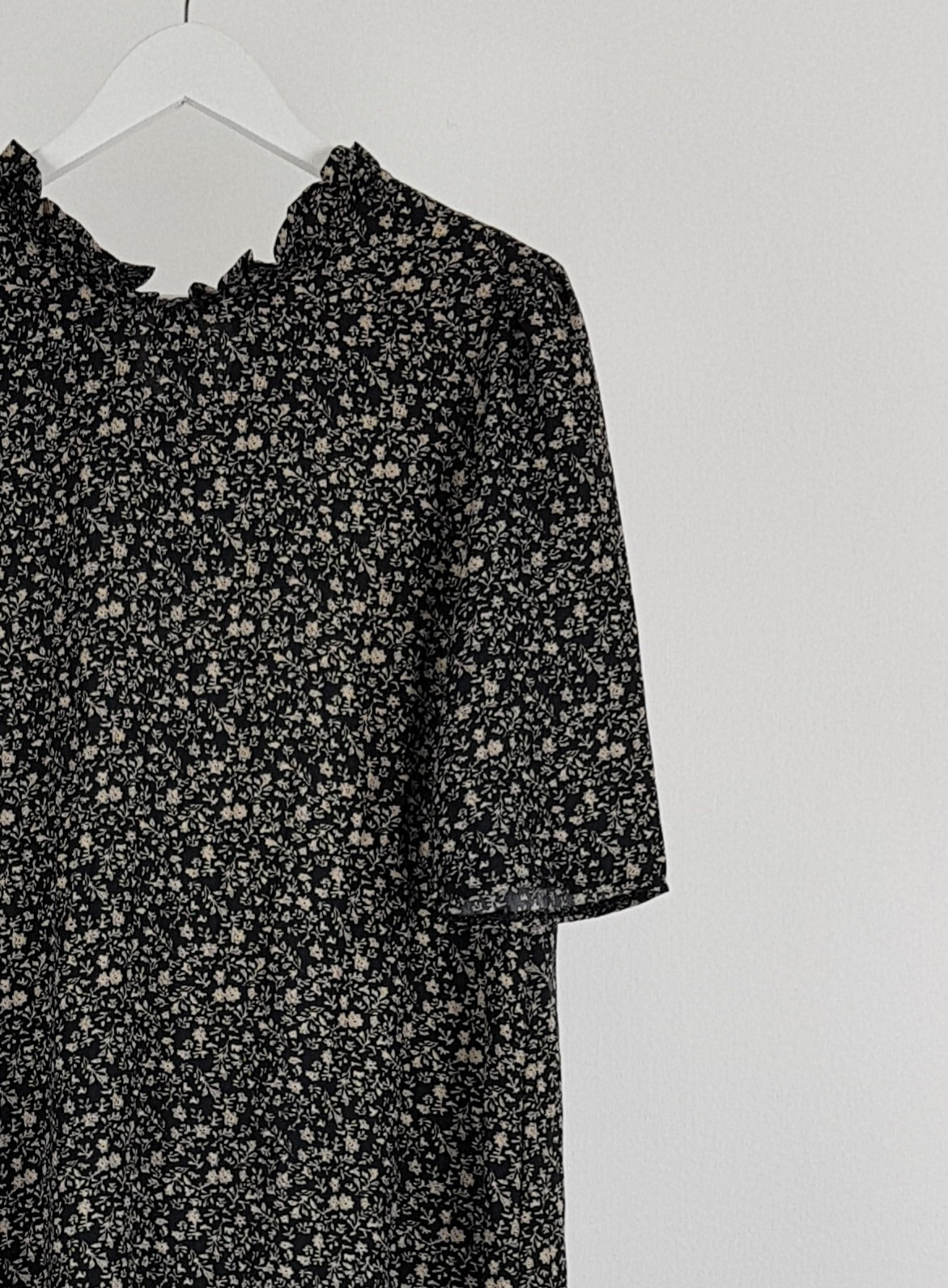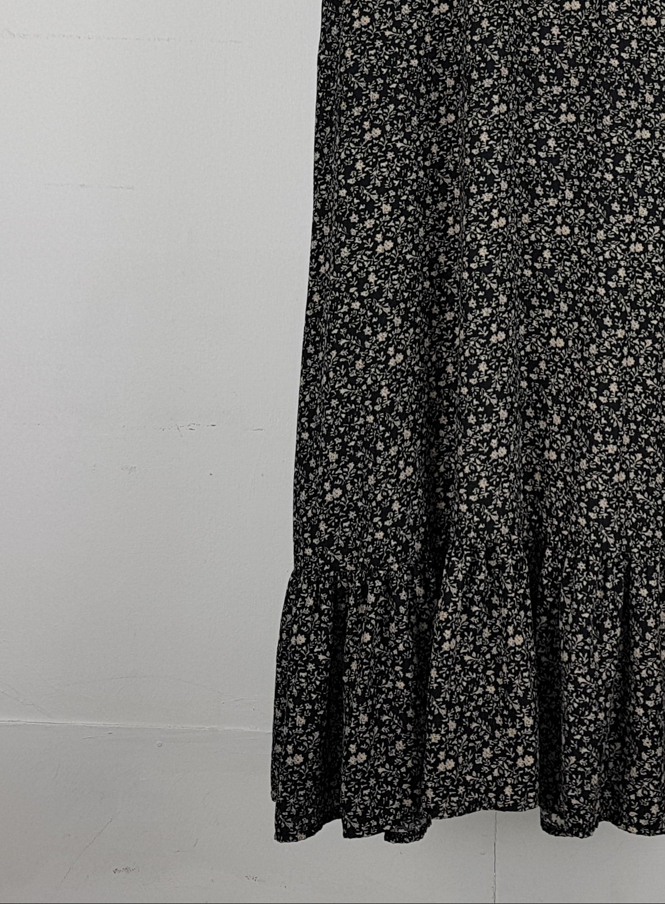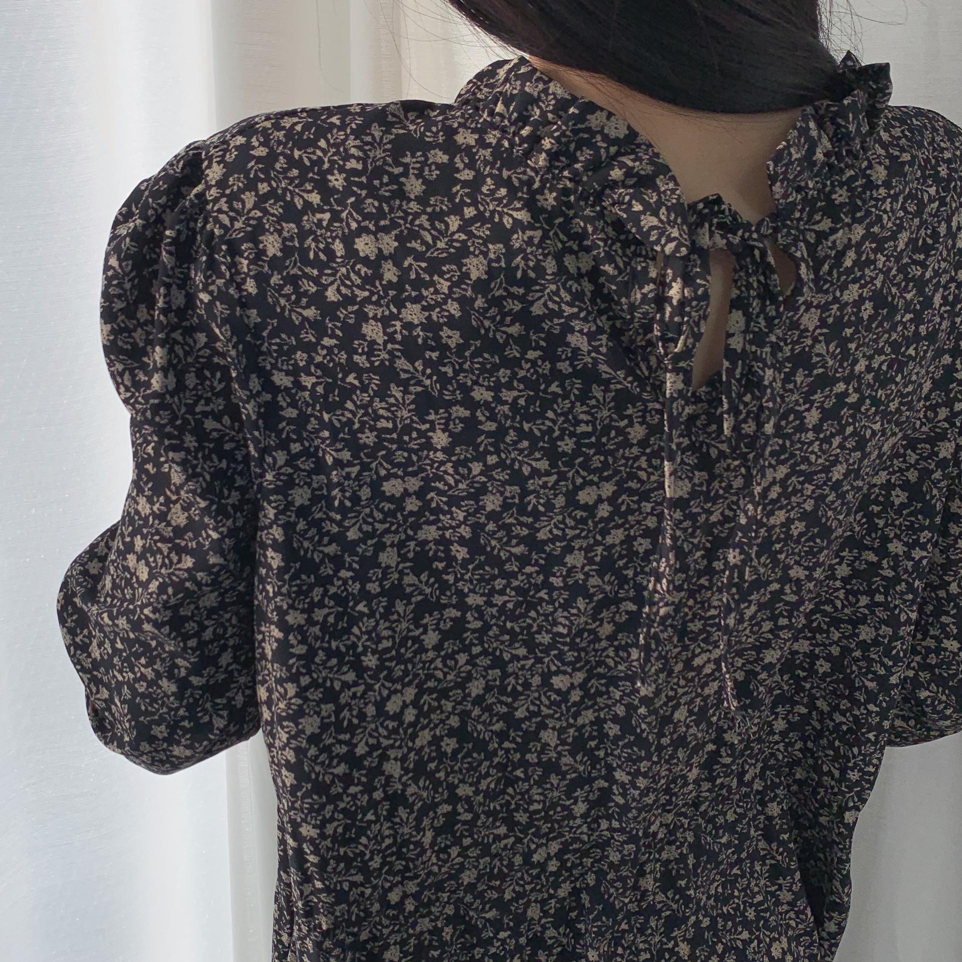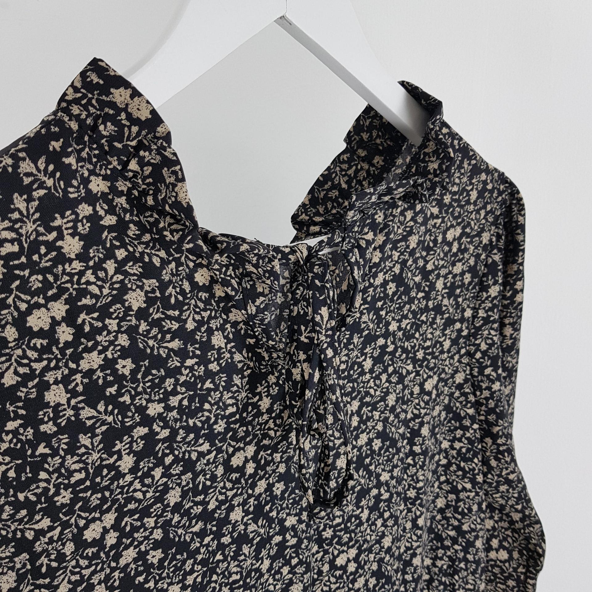블랙 바디 컬러 위 베이지 플라워 패턴이 인상적인 원피스 아이템입니다.