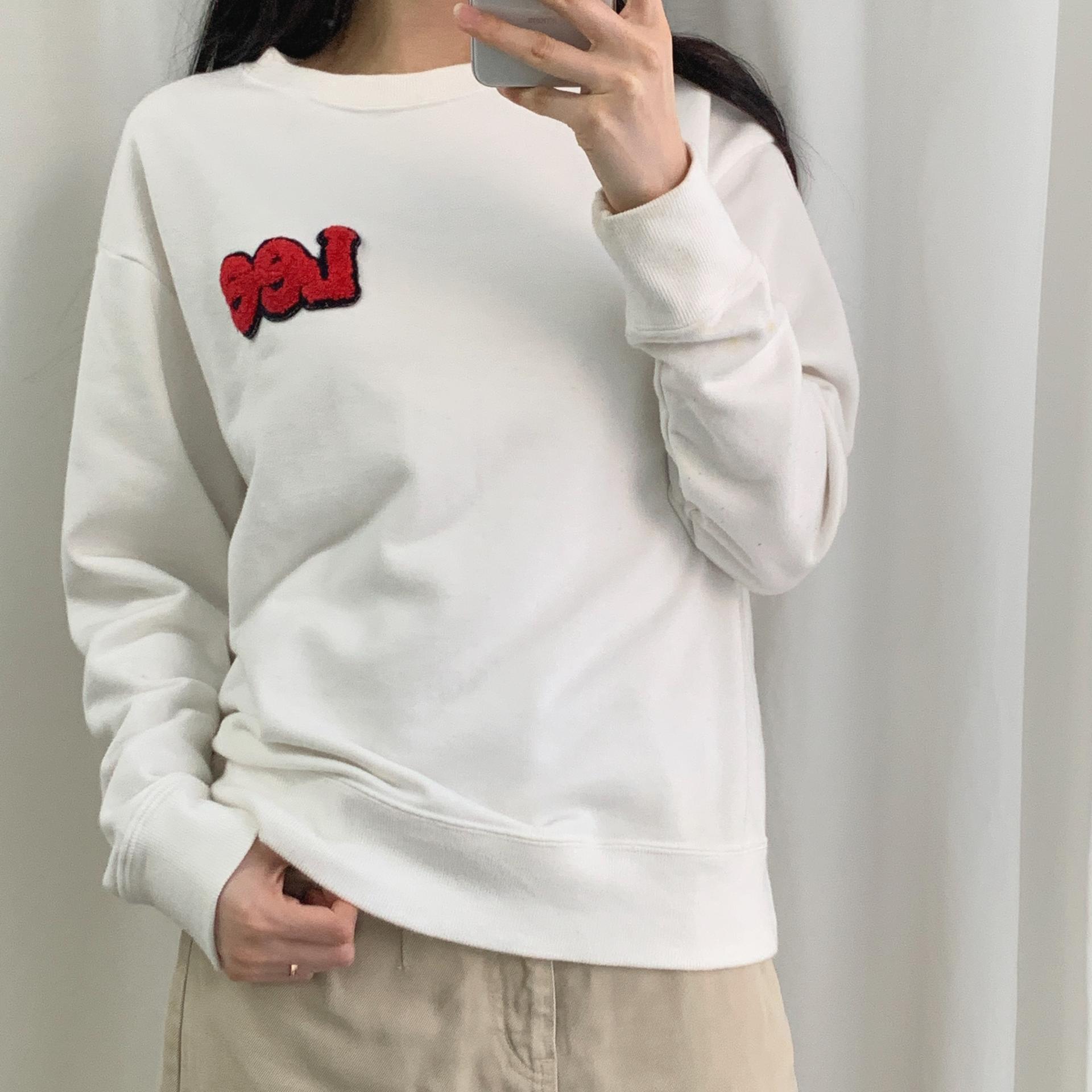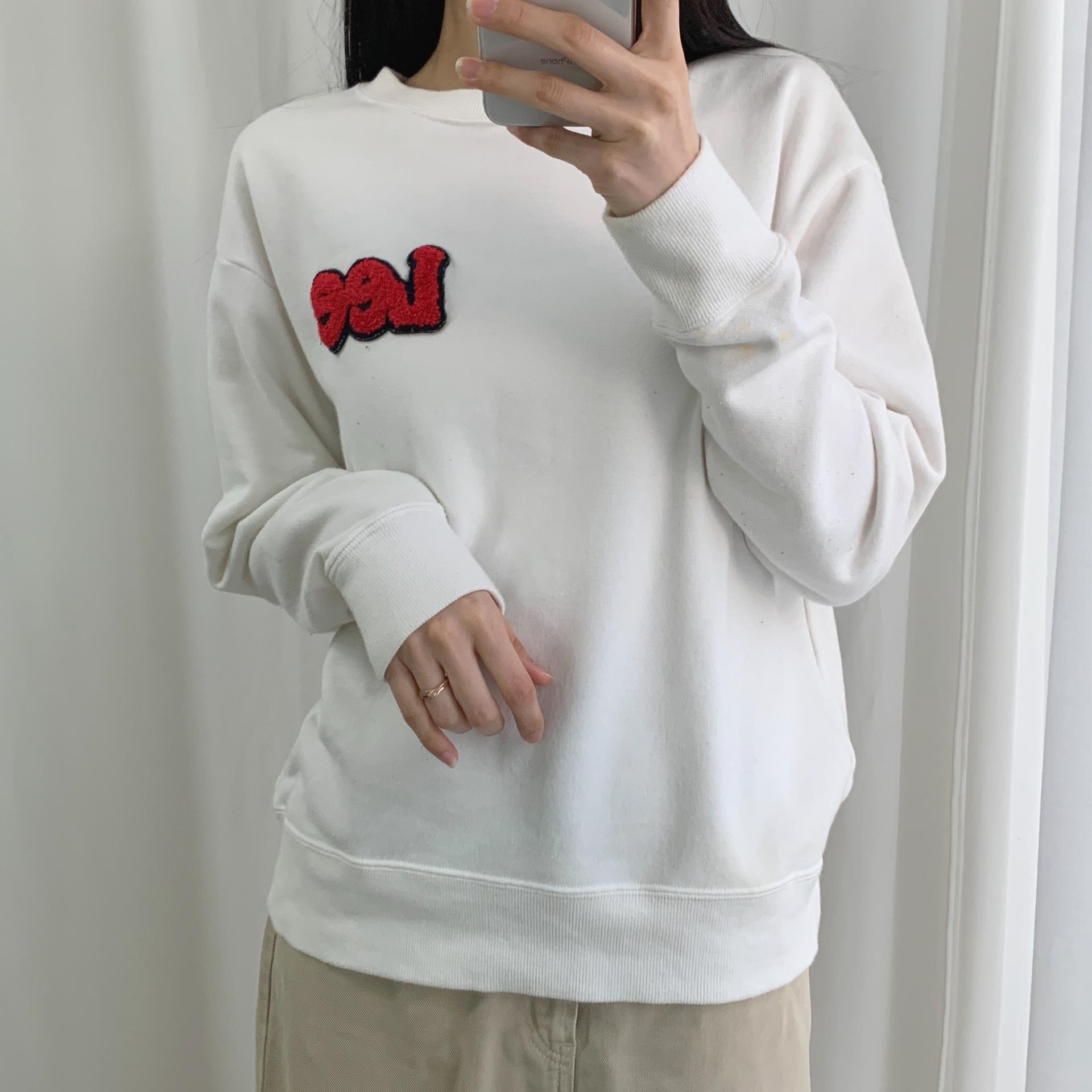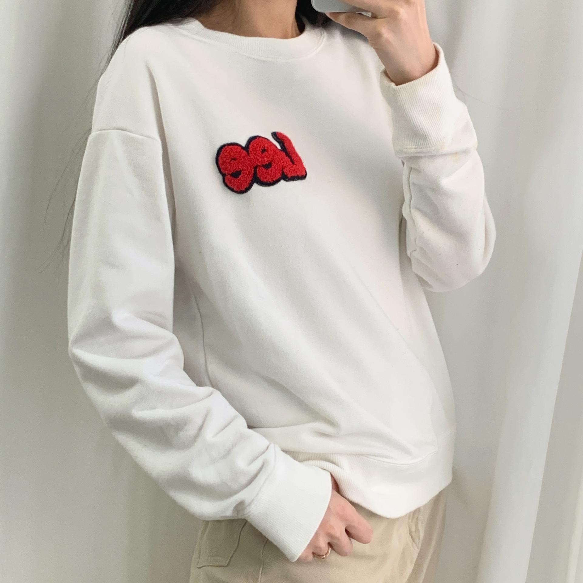 가슴에 부착된 패치 자수 포인트가 귀엽게 돋보이며, 미니멀 한 디자인으로 부담 없이 소화 가능합니다.