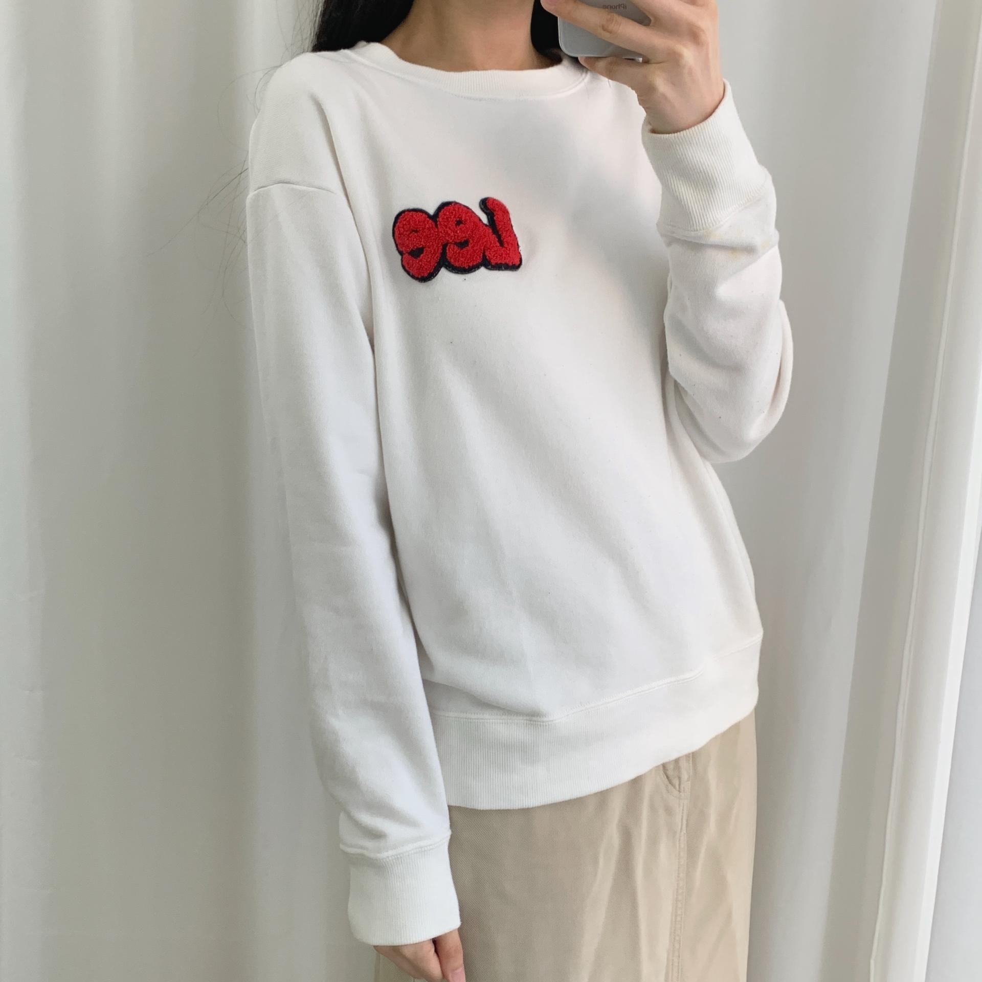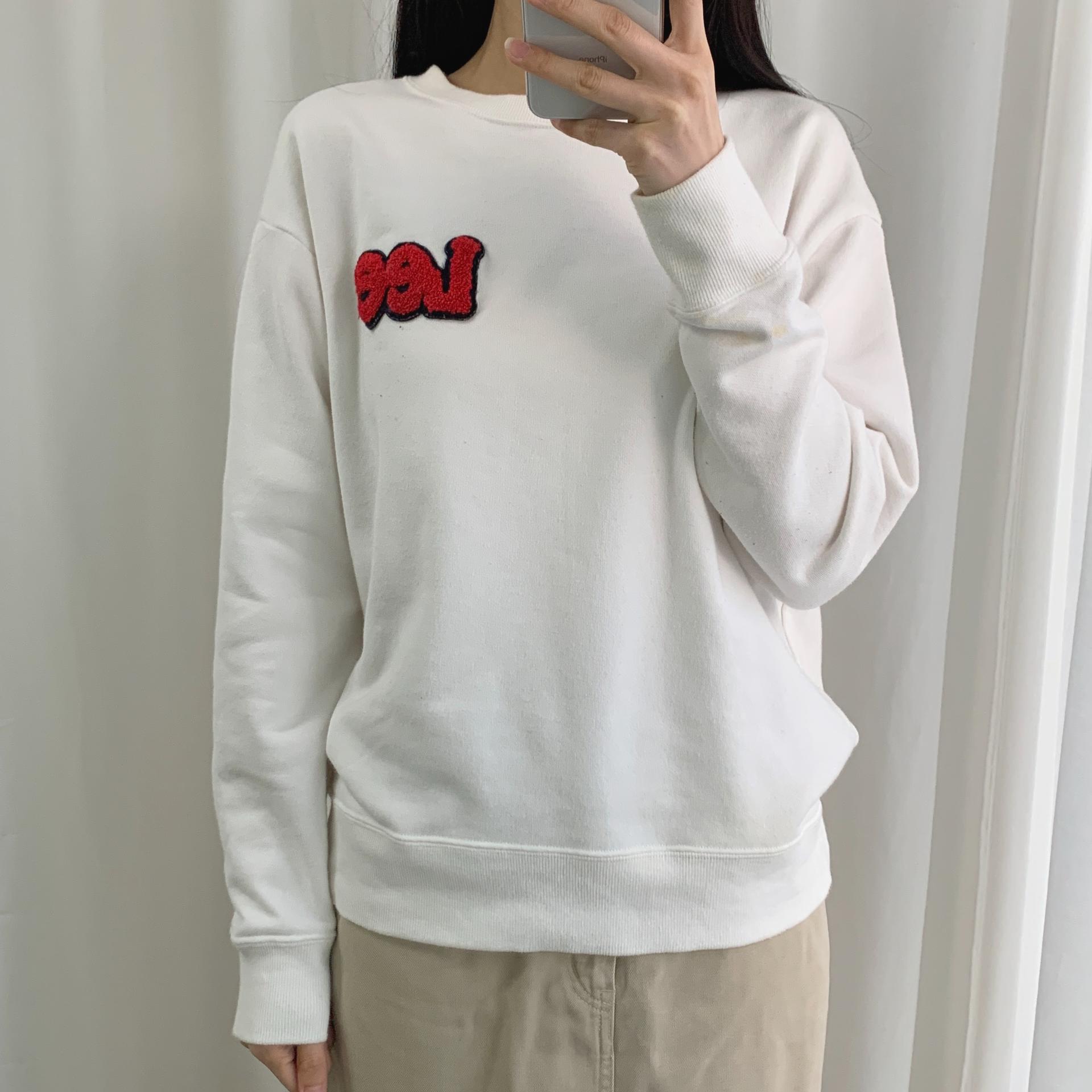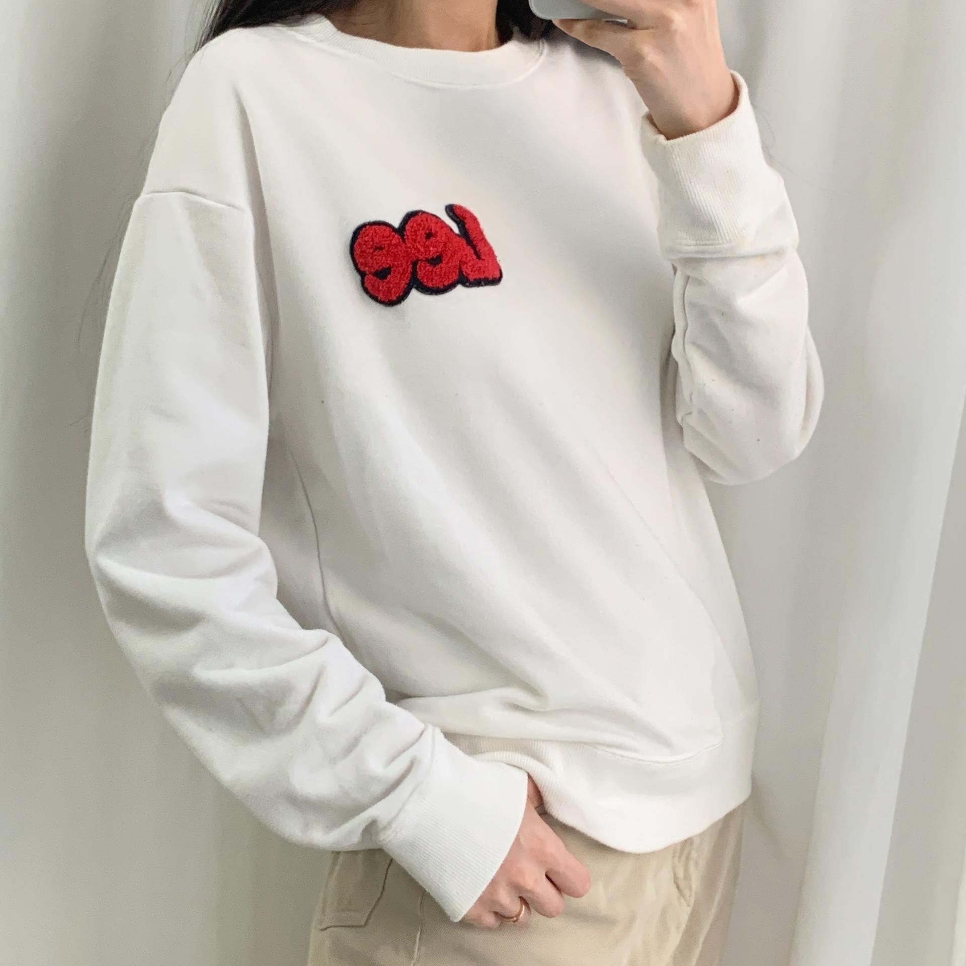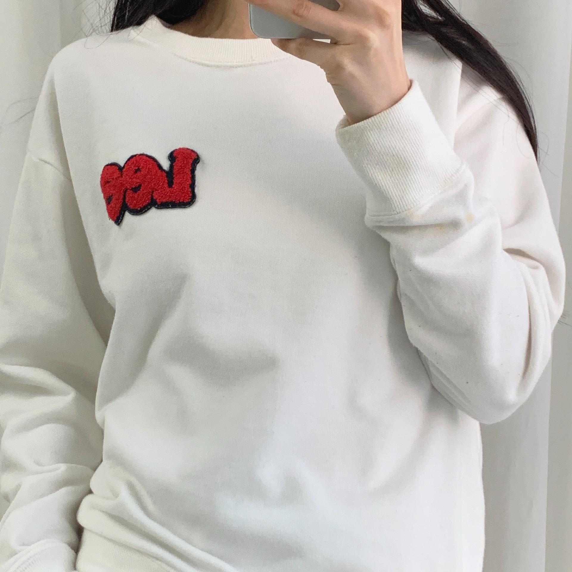 가슴에 부착된 패치 자수 포인트가 귀엽게 돋보이며, 미니멀 한 디자인으로 부담 없이 소화 가능합니다.