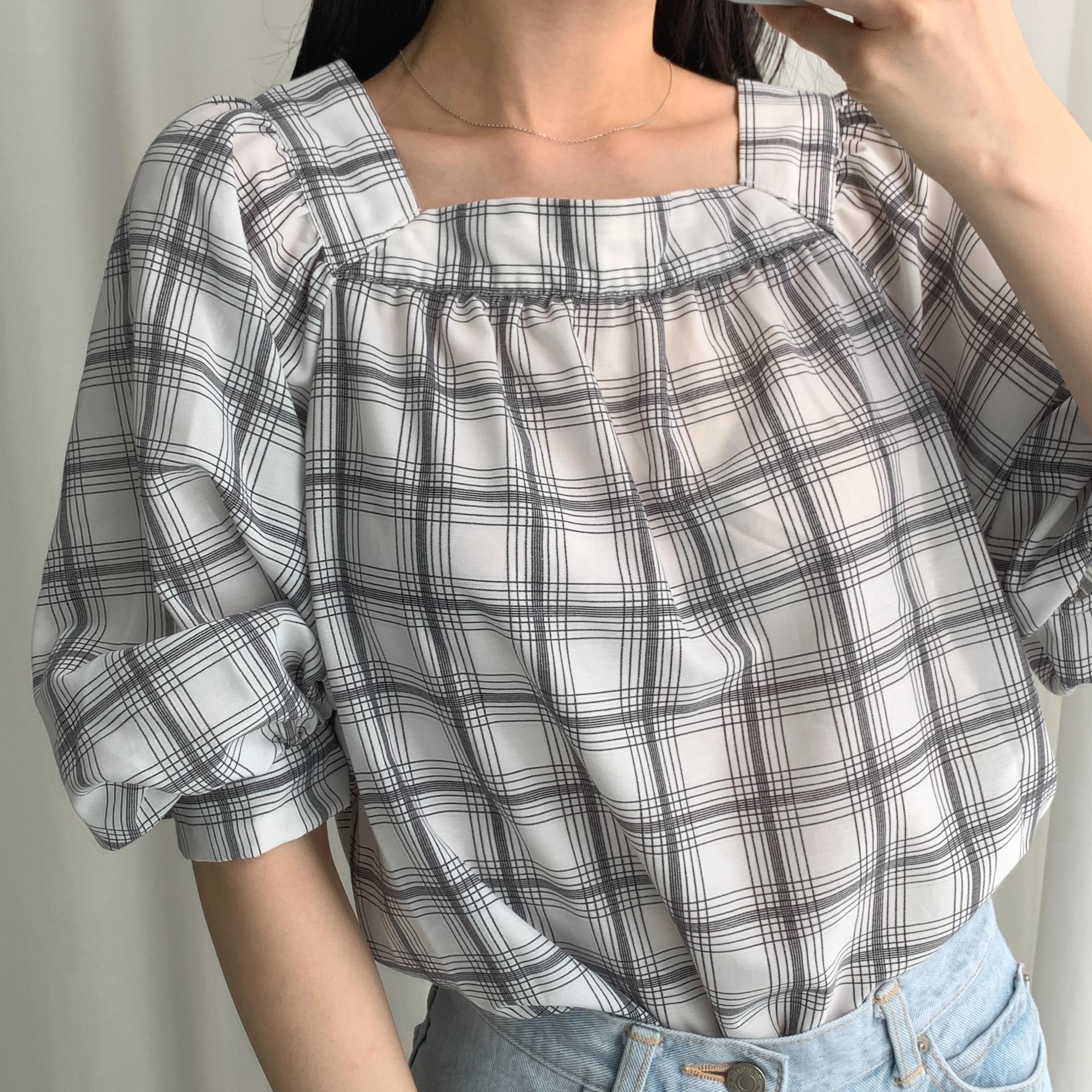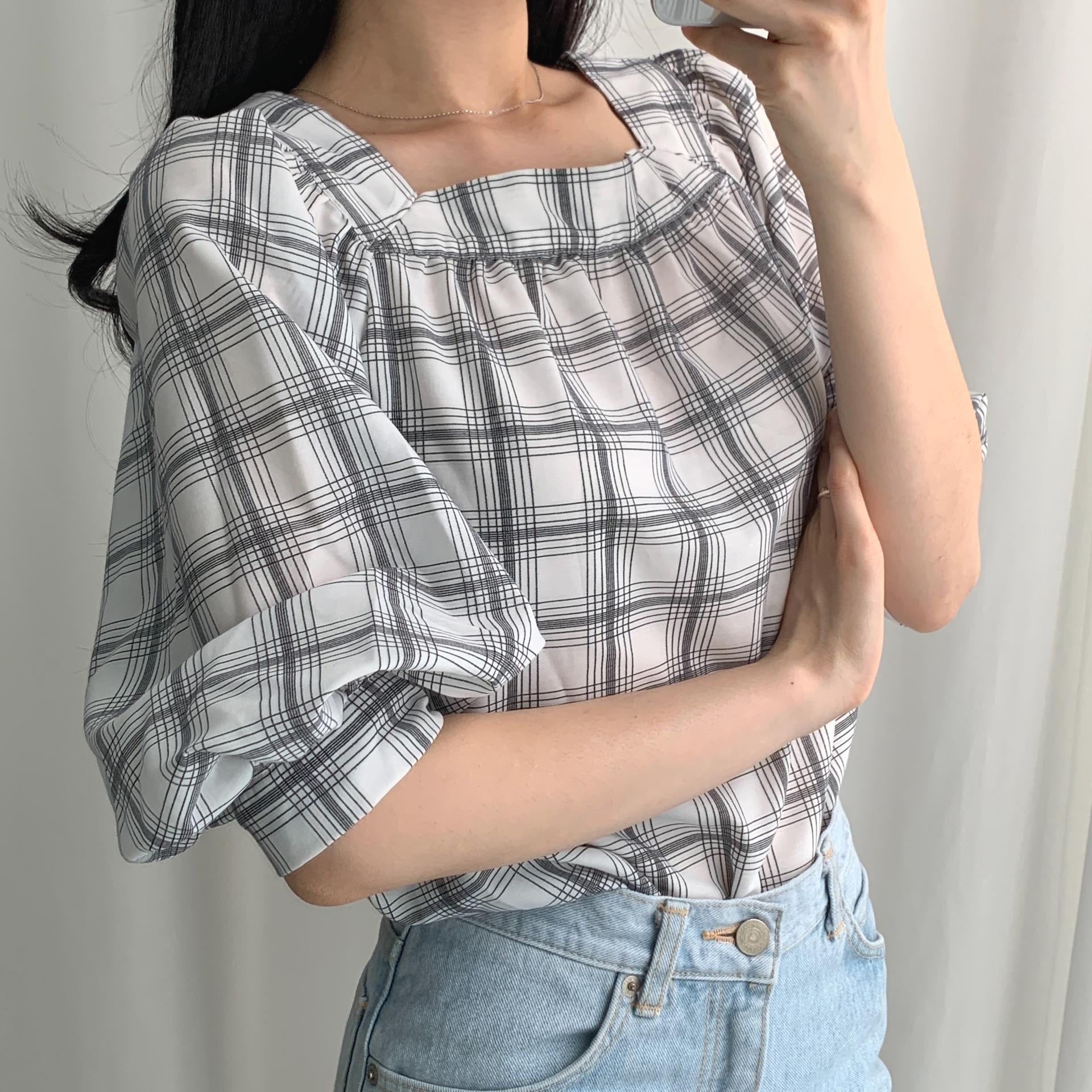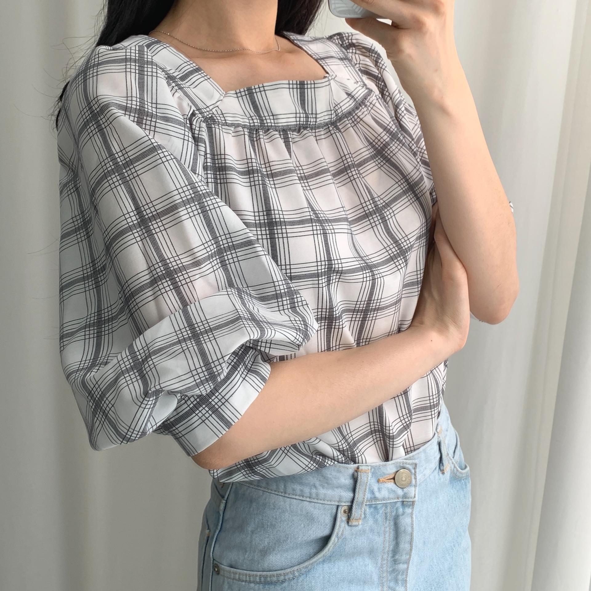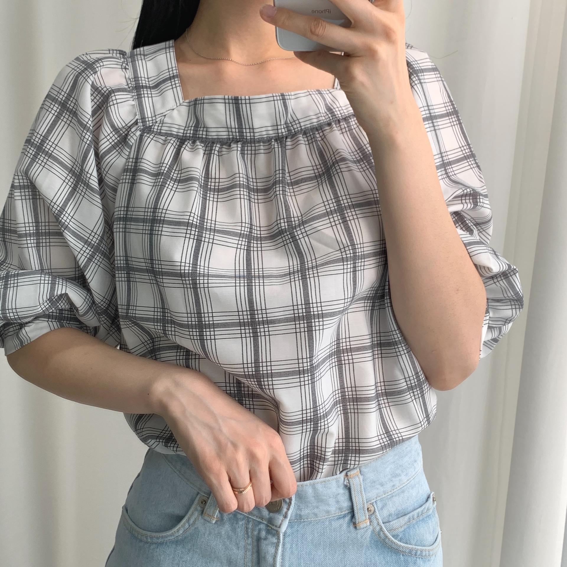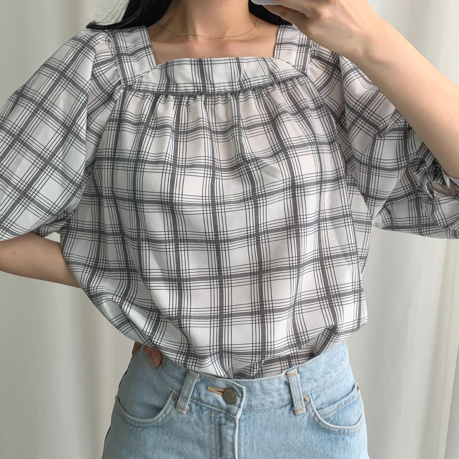 일본의 SPA 브랜드 GU ( 지유 )의 체크 블라우스 !