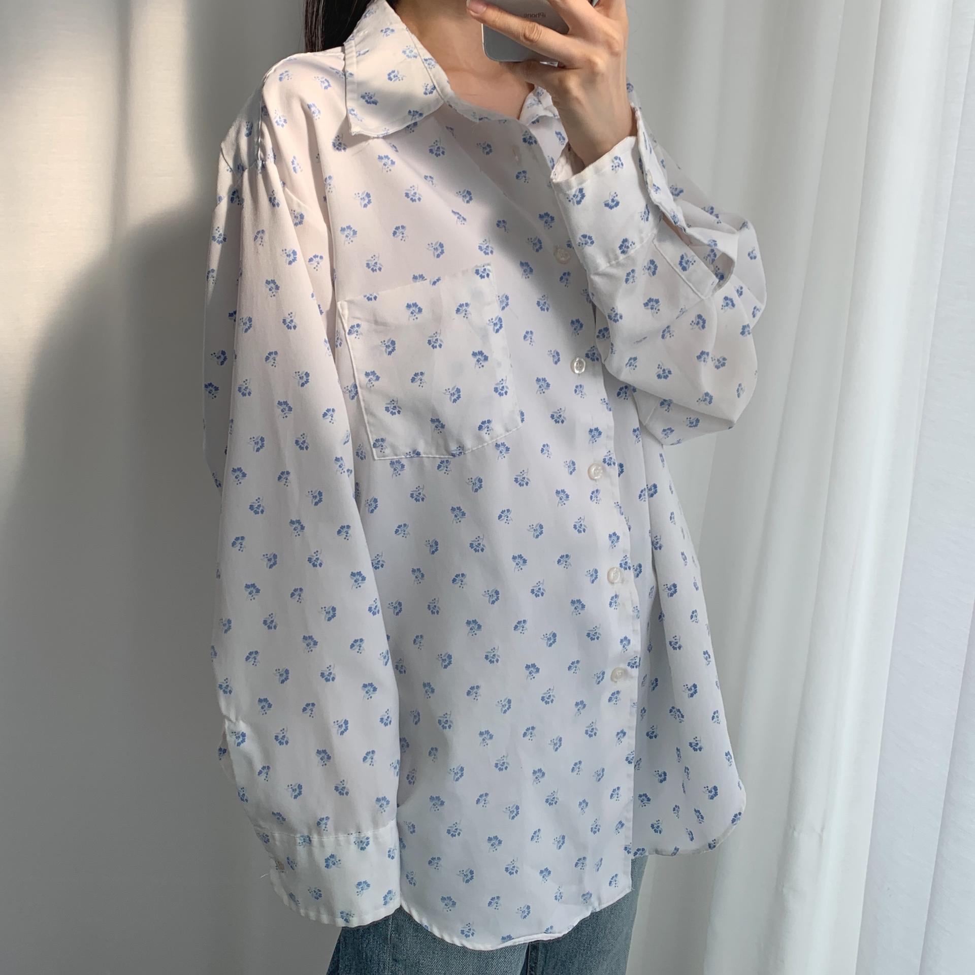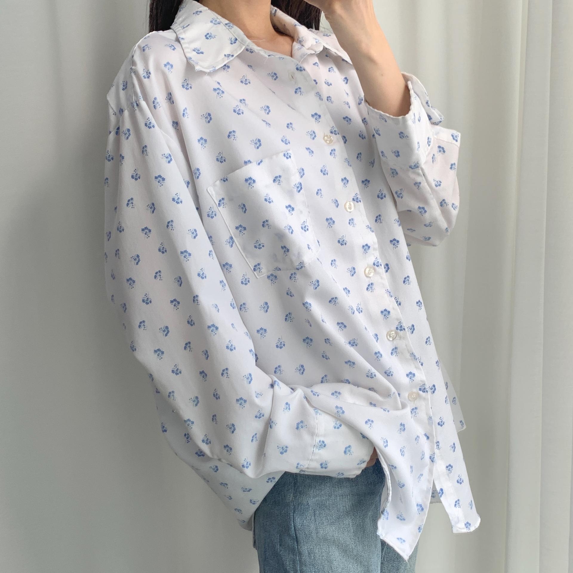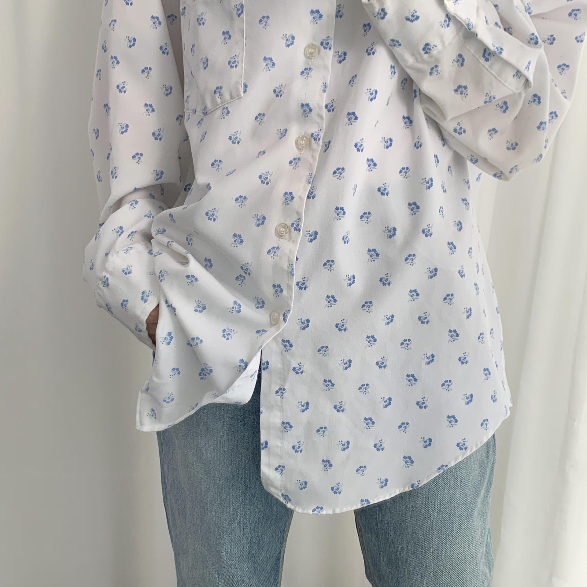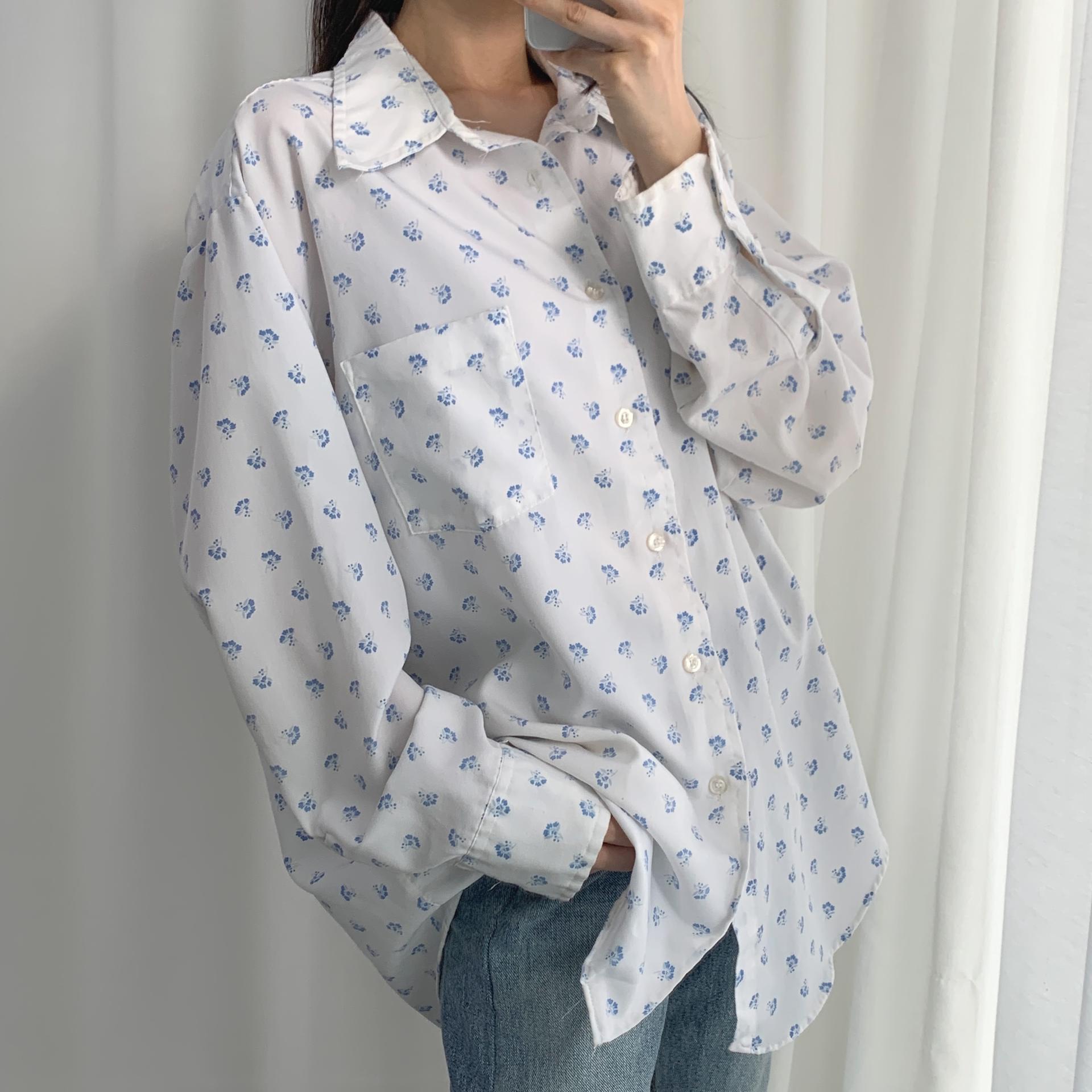 푸른 플라워 패턴과 박시한 사이즈로 시원하고 편안하게 즐길 수 있는 셔츠 아이템입니다.