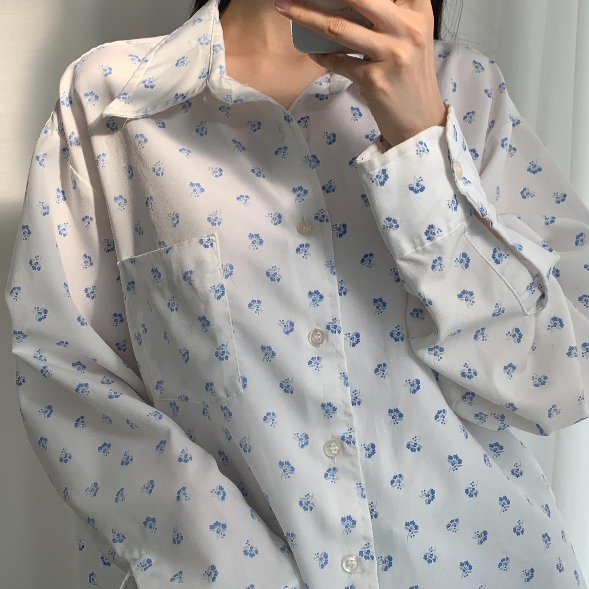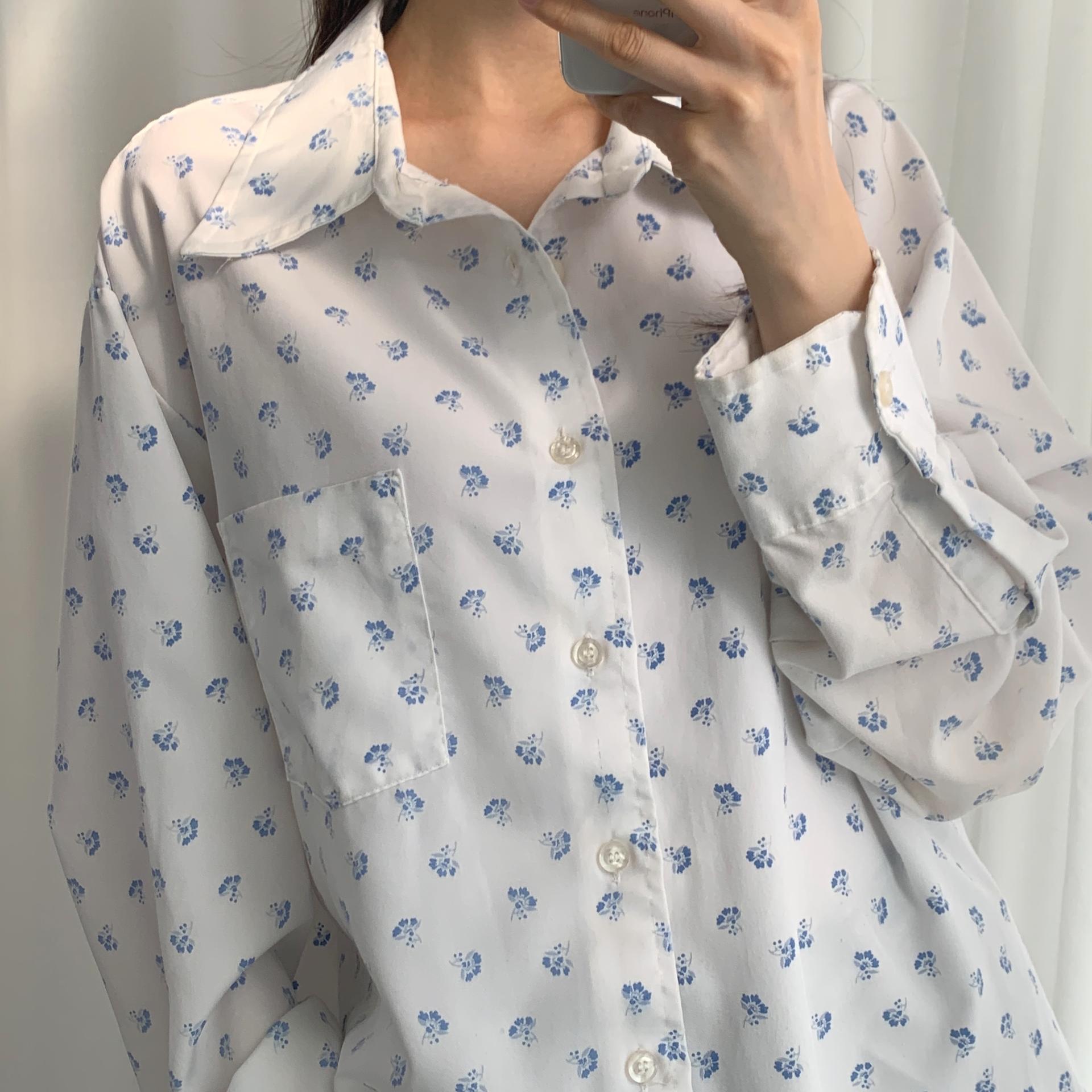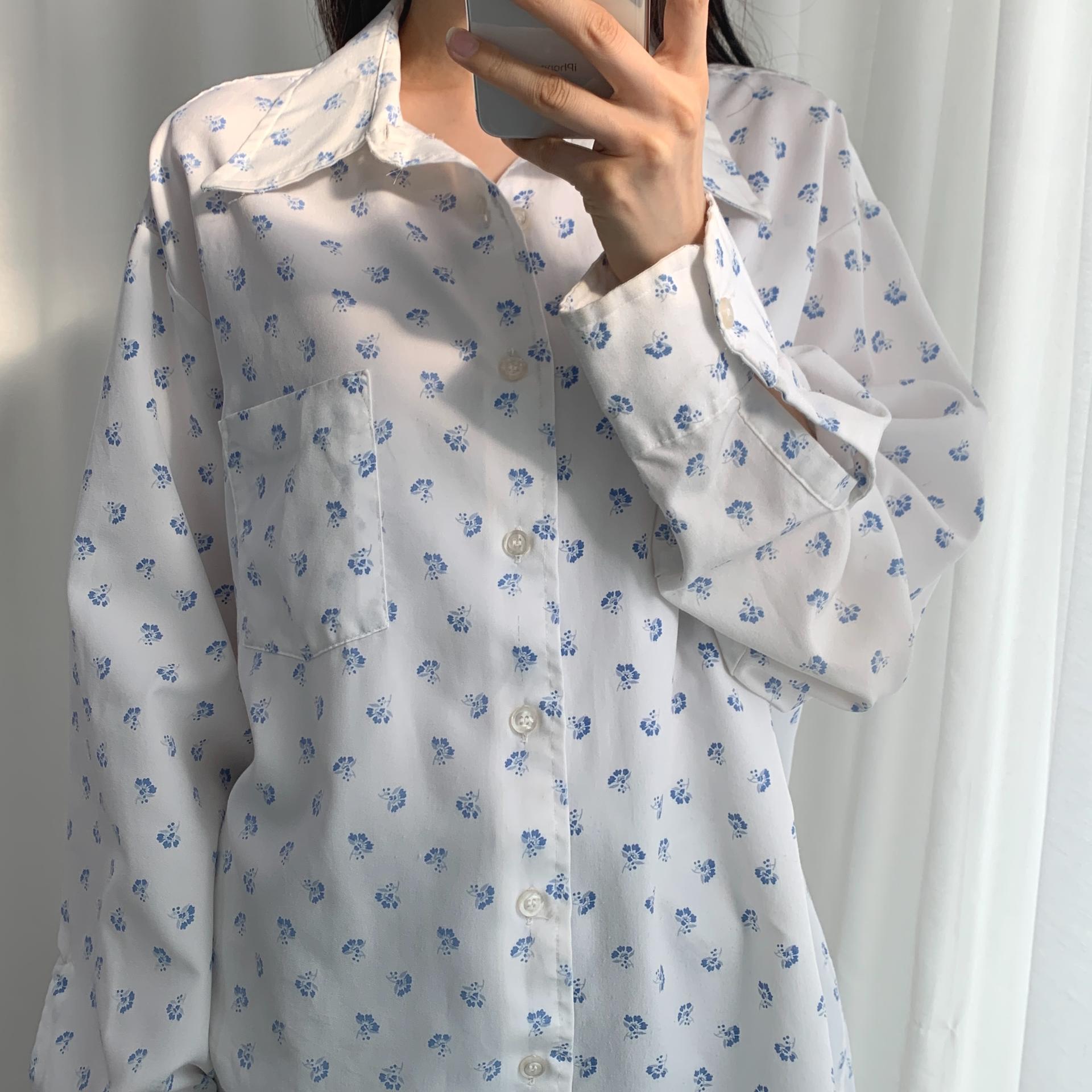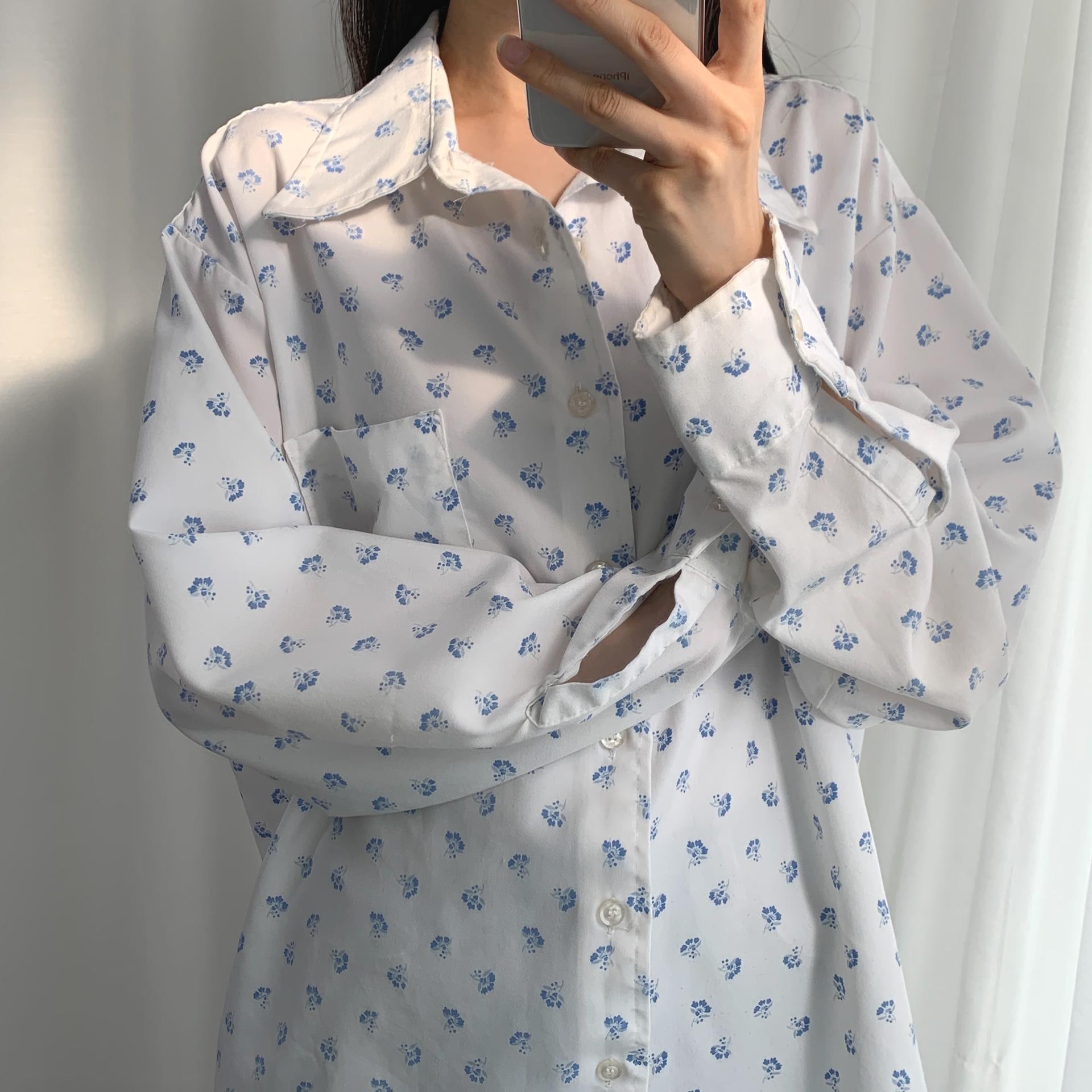 푸른 플라워 패턴과 박시한 사이즈로 시원하고 편안하게 즐길 수 있는 셔츠 아이템입니다.