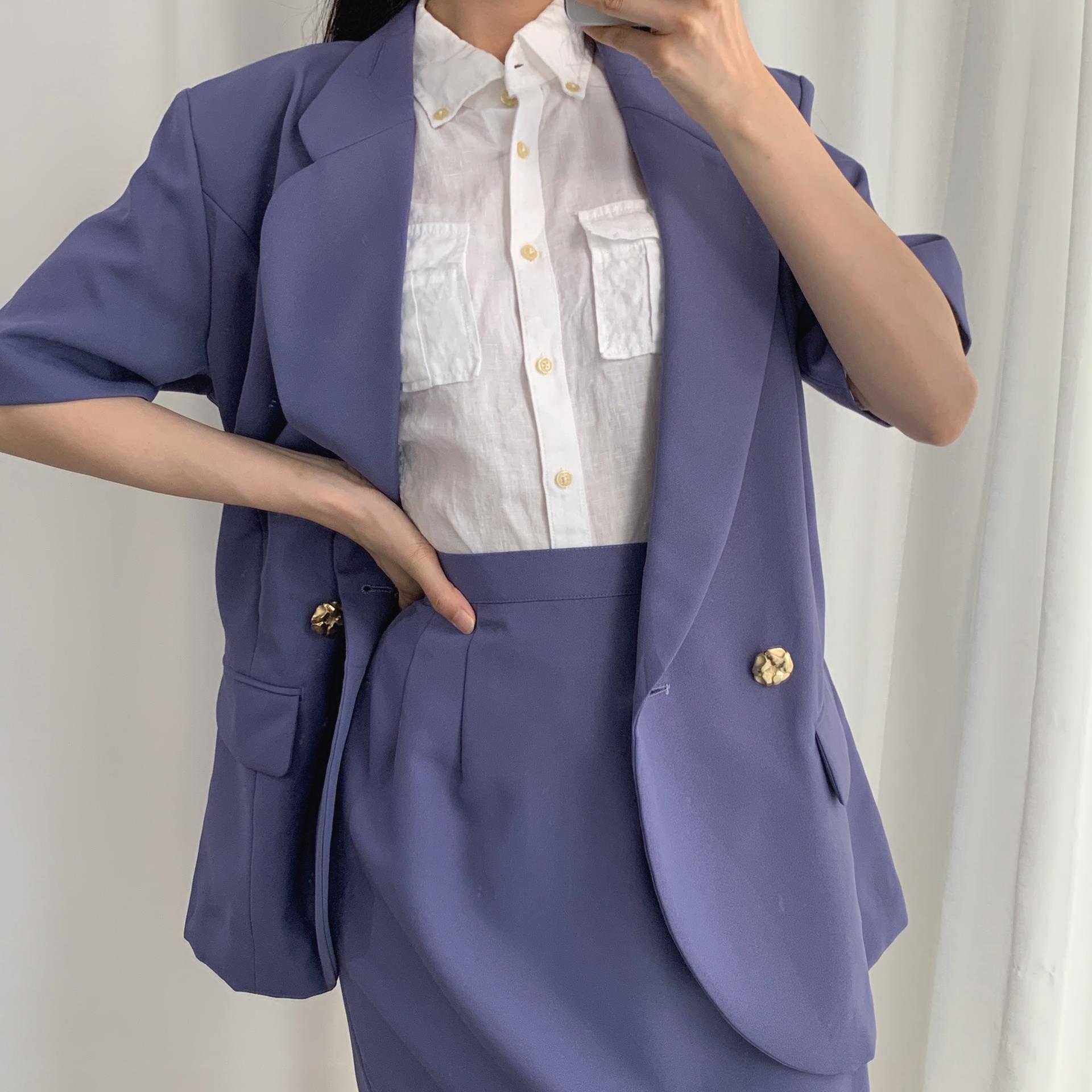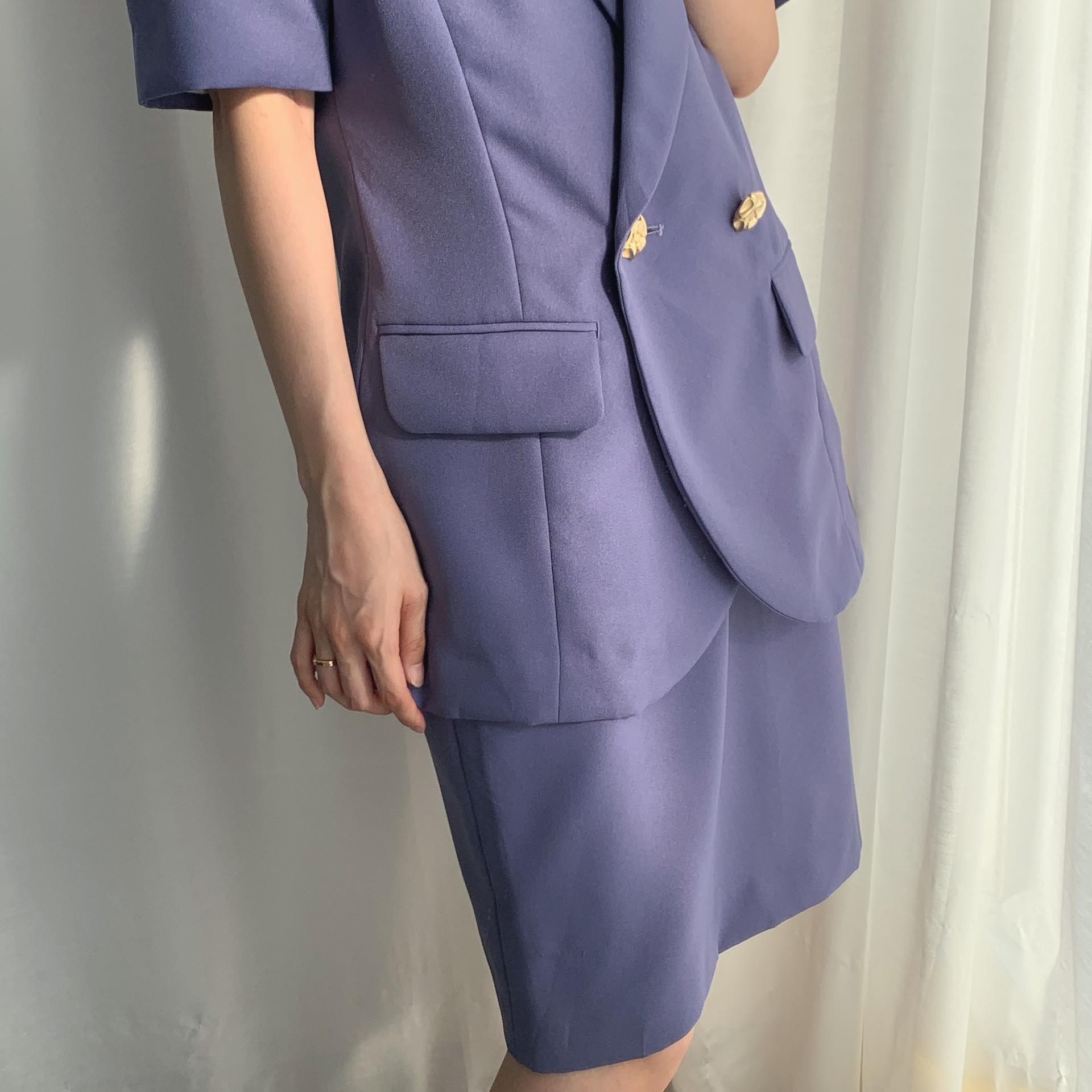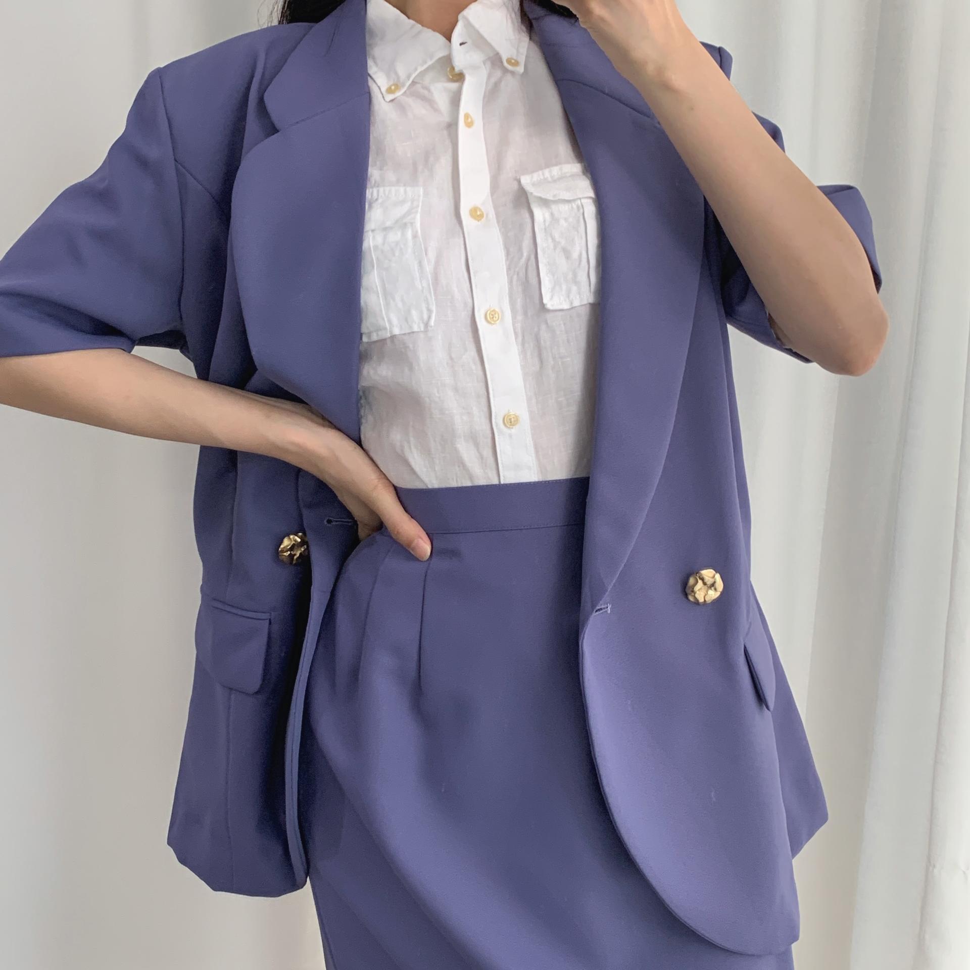 빈티지한 무드의 퍼플 컬러가 돋보이는 셋업 제품입니다.