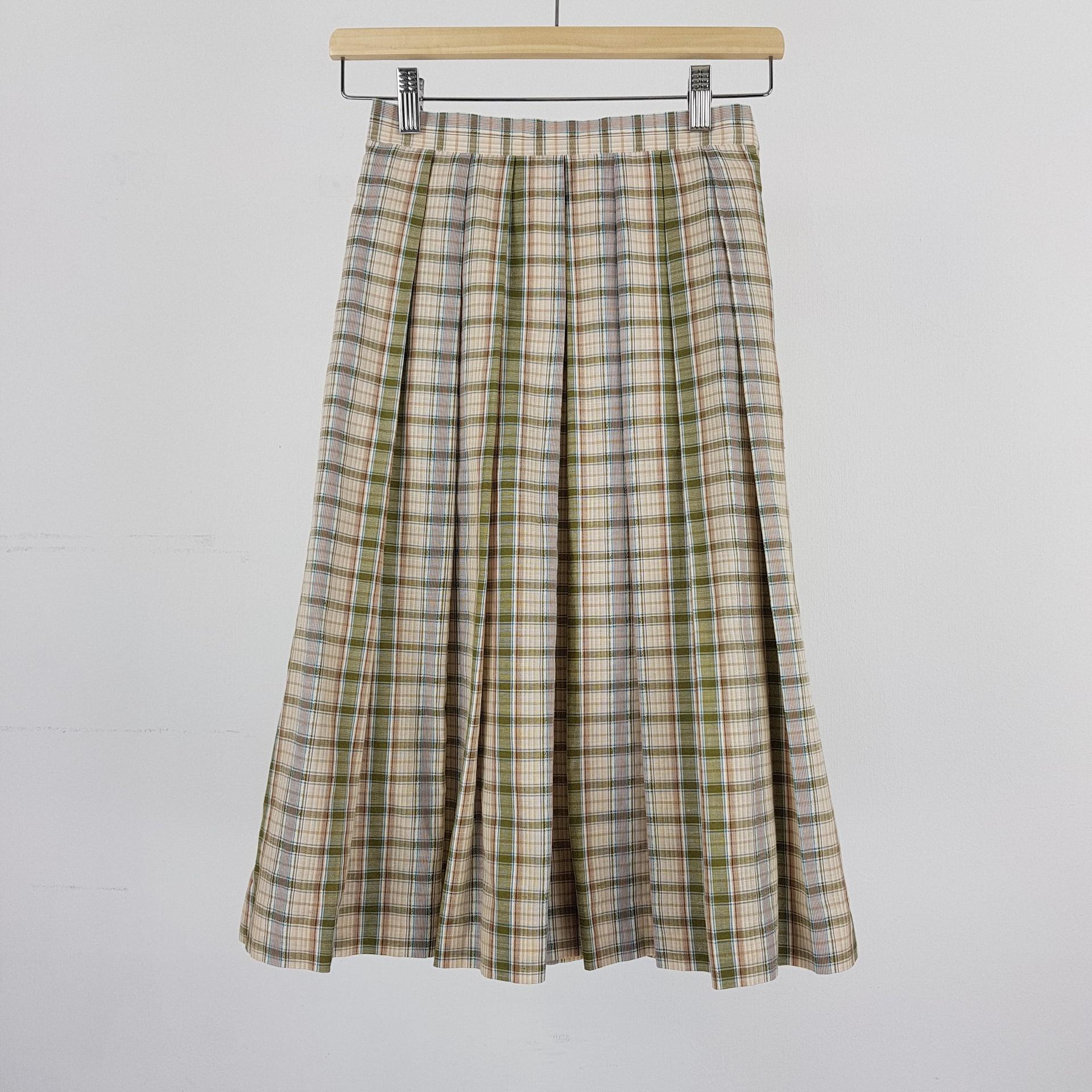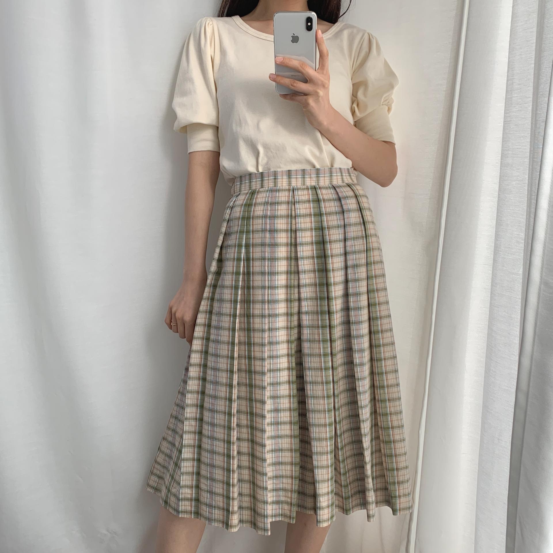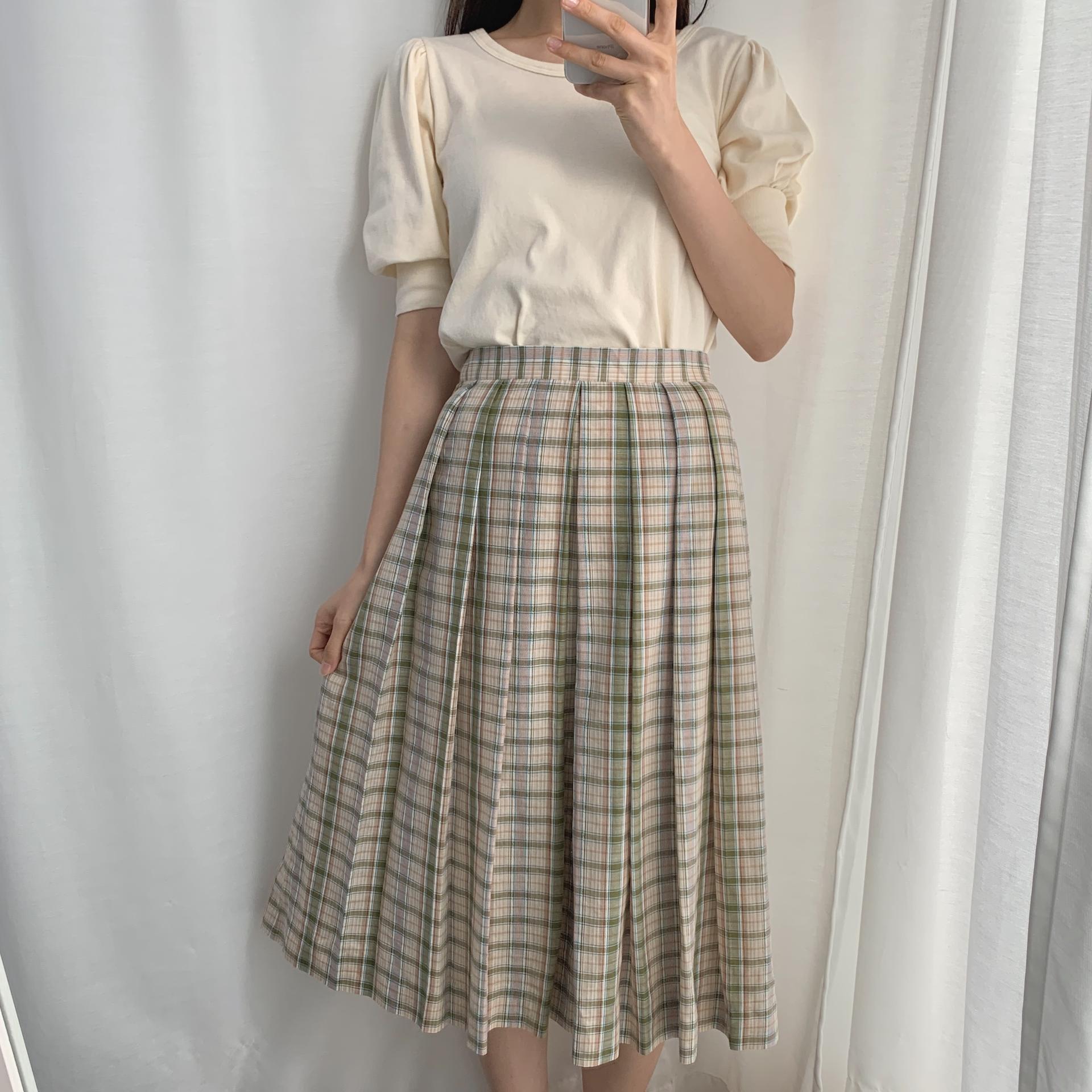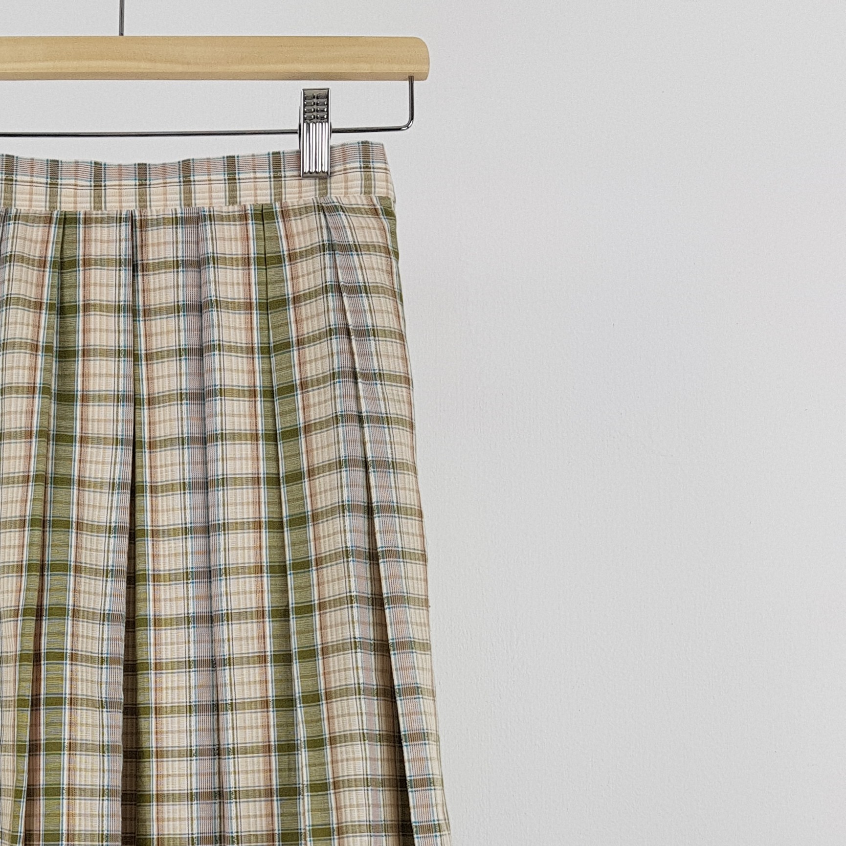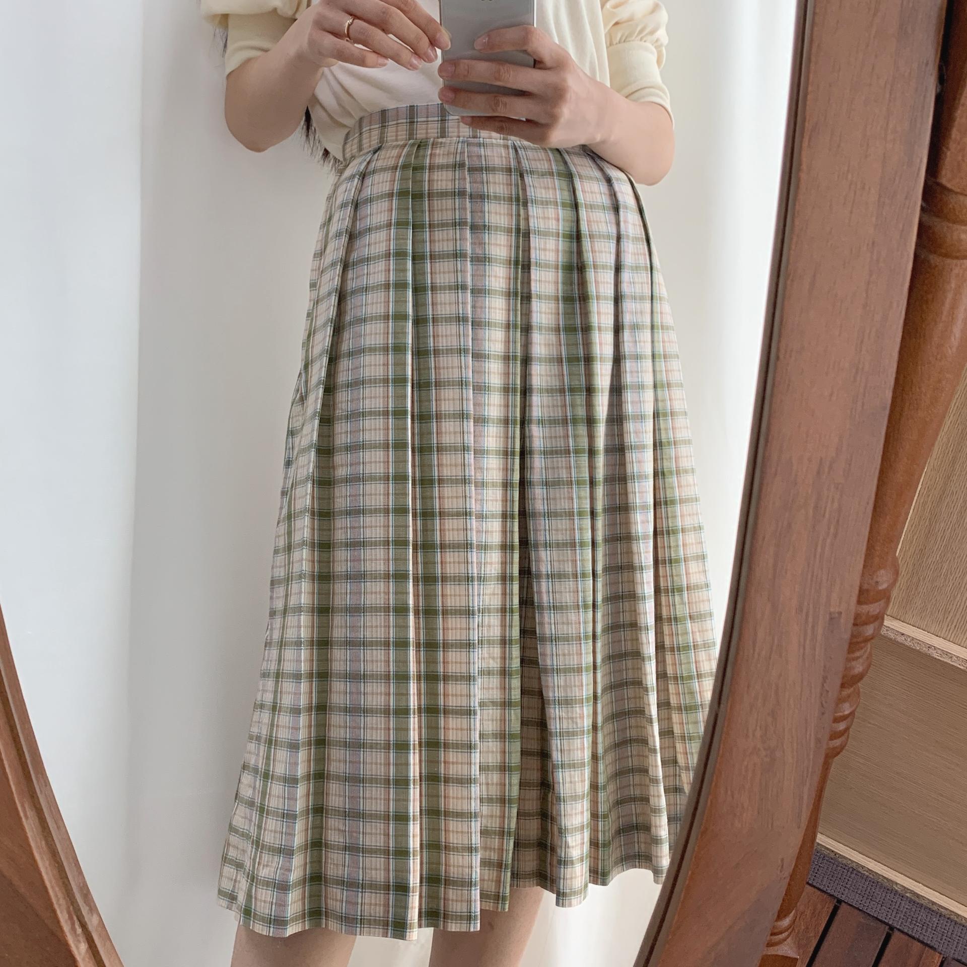 베이지와 그리너리의 플랫하고 산뜻한 색감이 예쁜 스커트 아이템입니다.