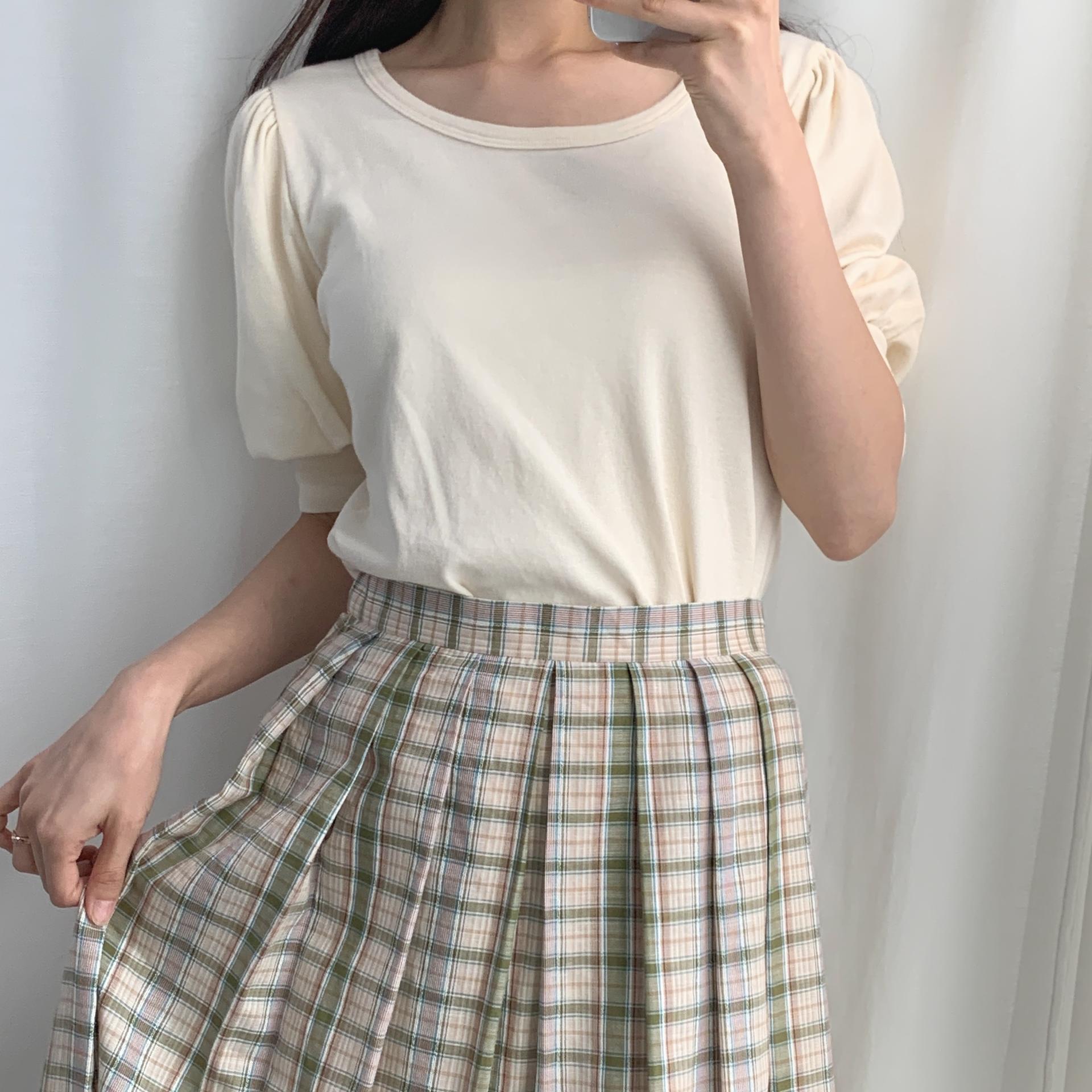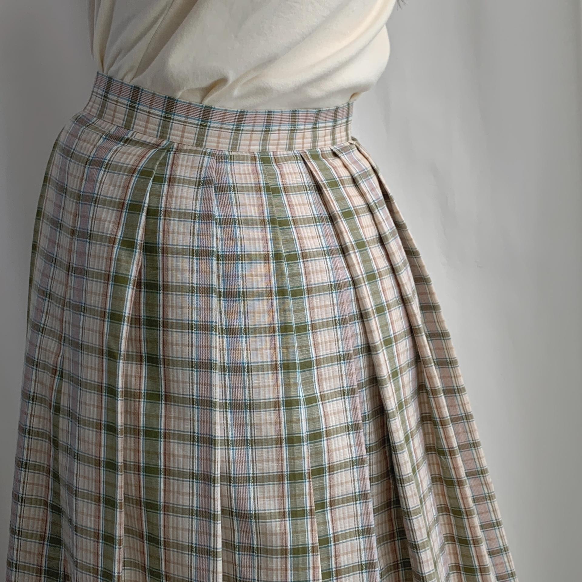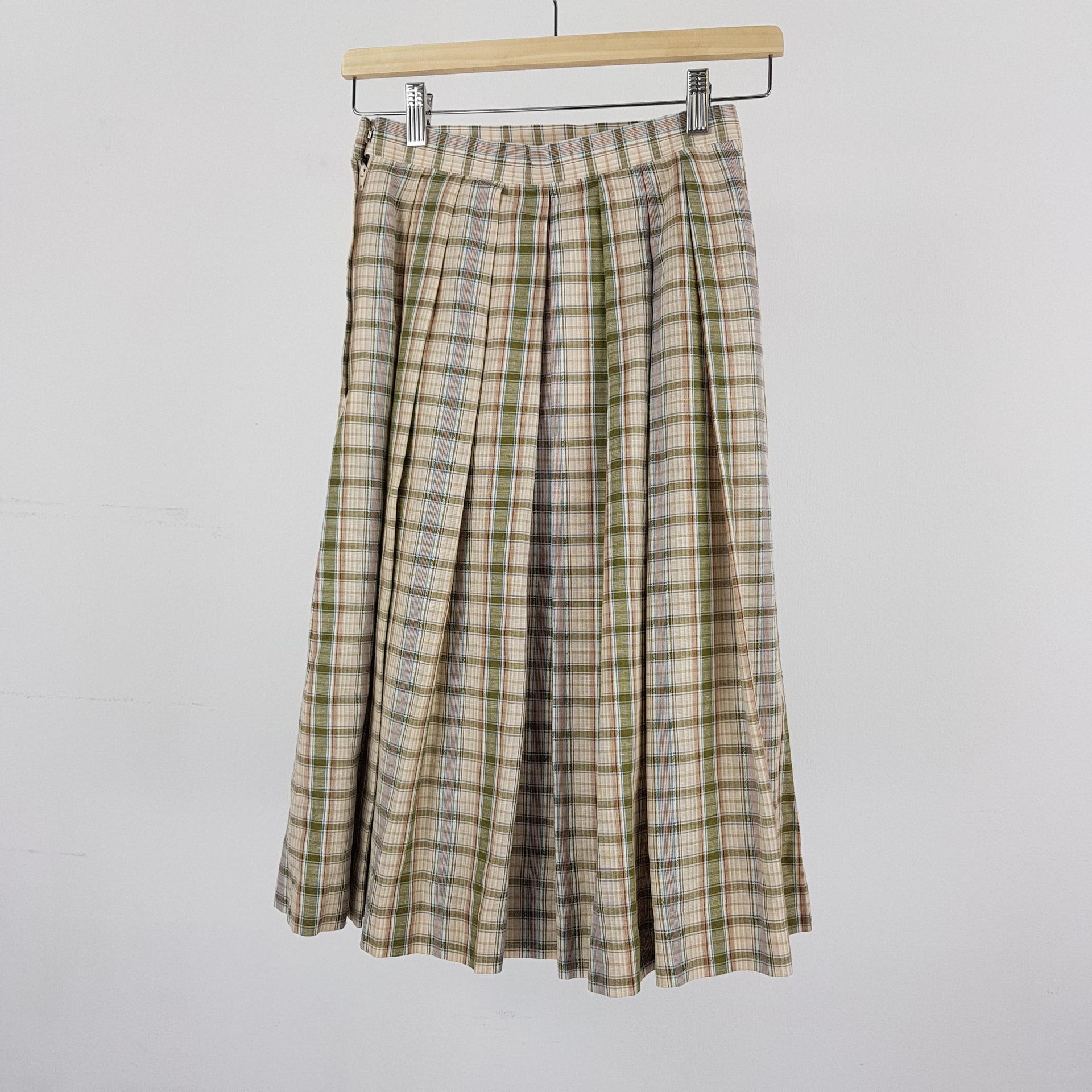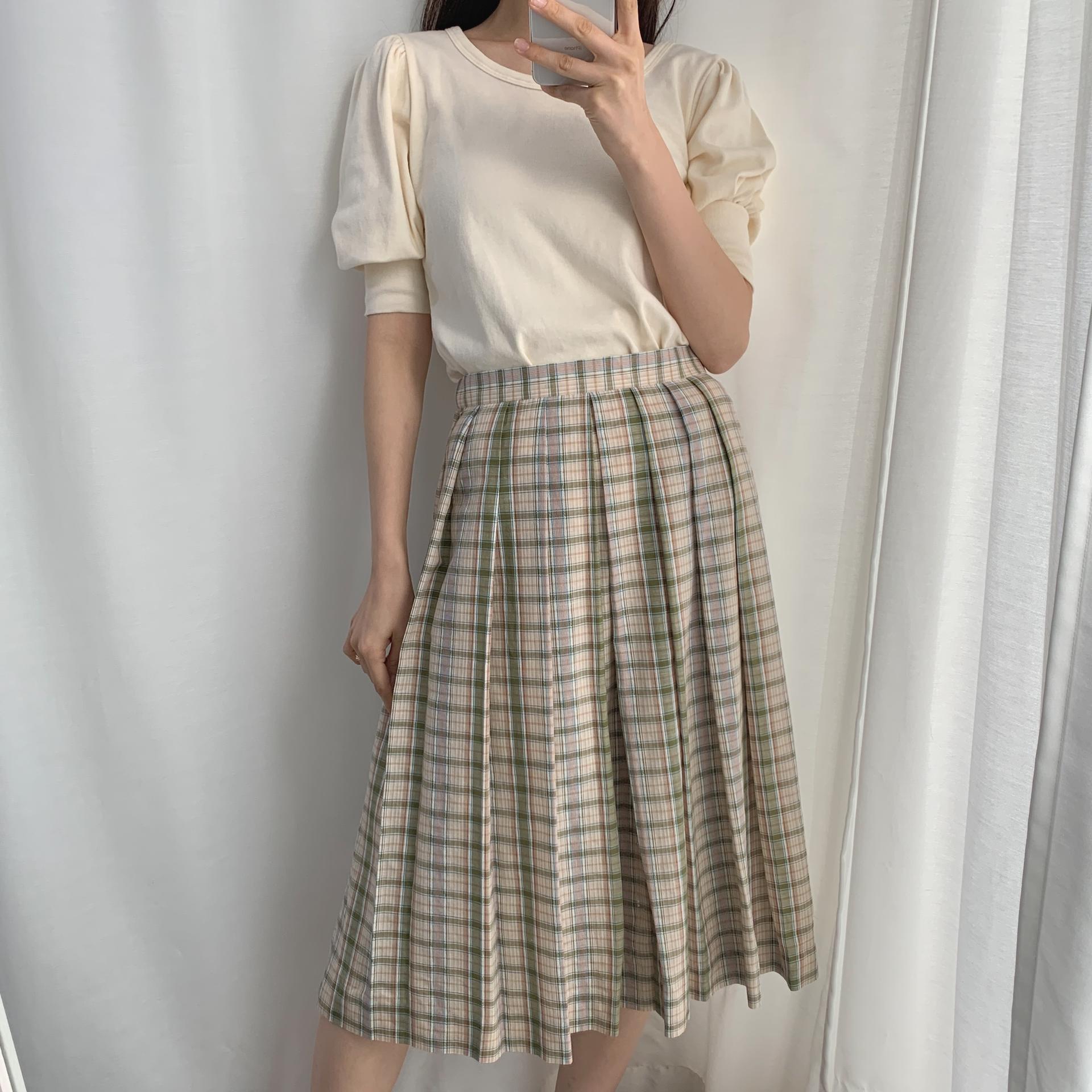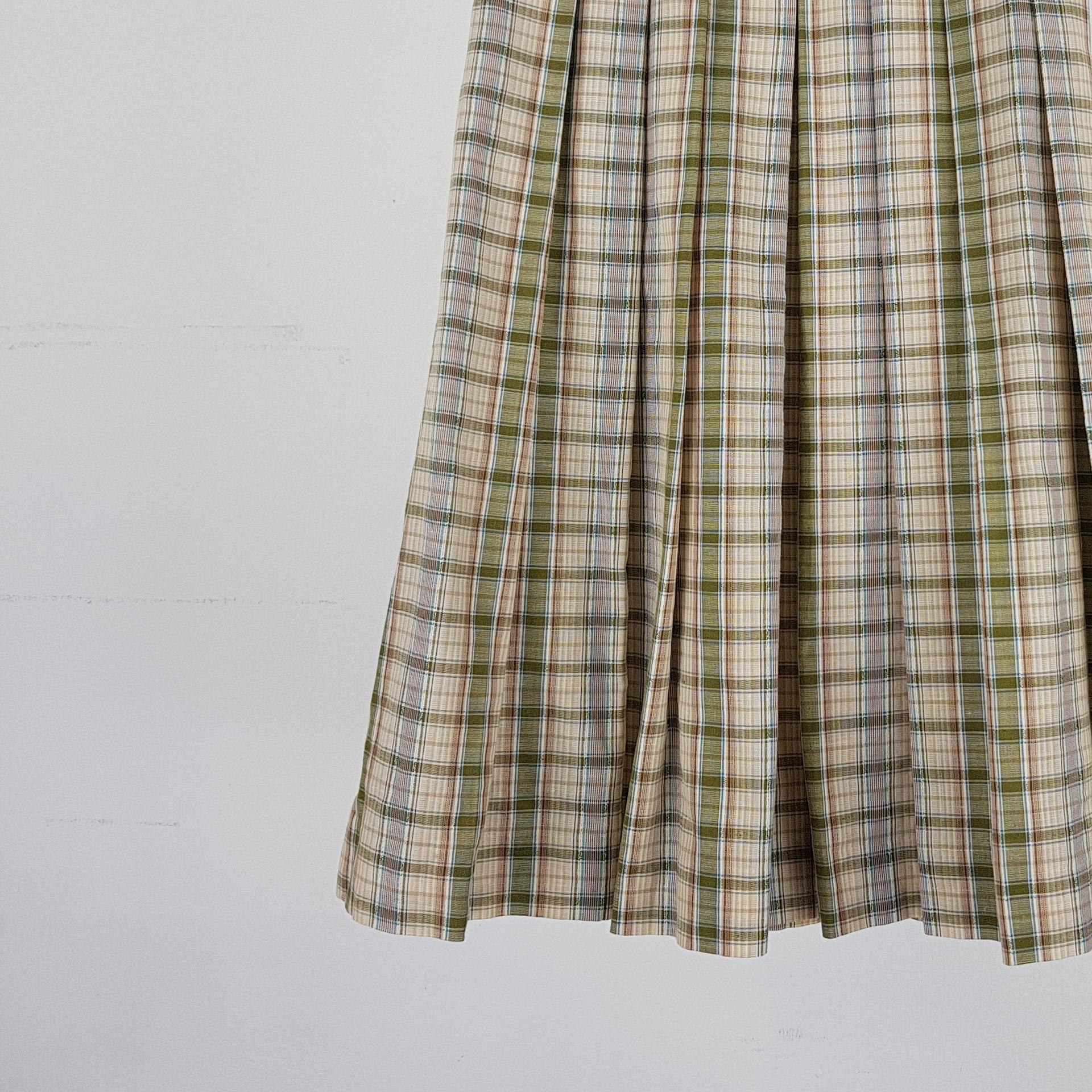 베이지와 그리너리의 플랫하고 산뜻한 색감이 예쁜 스커트 아이템입니다.