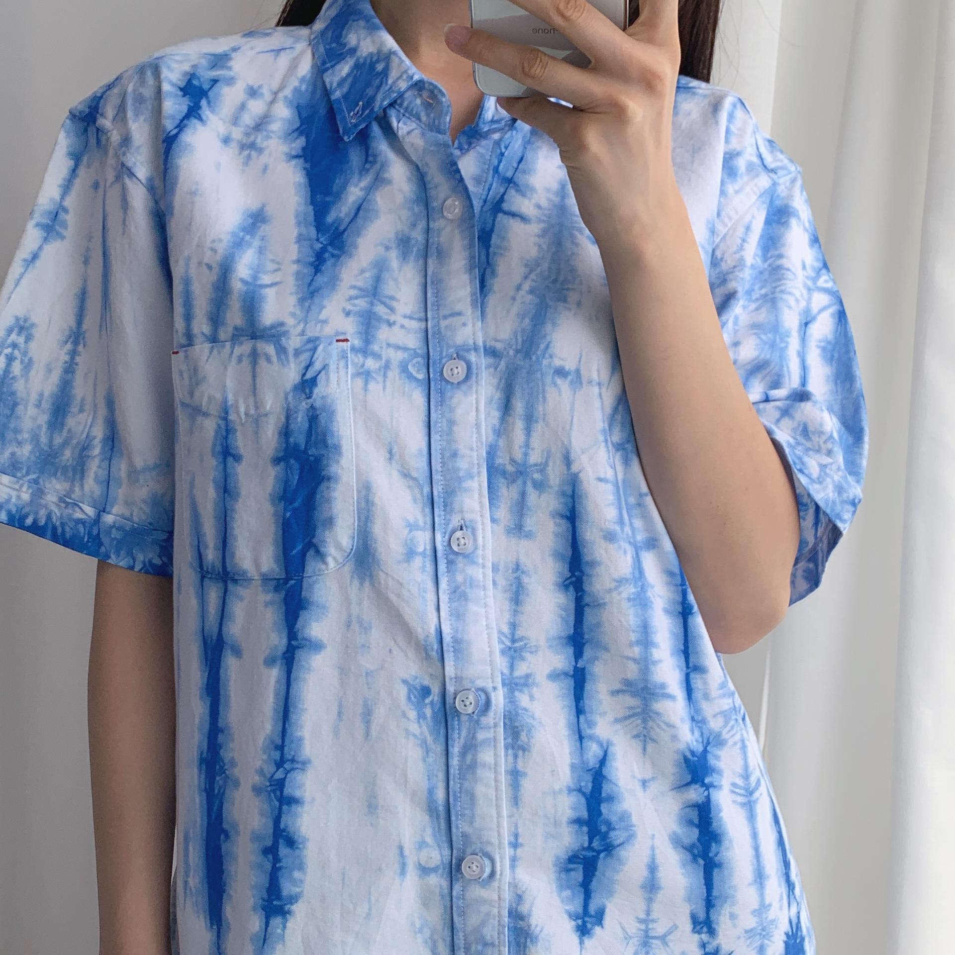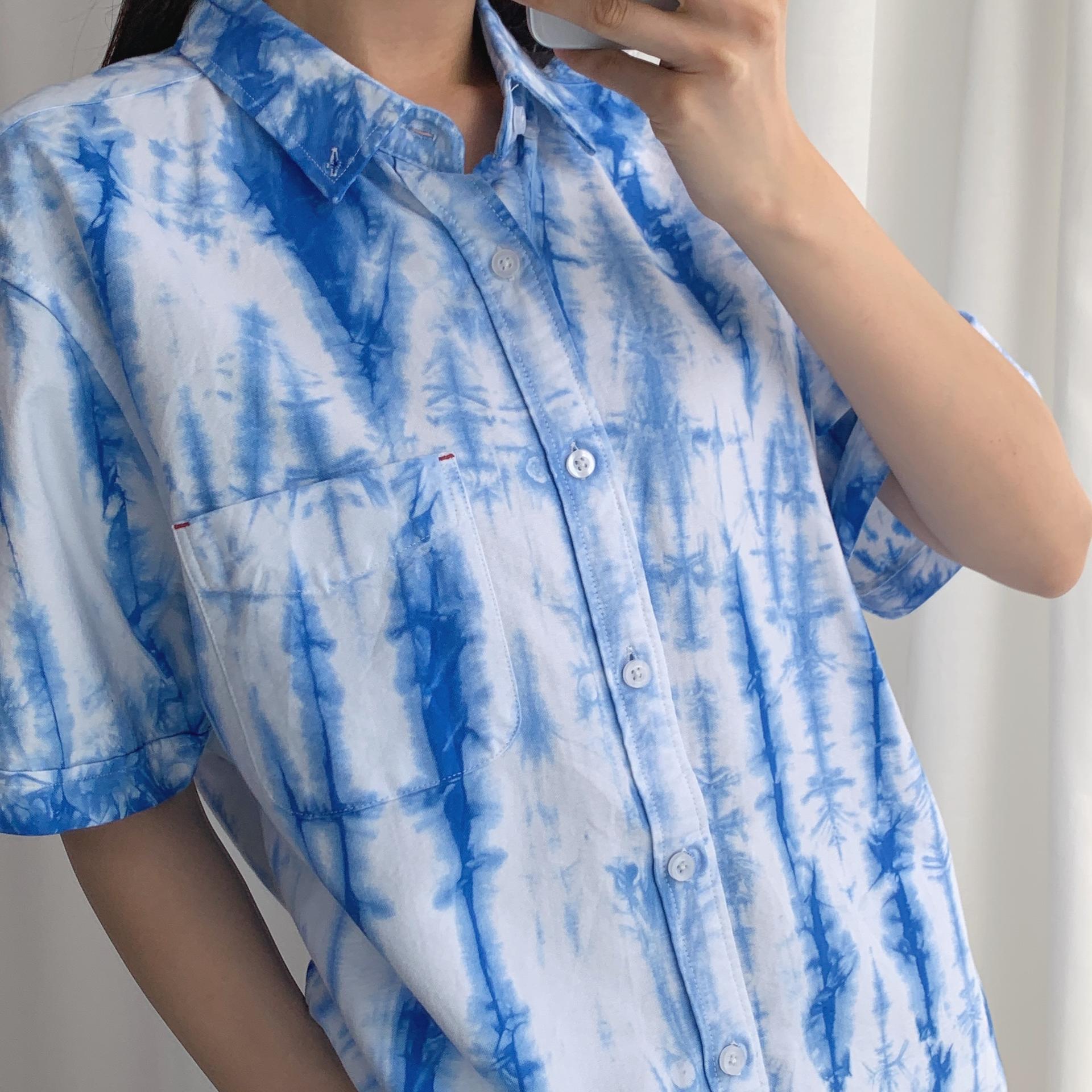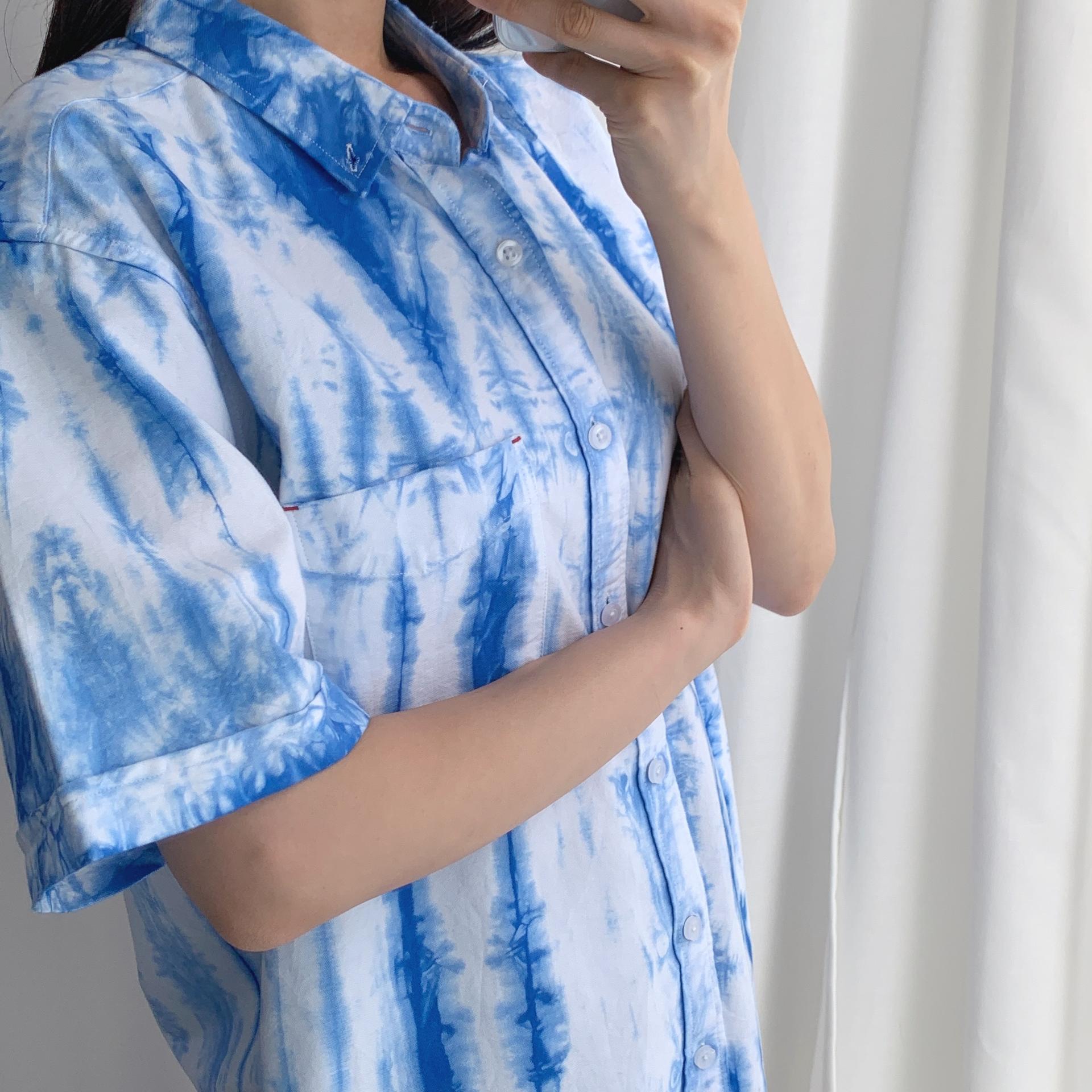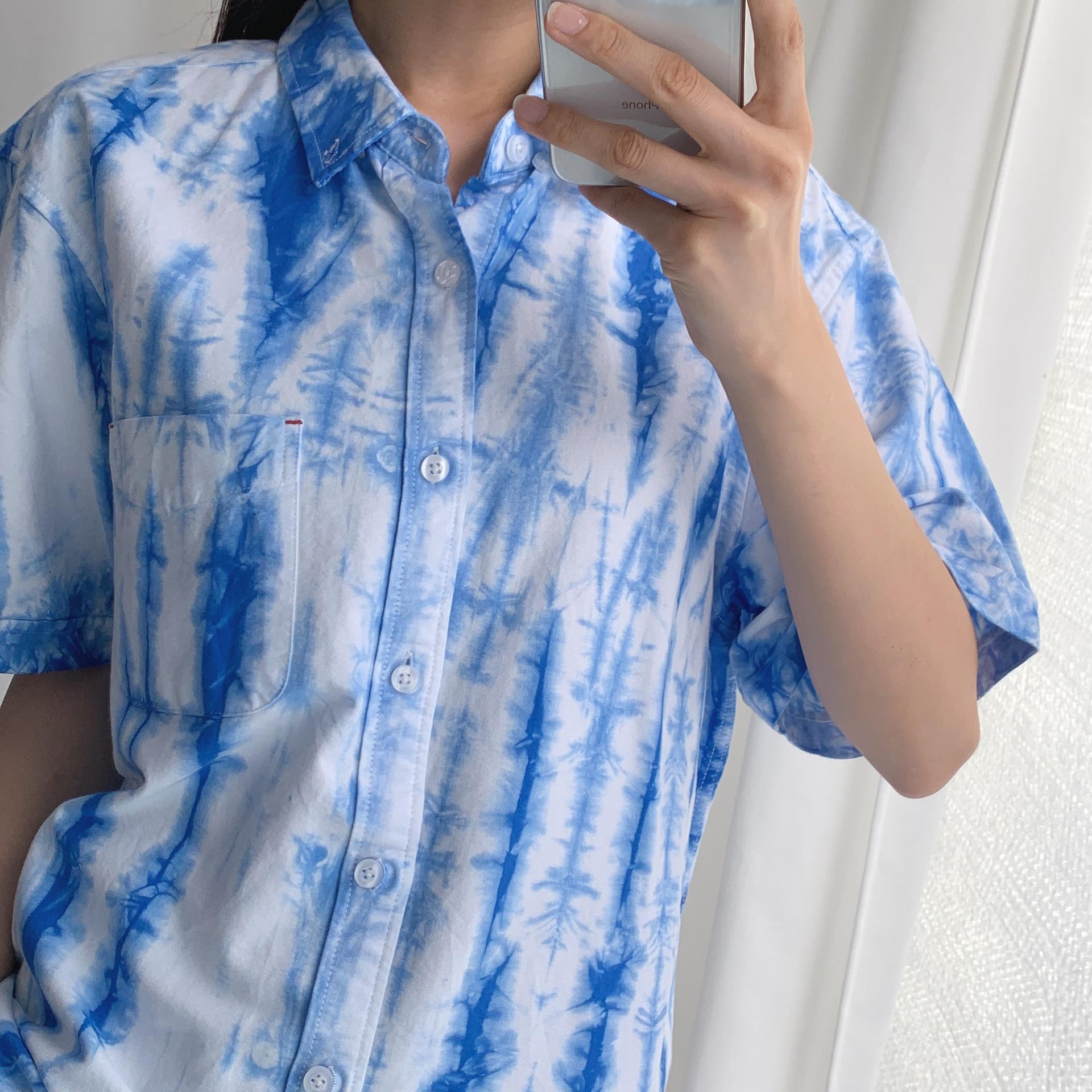청량한 블루 타이다이 색감이 매력적인 코튼 100% 셔츠 아이템입니다.