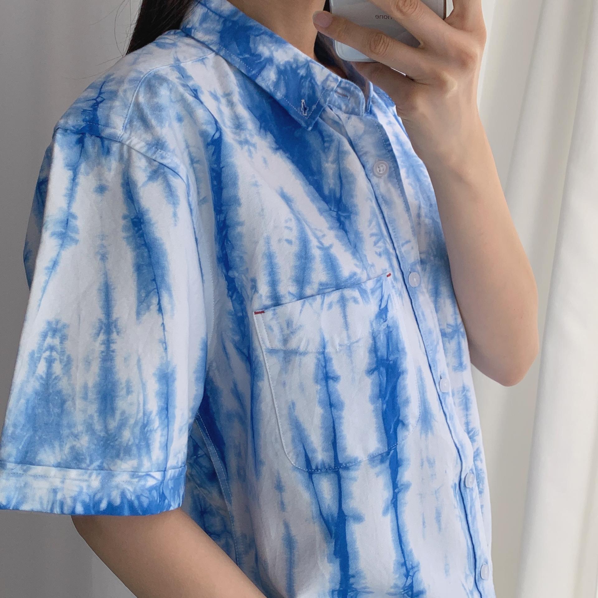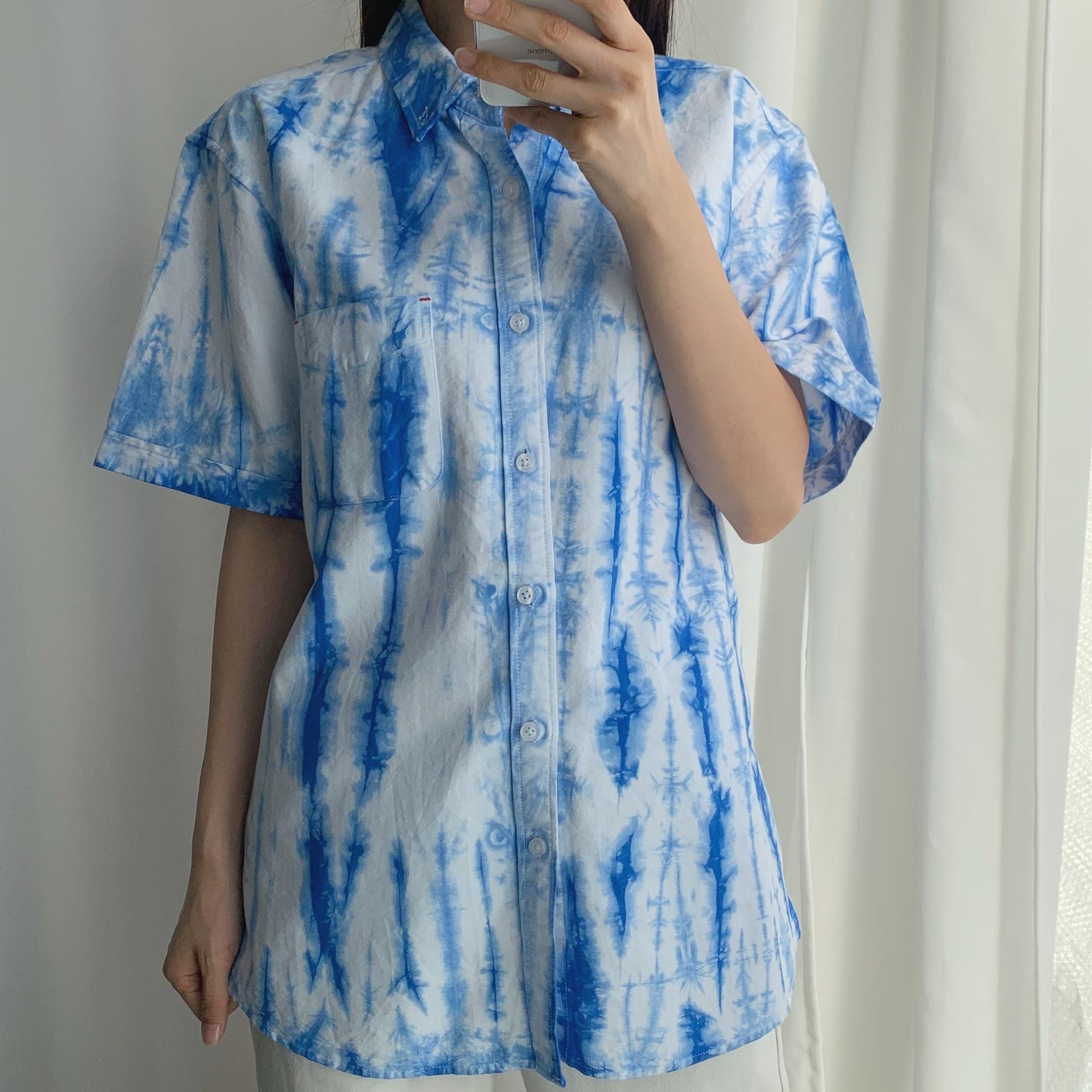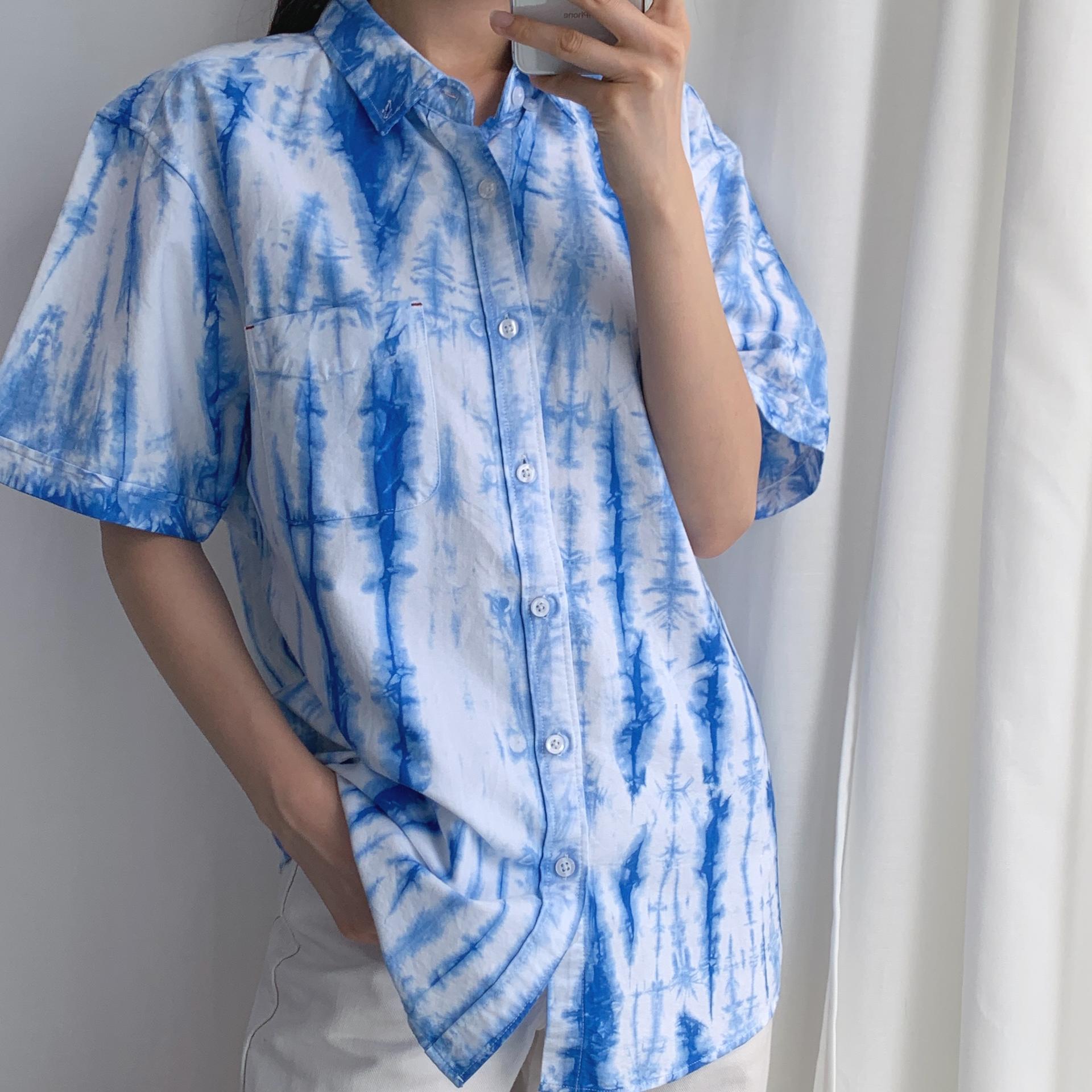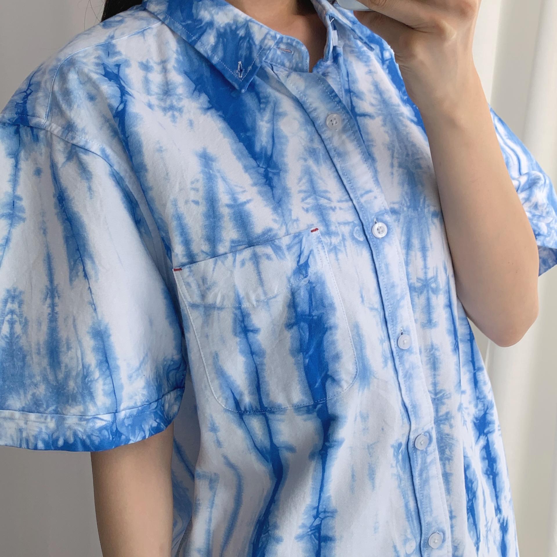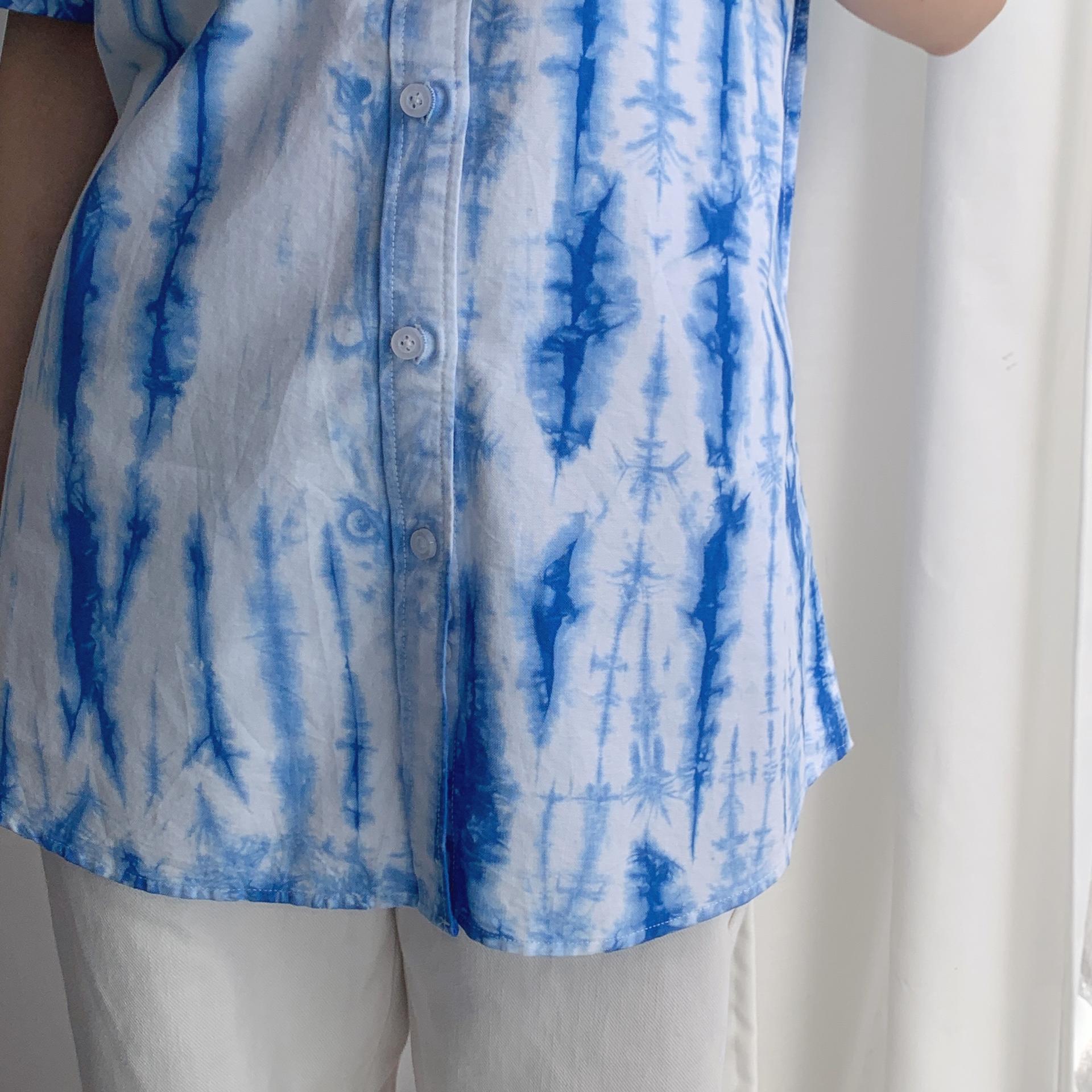 청량한 블루 타이다이 색감이 매력적인 코튼 100% 셔츠 아이템입니다.