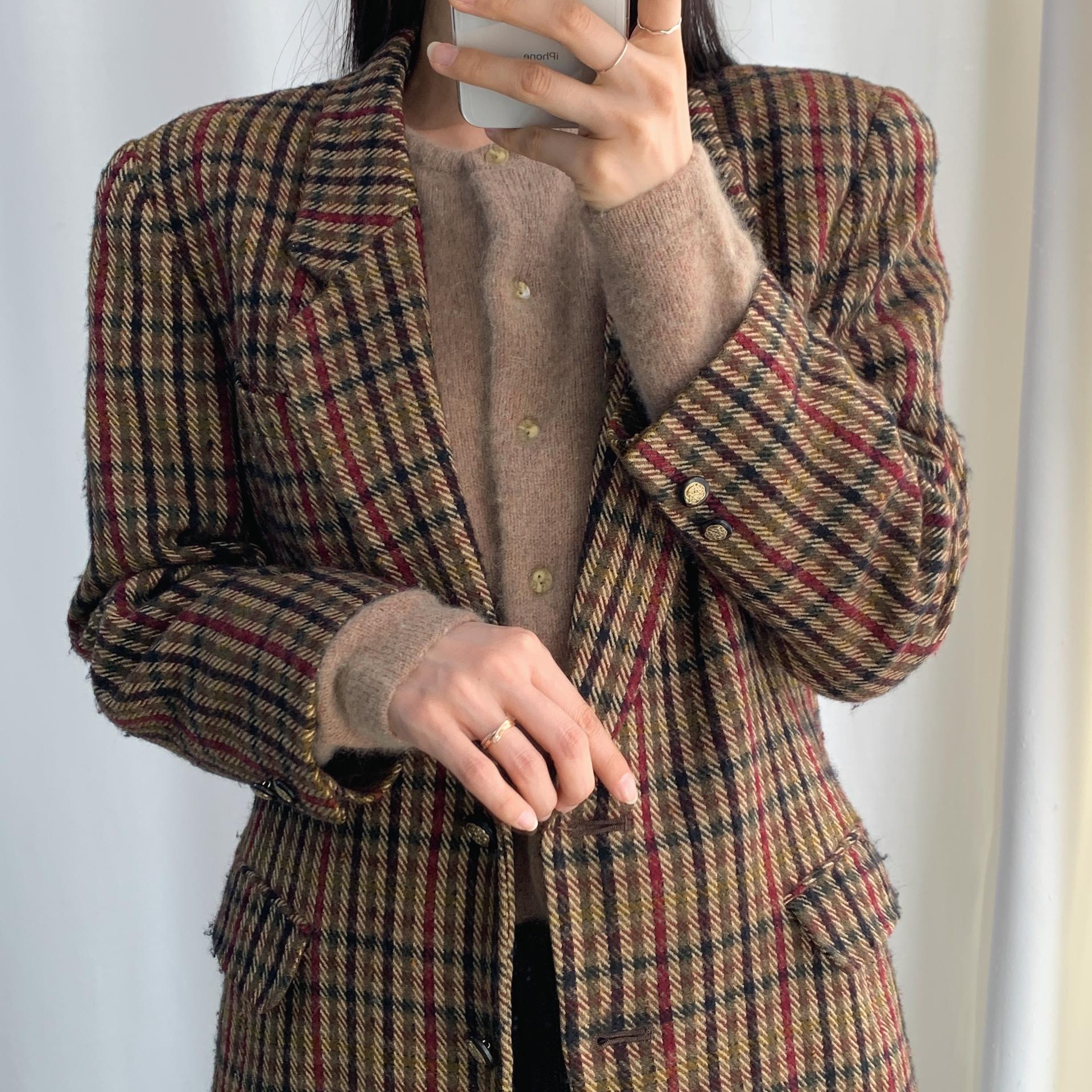 레트로한 무드의 색감과 가벼운 무게감이 특징인 울 체크 자켓입니다.
