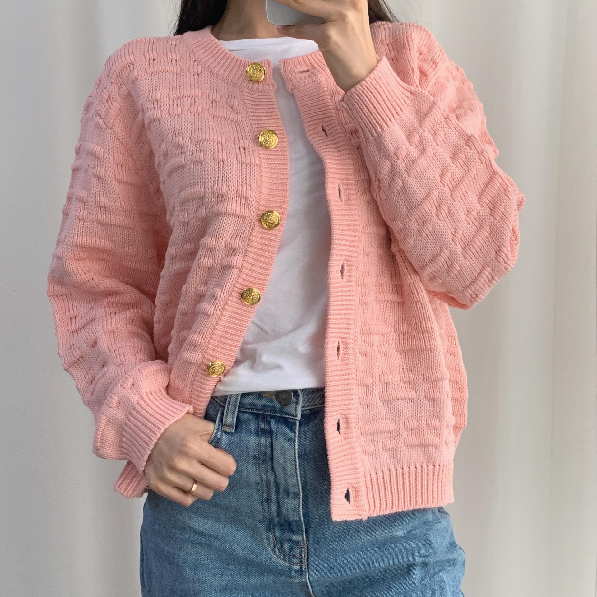 달콤하고 사랑스러운 딸기 우유 컬러의 가디건 제품입니다. :)