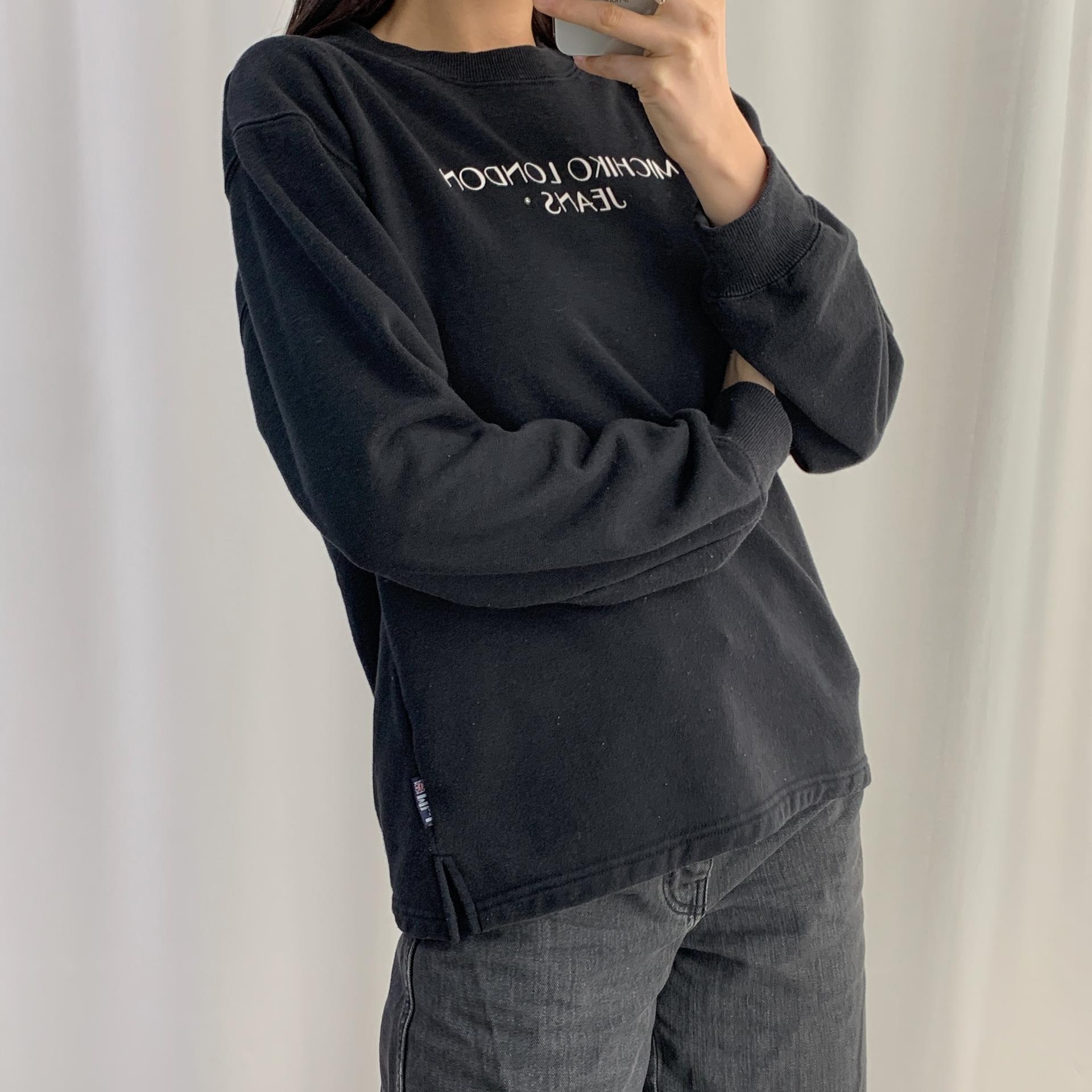 폴리 코튼 혼방 소재로 편안하게 즐길 수 있는 미치코 런던의 스웨트셔츠 제품입니다.