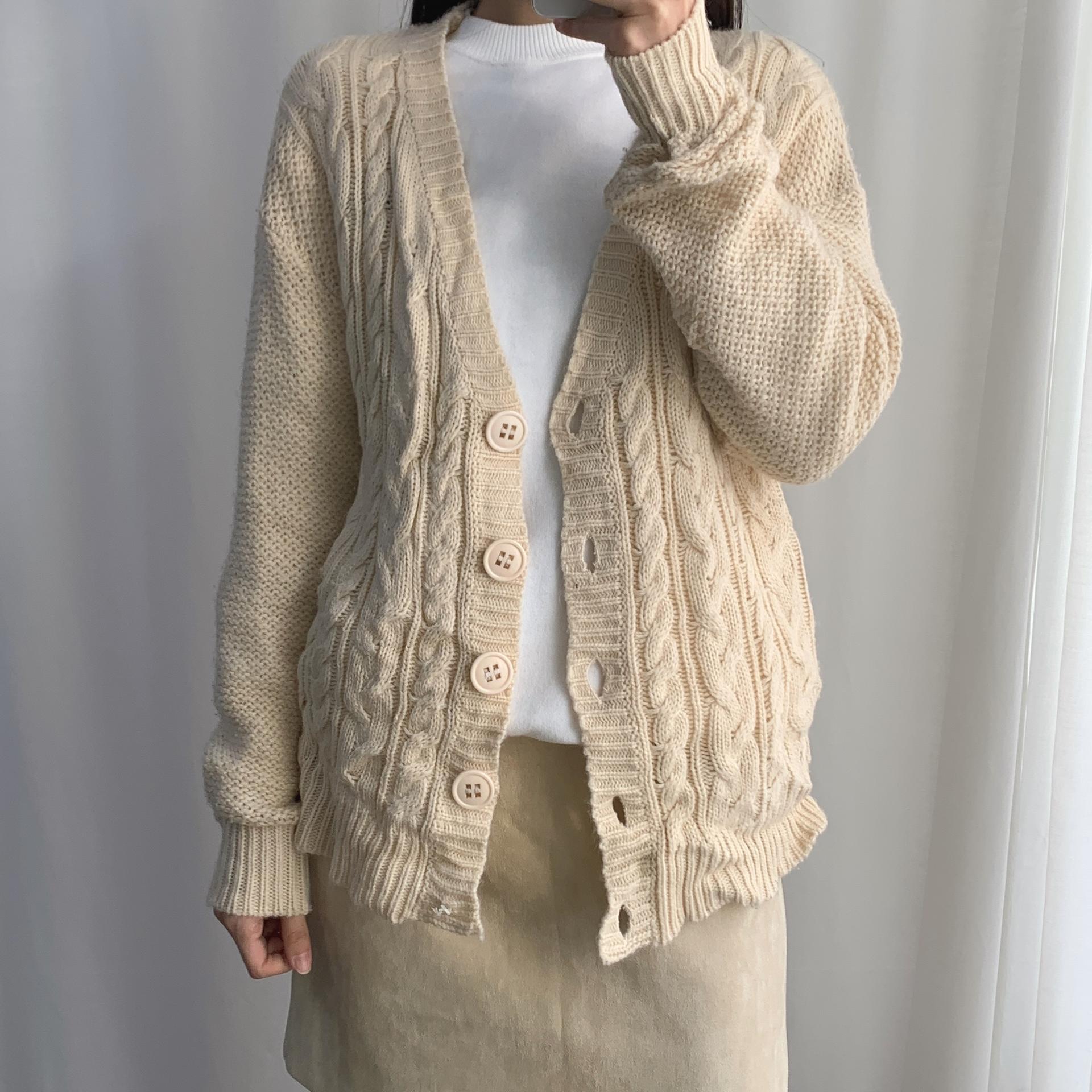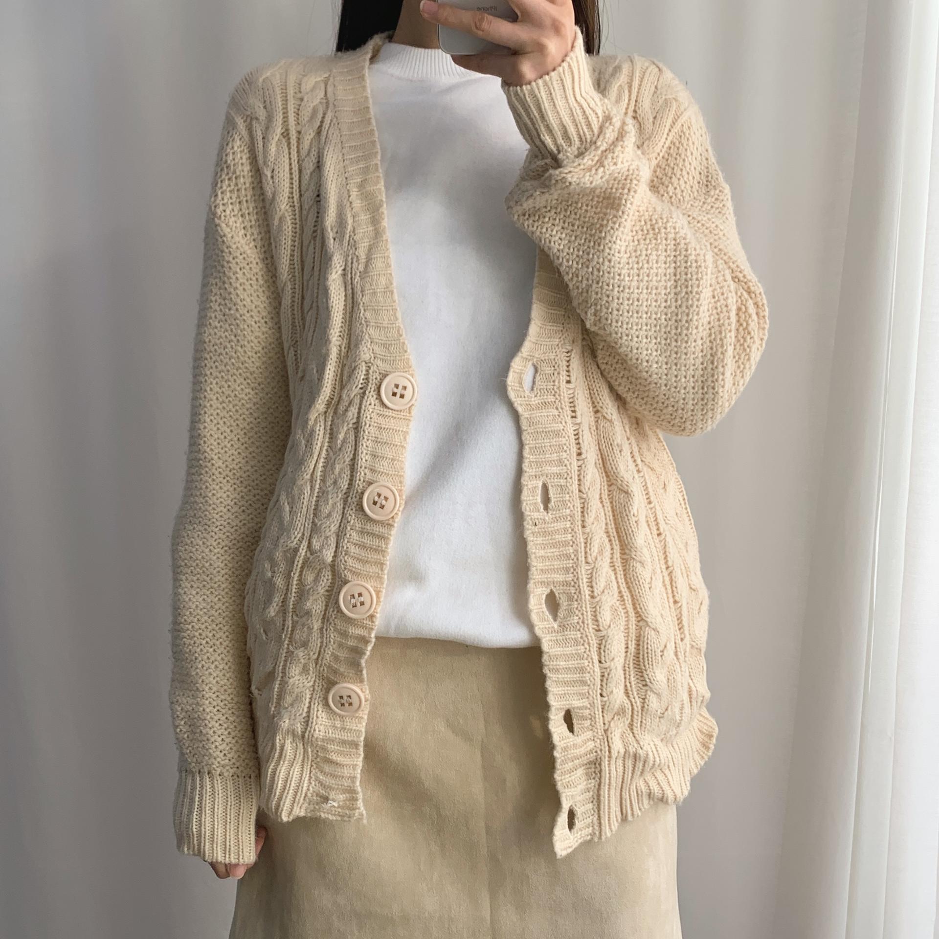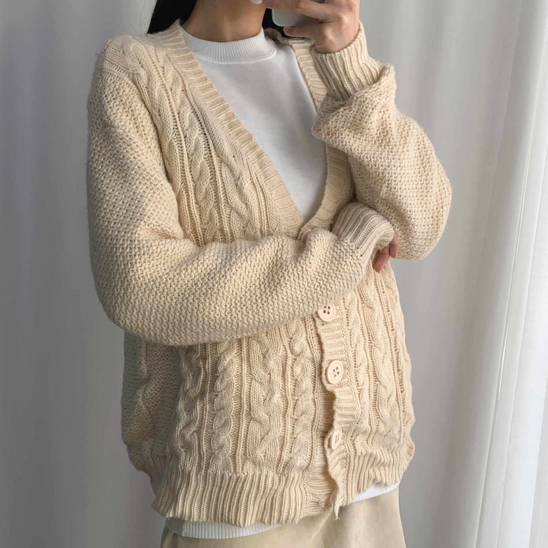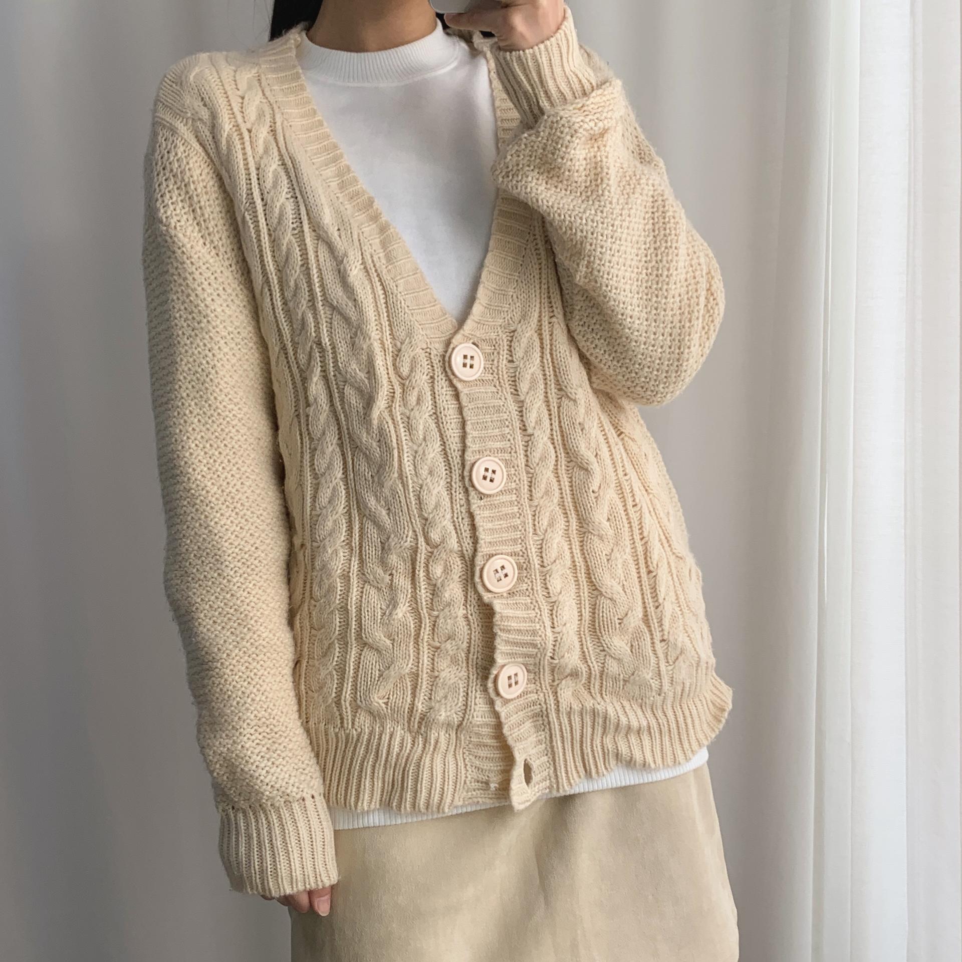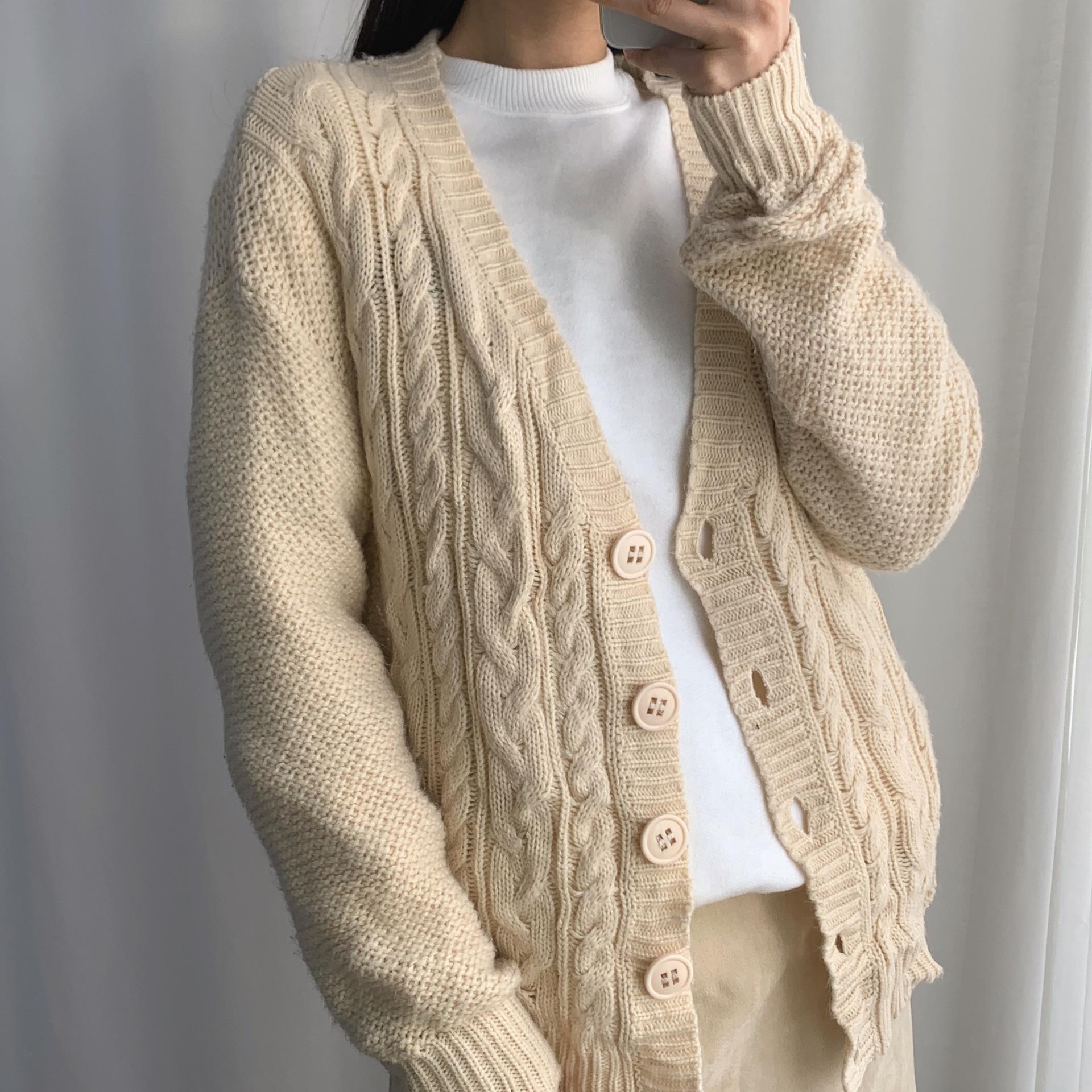 플랫 한 크림 컬러의 가디건 아이템입니다 :)