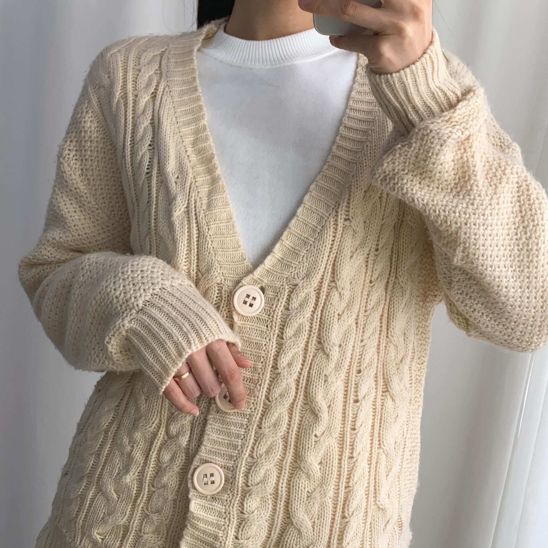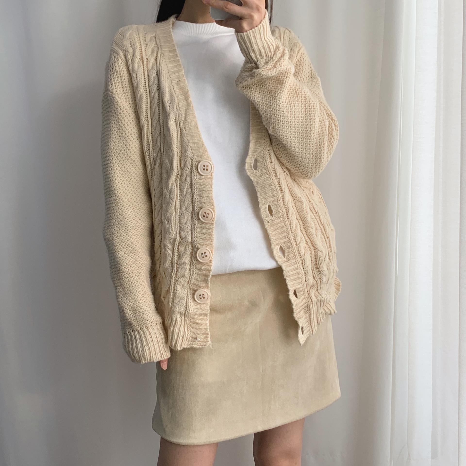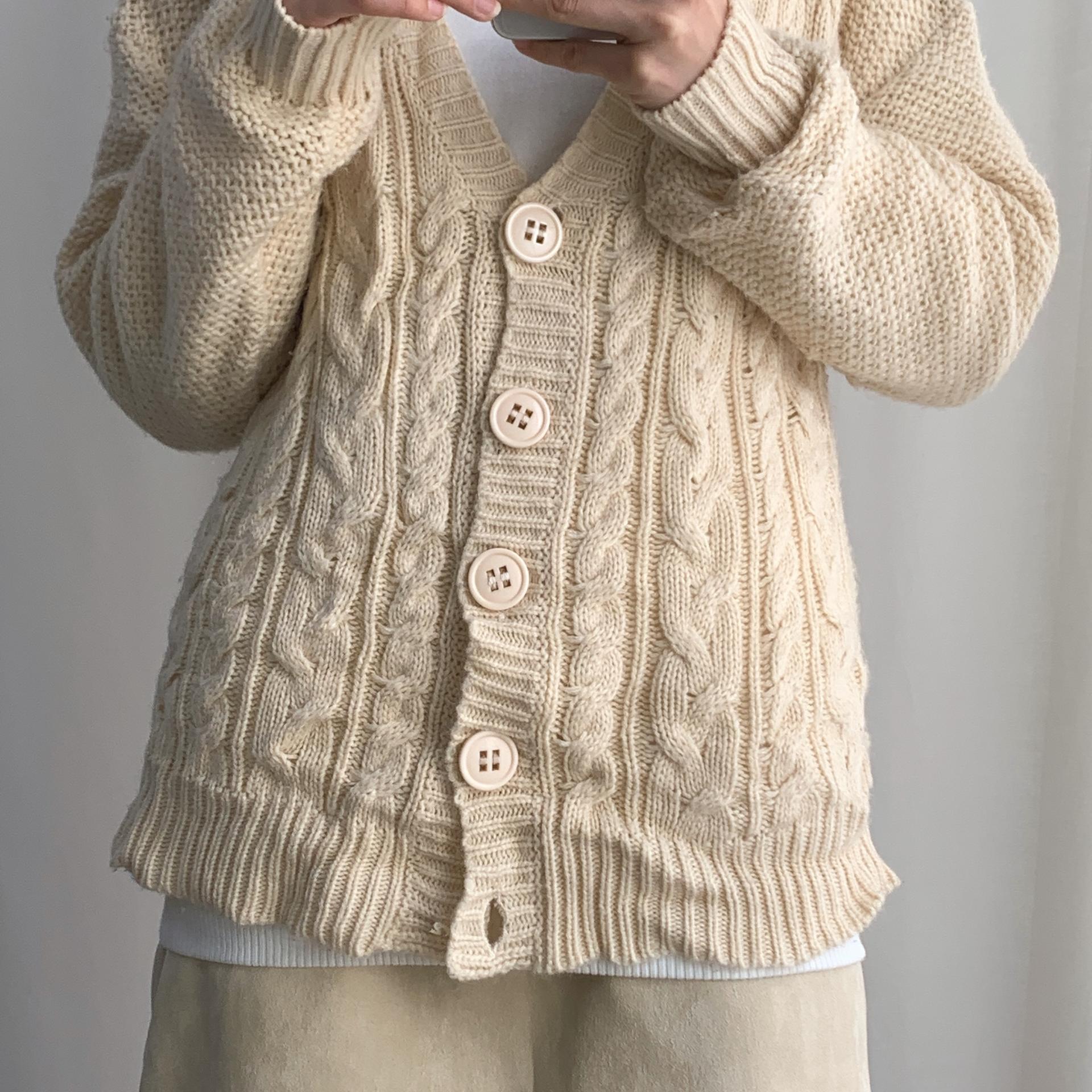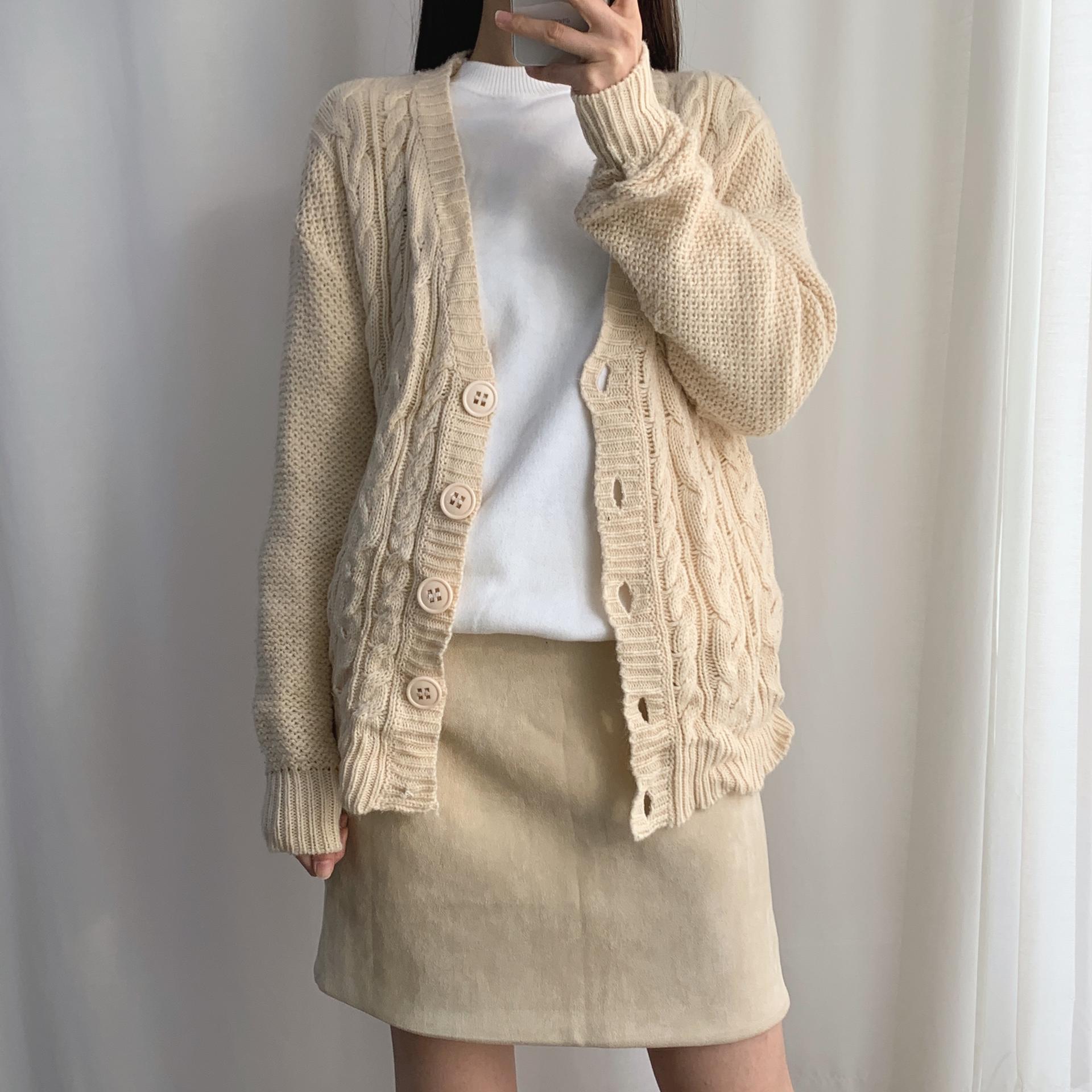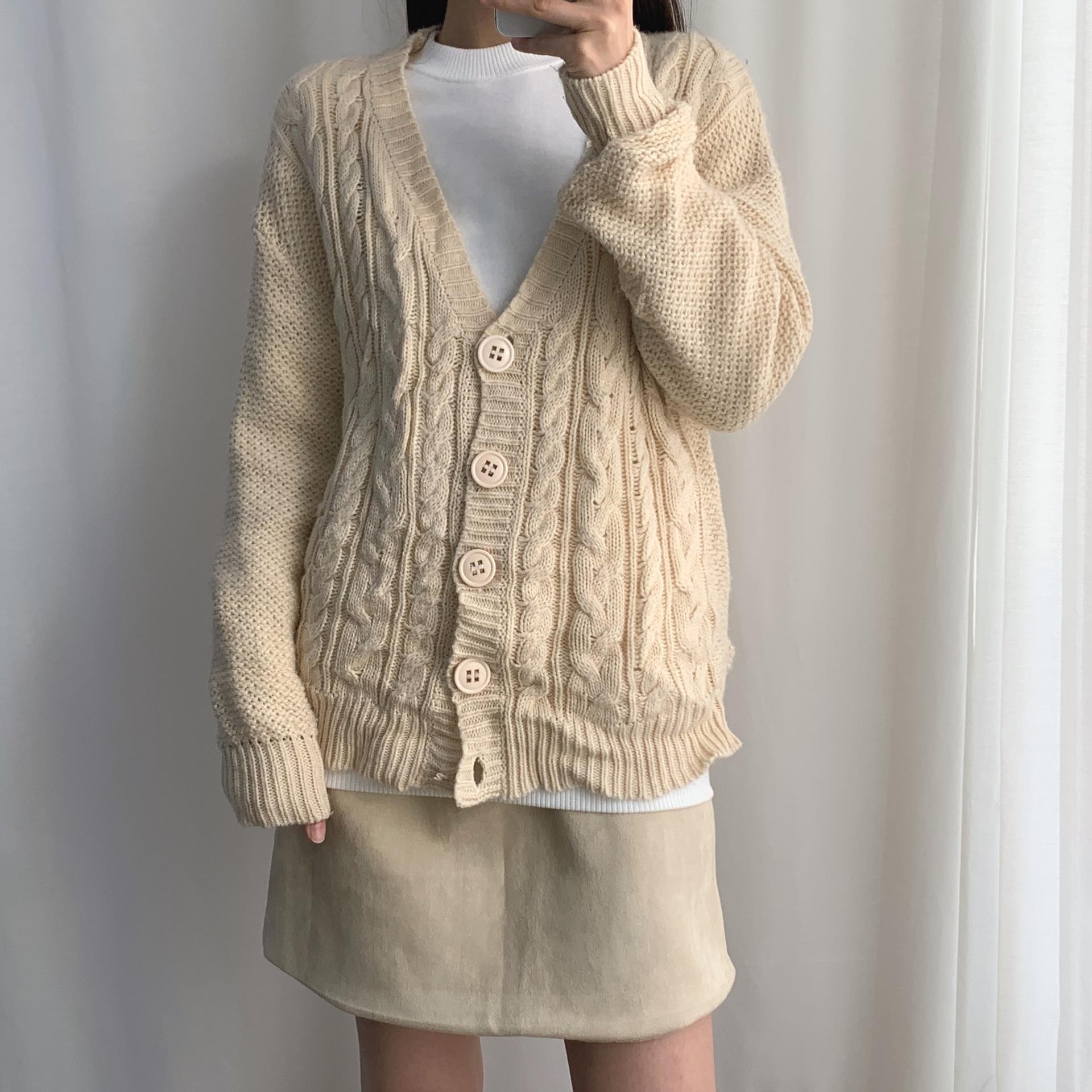 플랫 한 크림 컬러의 가디건 아이템입니다 :)