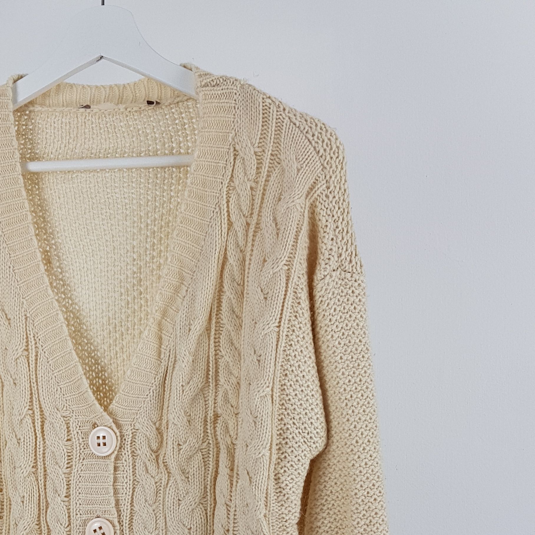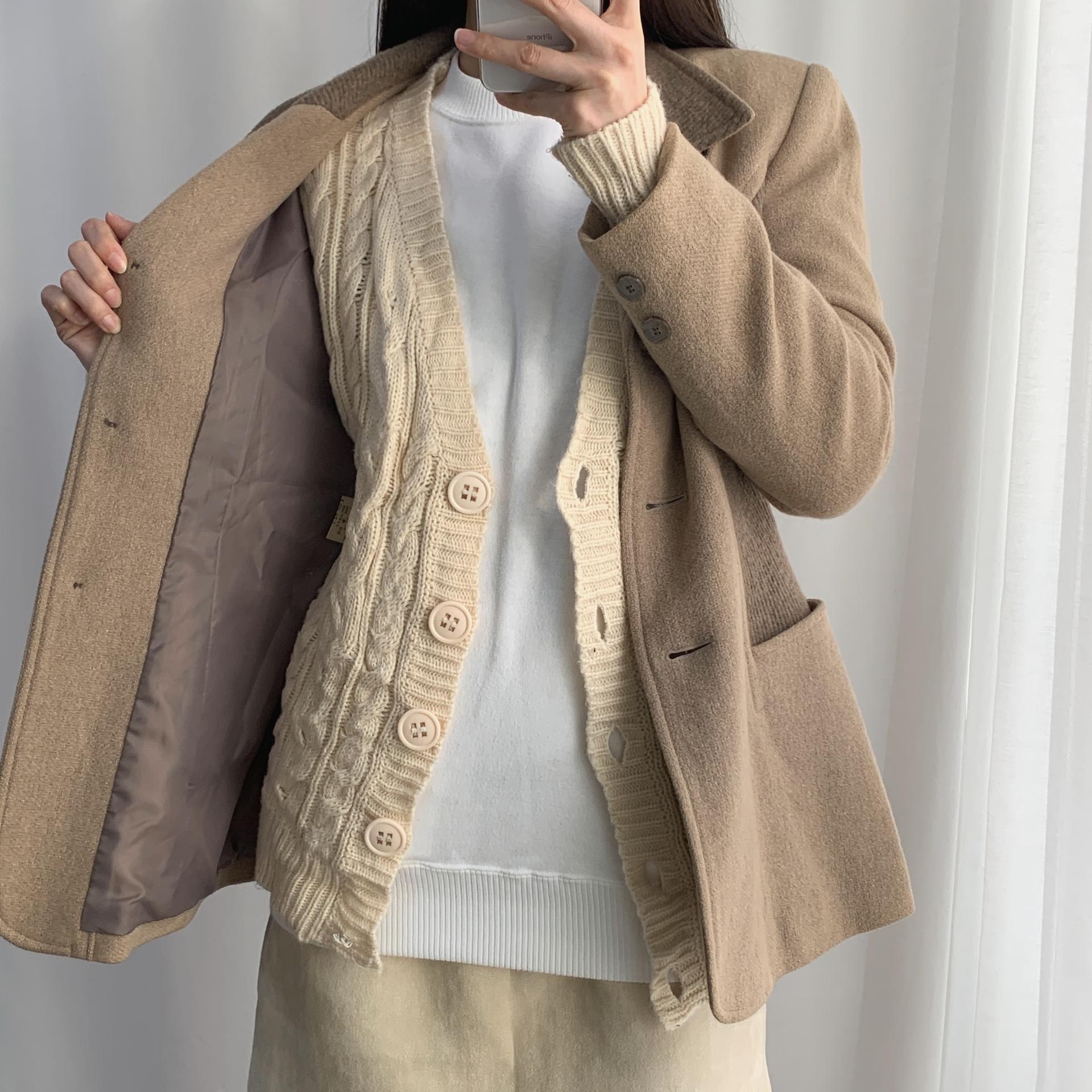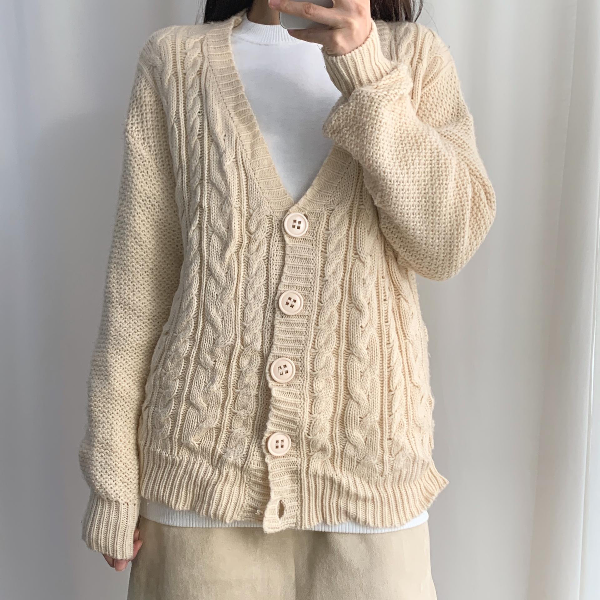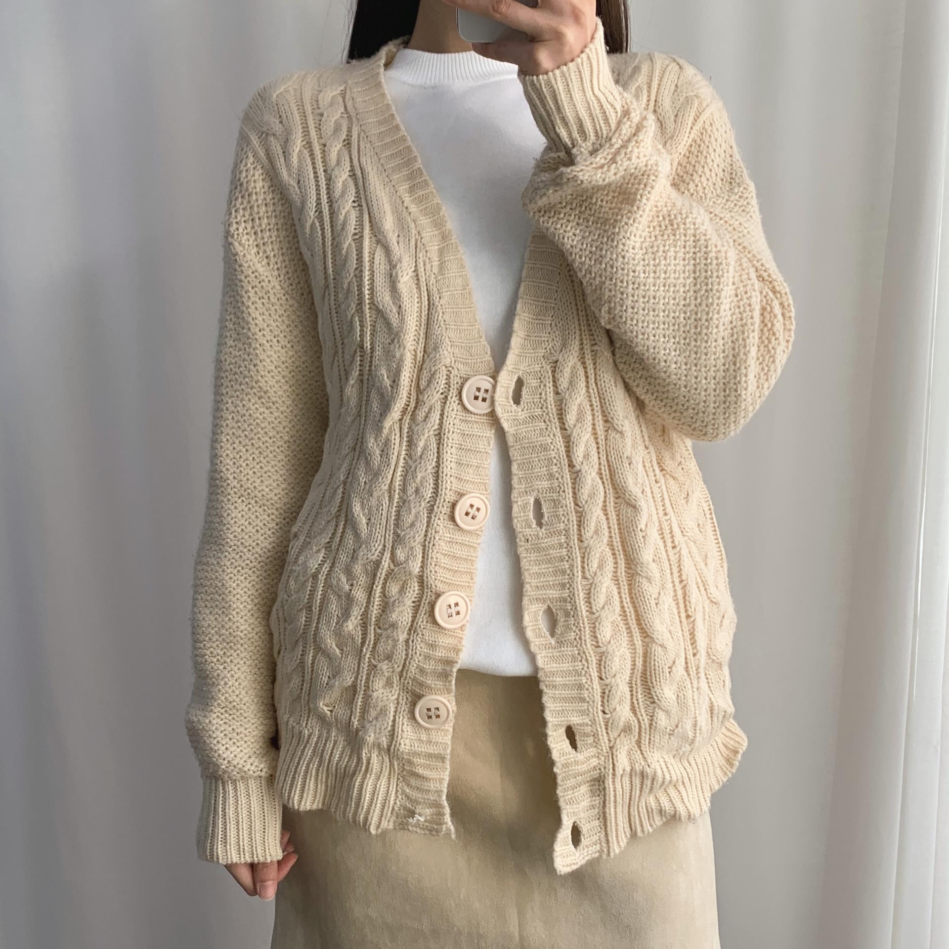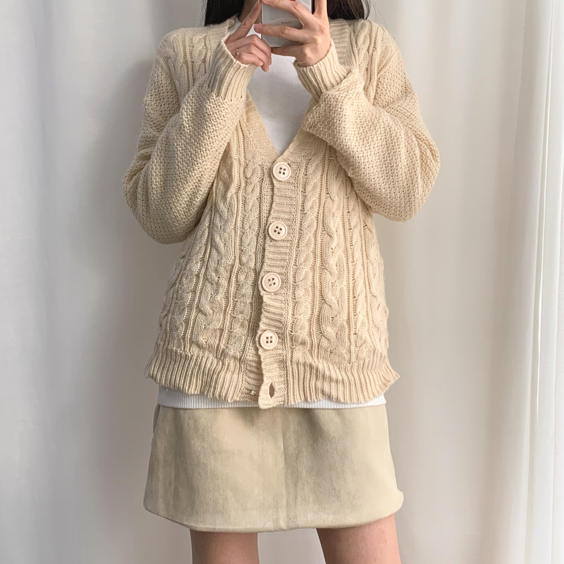 플랫 한 크림 컬러의 가디건 아이템입니다 :)