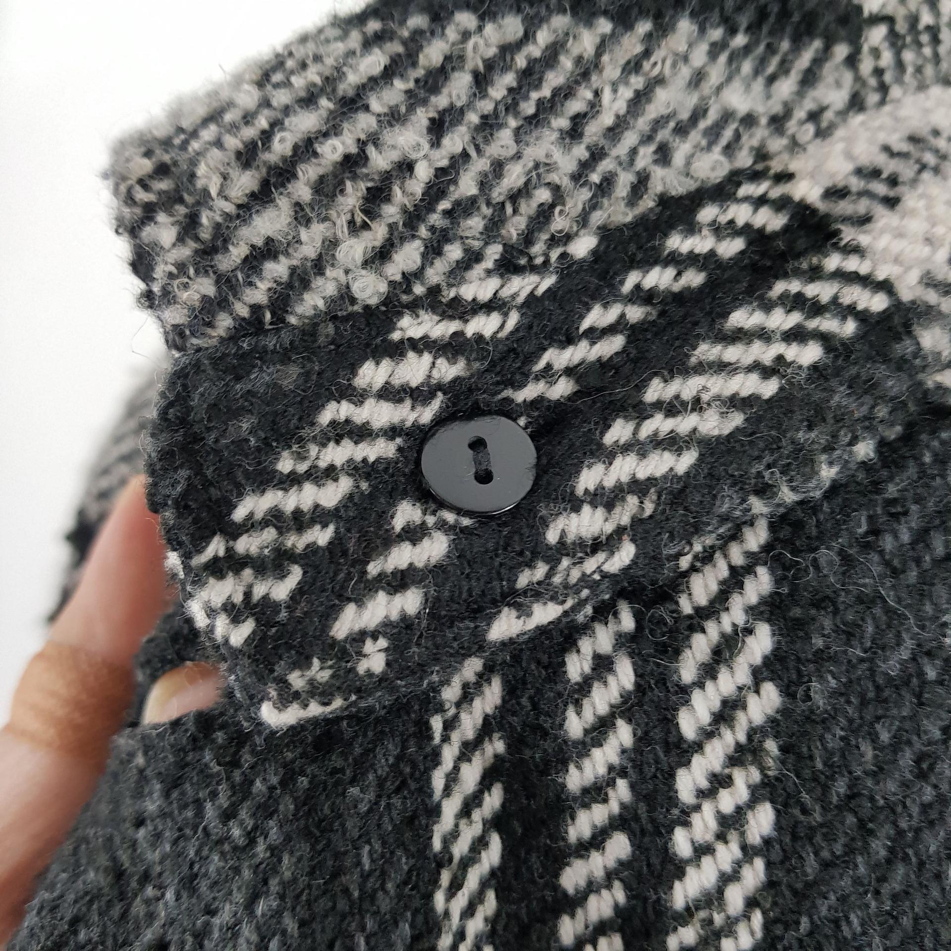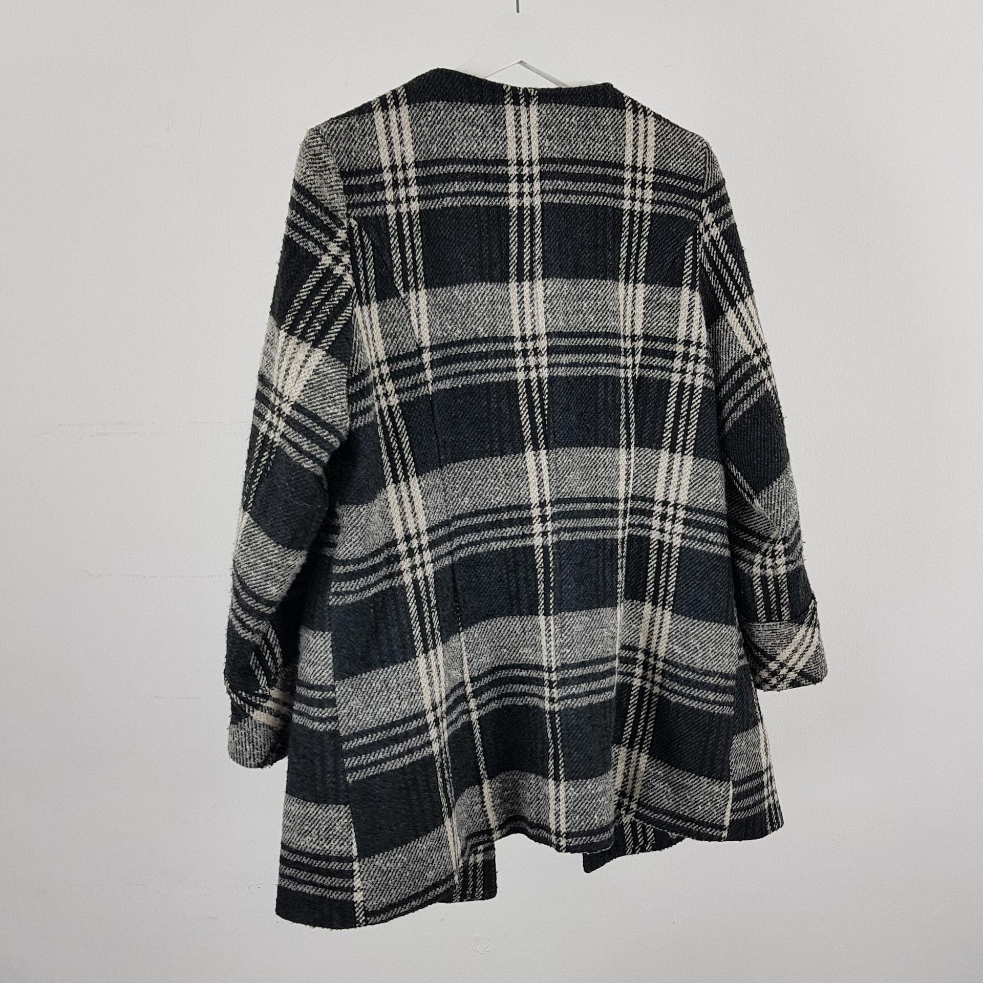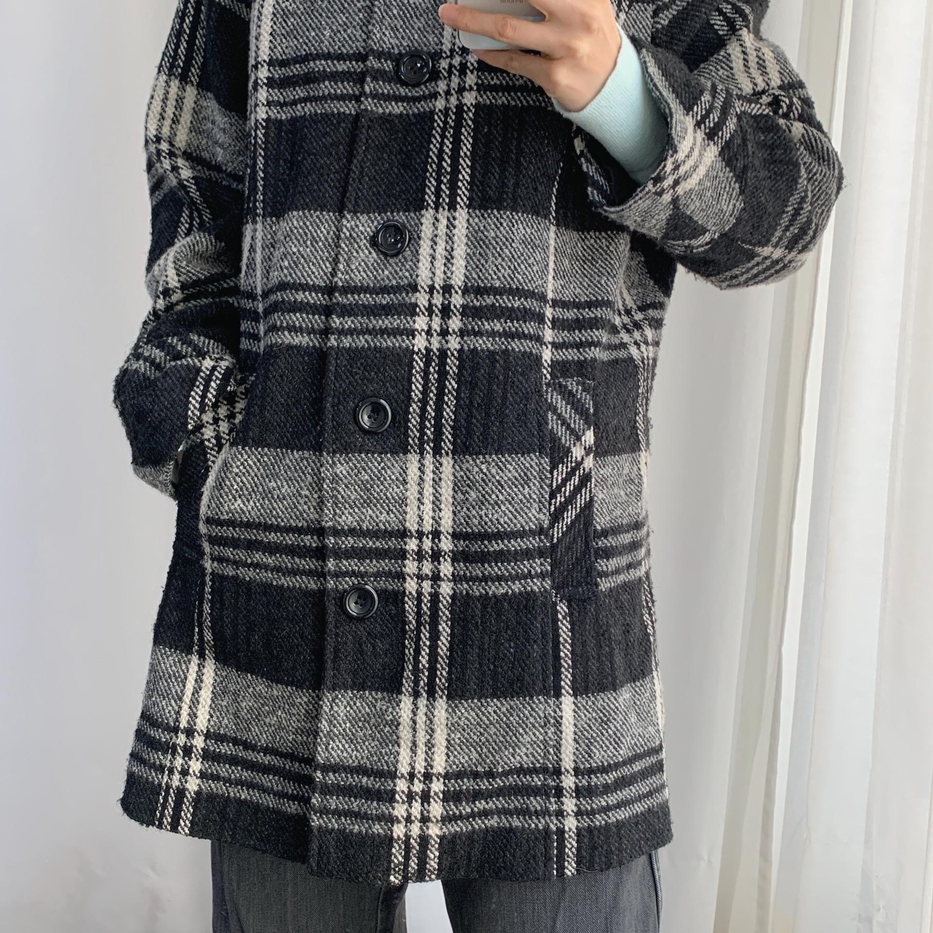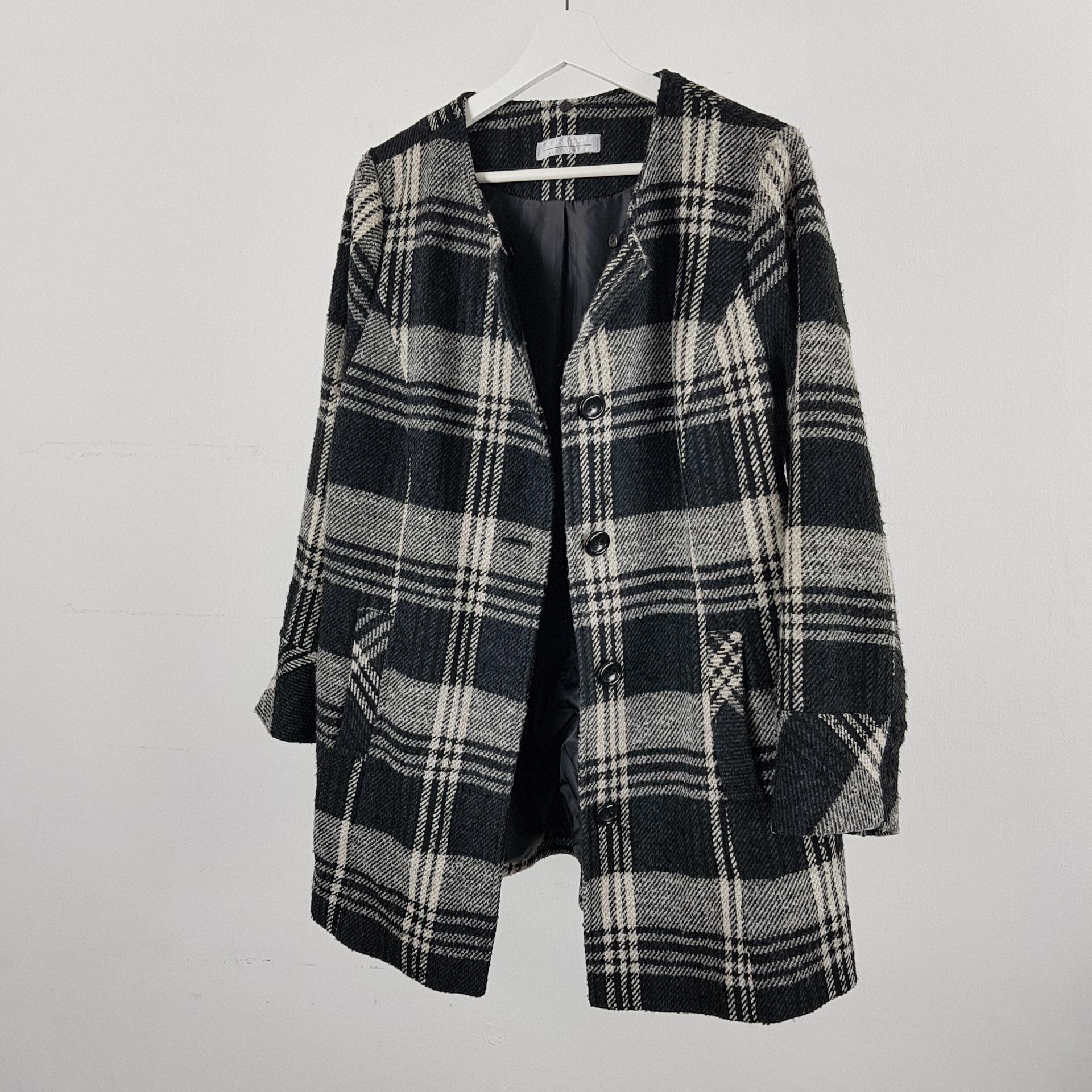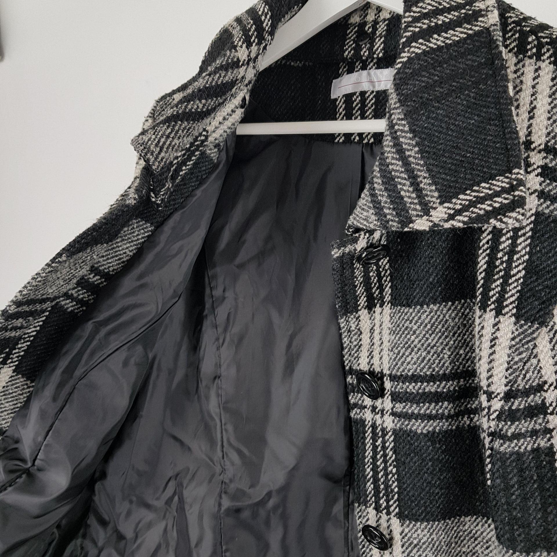 빈티지한 무드의 체크 패턴과 블랙 바디 컬러가 인상적인 CLOTHING의 체크 코트 아이템입니다.