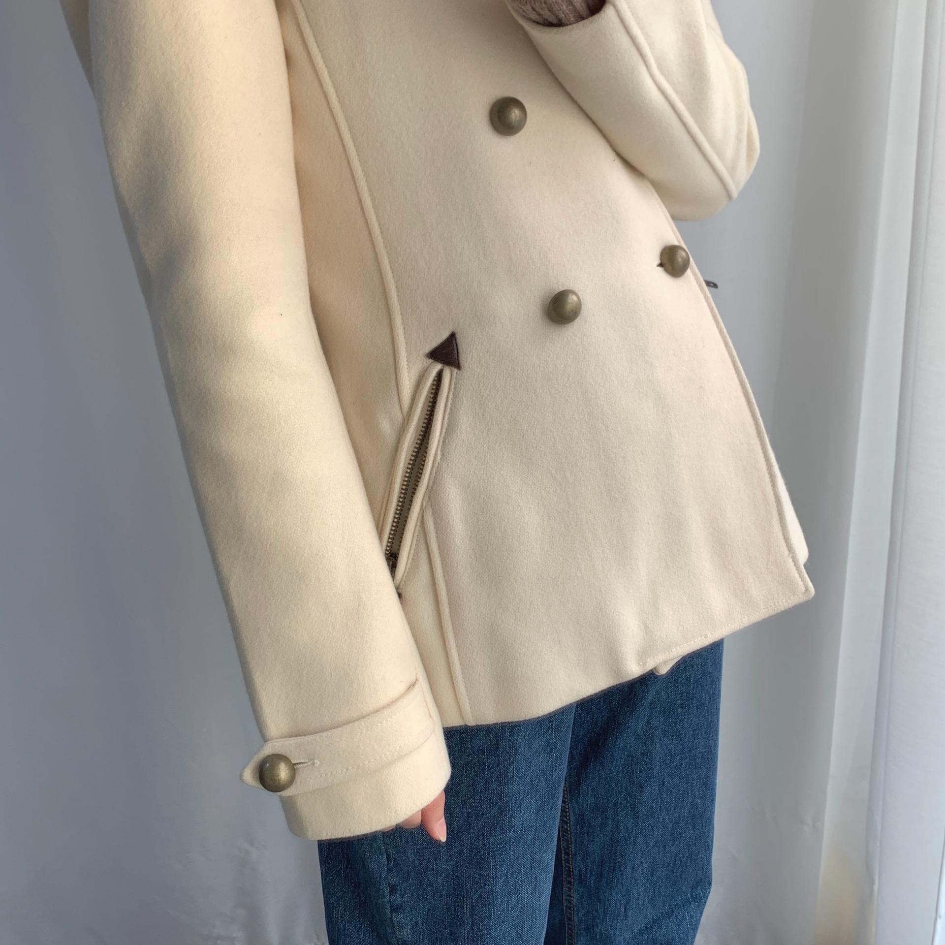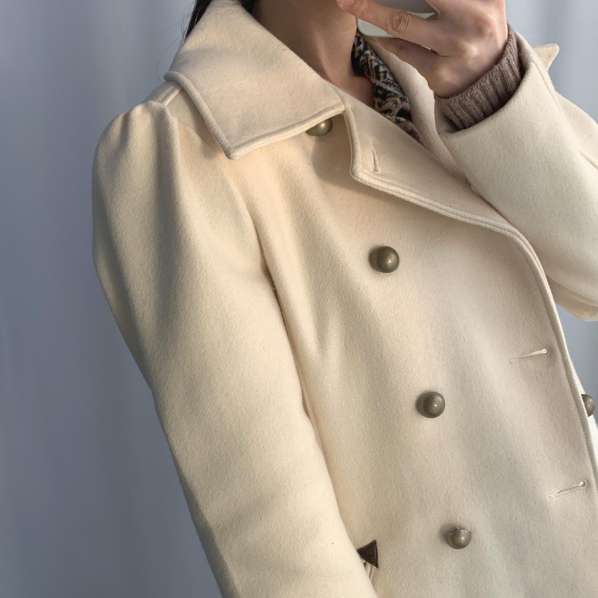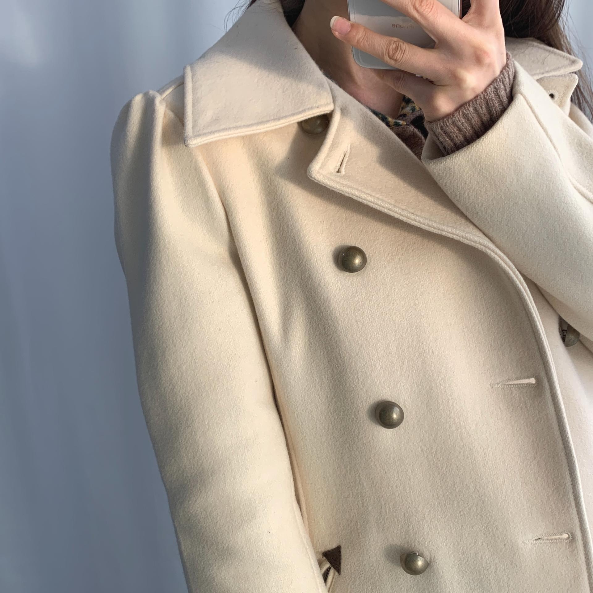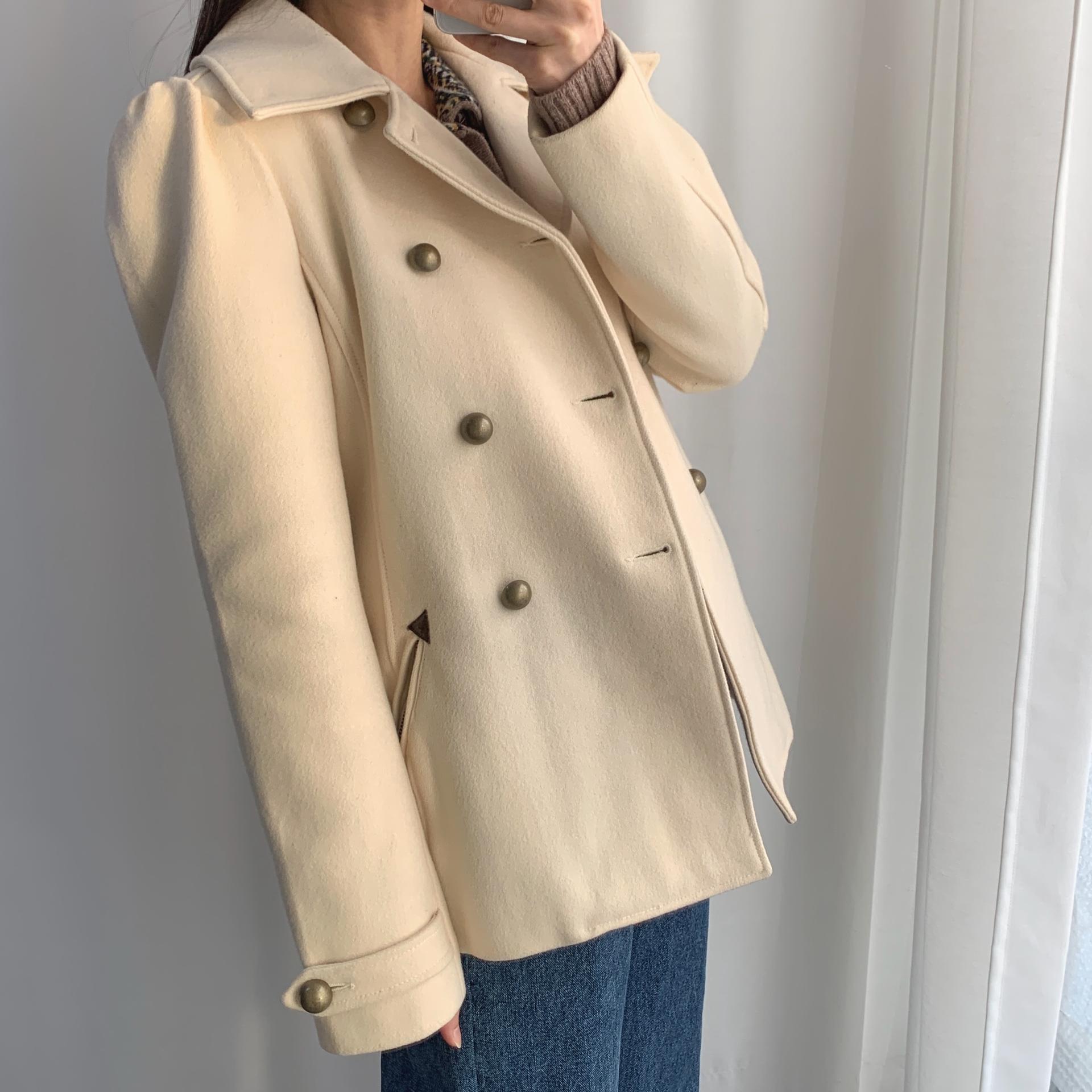 플랫 한 크림 컬러와 독특한 버튼 포인트가 인상적인 리바이스의 울 코트 제품입니다.