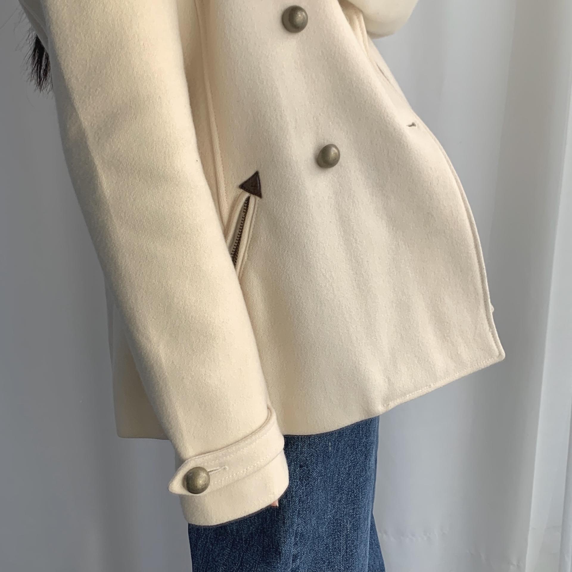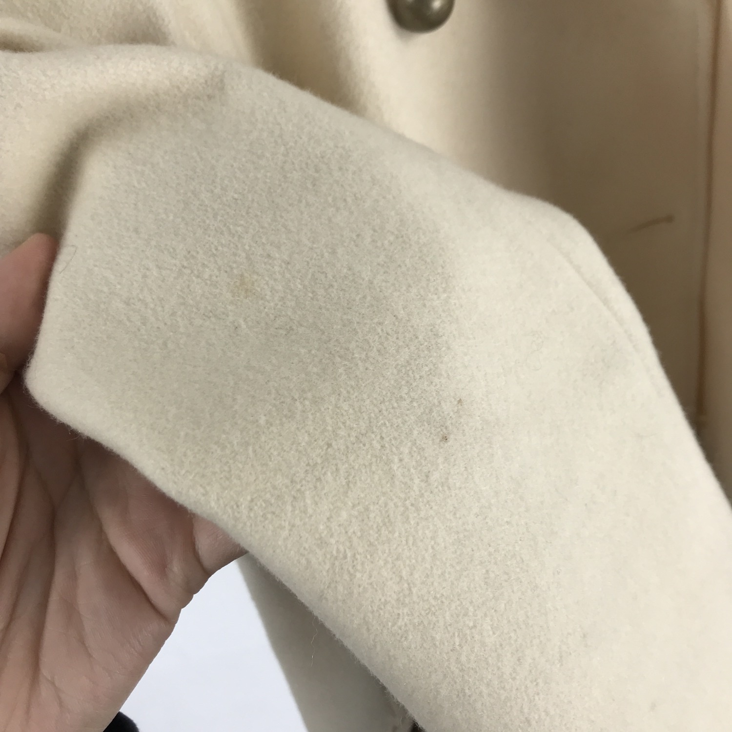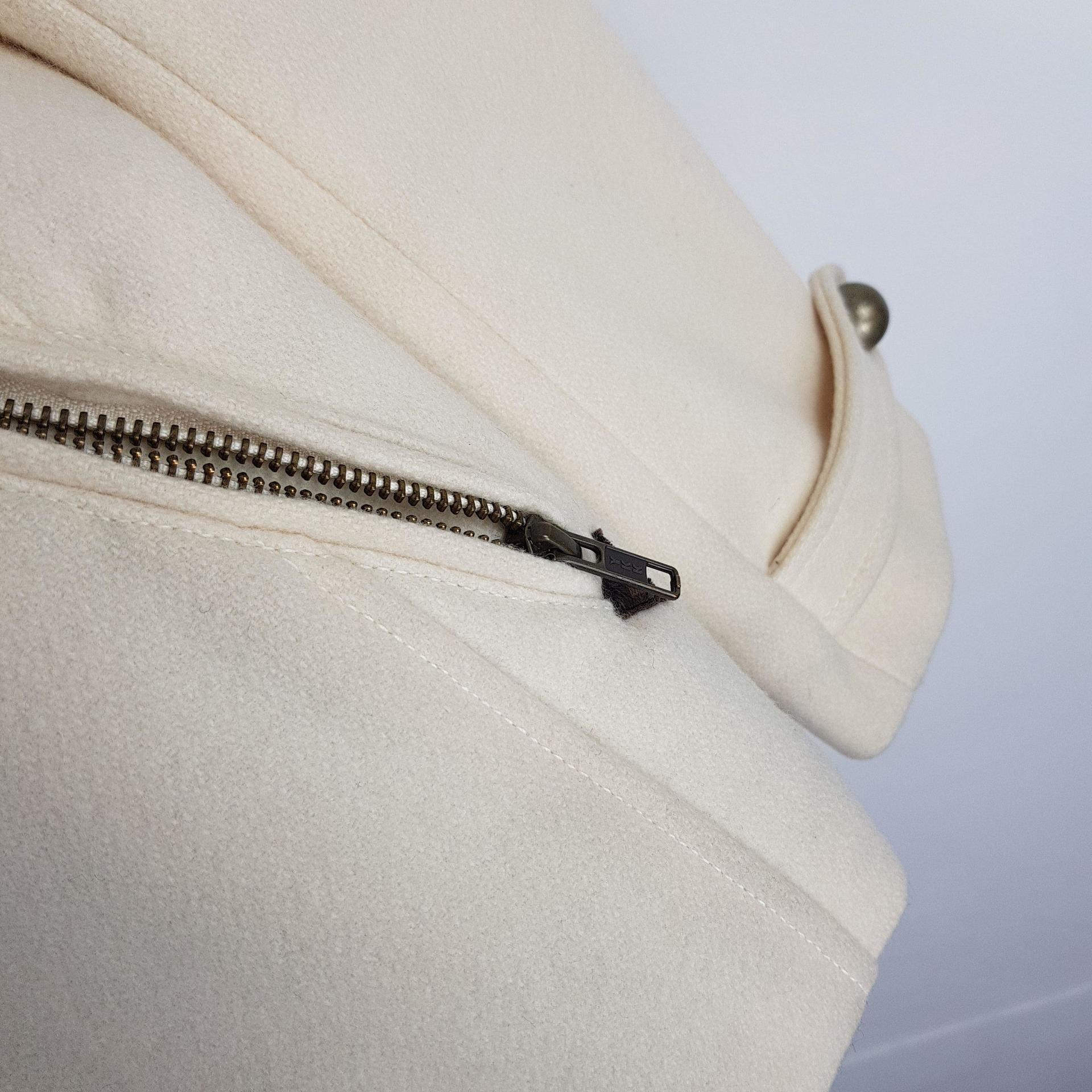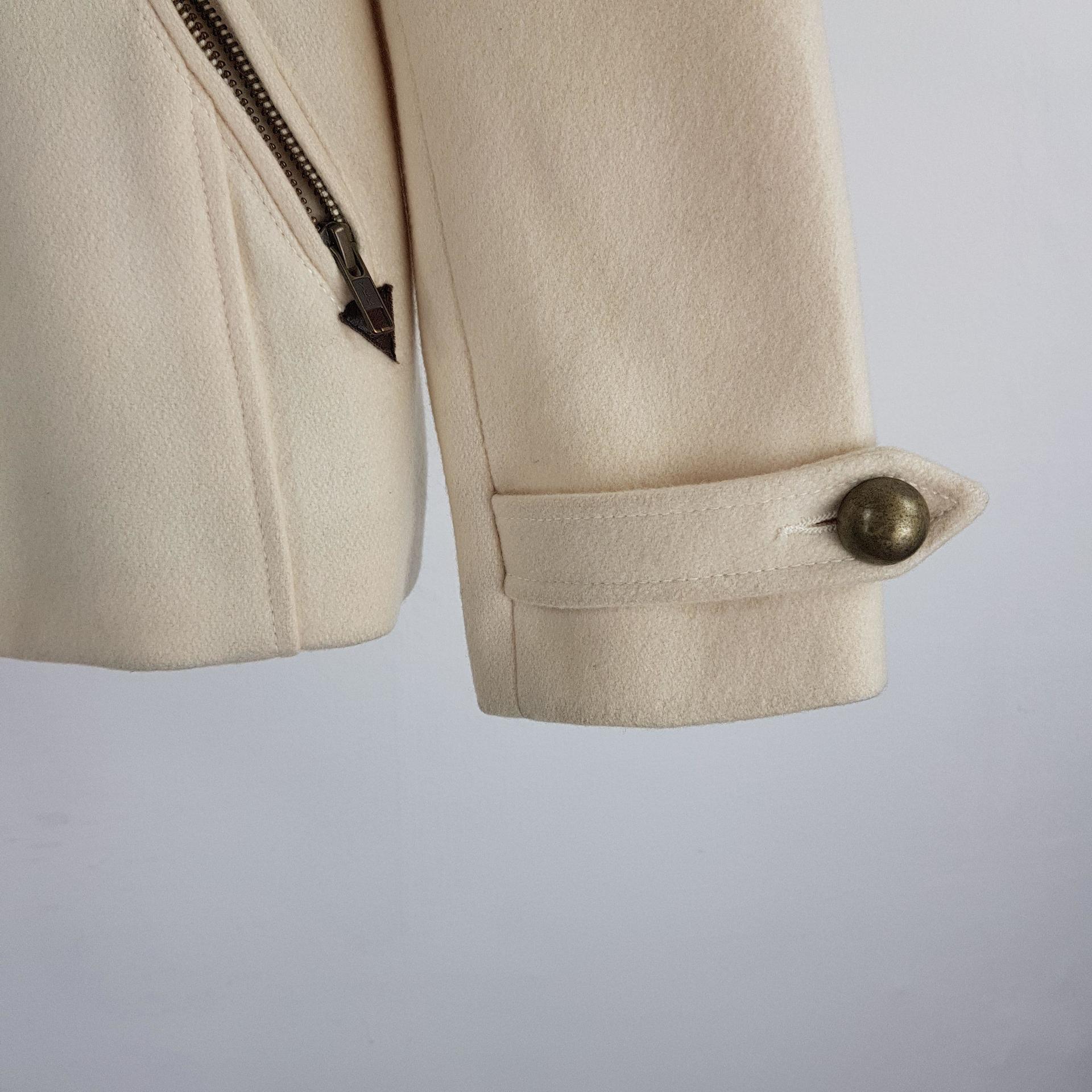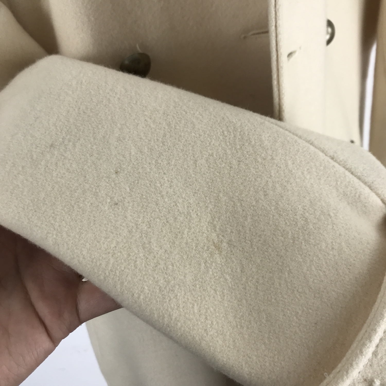 플랫 한 크림 컬러와 독특한 버튼 포인트가 인상적인 리바이스의 울 코트 제품입니다.