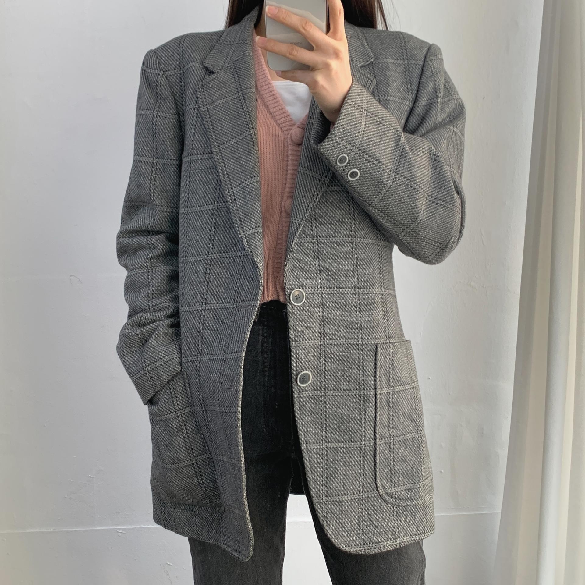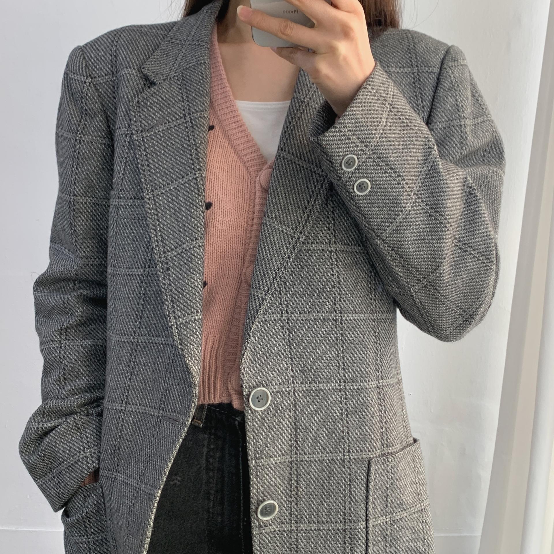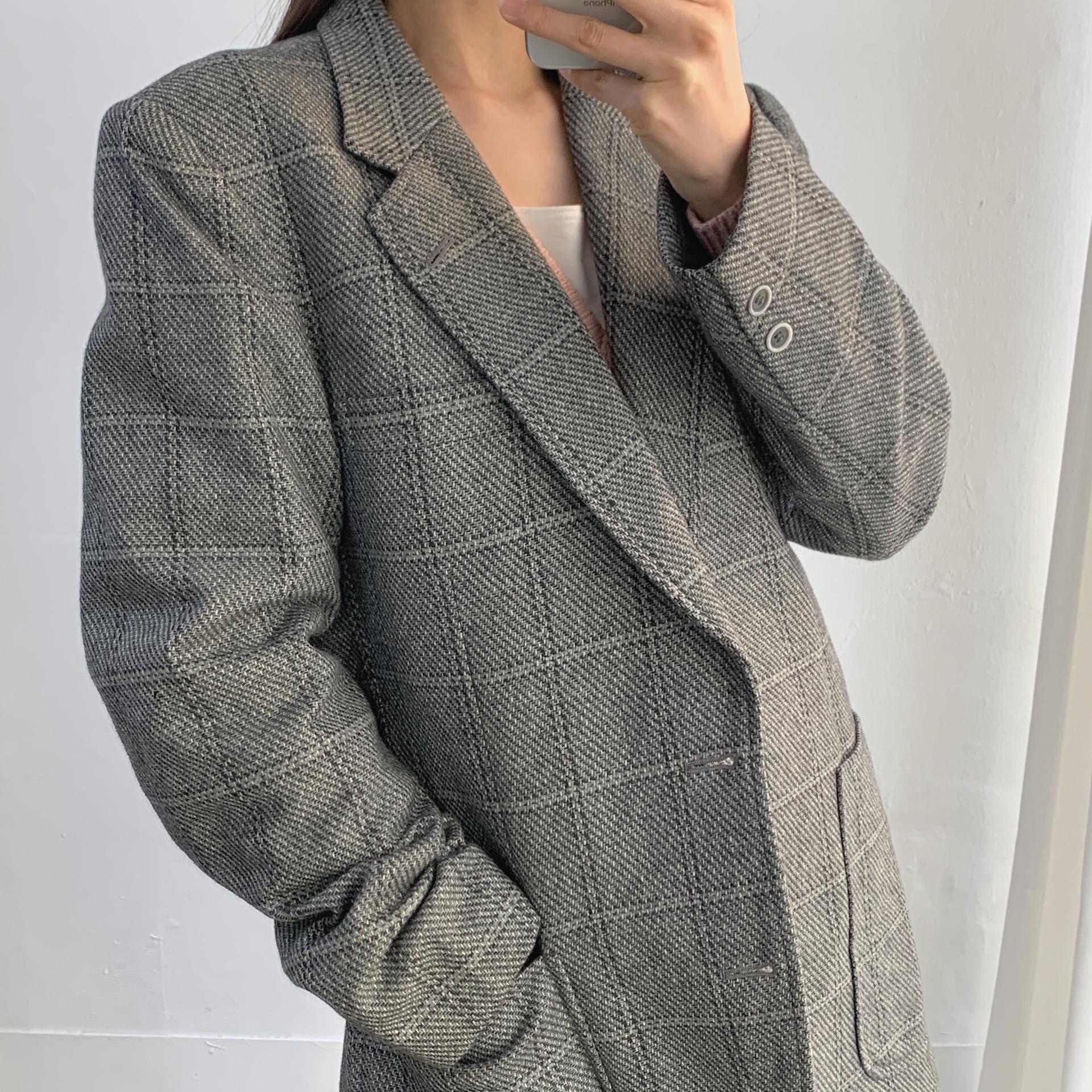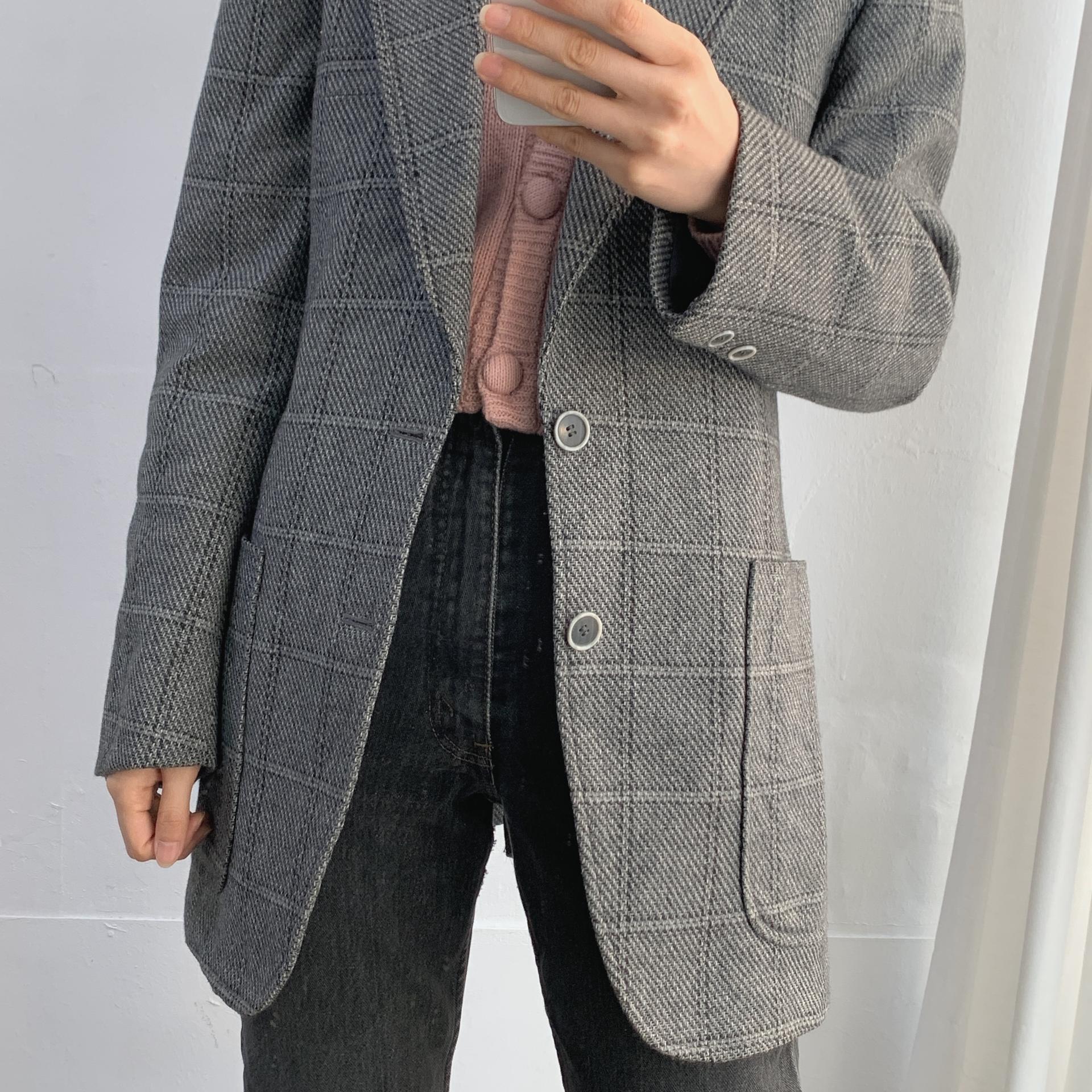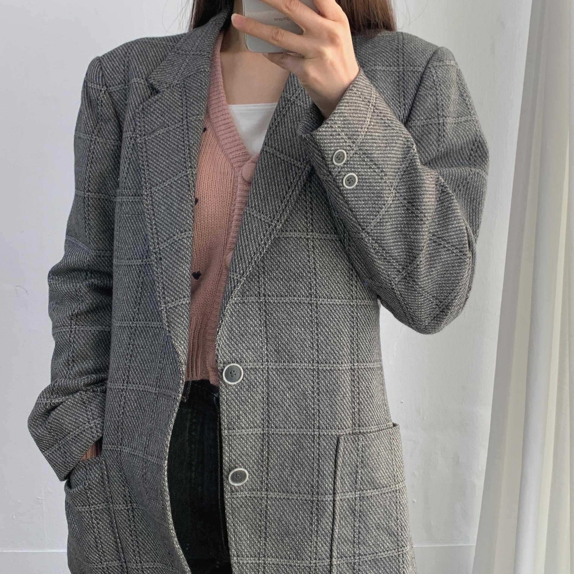 클래식한 체크 패턴과 그레이 컬러가 멋스럽게 어울리며,