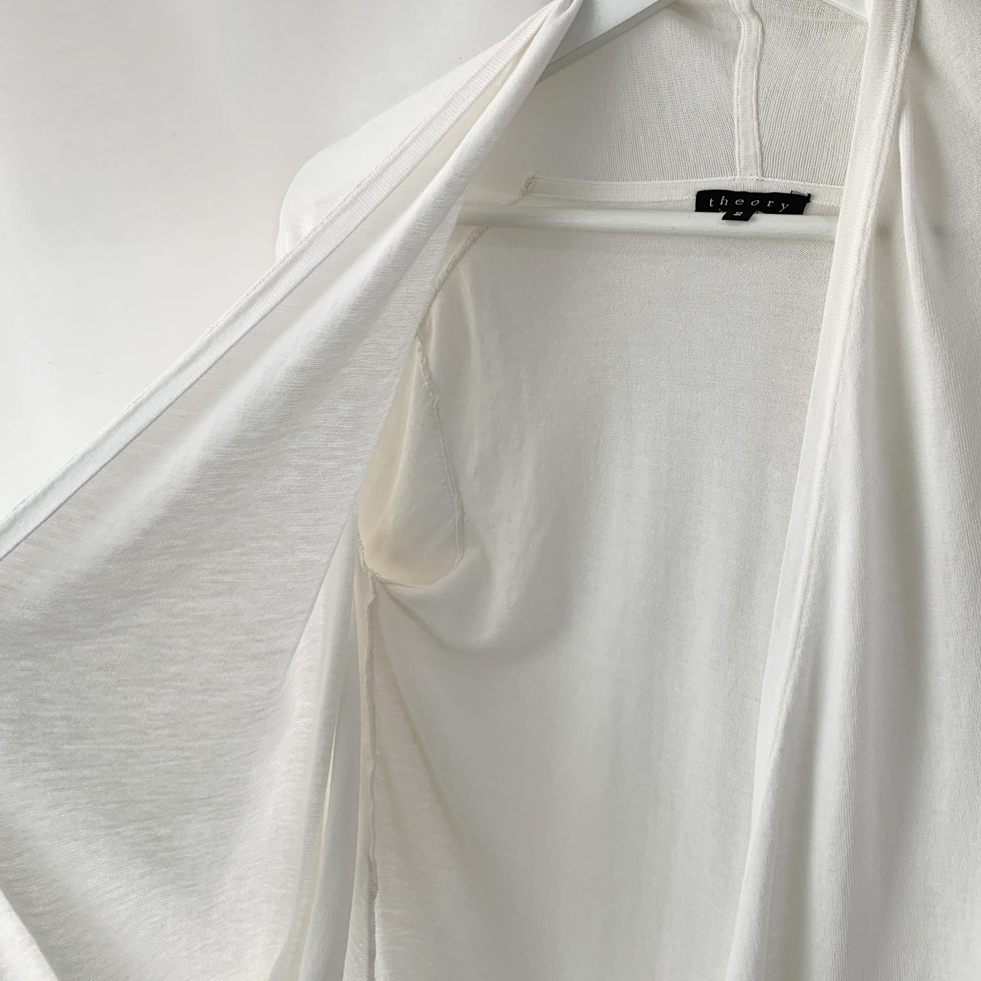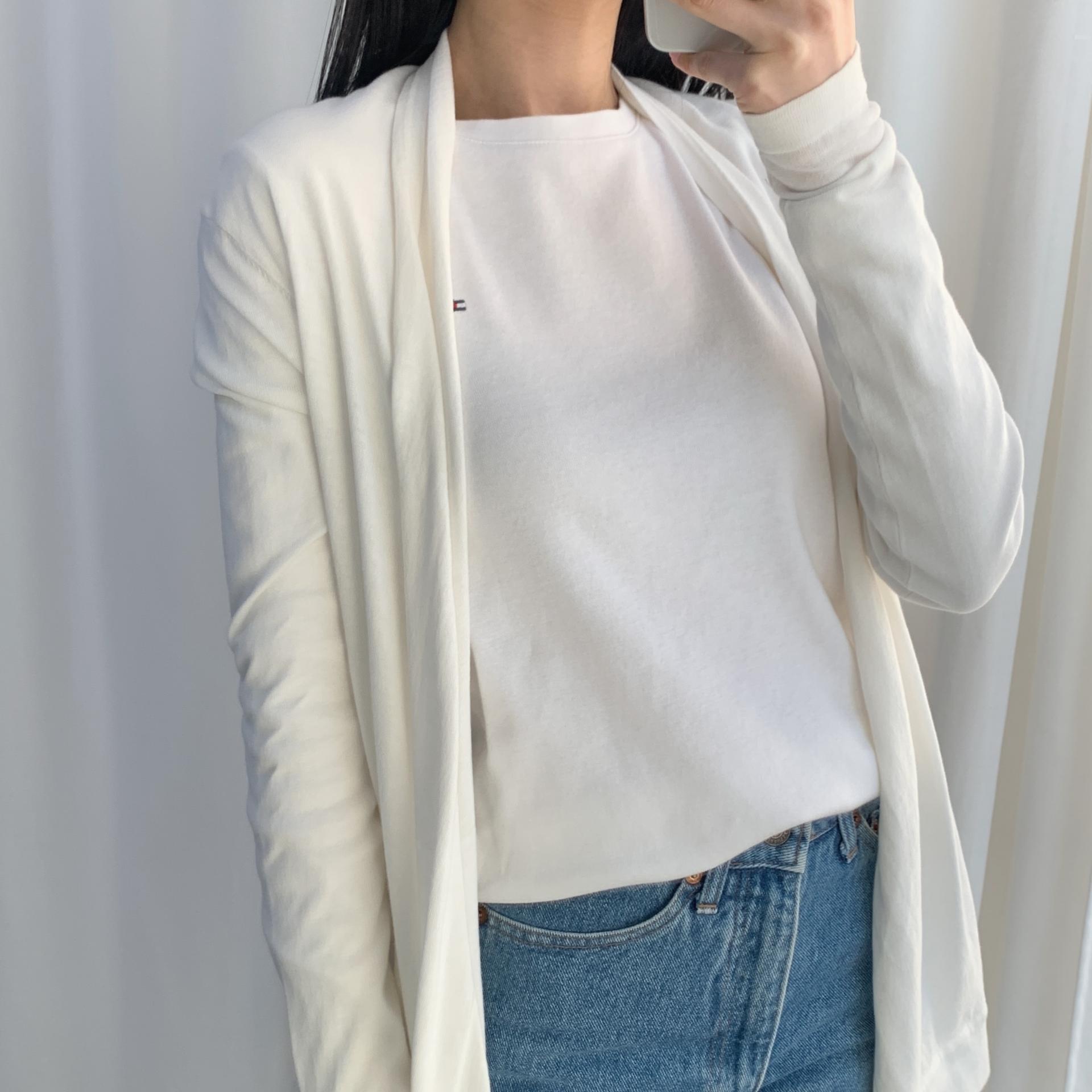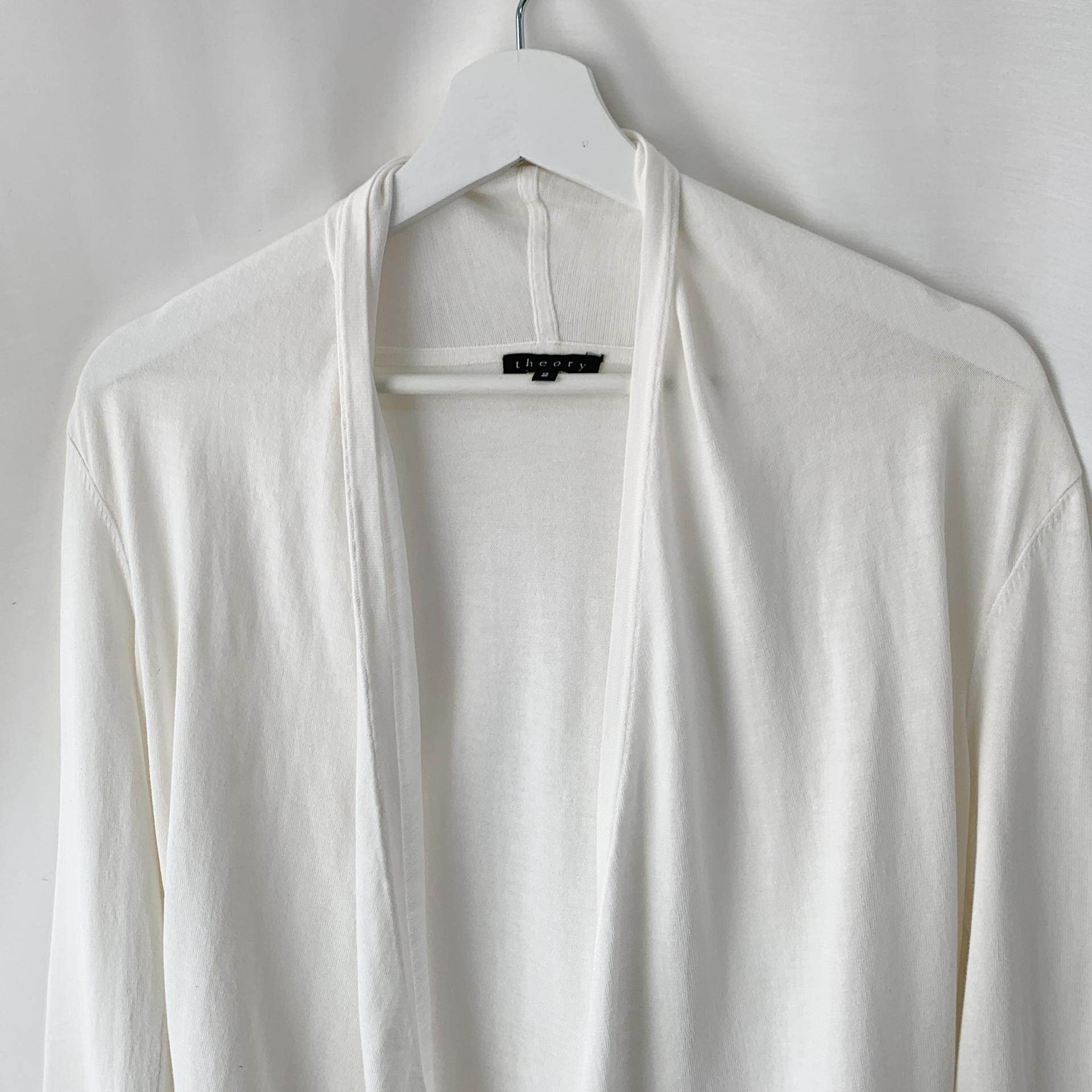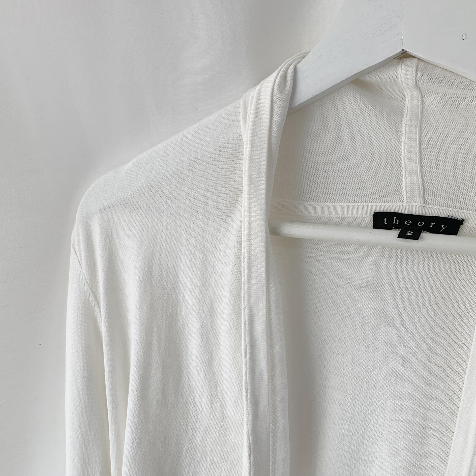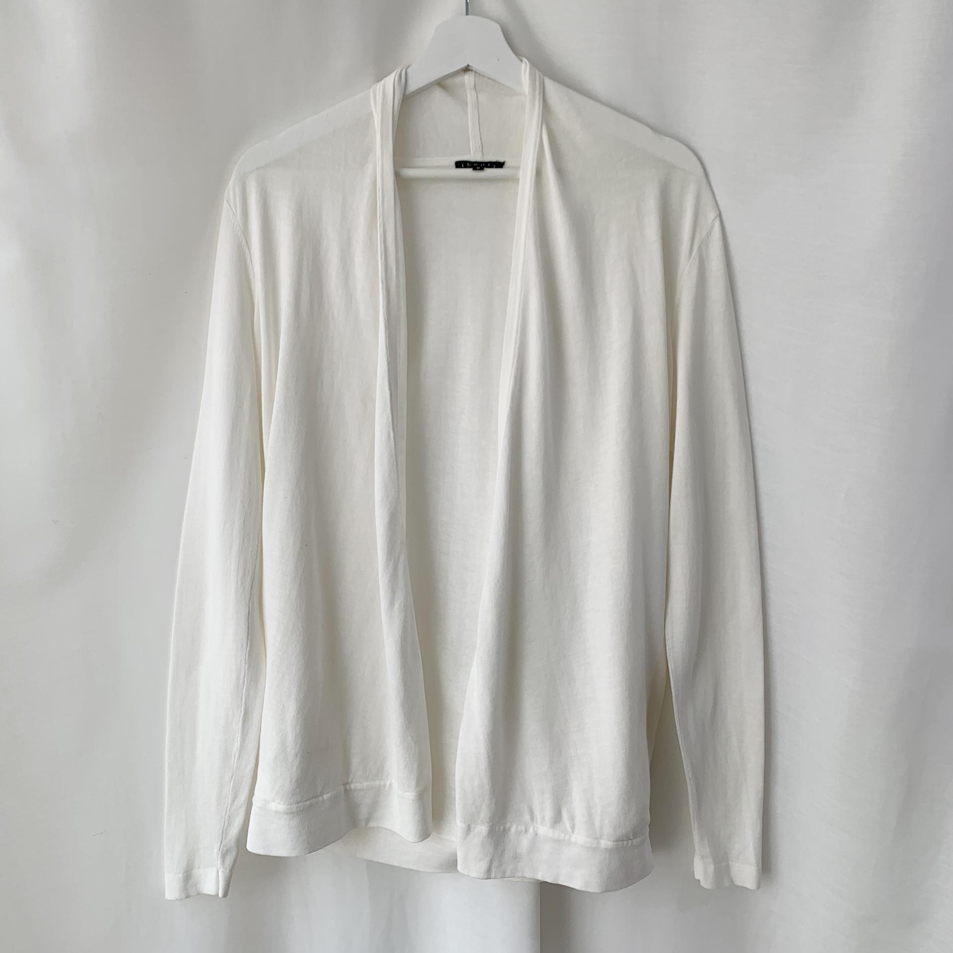 가벼운 무게감과 편안한 착용감을 자랑하는 띠어리의 화이트 코튼 가디건 제품입니다.