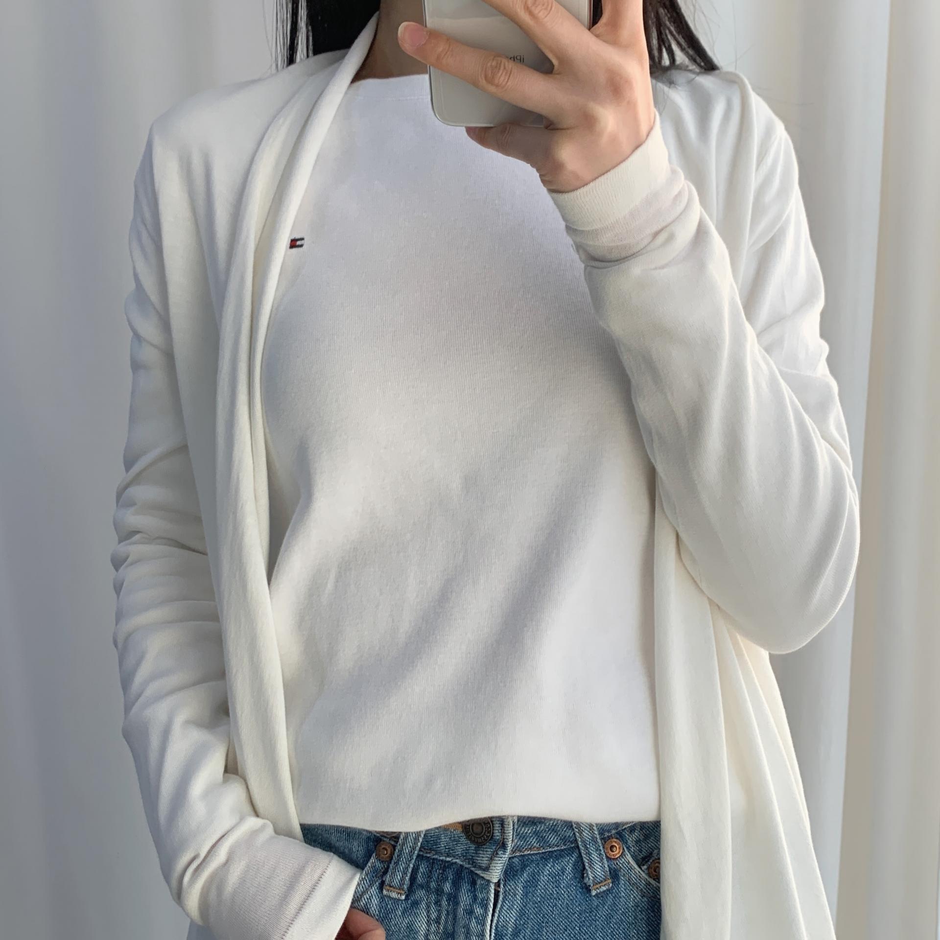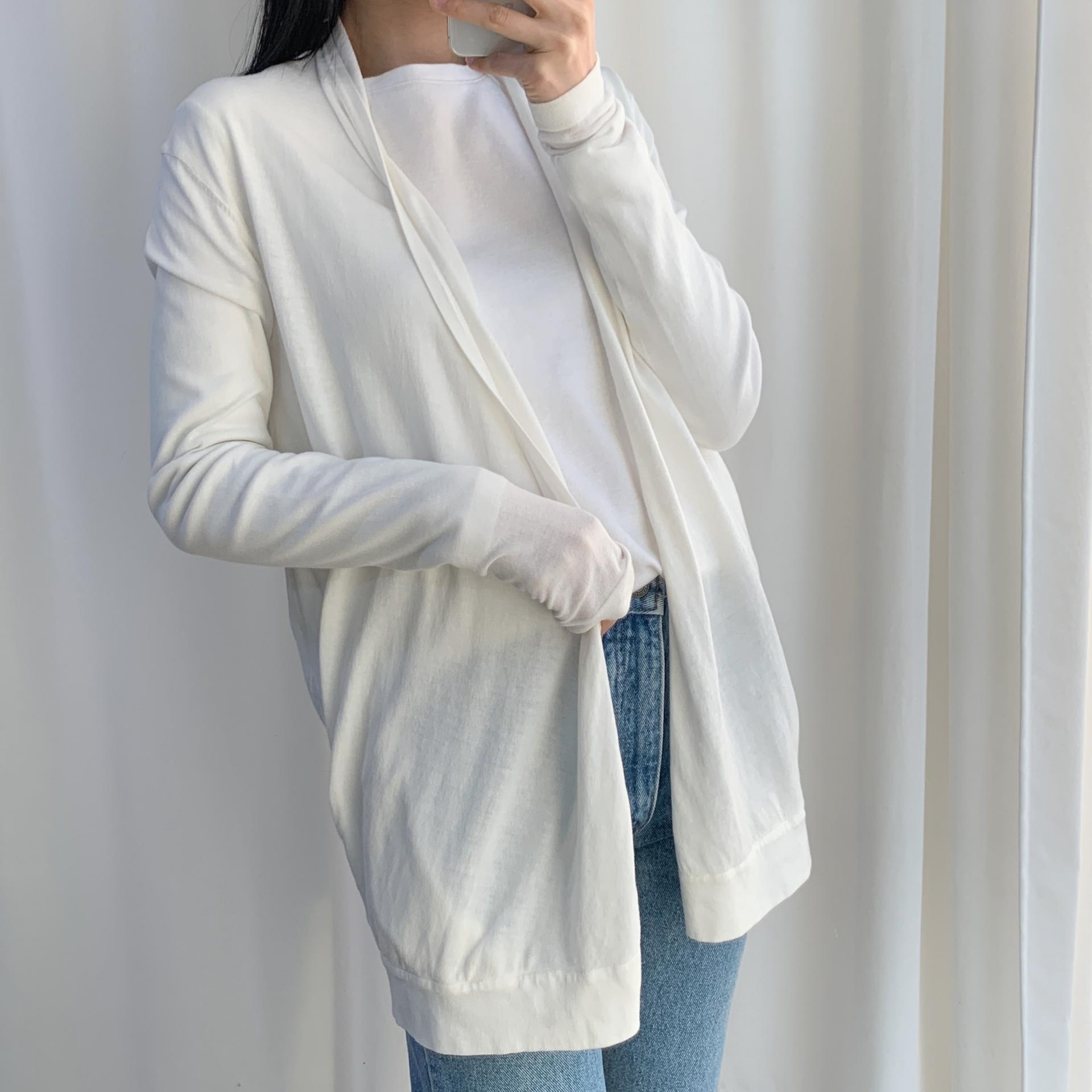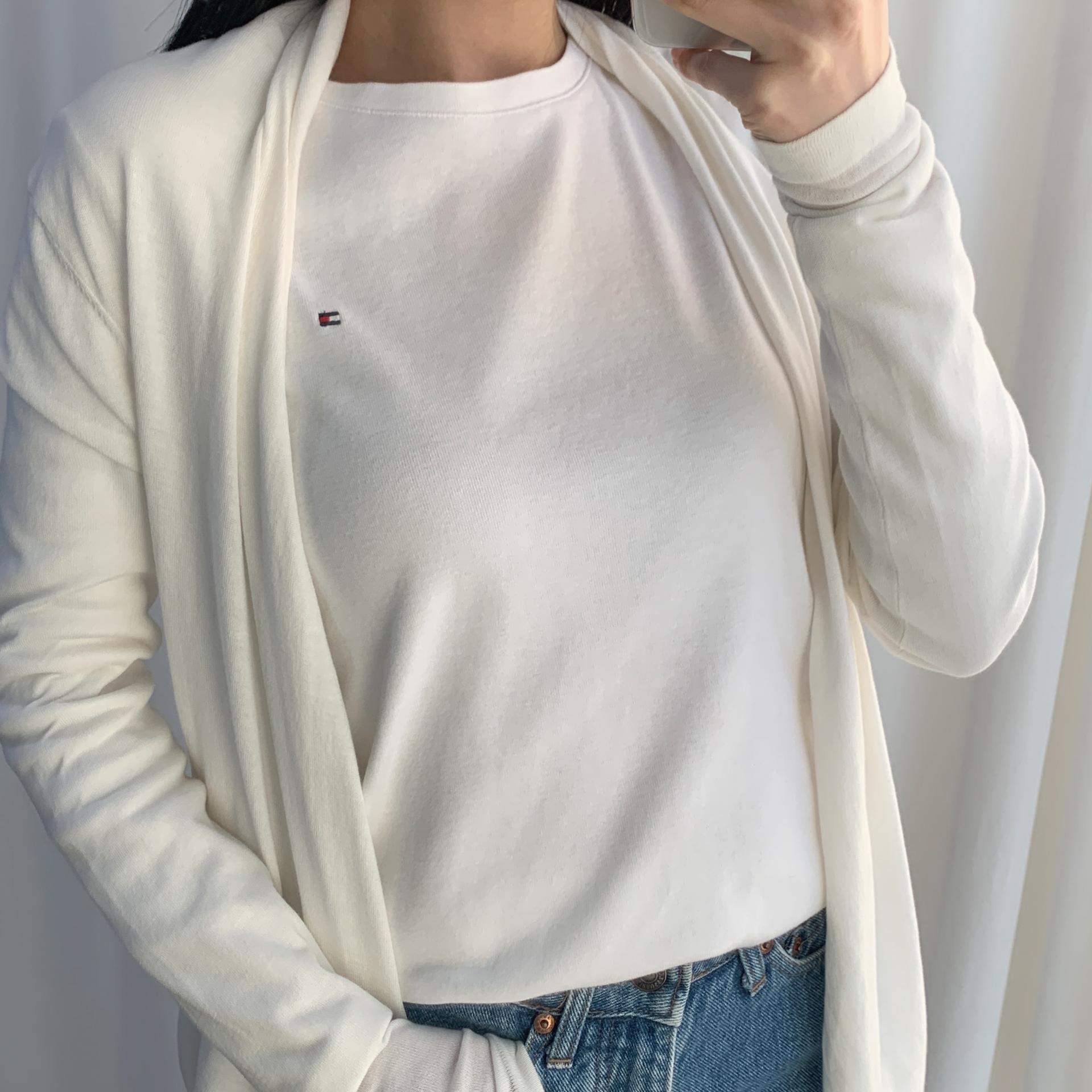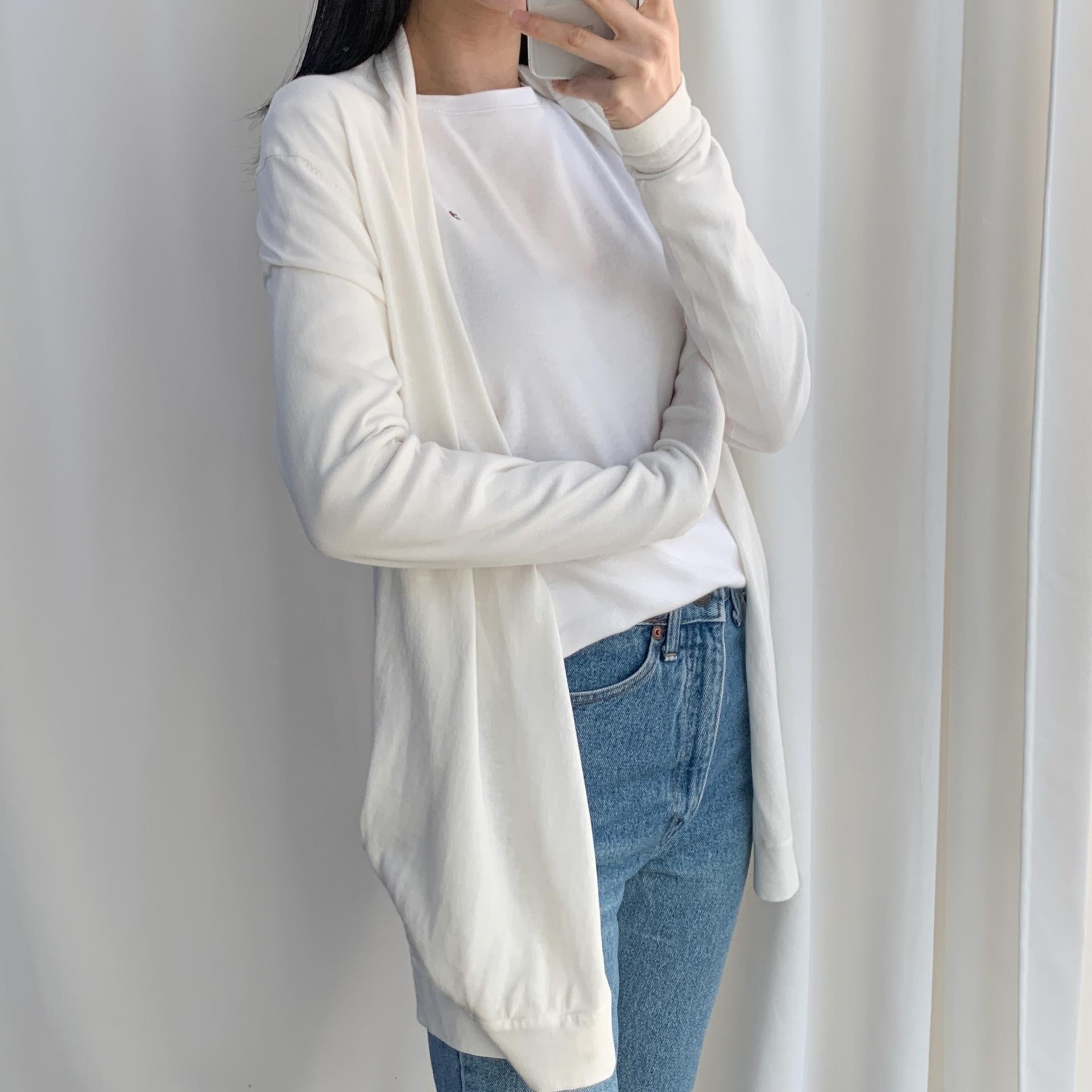 가벼운 무게감과 편안한 착용감을 자랑하는 띠어리의 화이트 코튼 가디건 제품입니다.