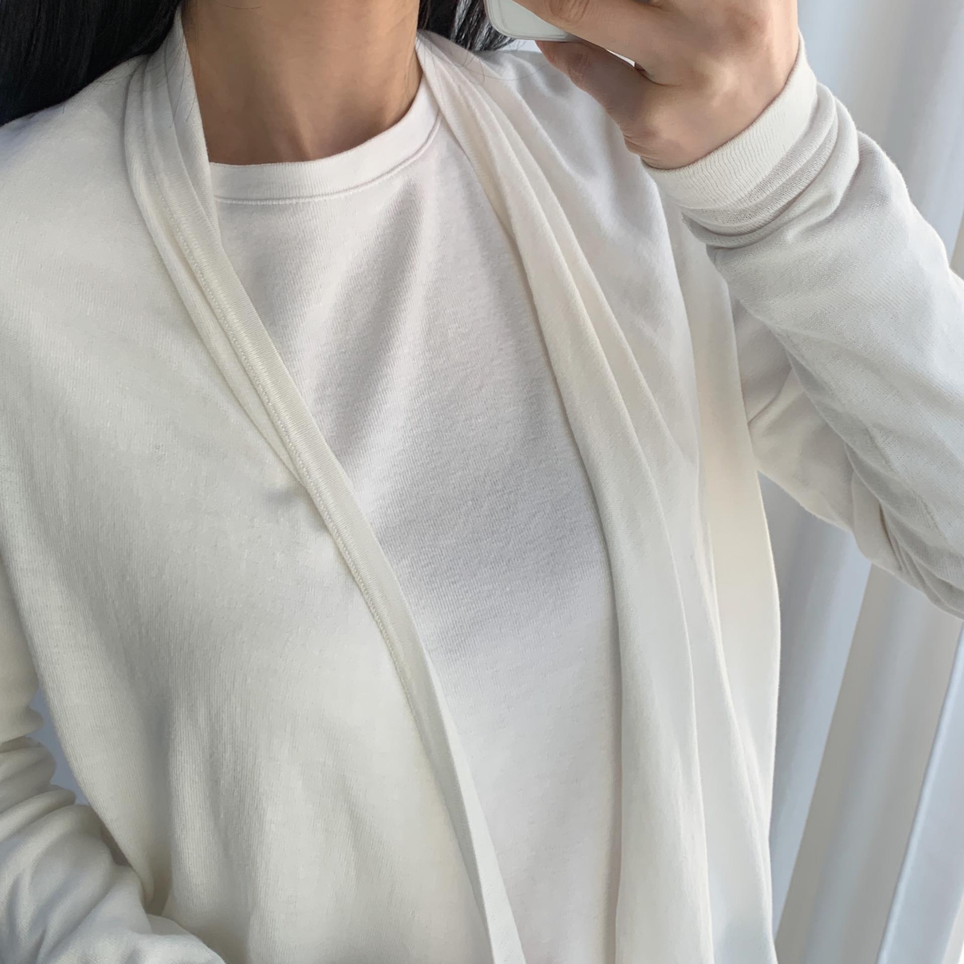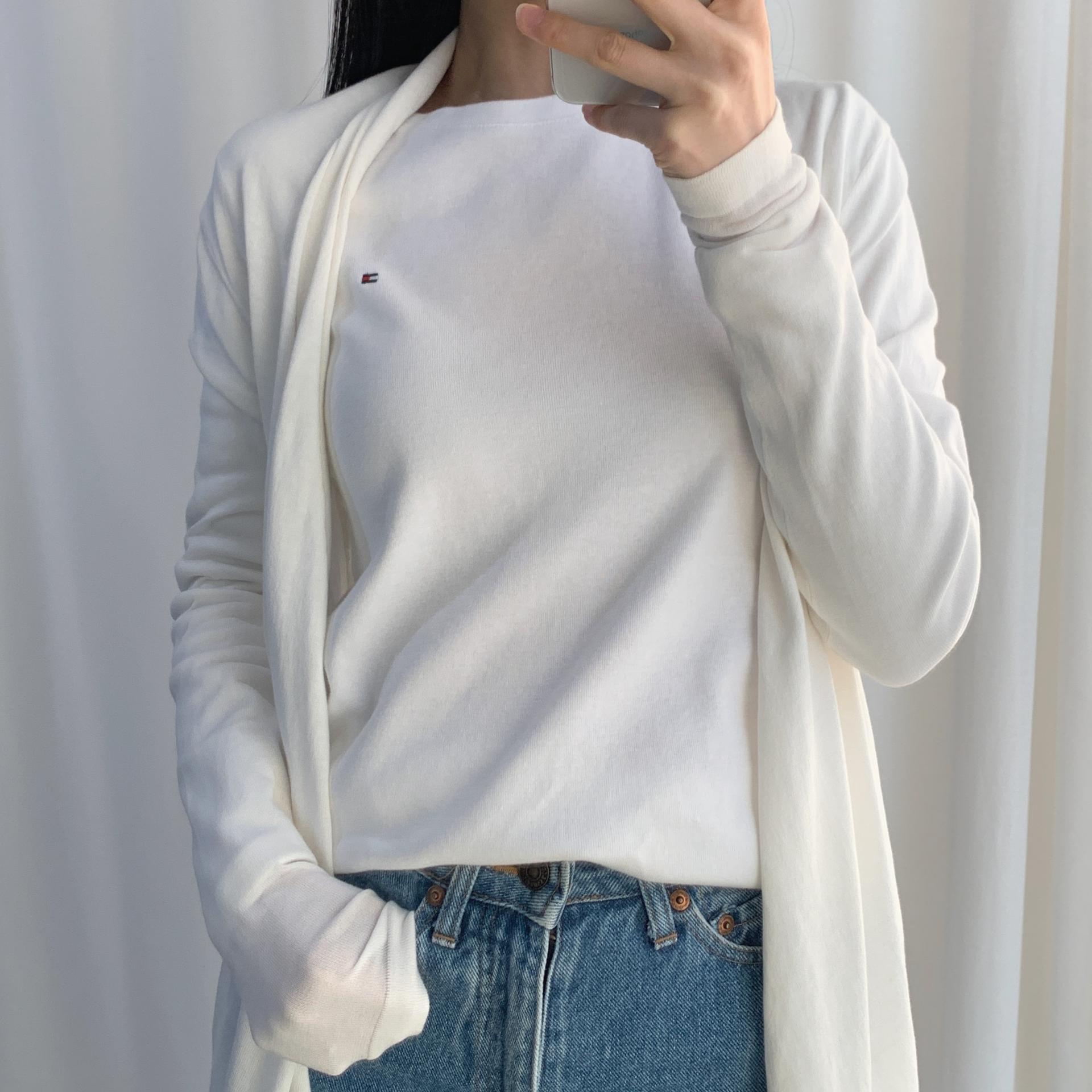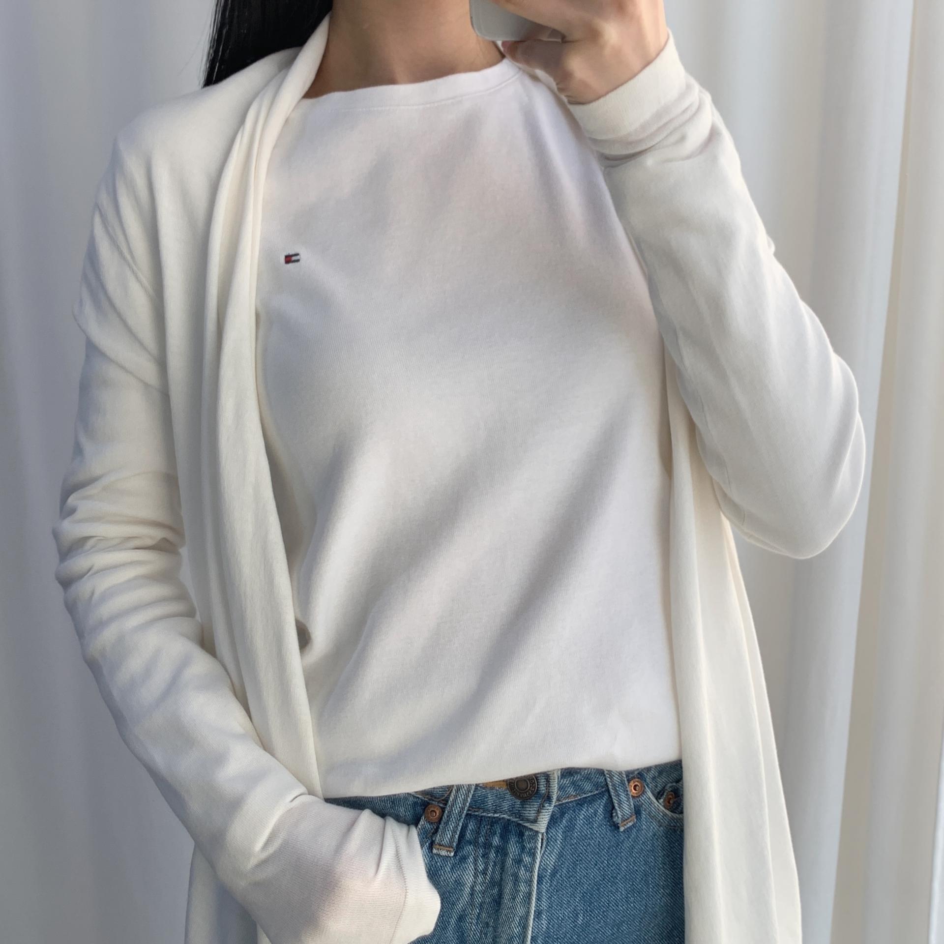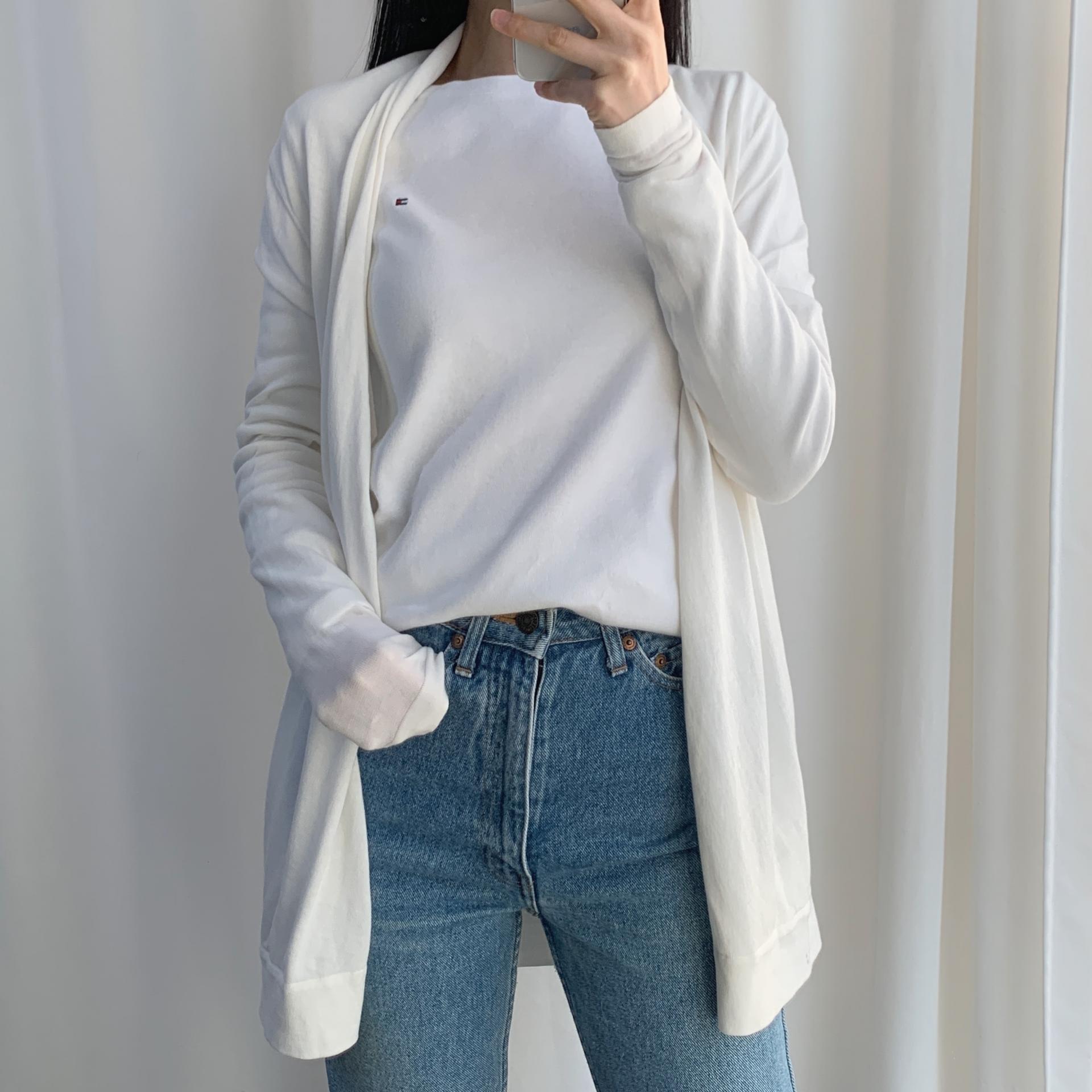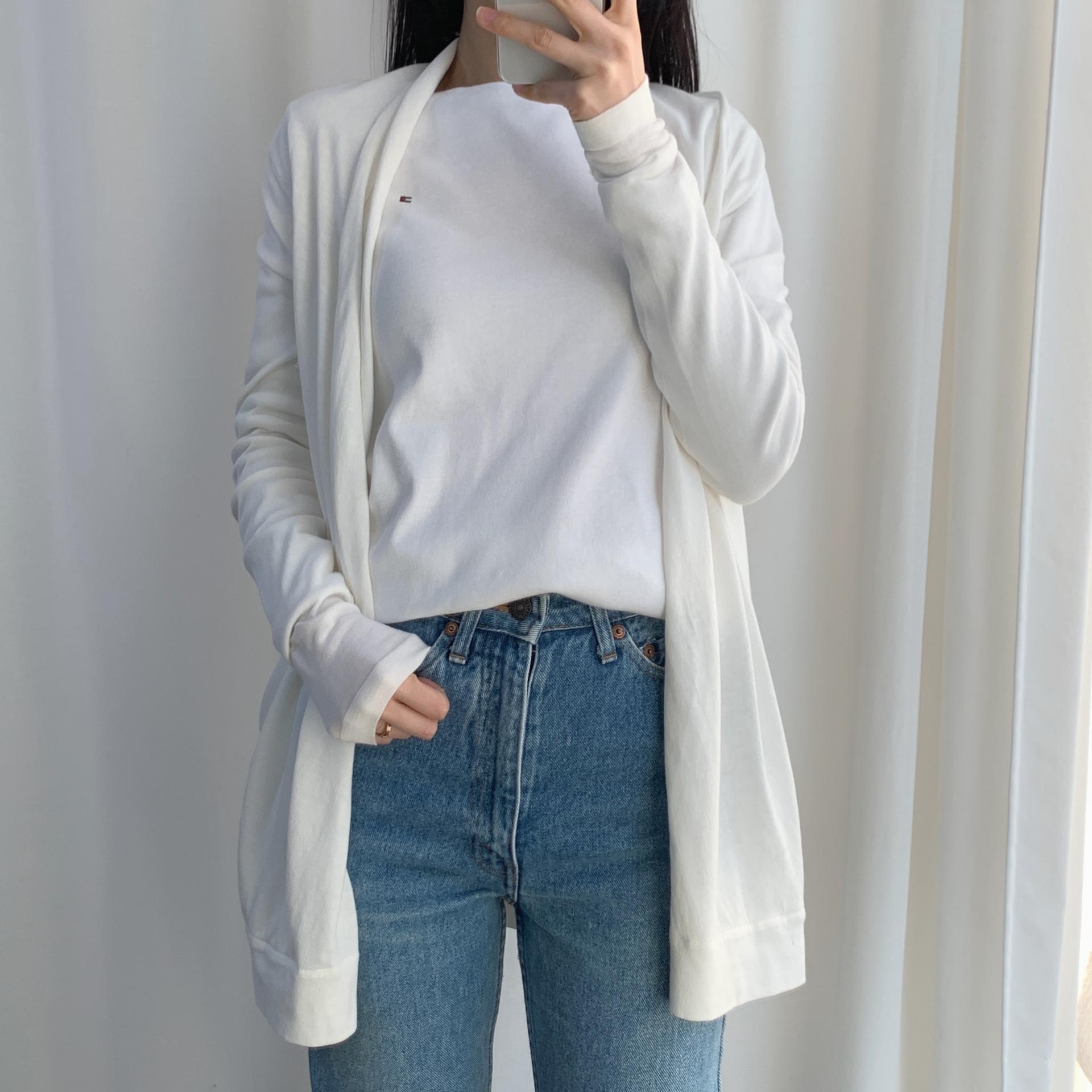 가벼운 무게감과 편안한 착용감을 자랑하는 띠어리의 화이트 코튼 가디건 제품입니다.