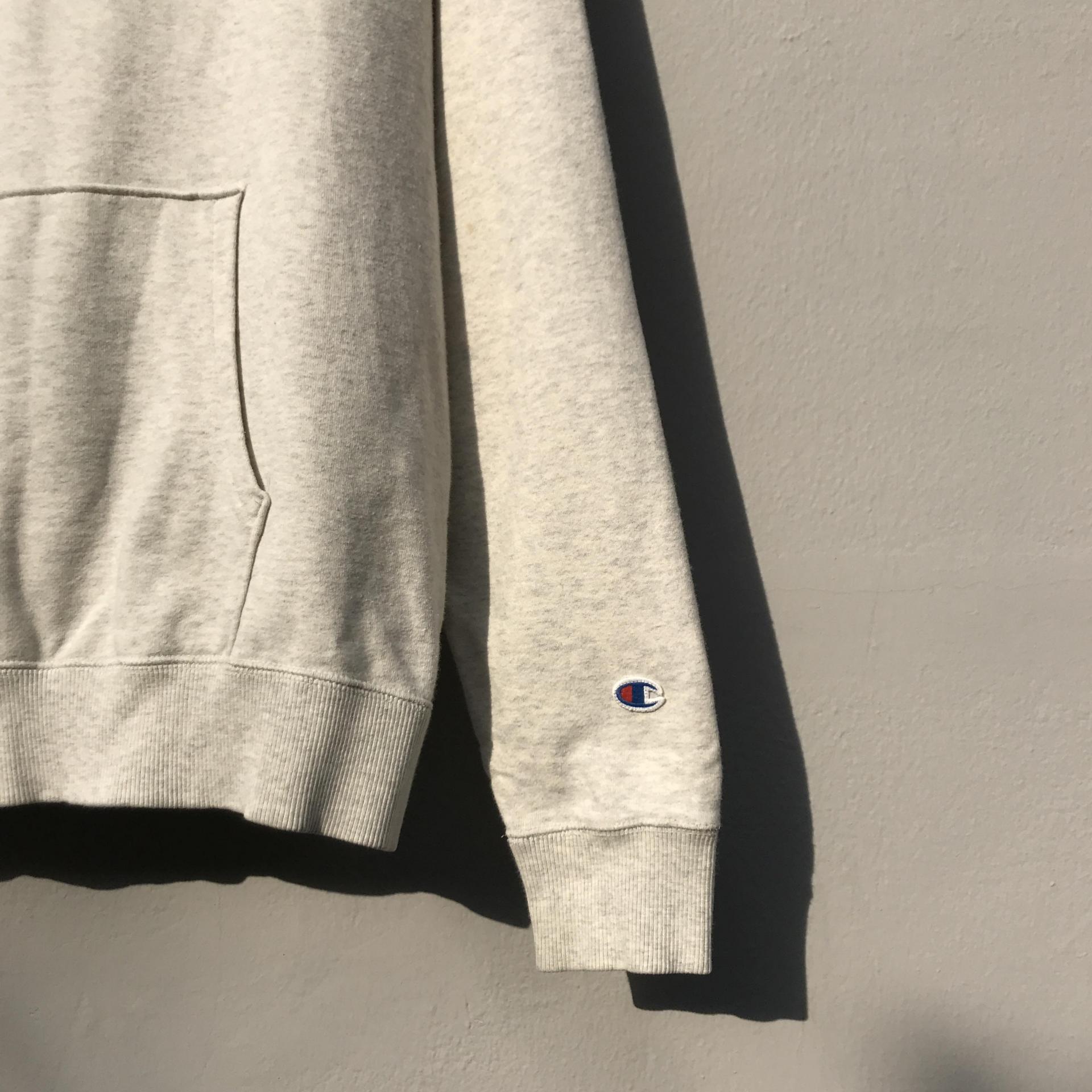 네추럴 바디 컬러와 바디 자수 포인트가 돋보이는 챔피온의 후드 스웨트셔츠 !