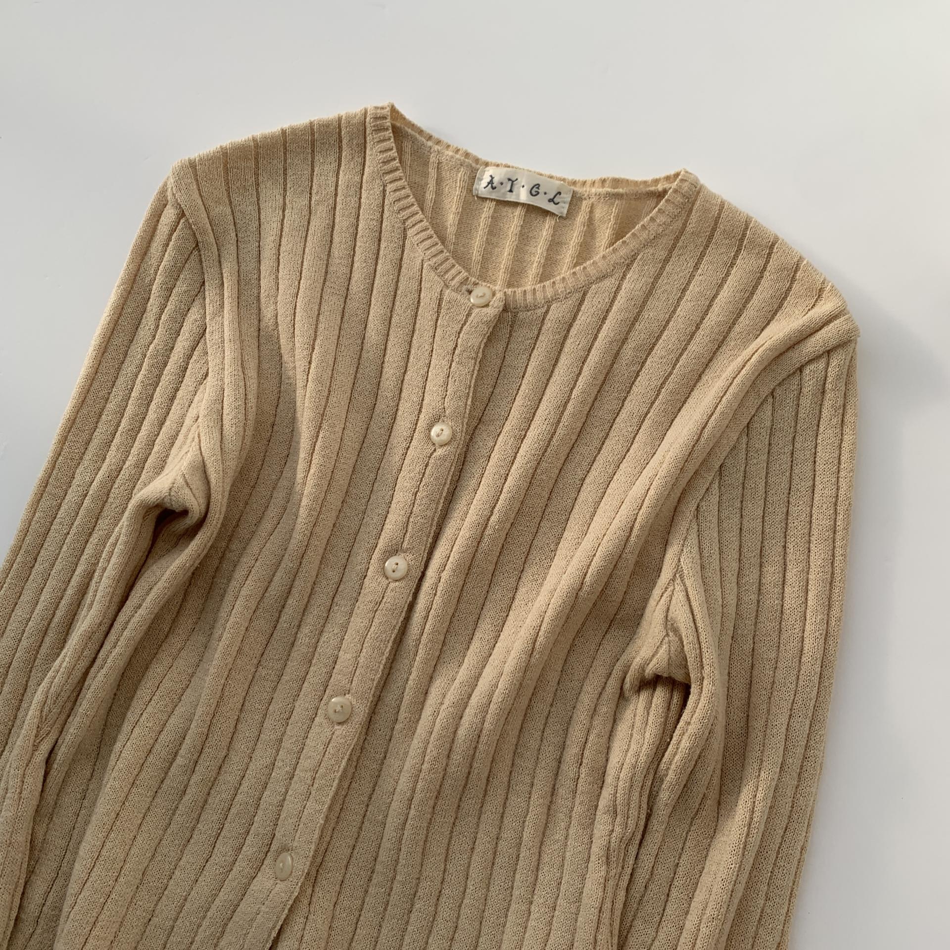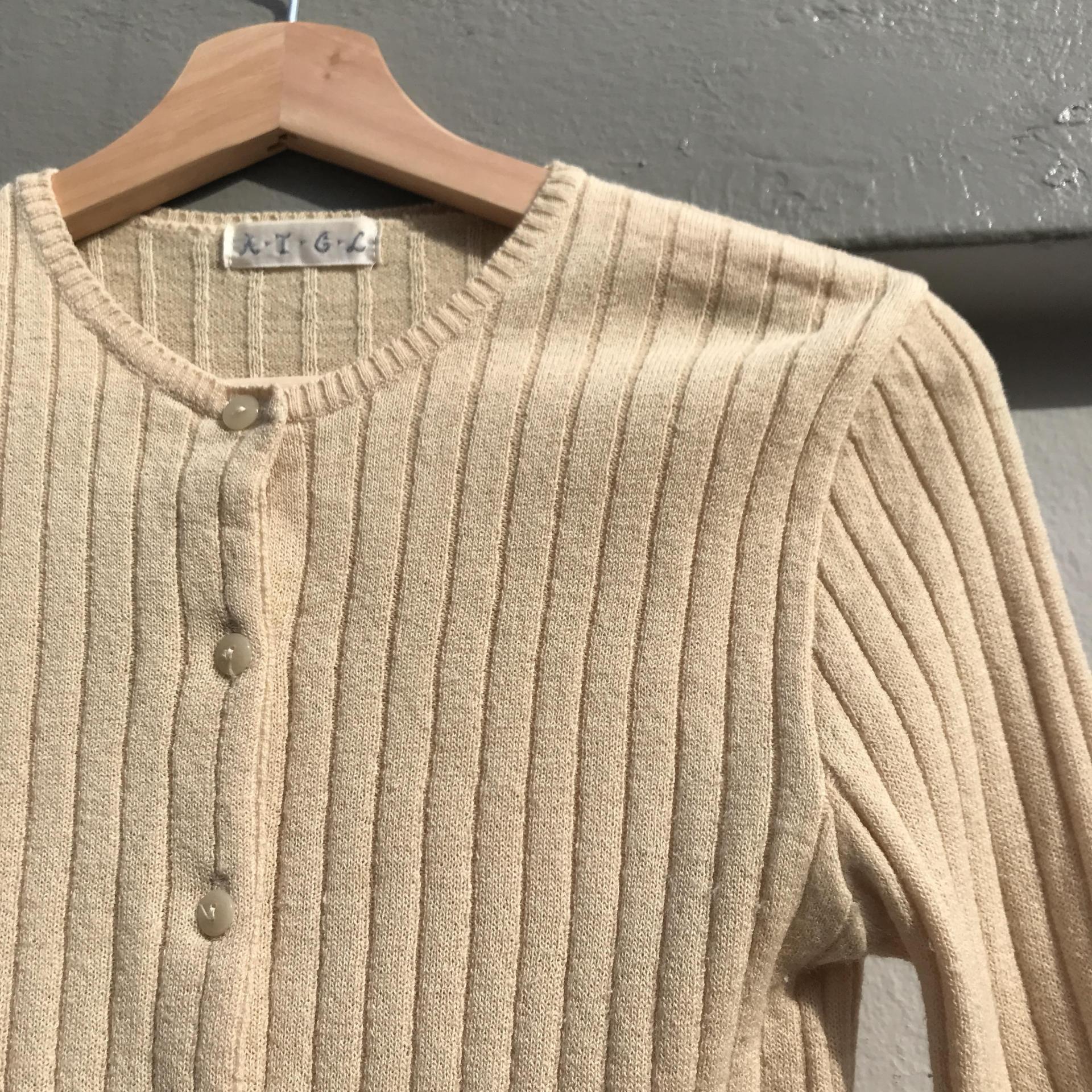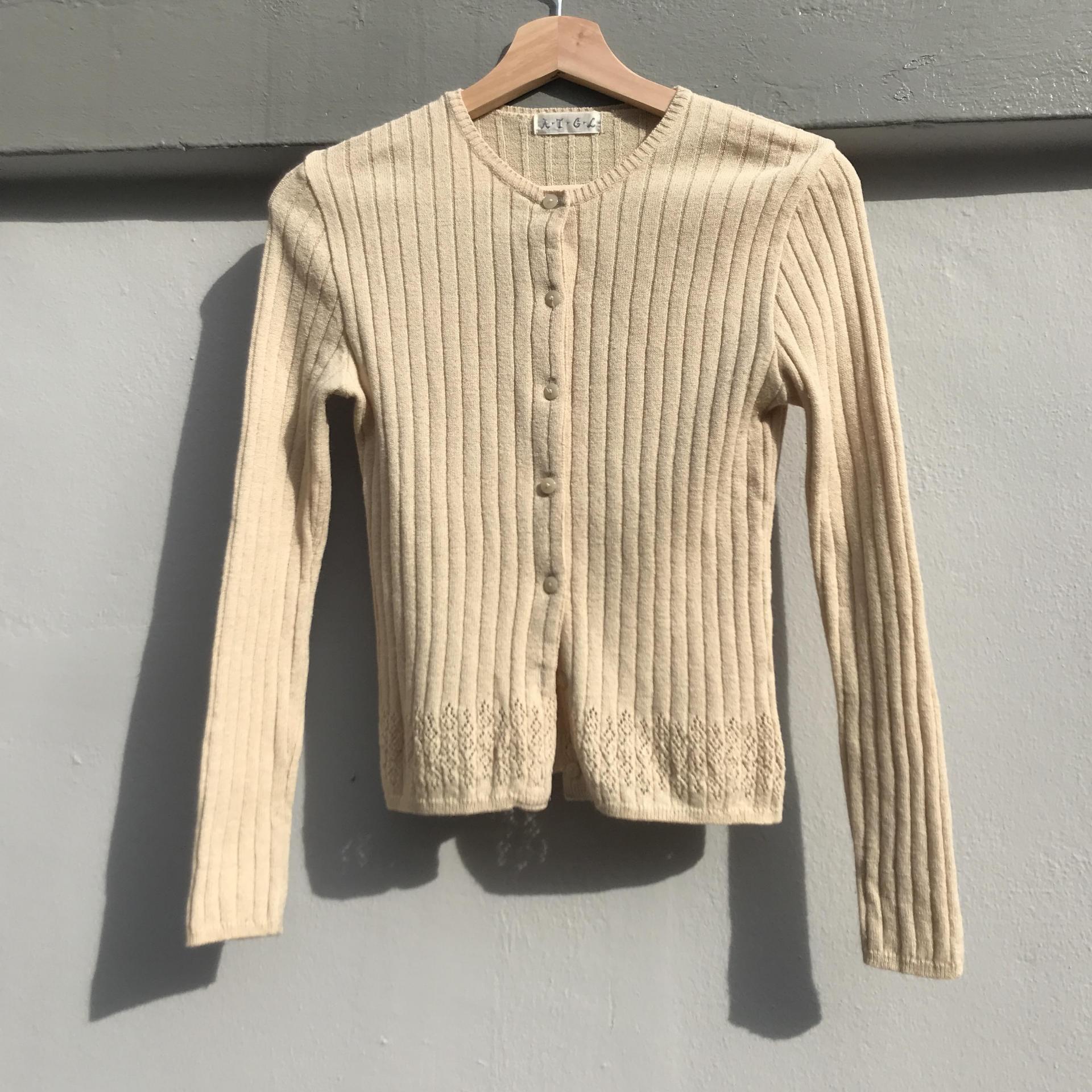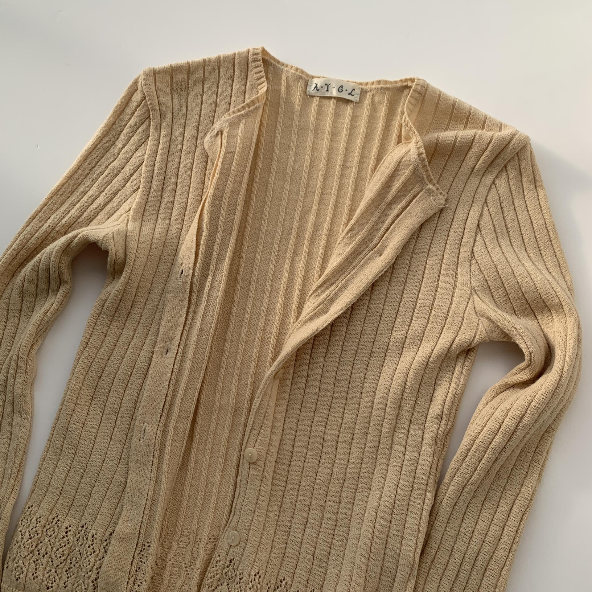 땅콩 크림 같은 색감과 골지 패턴이 돋보이는 울 가디건 아이템 :)