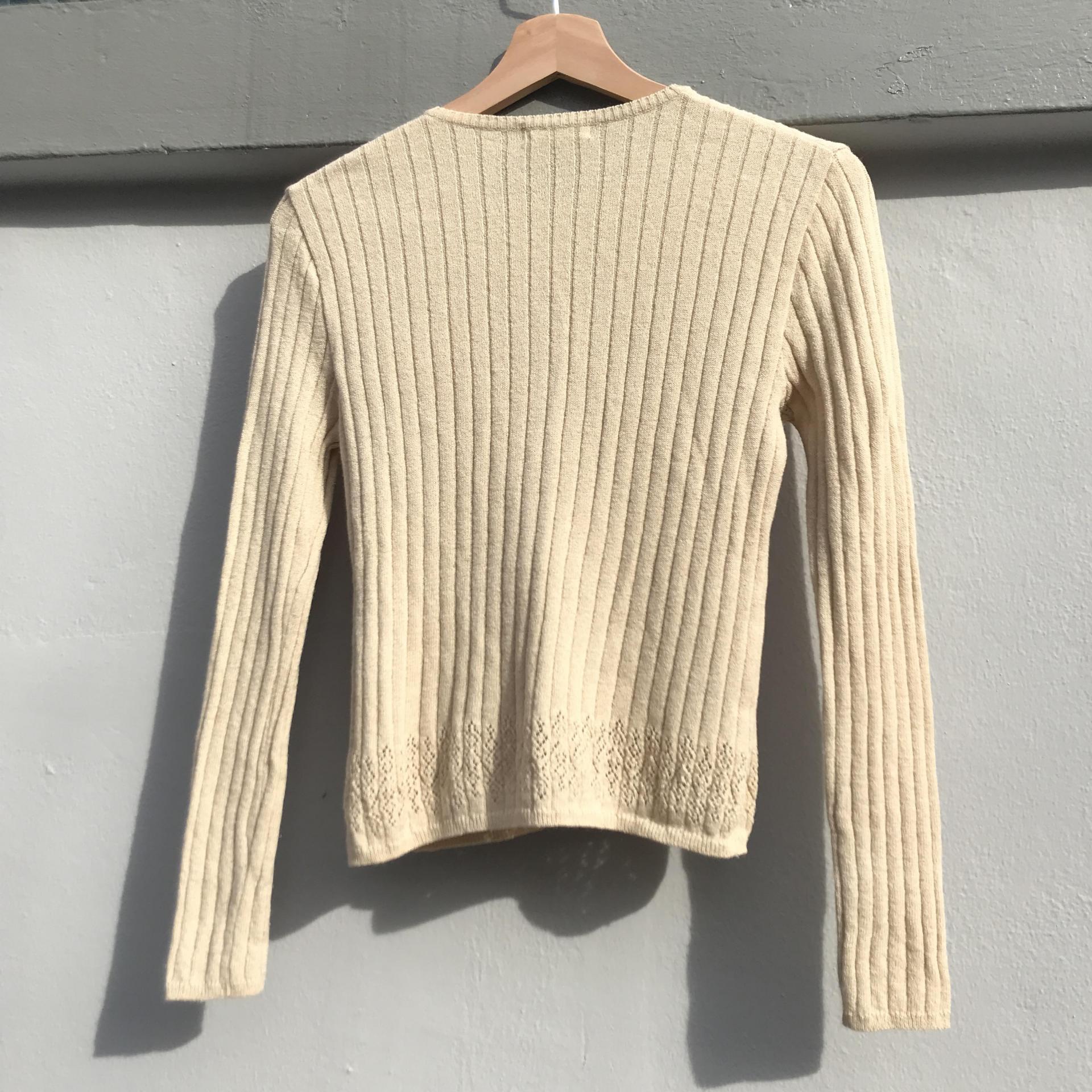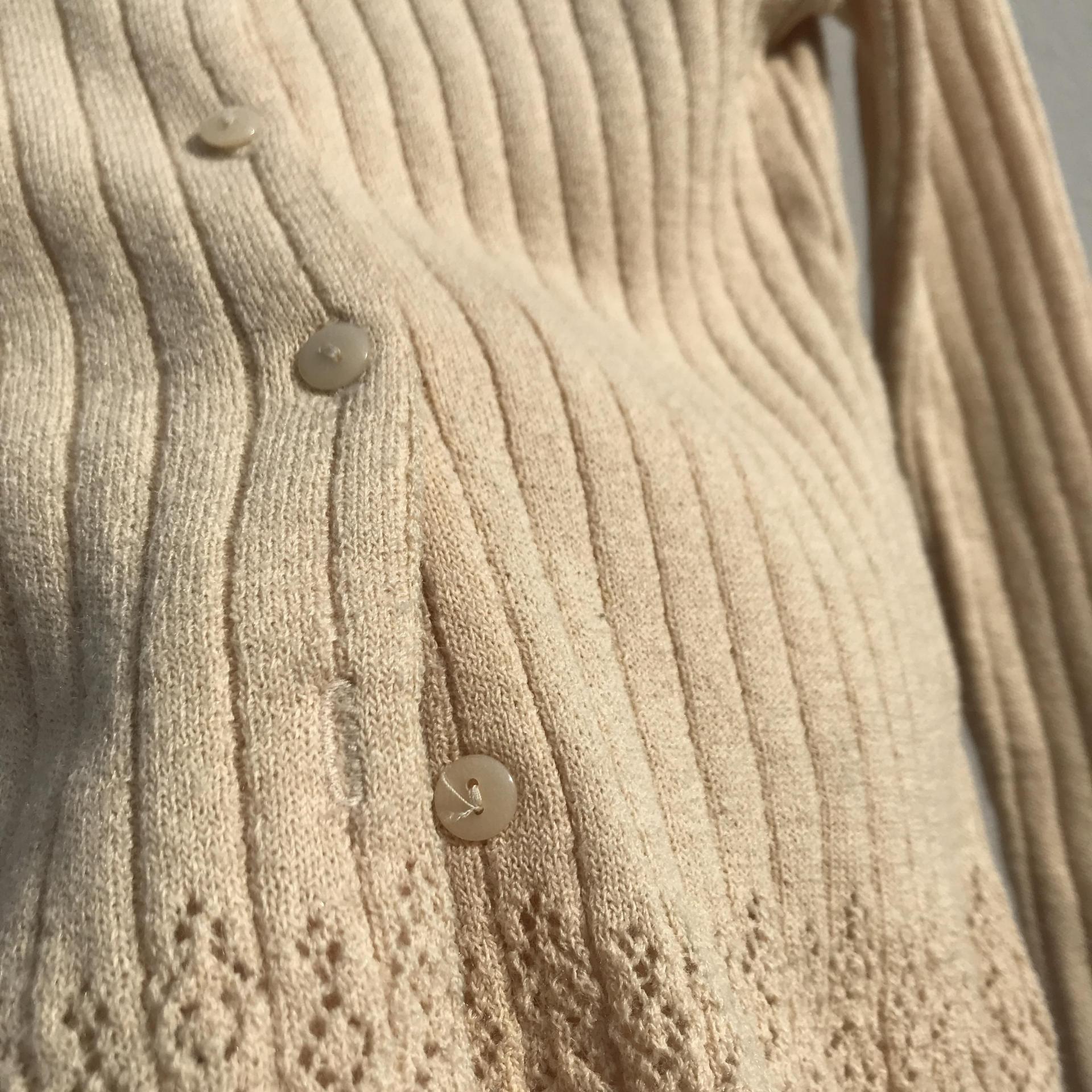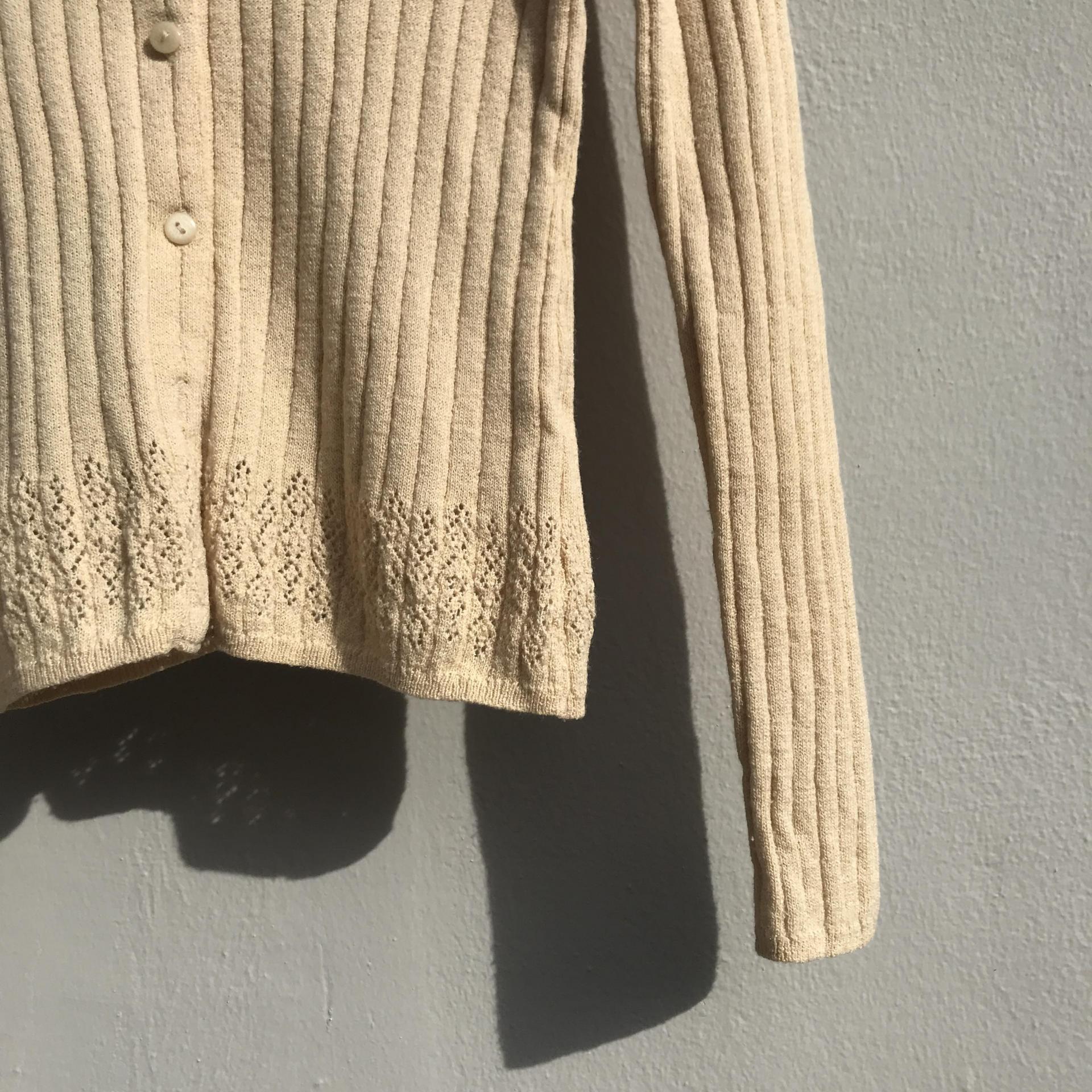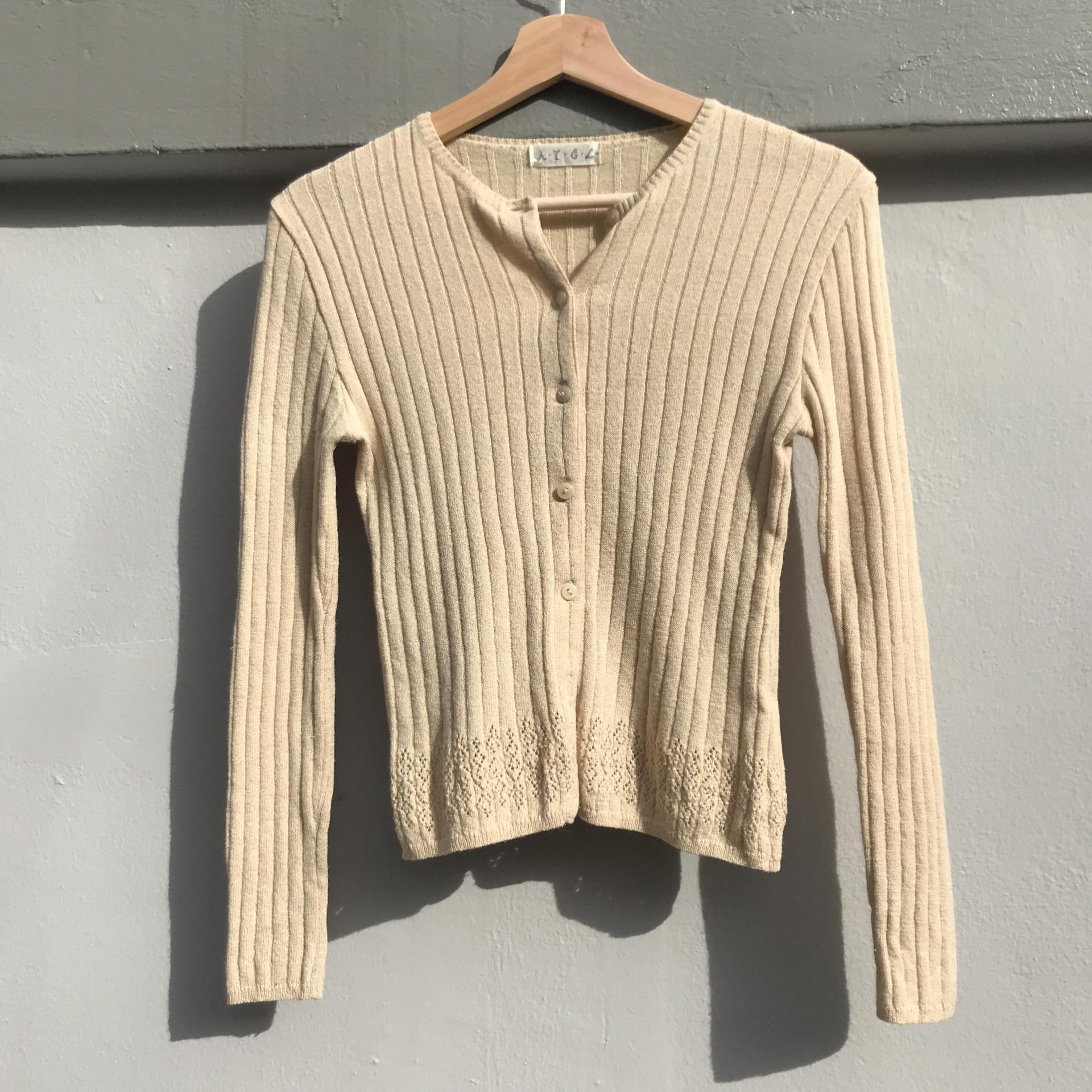 땅콩 크림 같은 색감과 골지 패턴이 돋보이는 울 가디건 아이템 :)