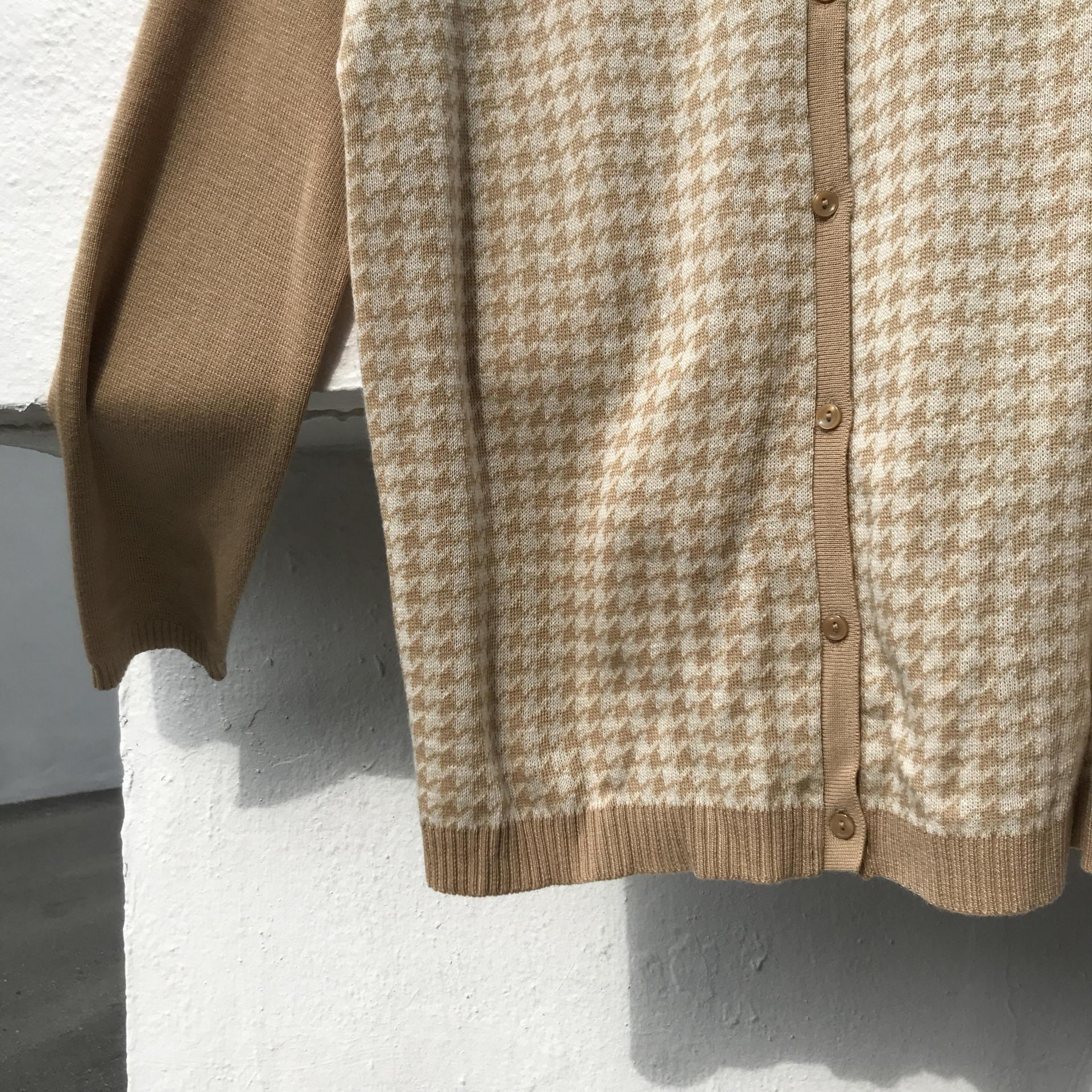 하운드 투스 패턴과 따듯한 분위기의 바디 색감이 예쁜 조화를 이루어내는 가디건 제품 !