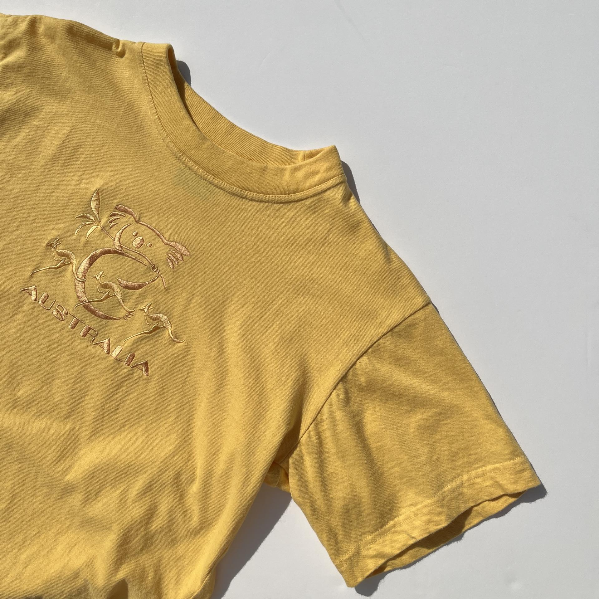 귀여운 색감 위 코알라, 캥거루 자수가 새겨진 코튼 티셔츠 제품입니다.