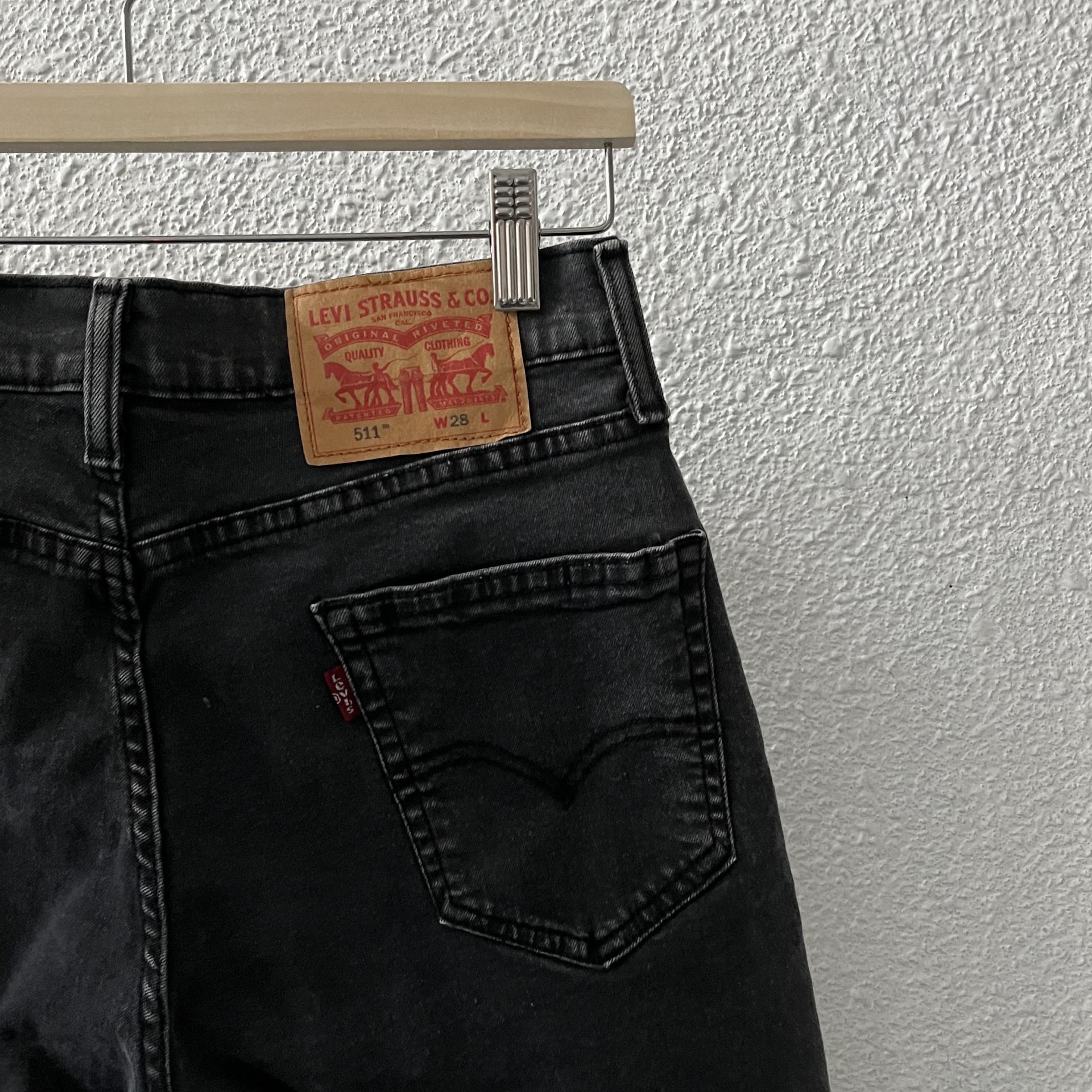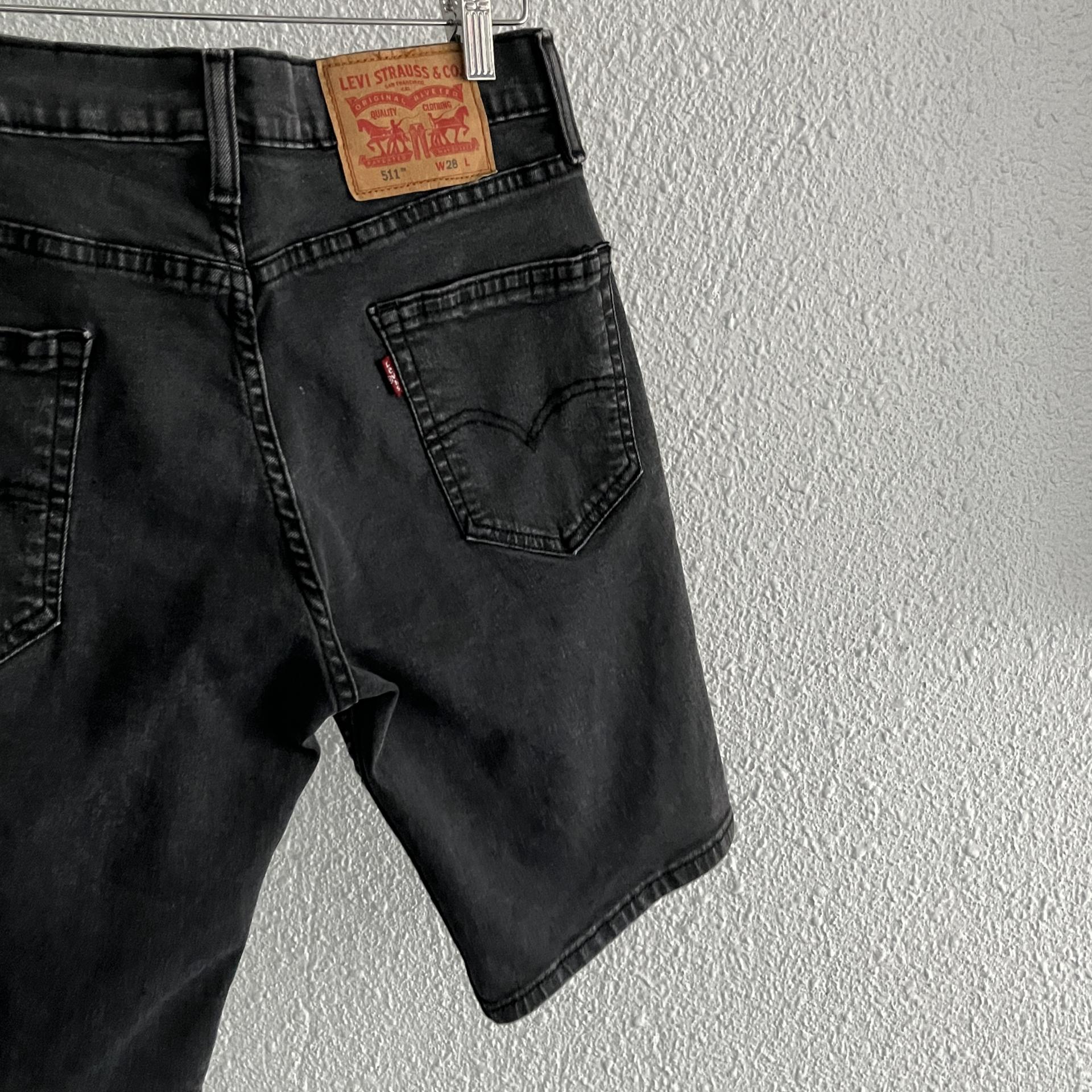 볼드 한 분위기를 지닌 리바이스의 흑청 쇼츠 제품입니다.