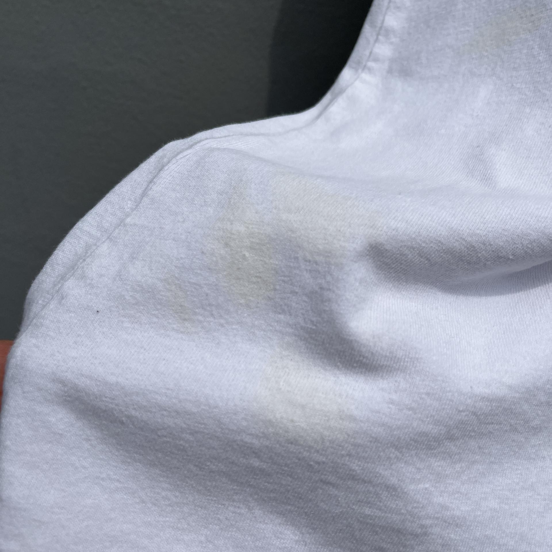 세탁 후 남은 왼쪽 어깨 쪽 얼룩이 아쉽지만 그 외 화이트 컬러 대비 우수한 컨디션 유지하고 있습니다.