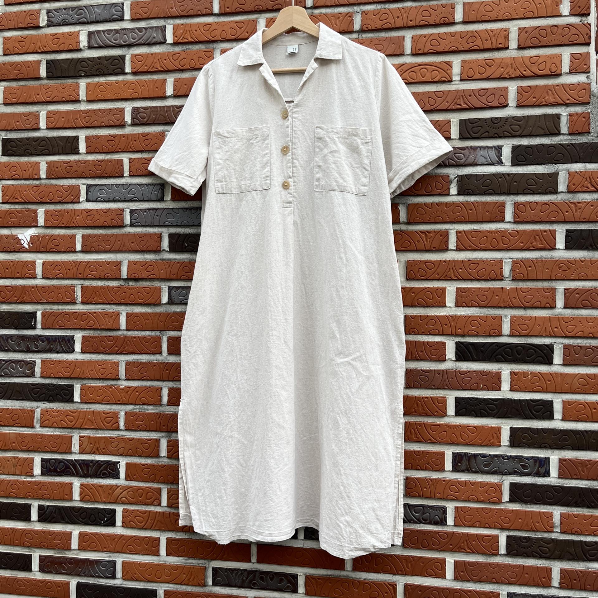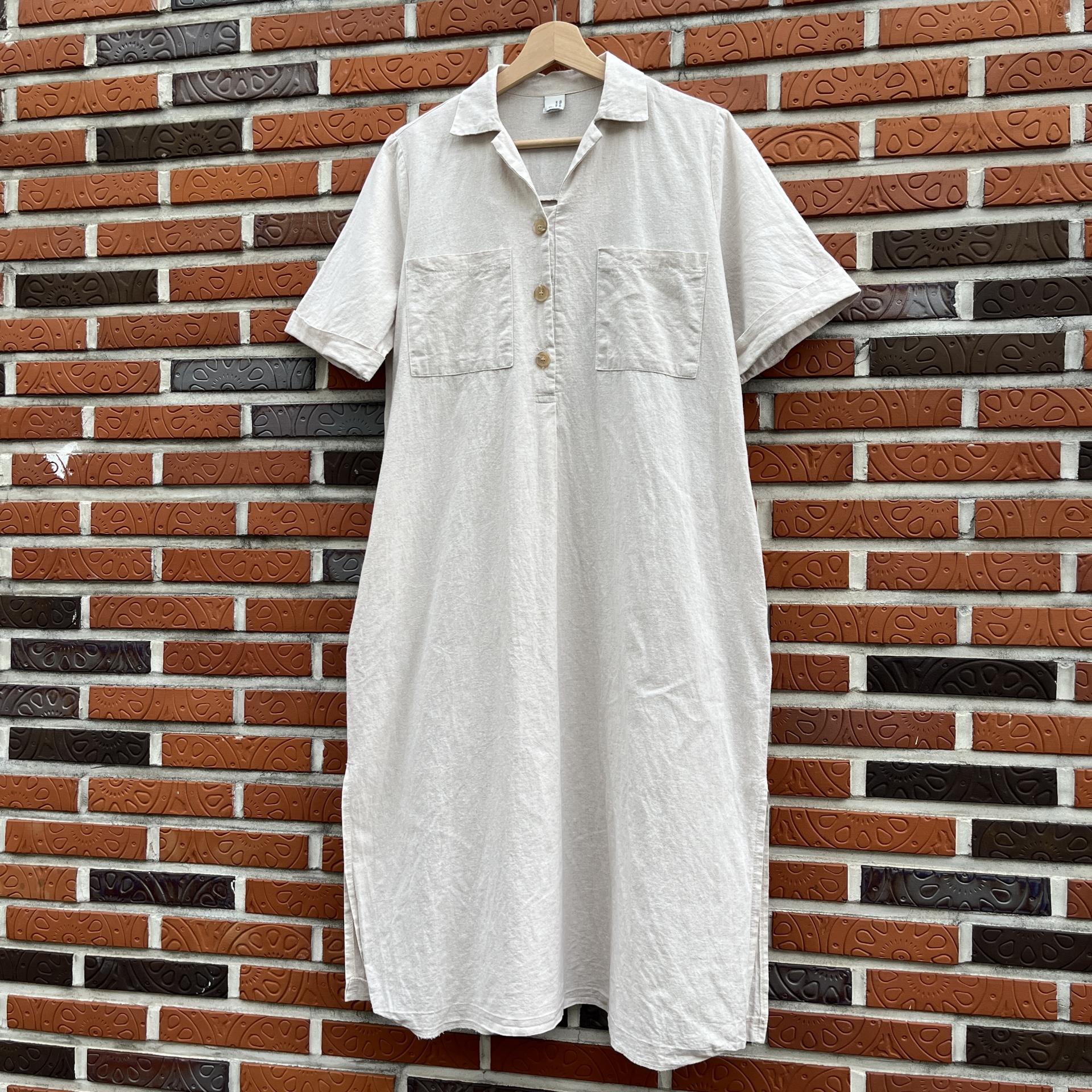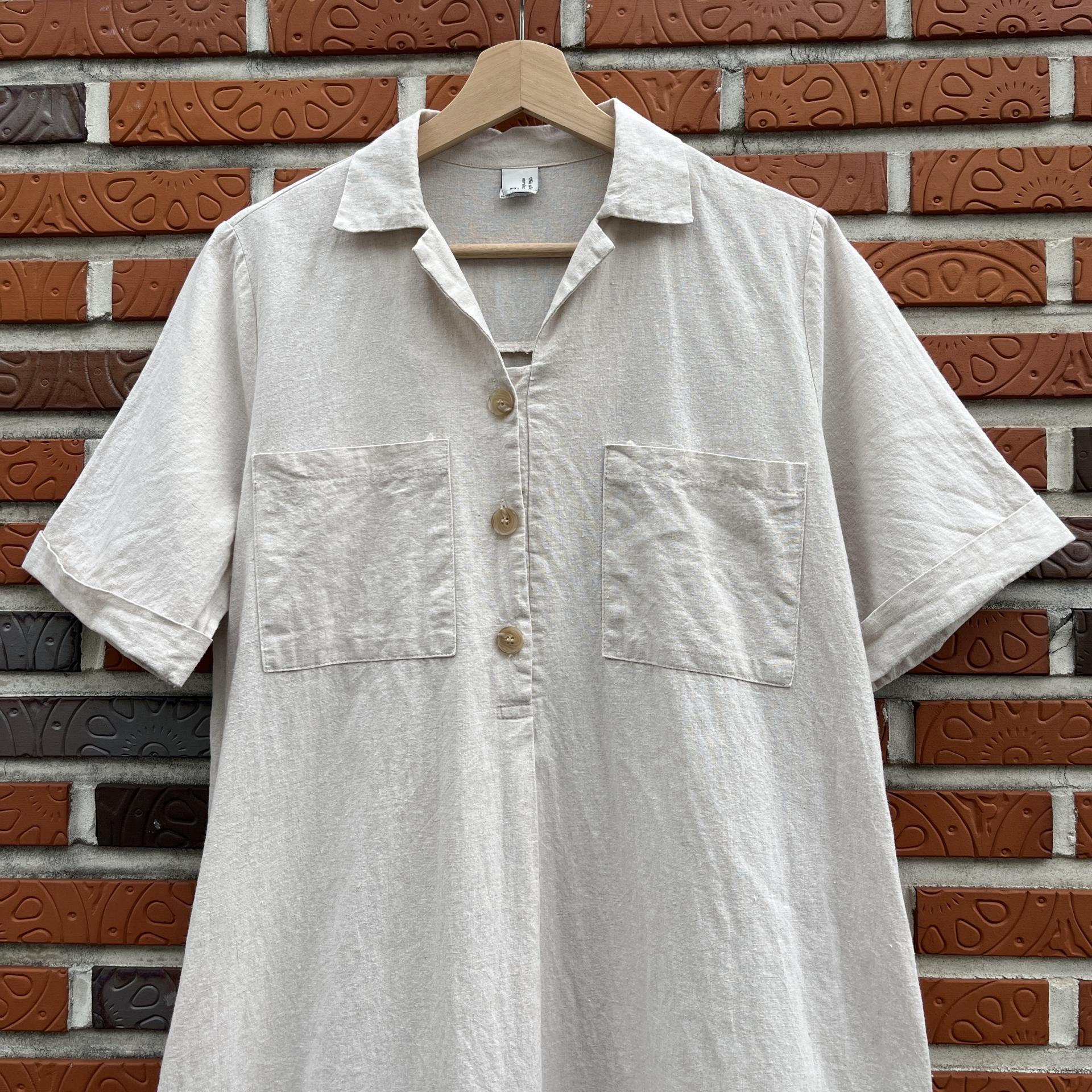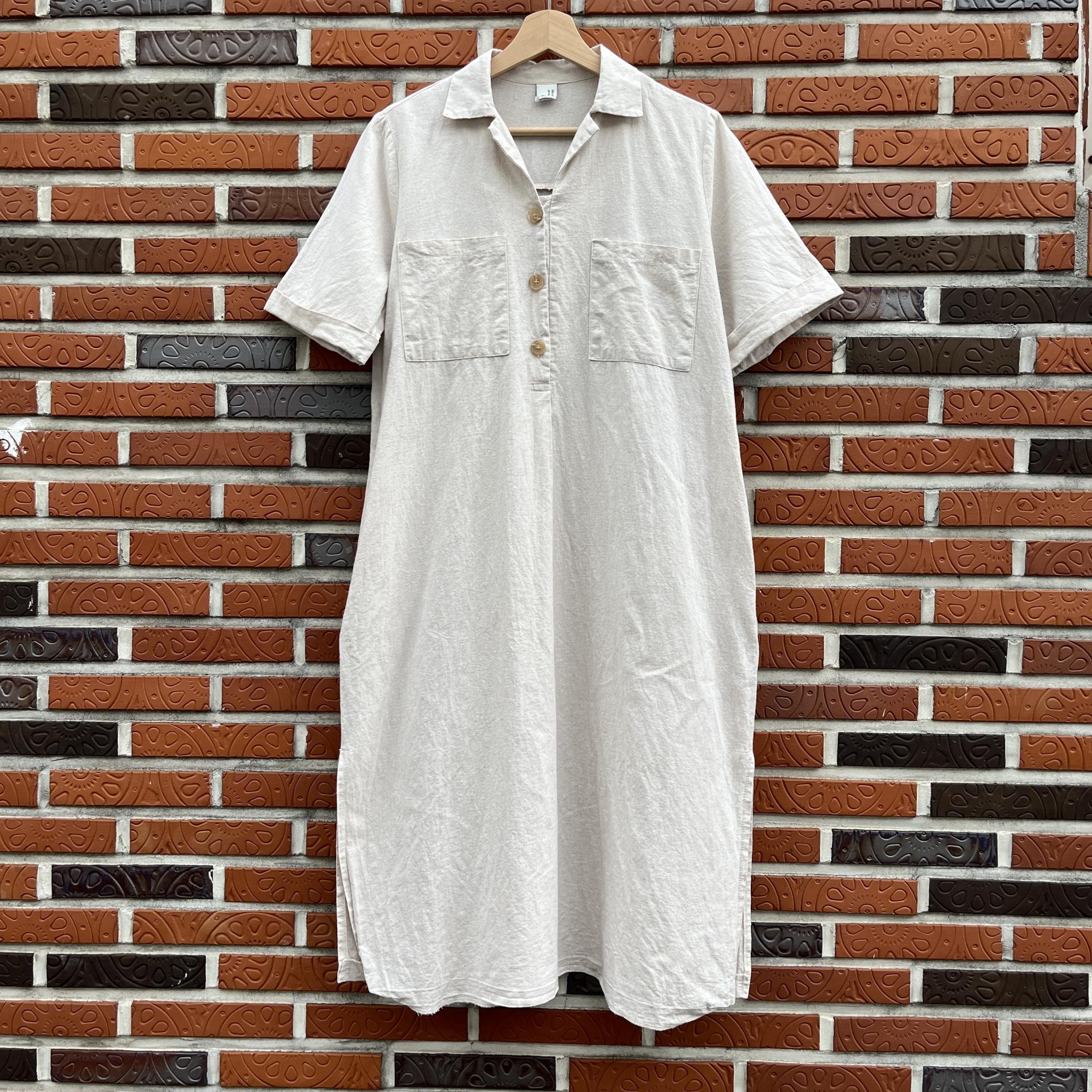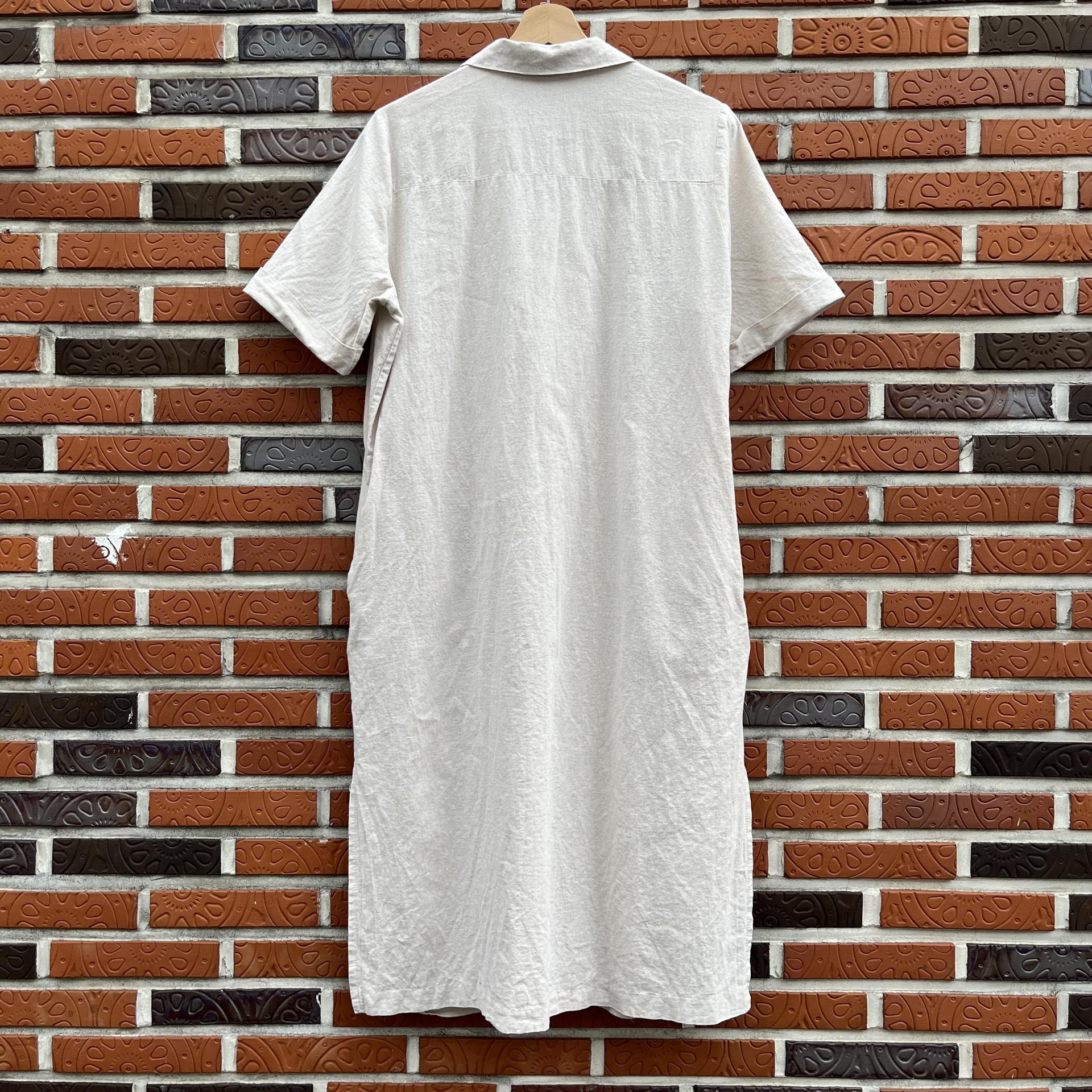 라이트 베이지 바디 컬러로 플랫 한 색감의 리넨 원피스 아이템 :)