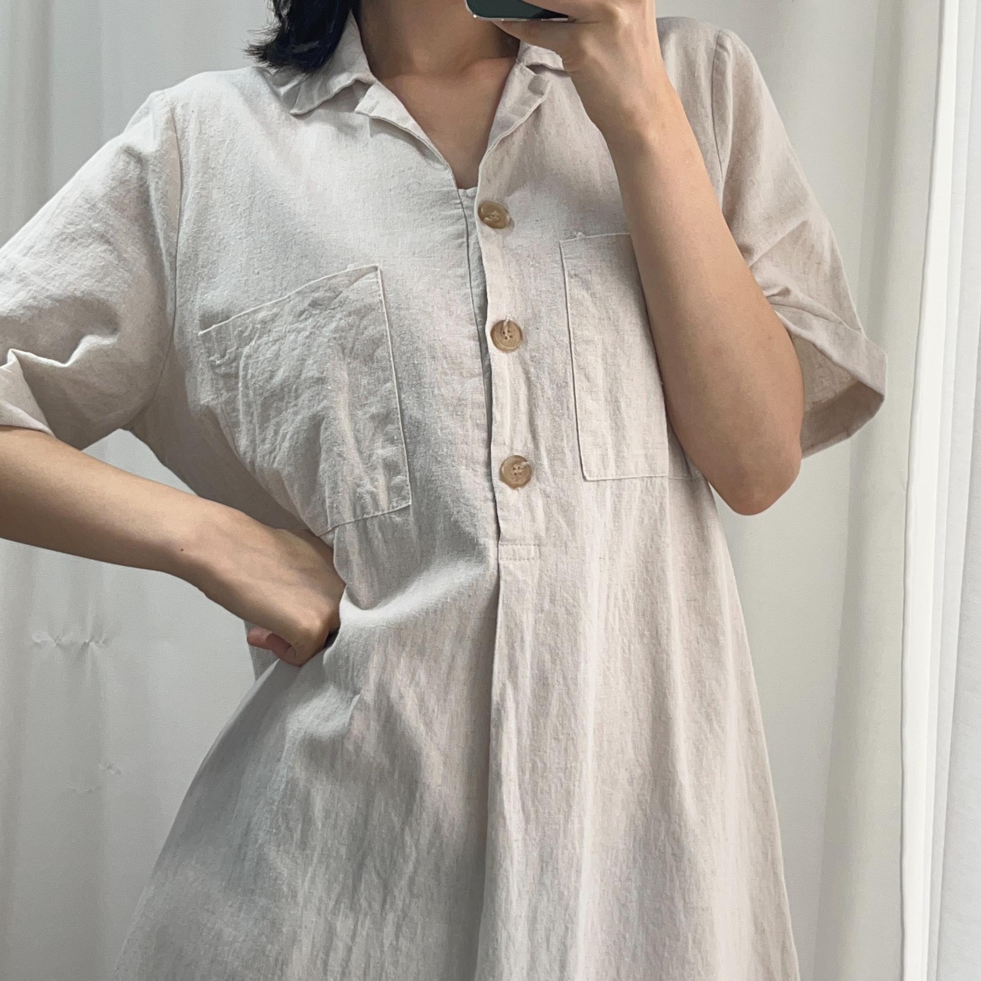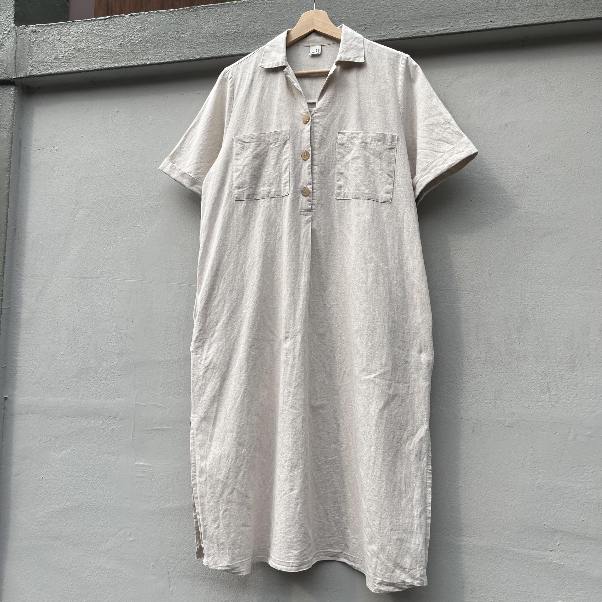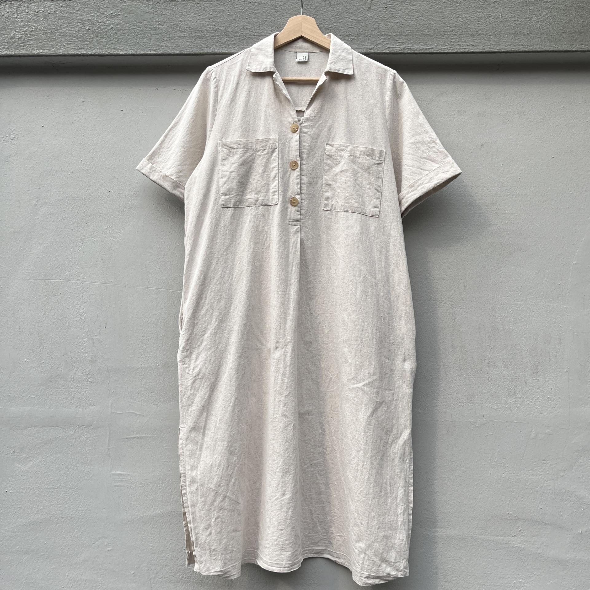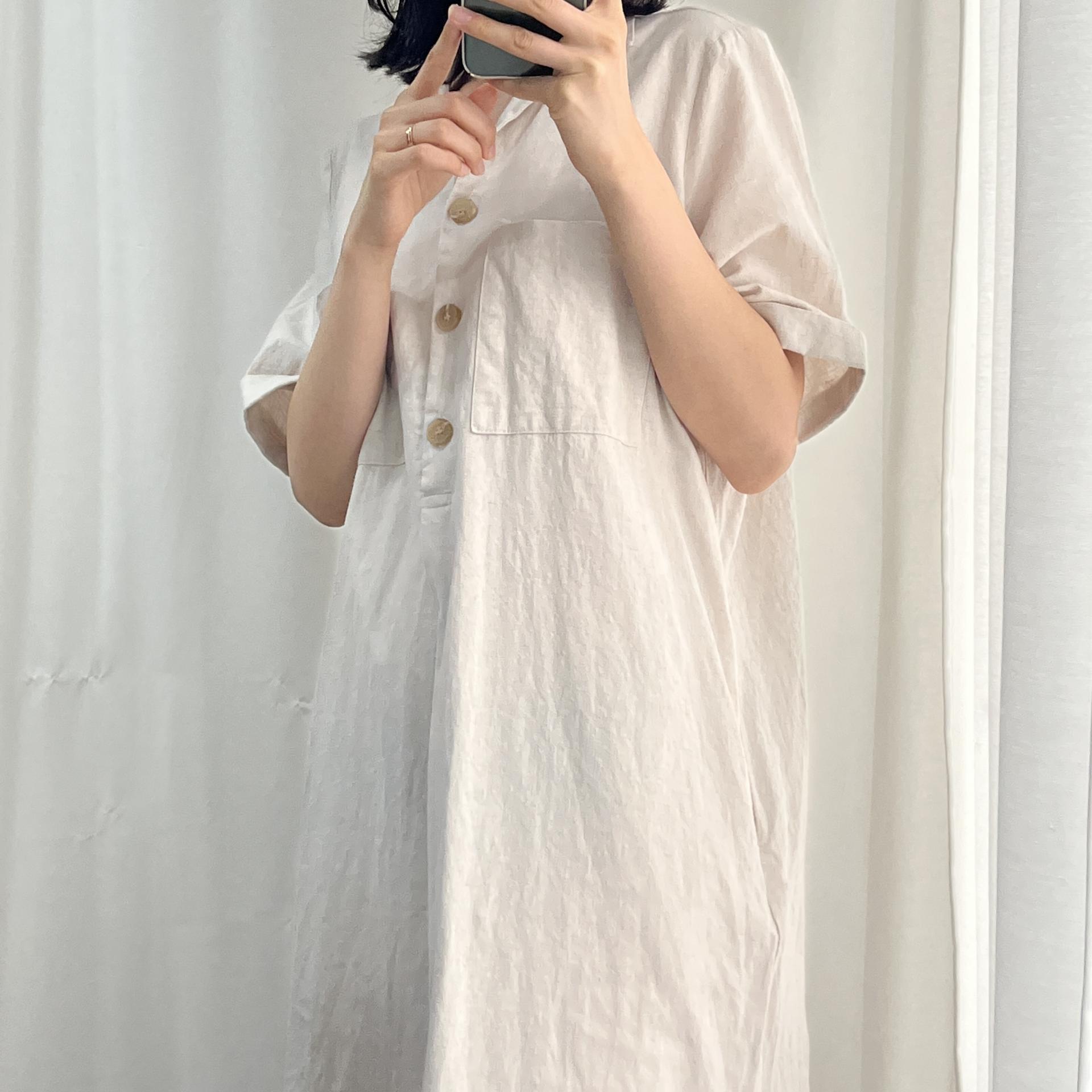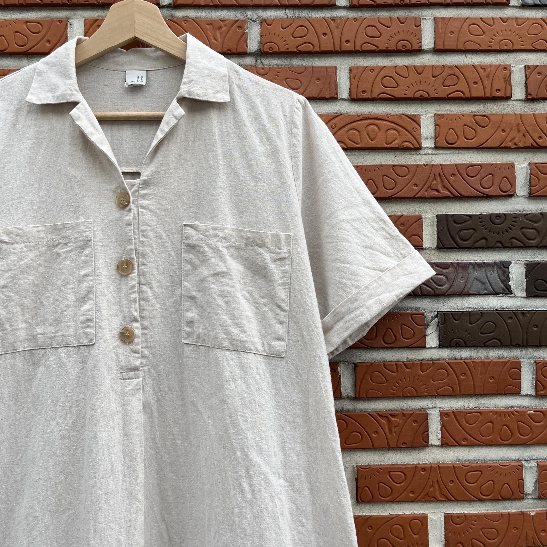 라이트 베이지 바디 컬러로 플랫 한 색감의 리넨 원피스 아이템 :)