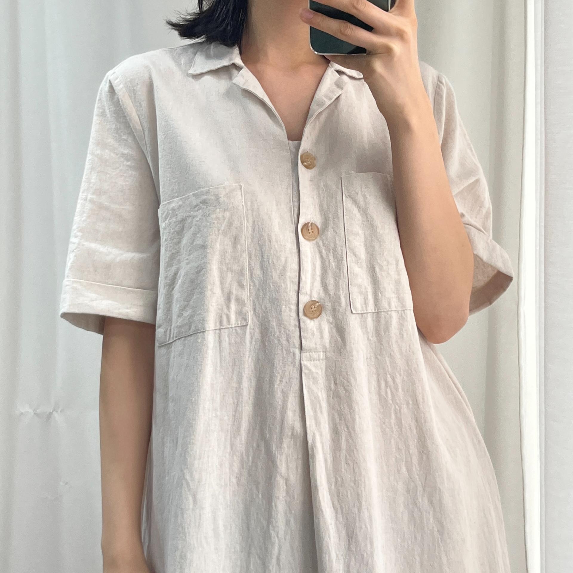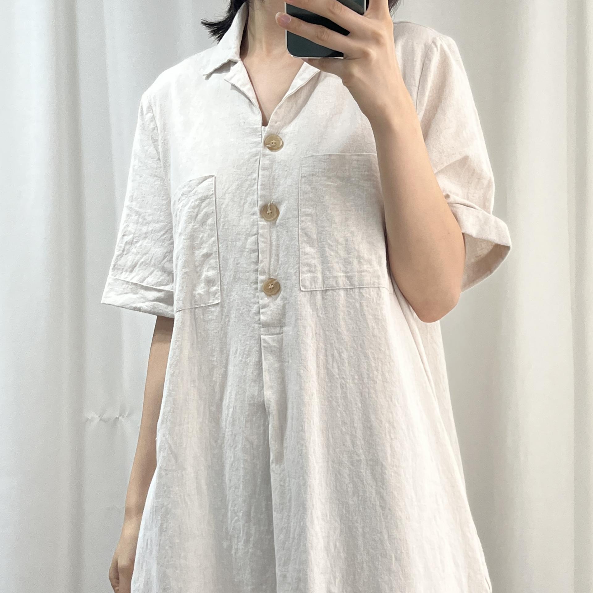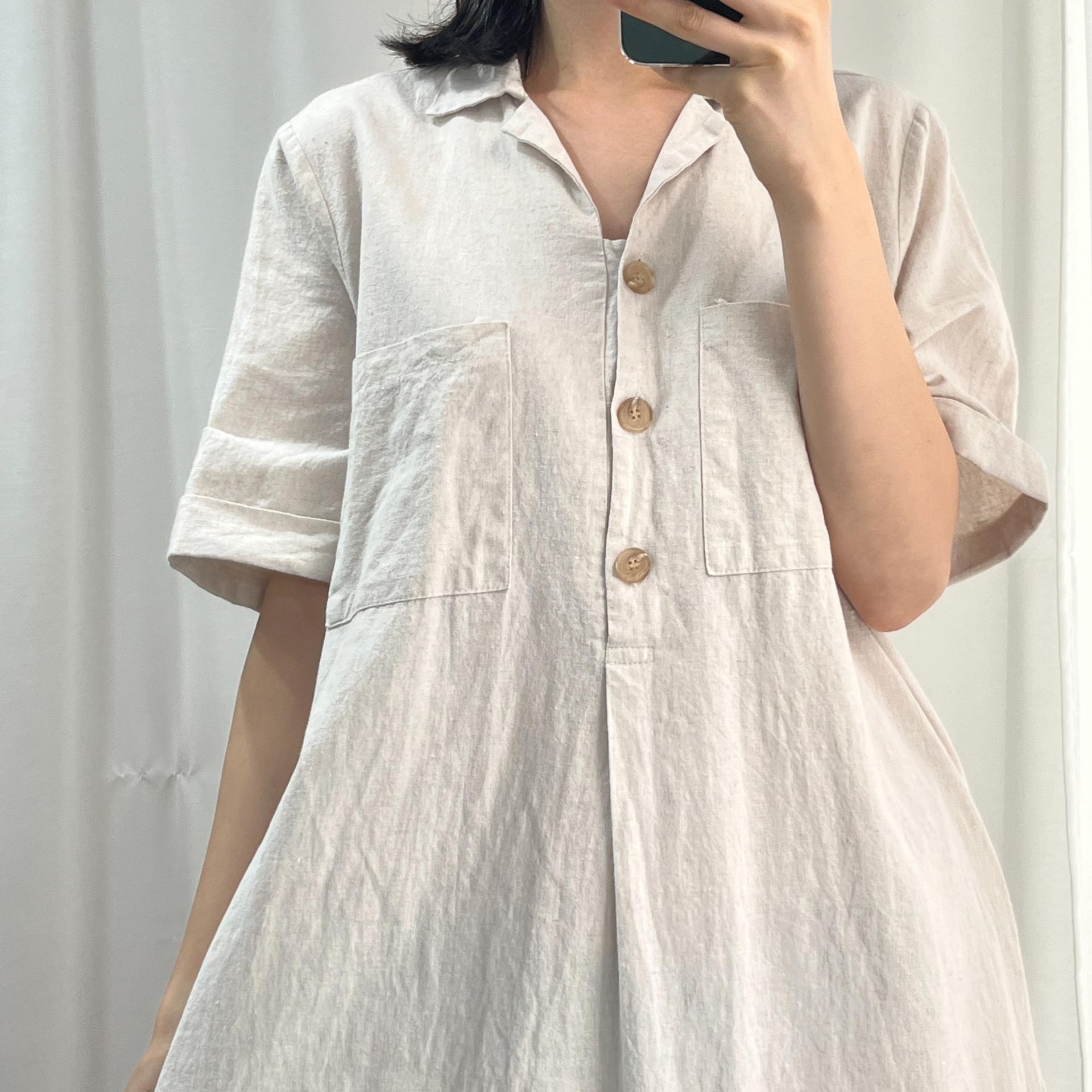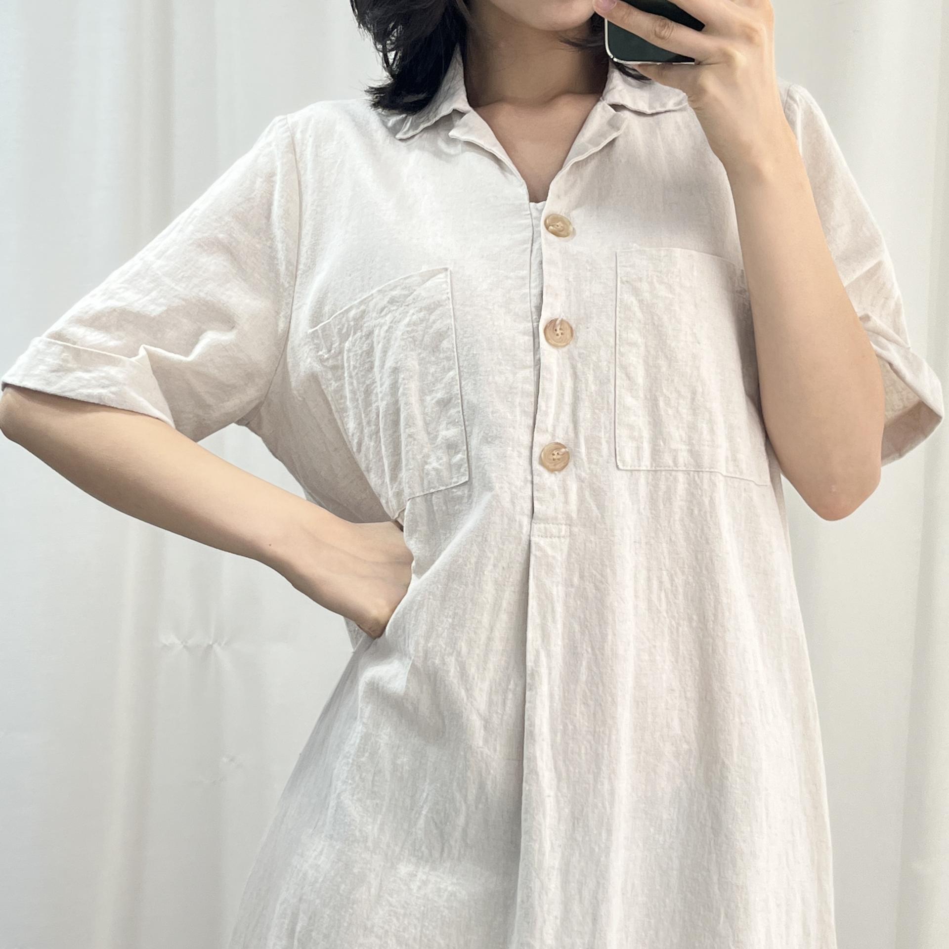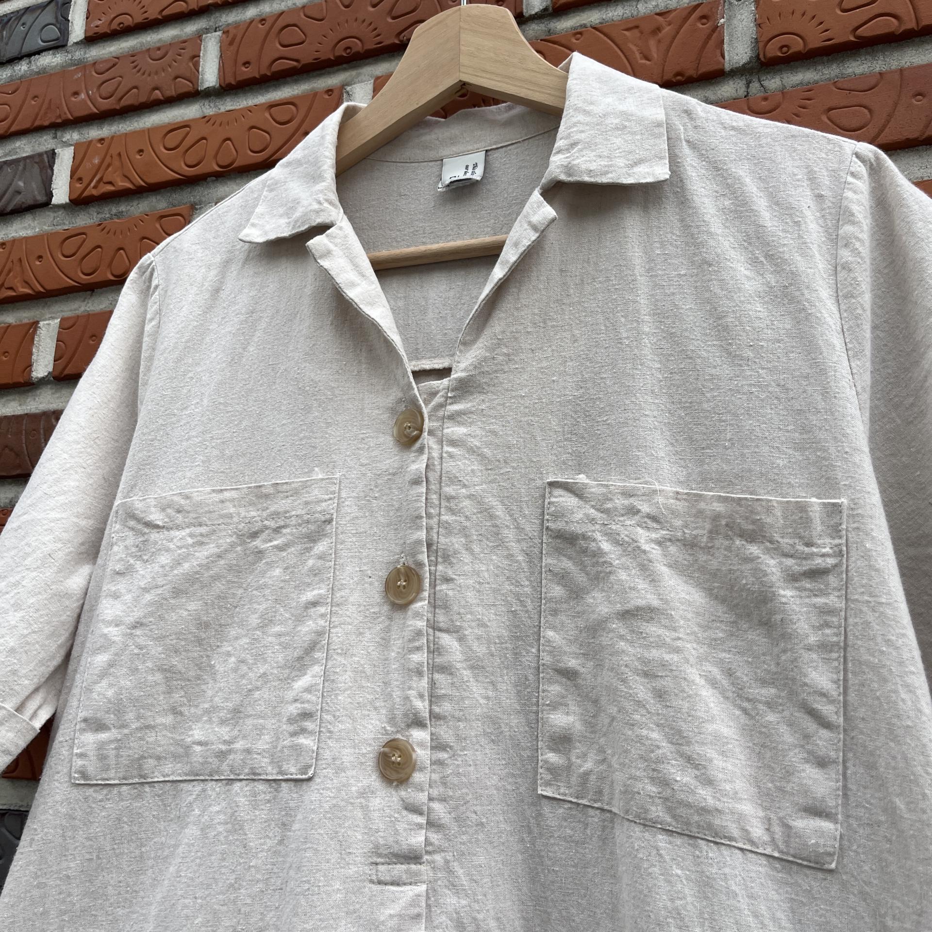 라이트 베이지 바디 컬러로 플랫 한 색감의 리넨 원피스 아이템 :)