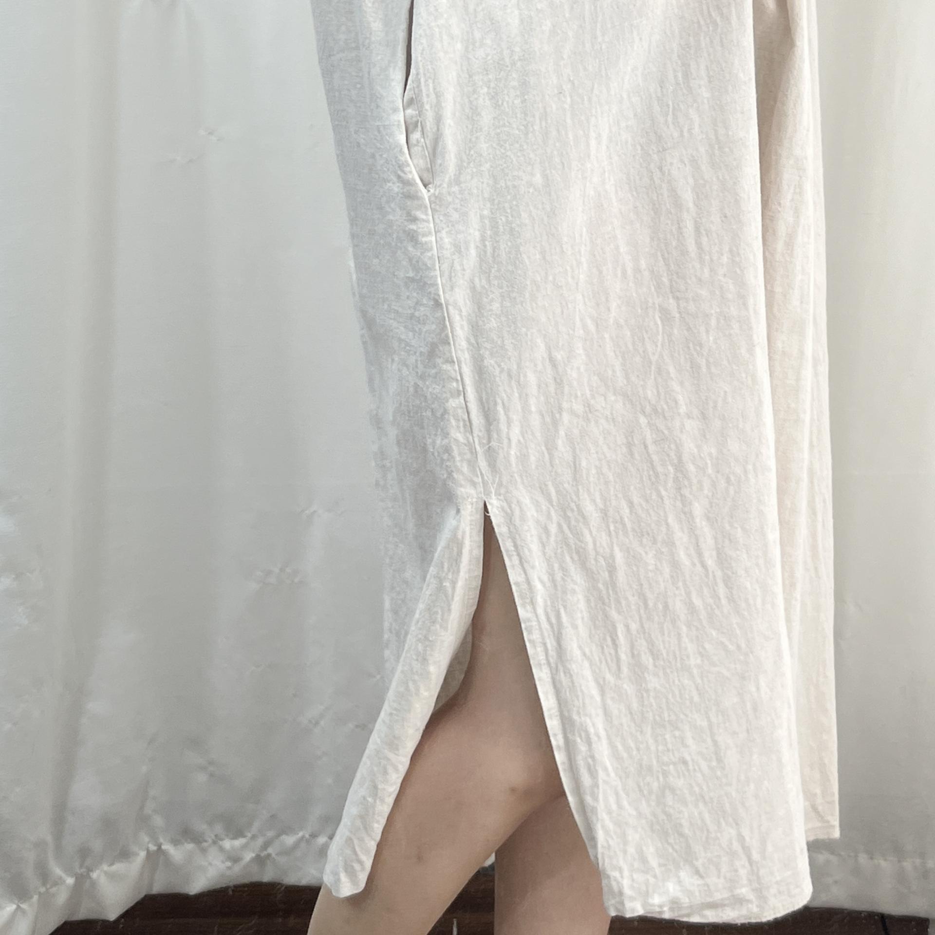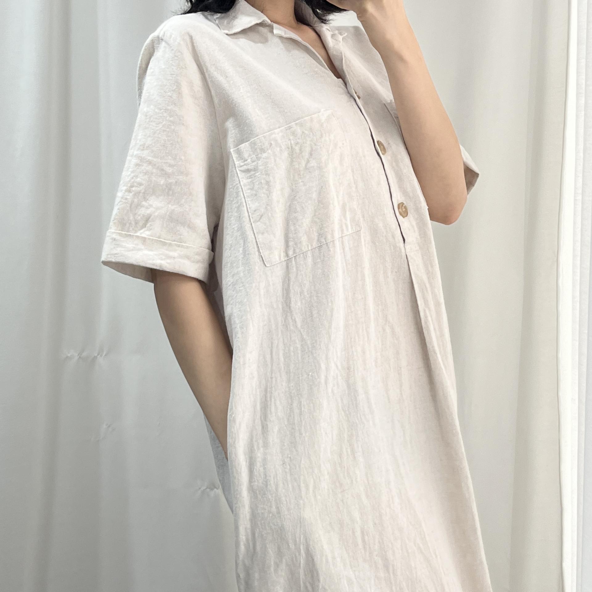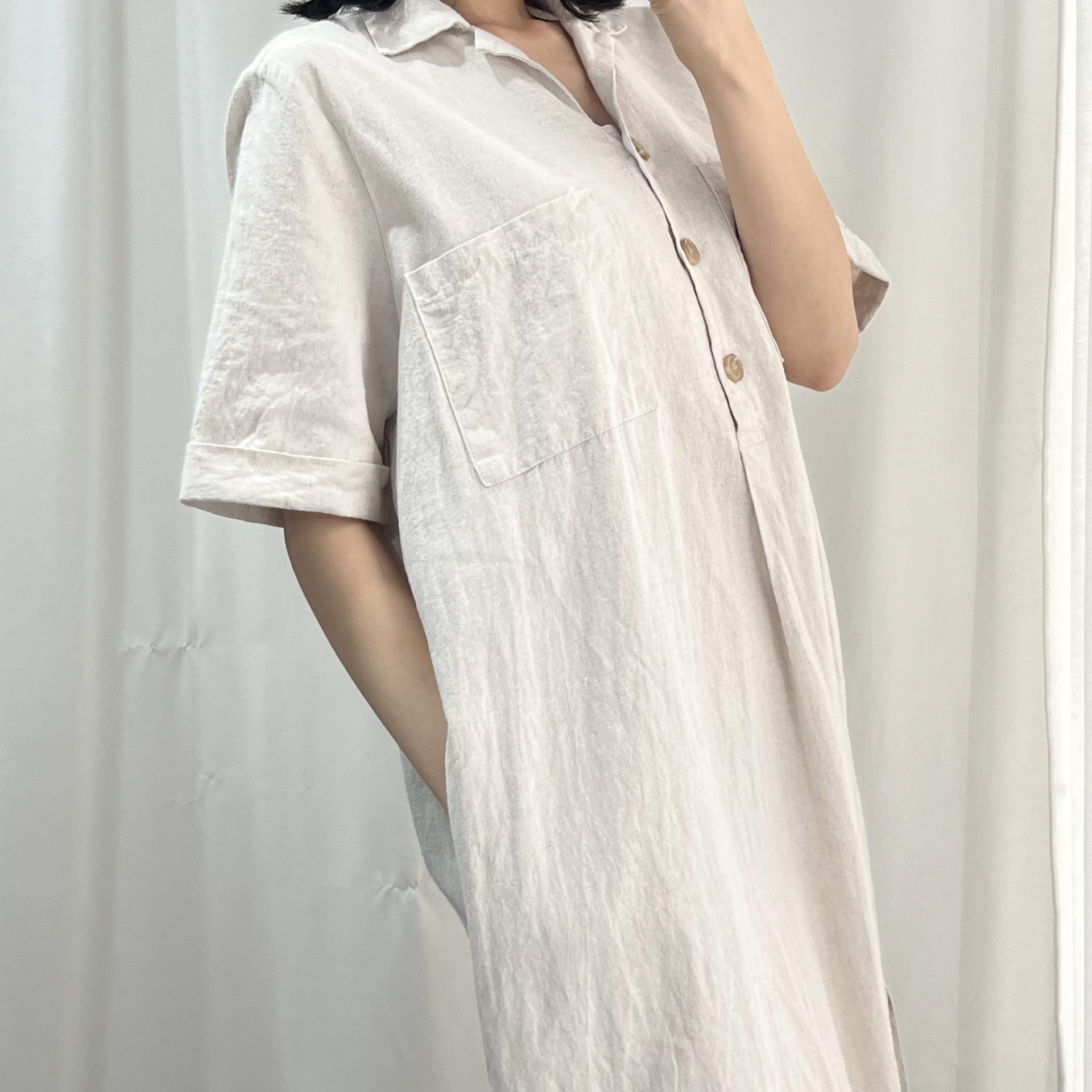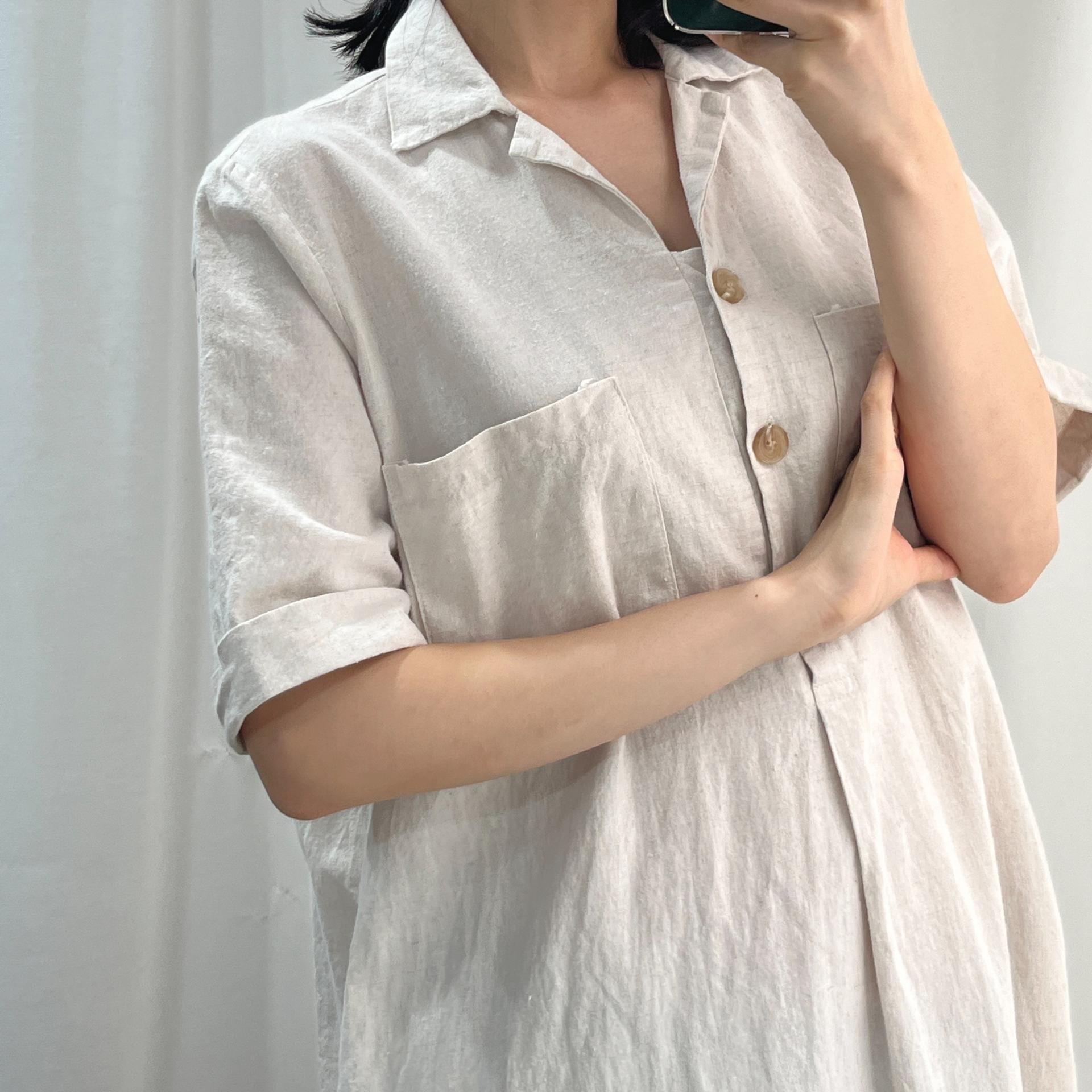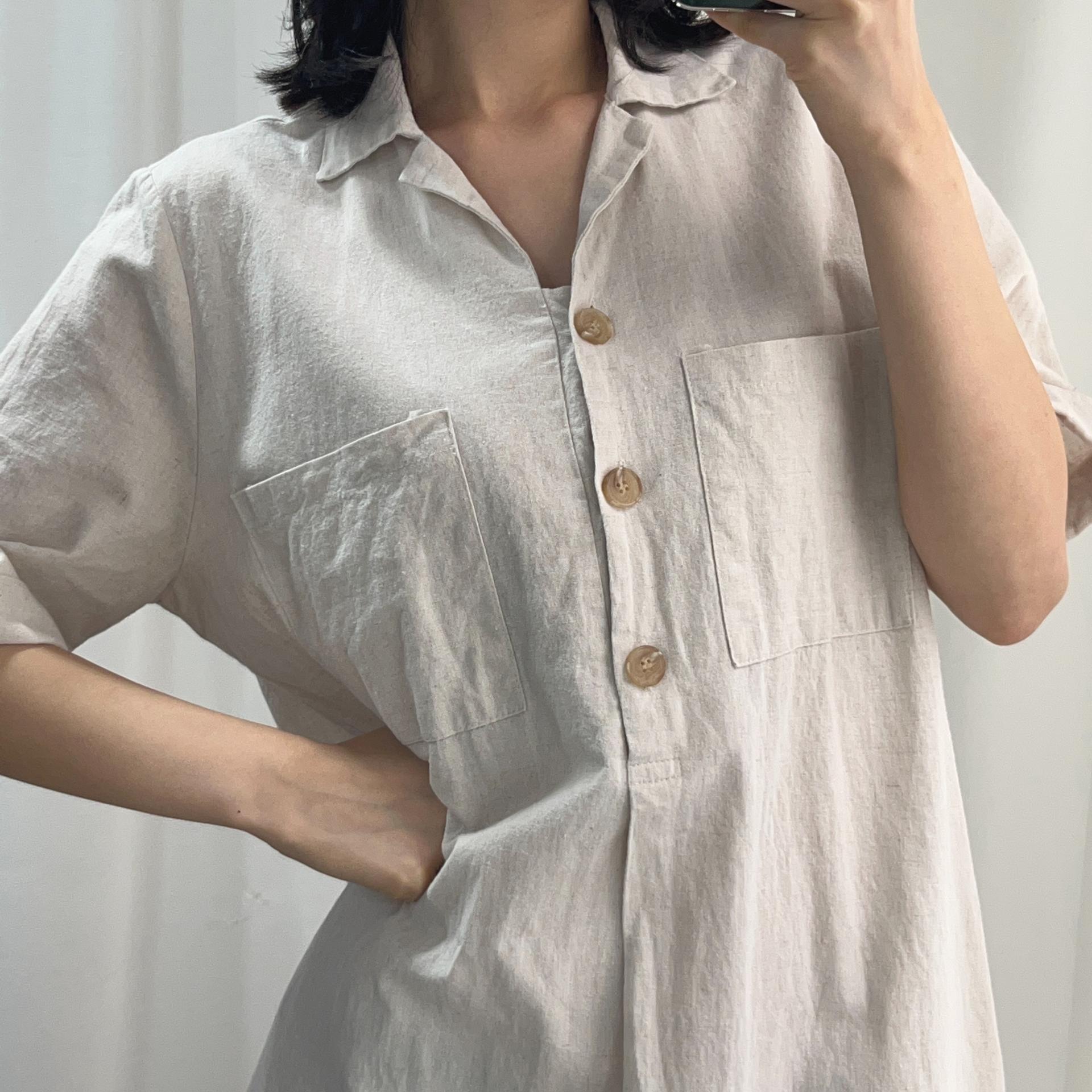 라이트 베이지 바디 컬러로 플랫 한 색감의 리넨 원피스 아이템 :)