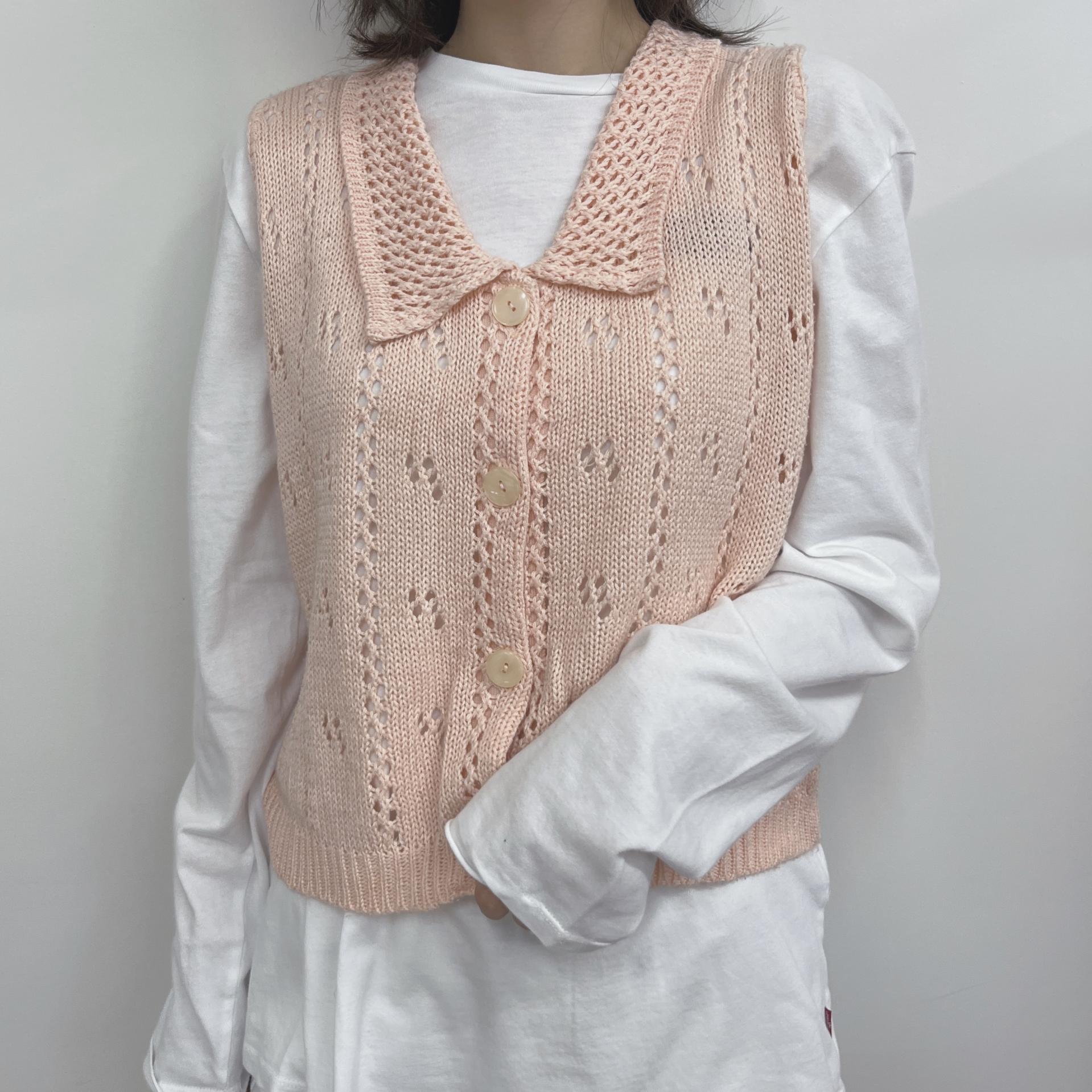 모든 계절에 레이어드 활용하기 좋은 가벼운 니트 베스트 제품입니다.