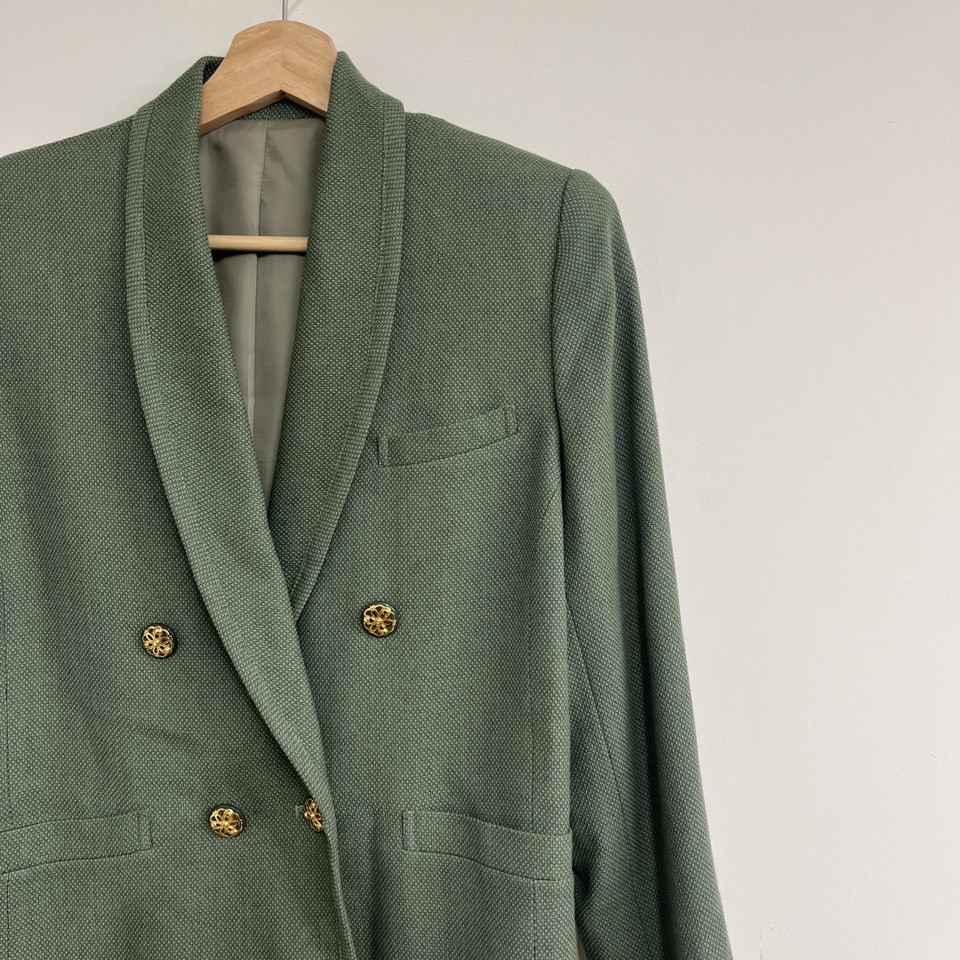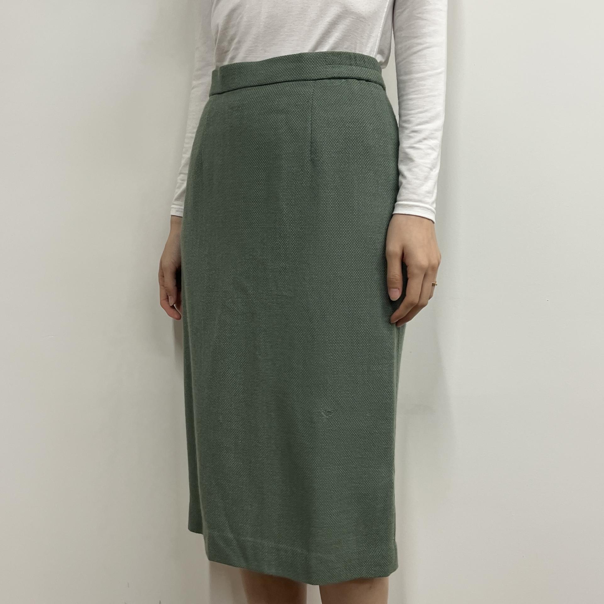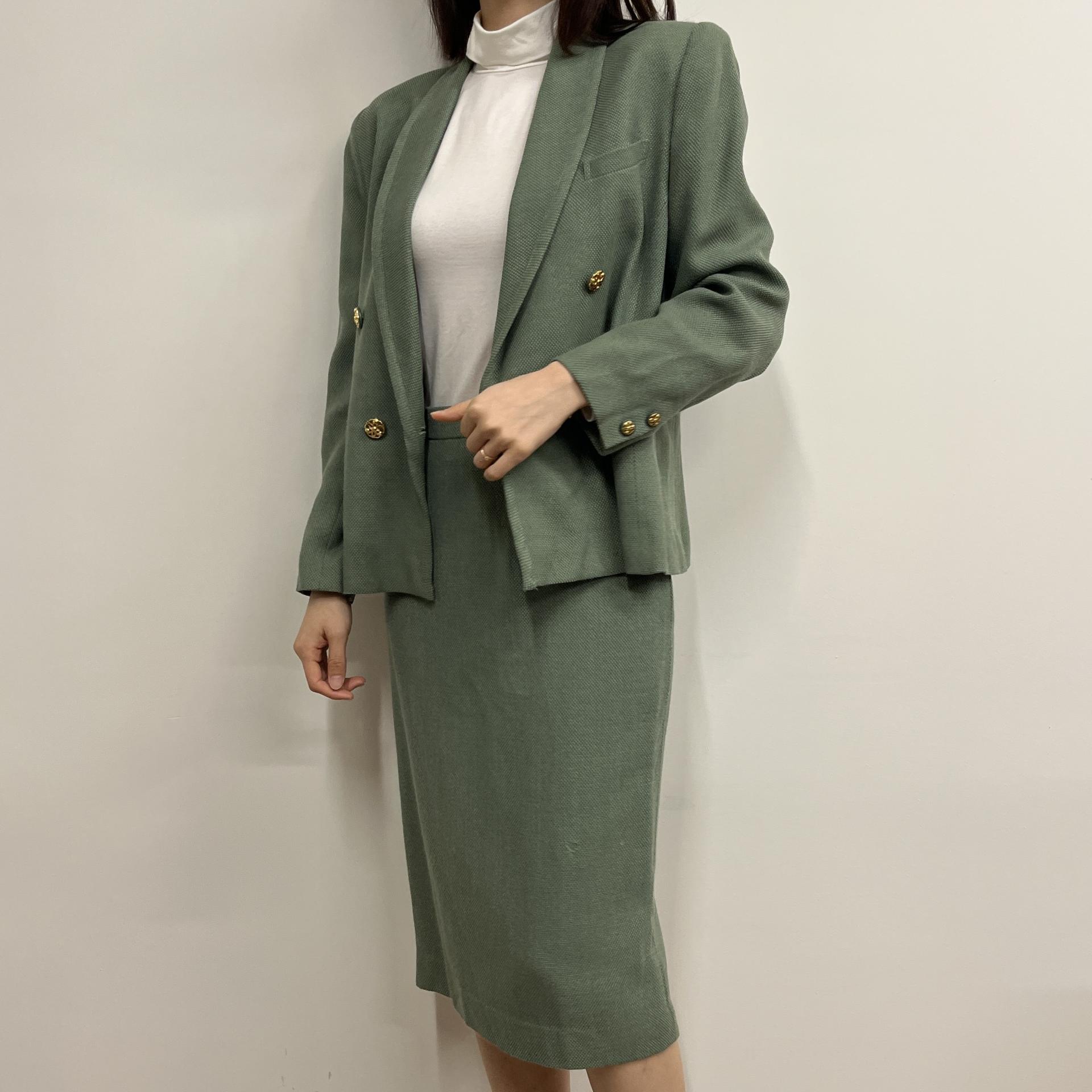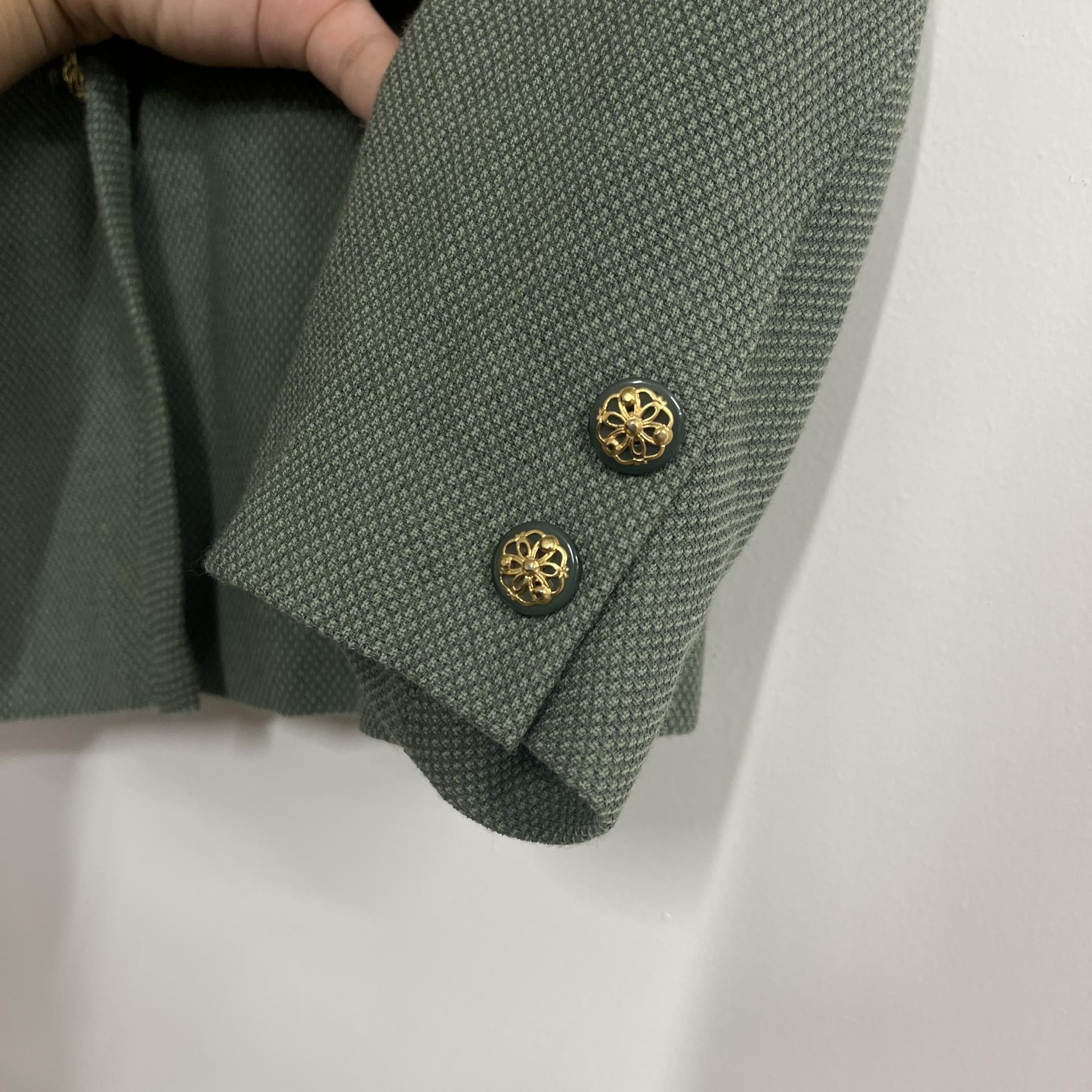 그리너리 바디 컬러와 예쁜 실루엣이 돋보이는 울 100% 셋업 제품입니다.