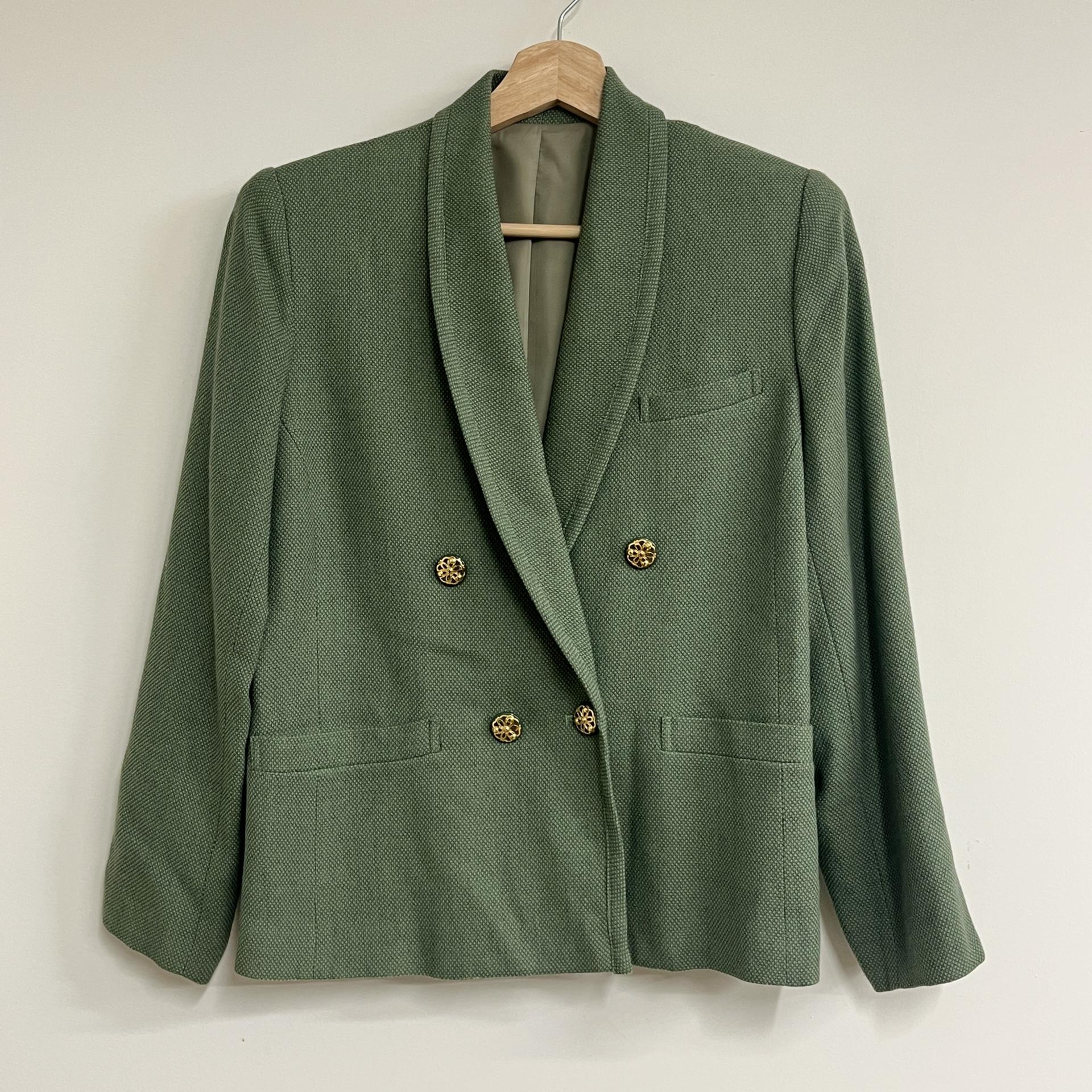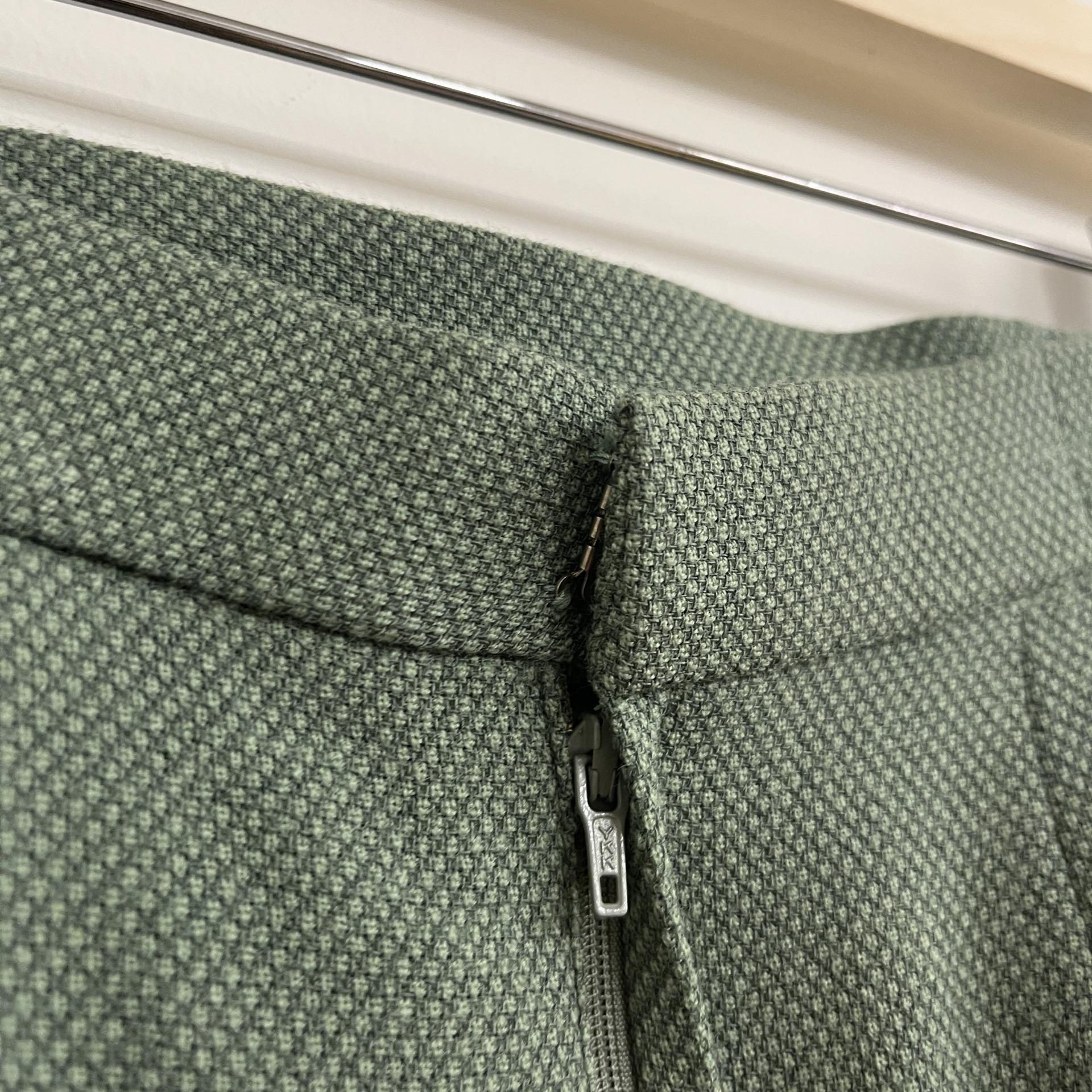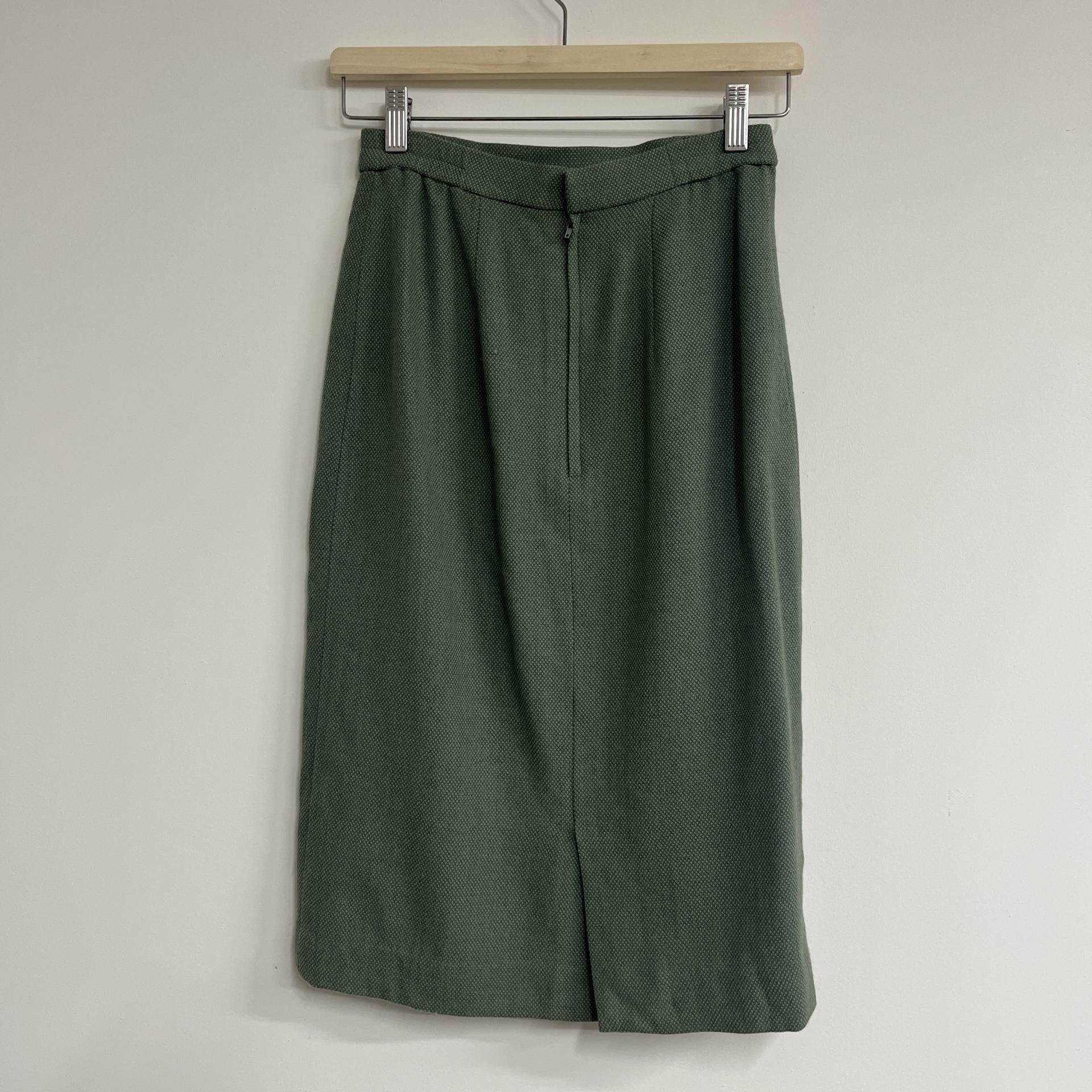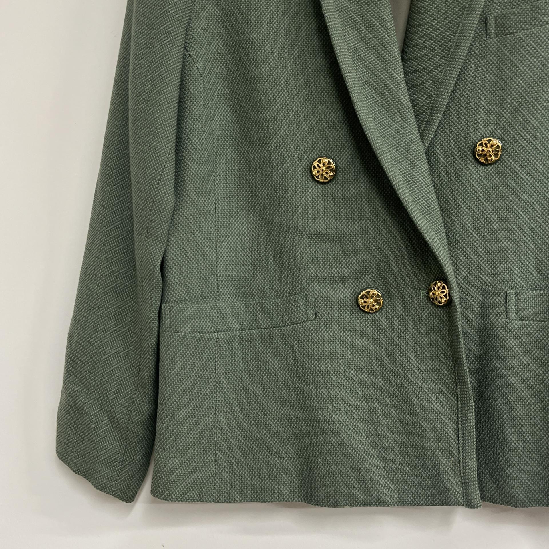 그리너리 바디 컬러와 예쁜 실루엣이 돋보이는 울 100% 셋업 제품입니다.