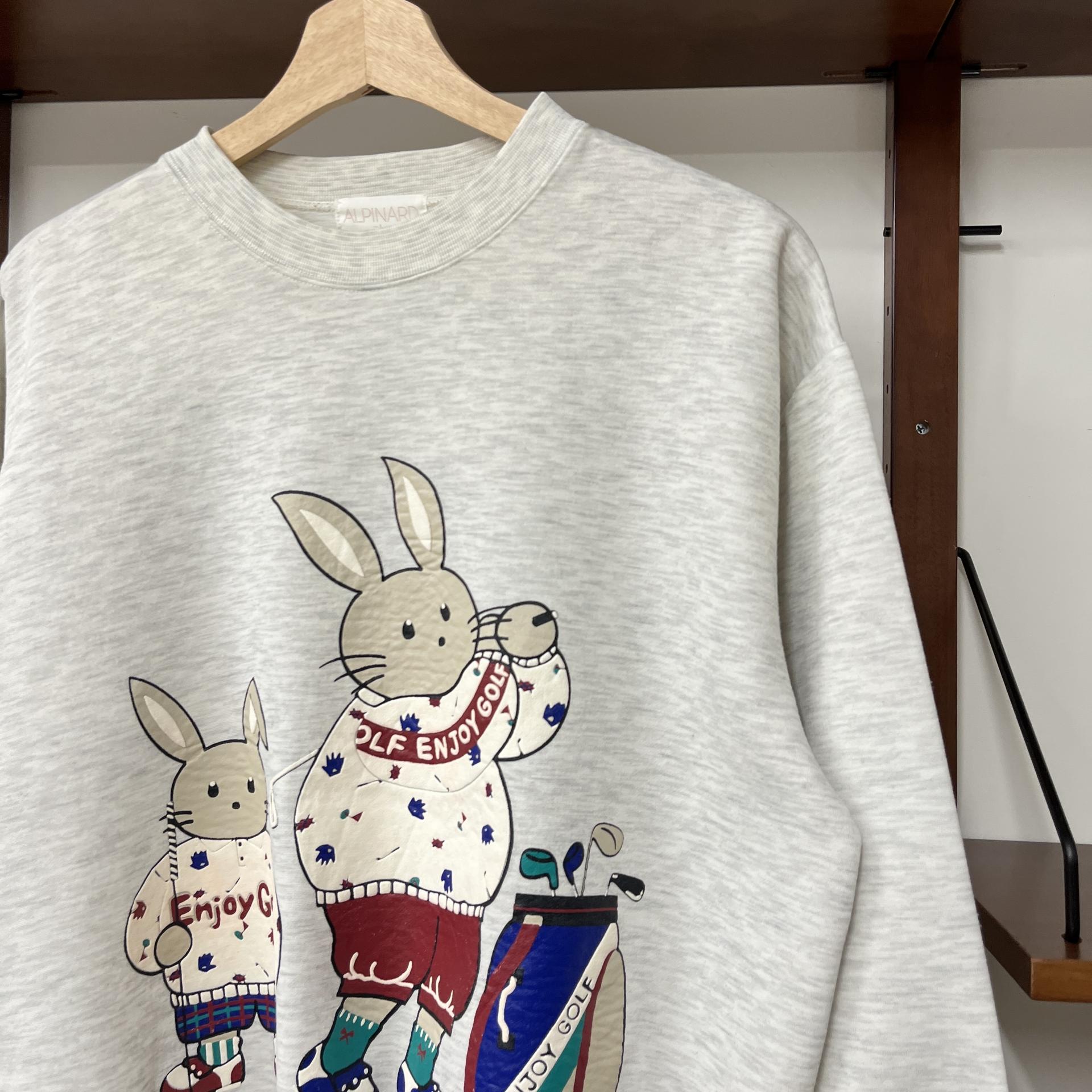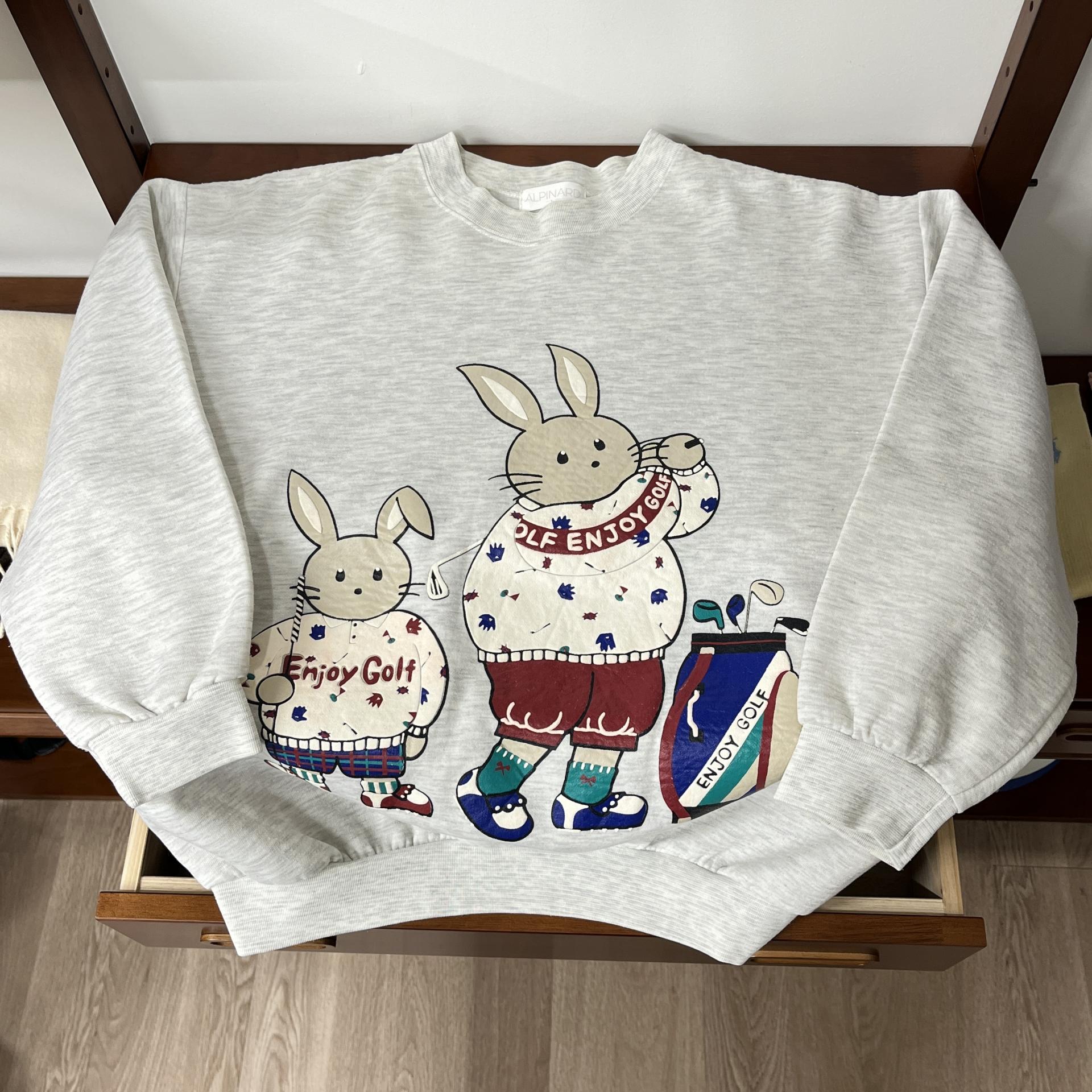 밝은 라이트 그레이 바디 컬러 위 토끼 프린팅 포인트가 돋보이는 스웨트셔츠 제품입니다.