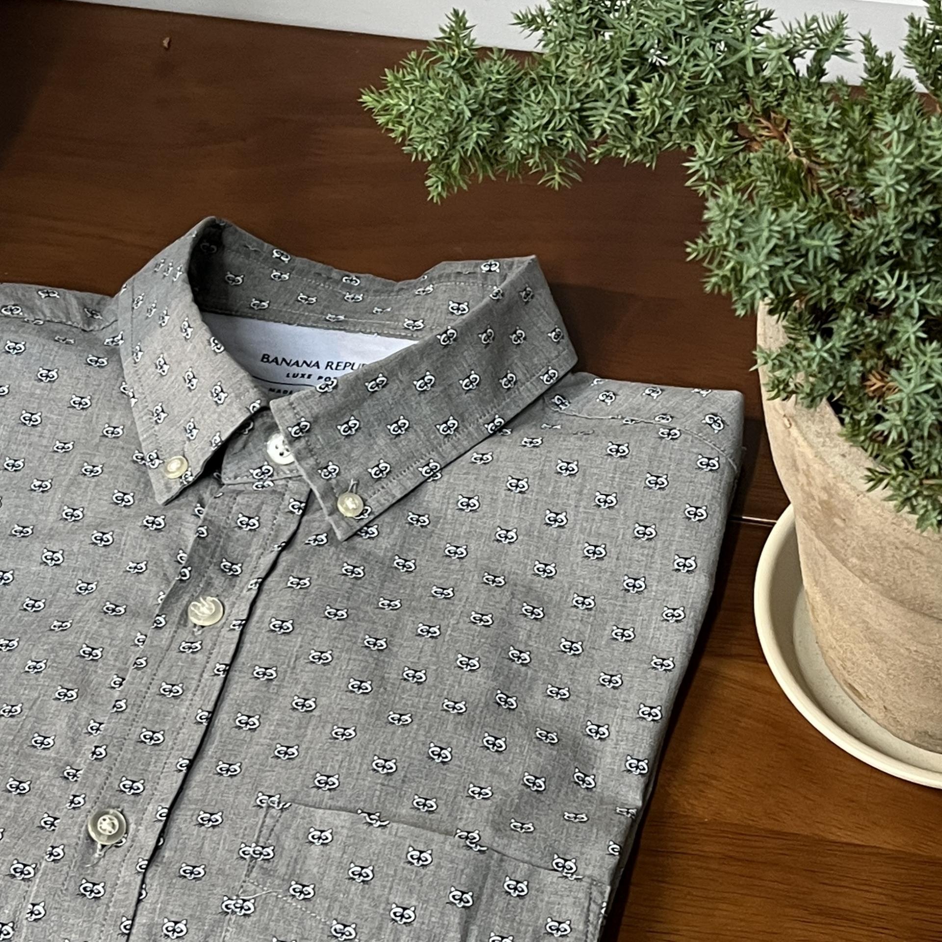 귀여운 너구리 패턴이 돋보이는 바나나 리퍼블릭사의 셔츠 아이템입니다.