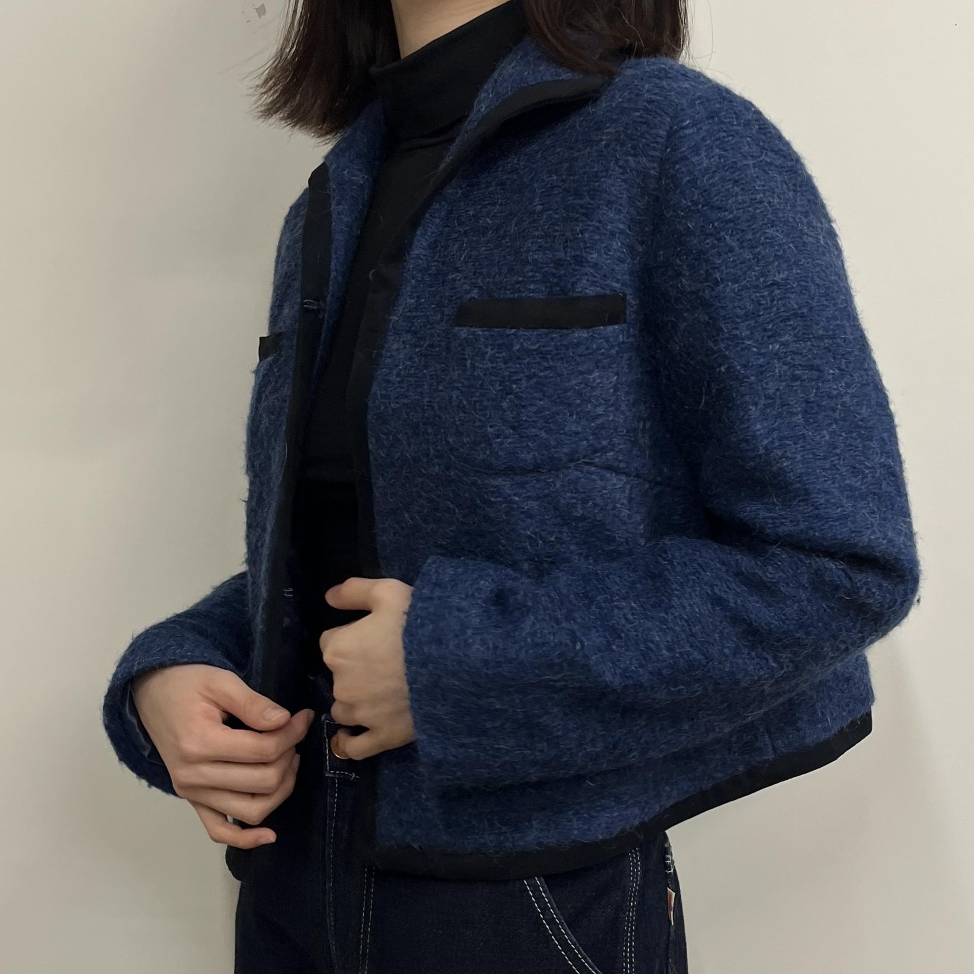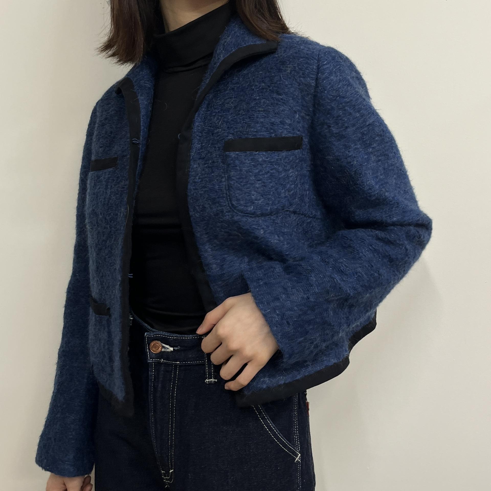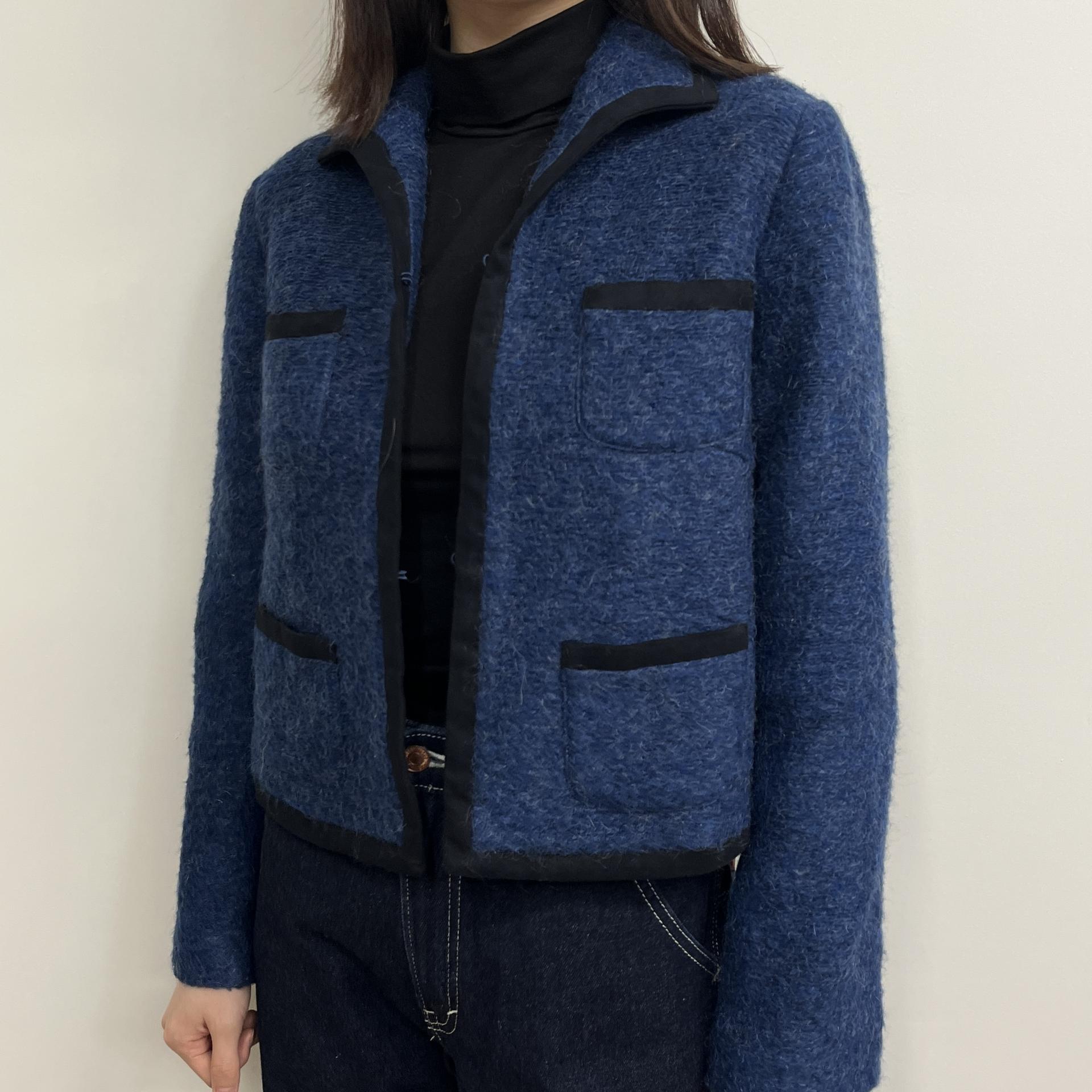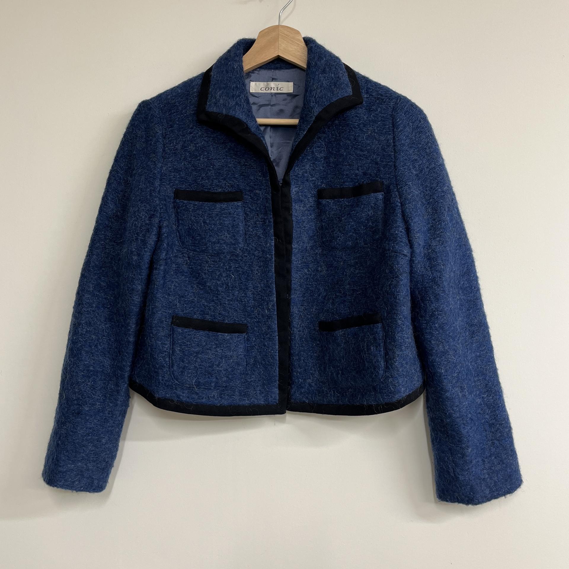 복실복실하고 예쁜 모헤어 울 혼방 소재의 겉감과 고급스러운 푸른 색감이 돋보이는 CONIC의 아우터 제품입니다.