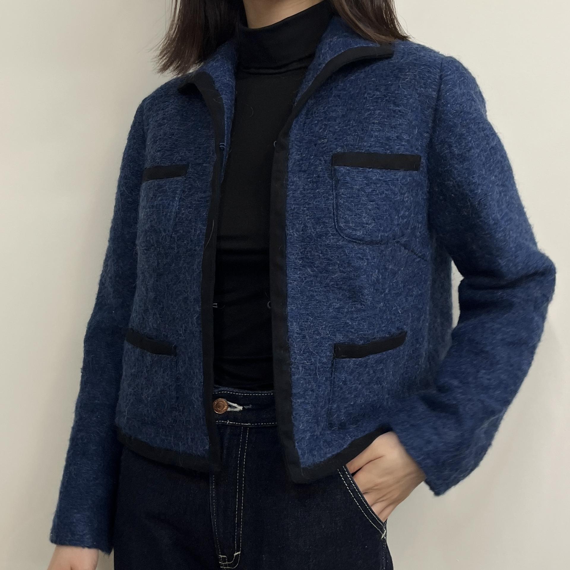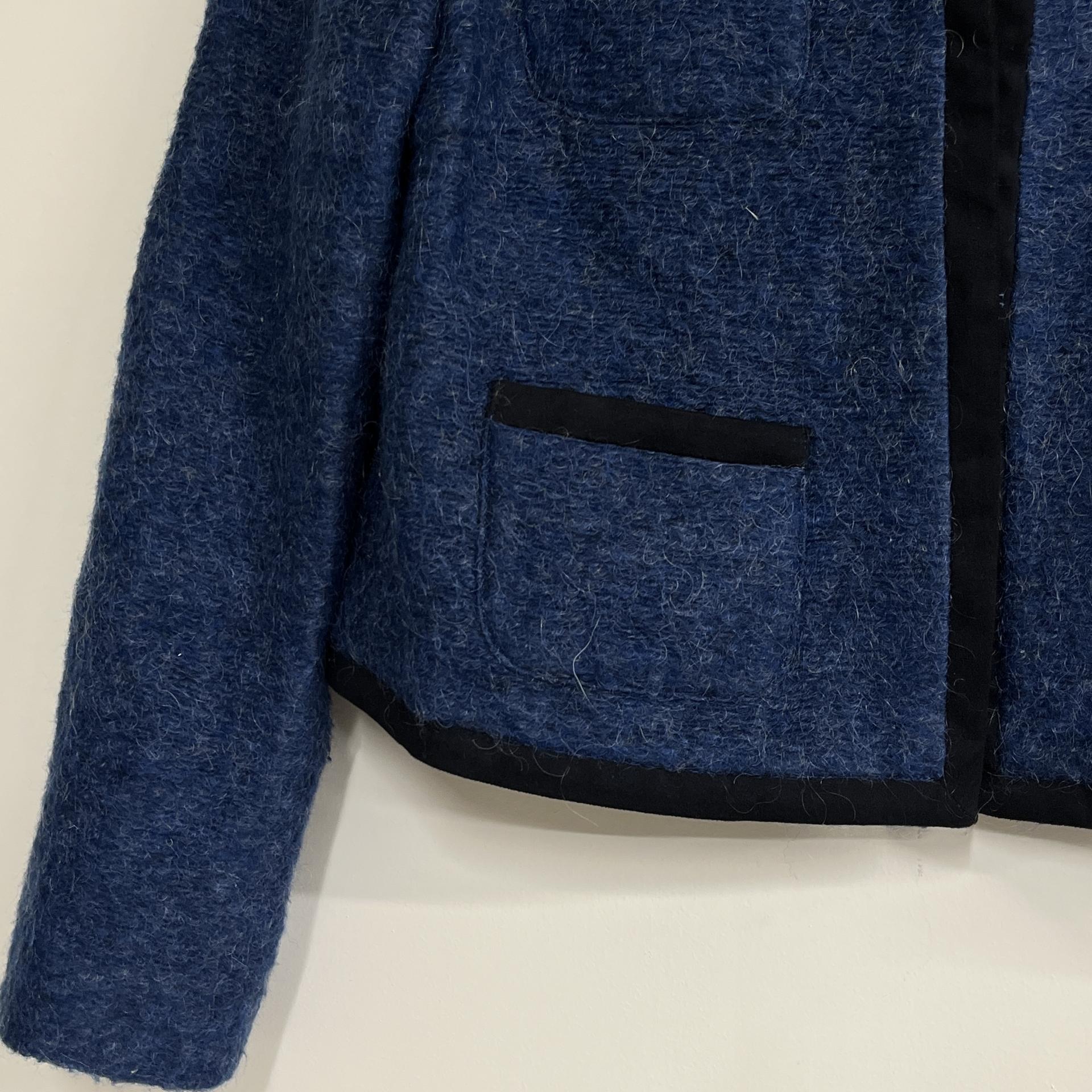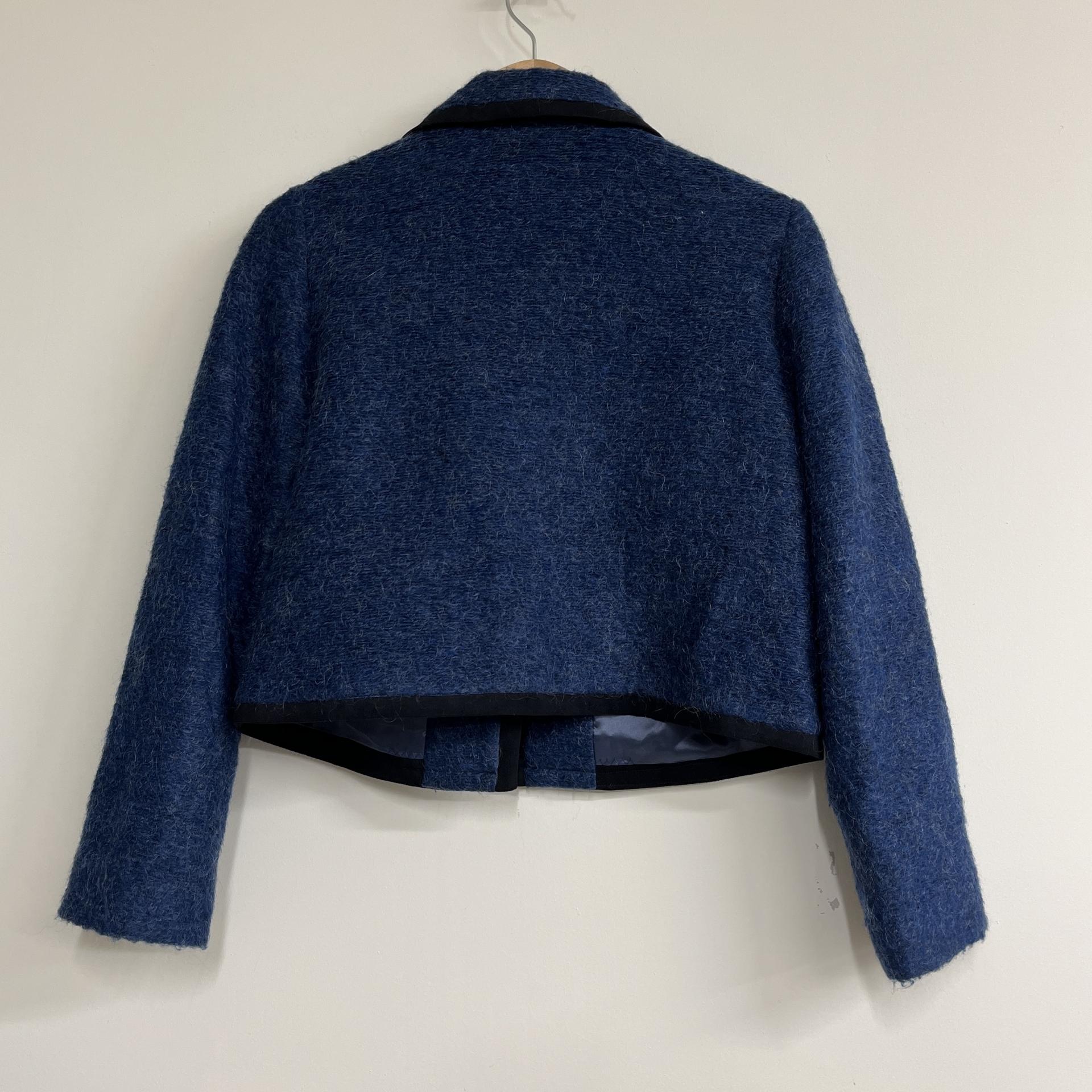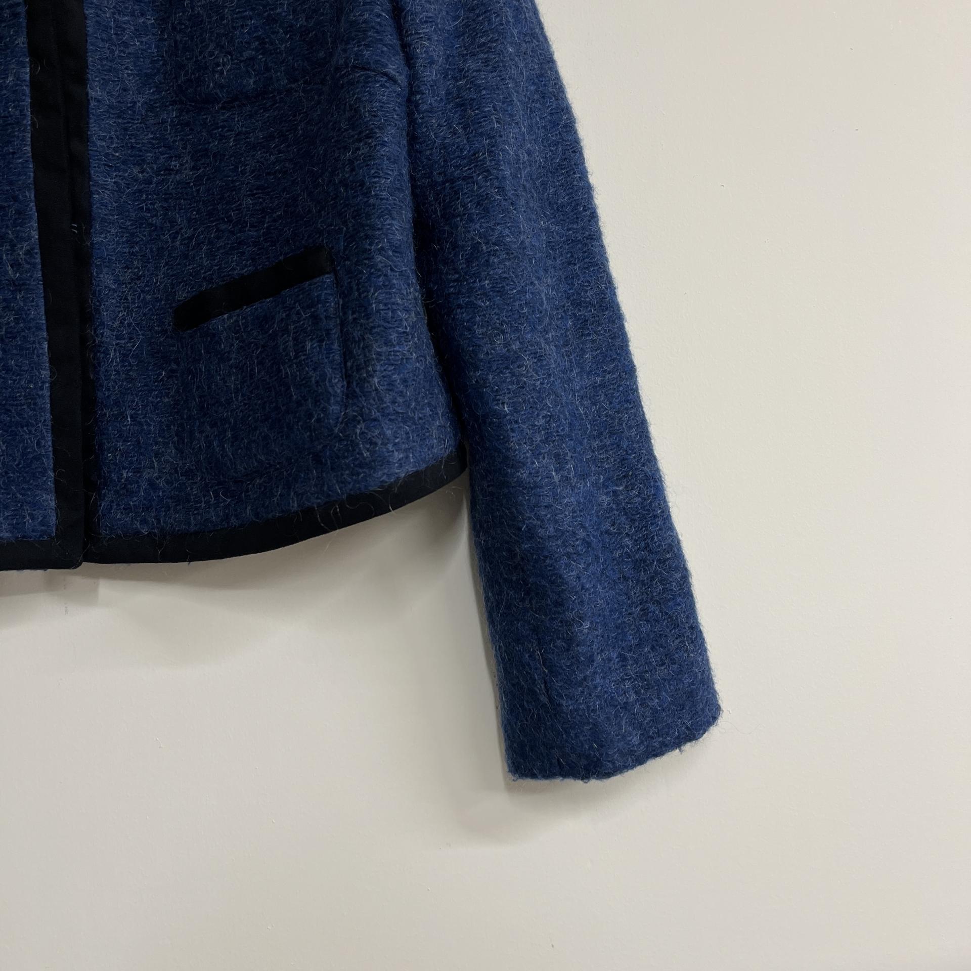 복실복실하고 예쁜 모헤어 울 혼방 소재의 겉감과 고급스러운 푸른 색감이 돋보이는 CONIC의 아우터 제품입니다.