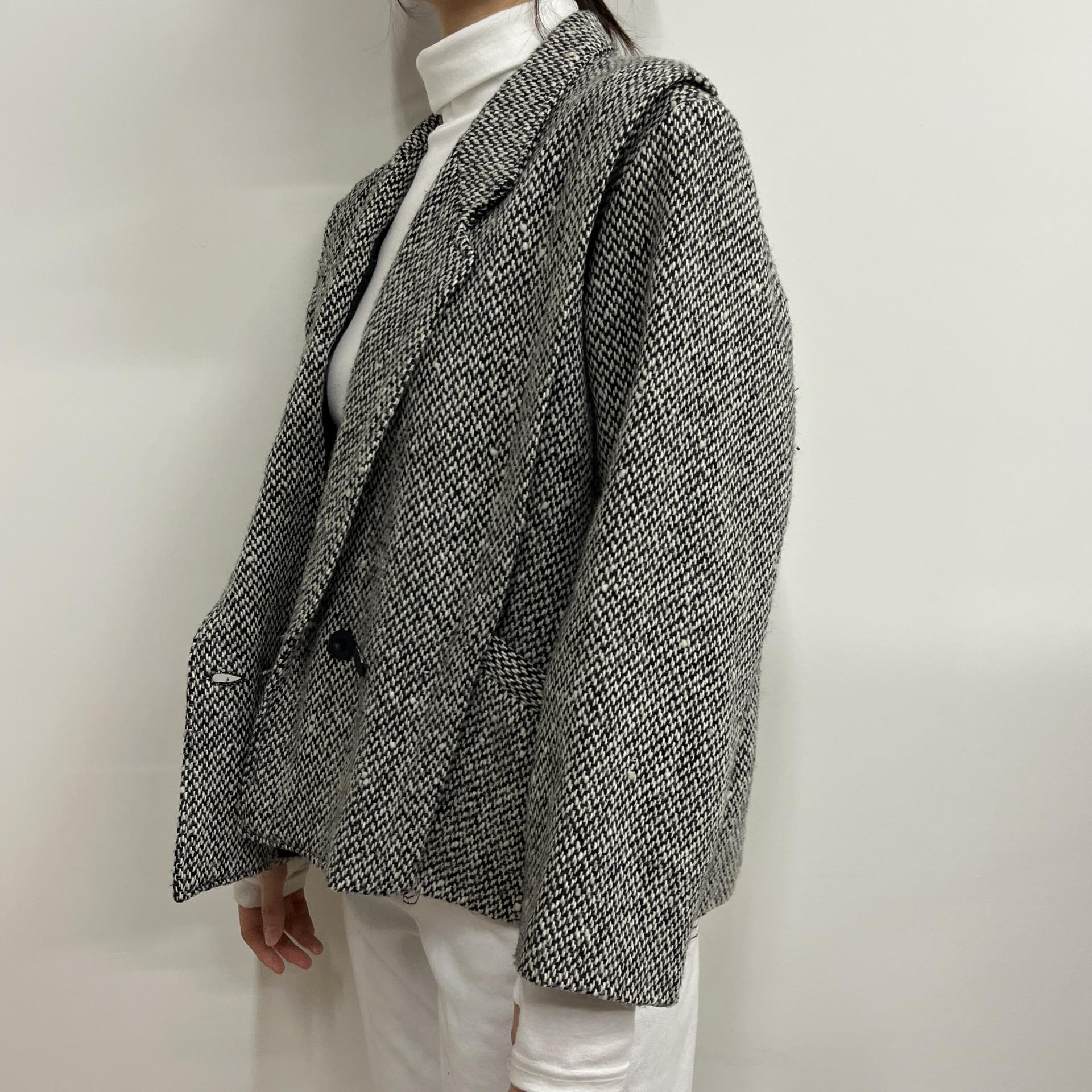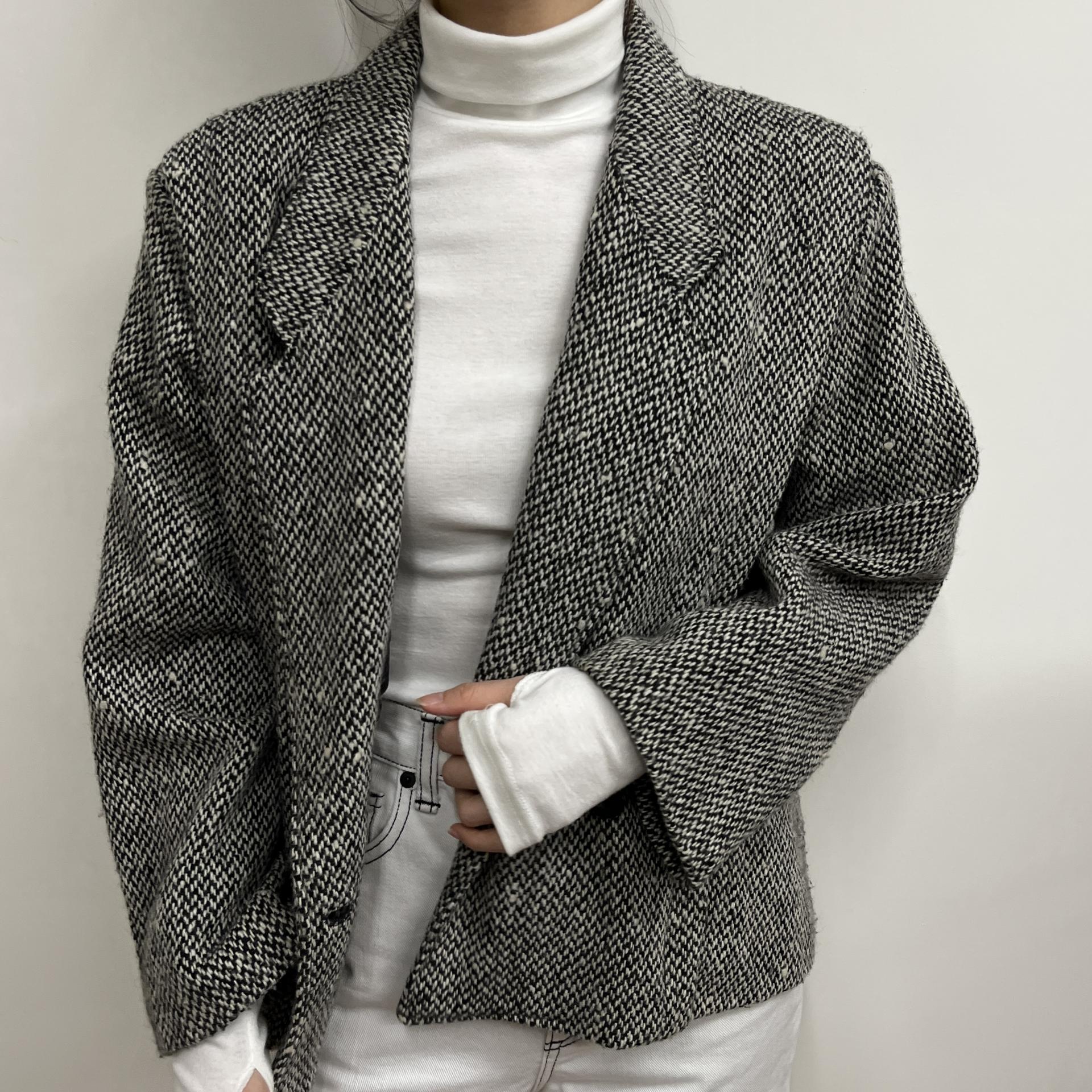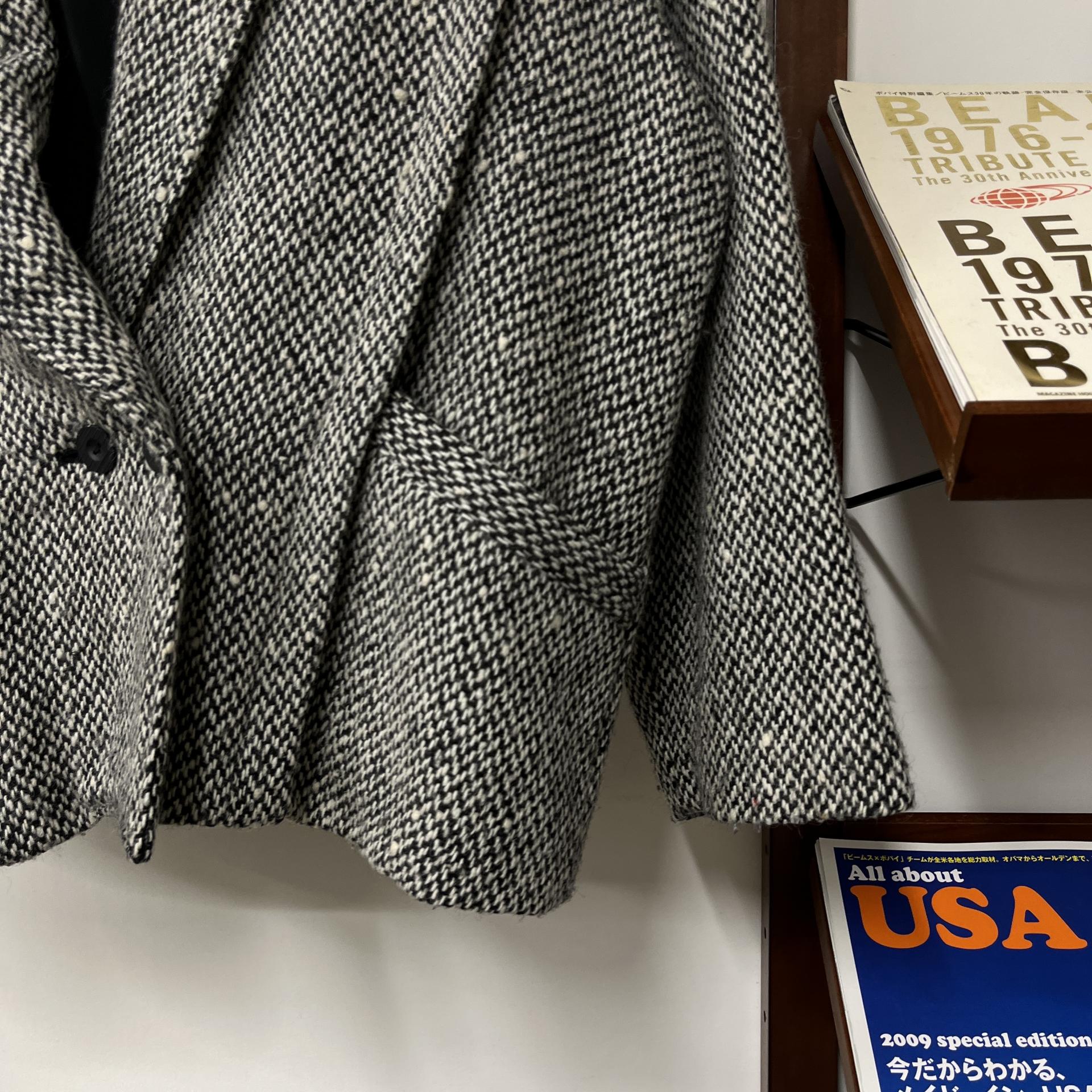 사이드로 이어지는 2버튼 포인트와 독특한 실루엣이 인상적인 90년대 일본제 울 자켓입니다.