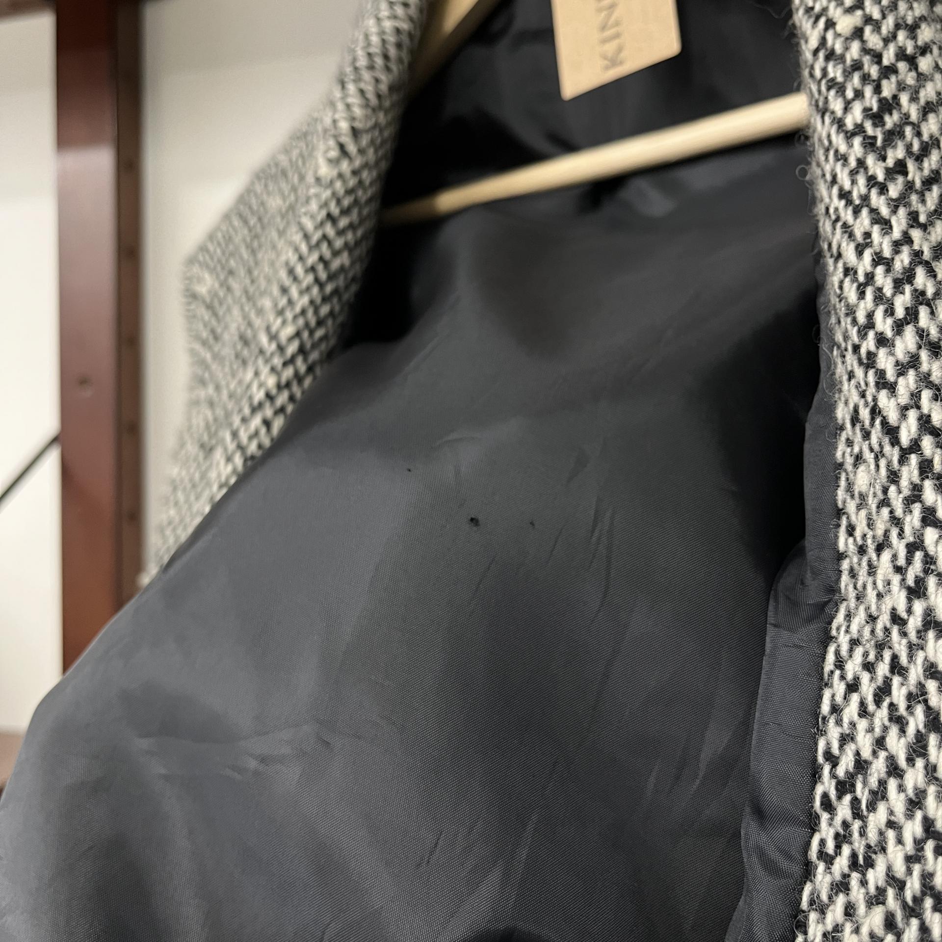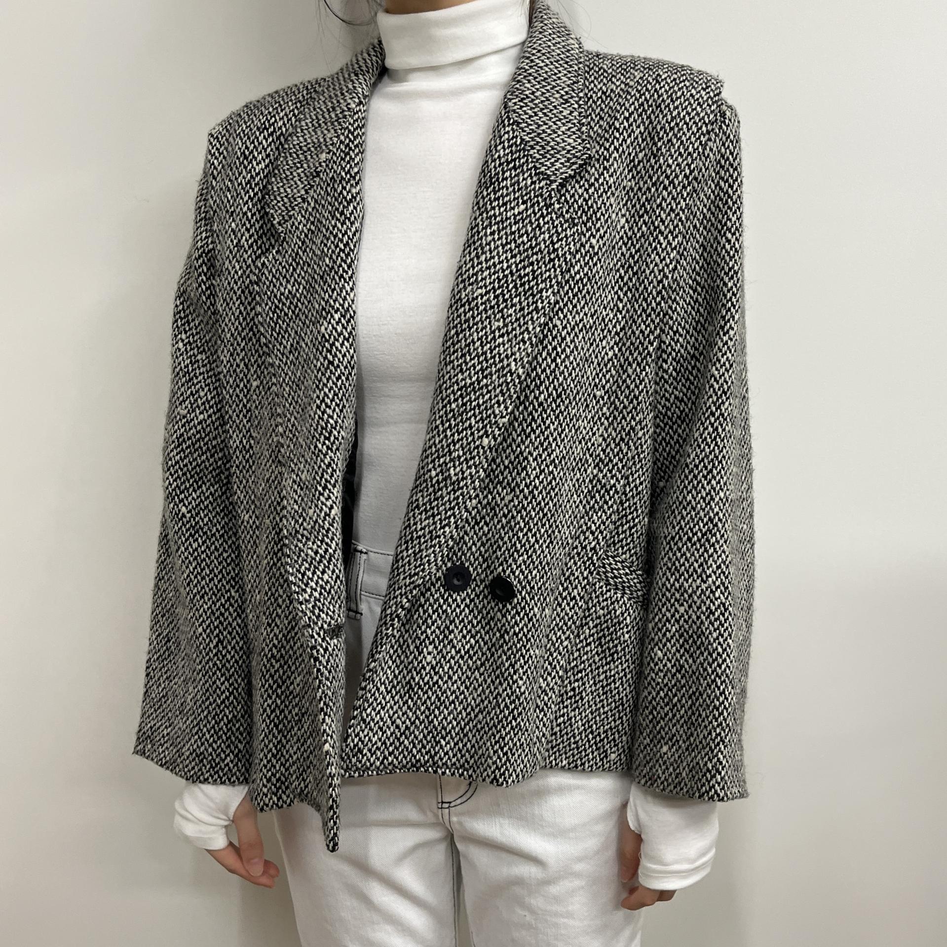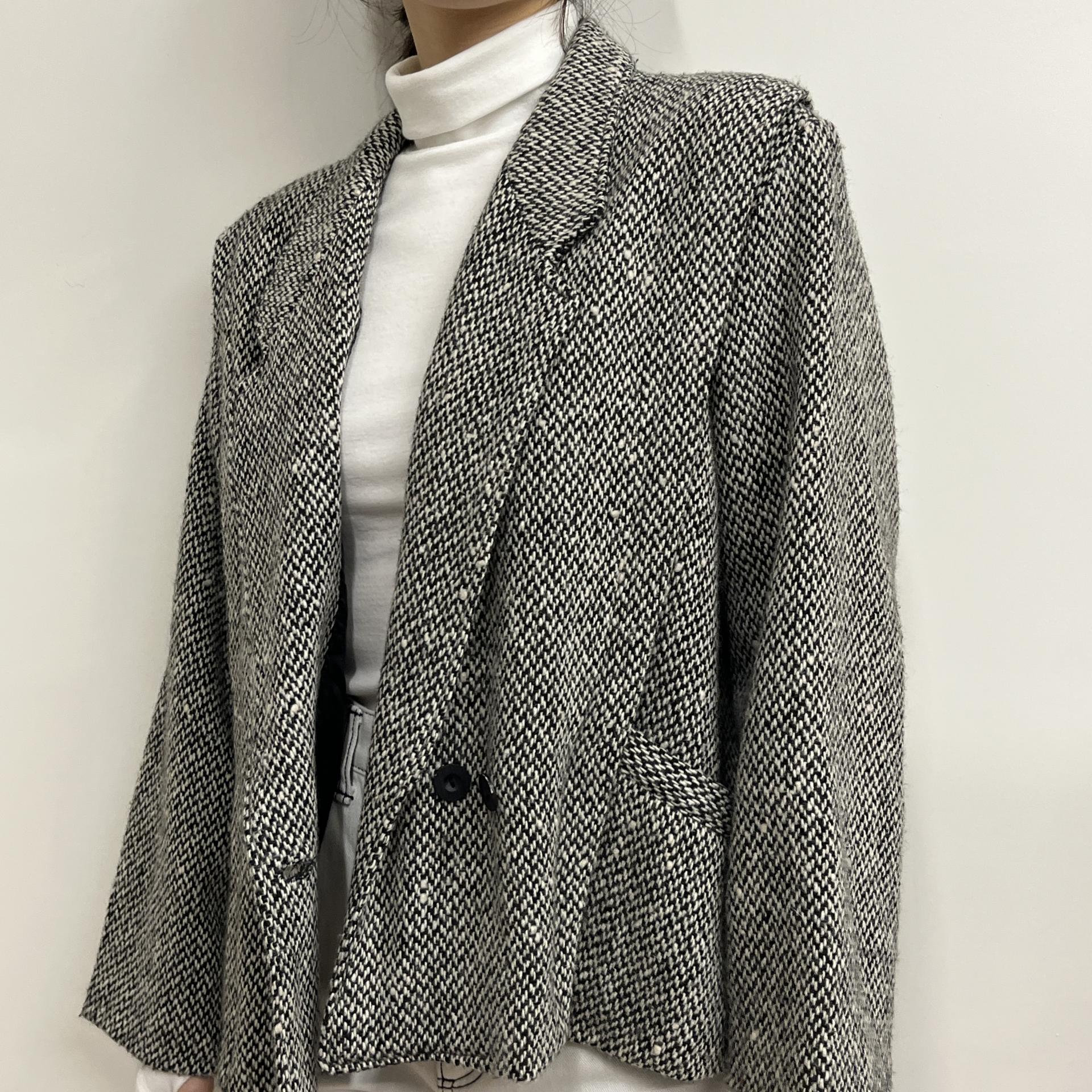 사이드로 이어지는 2버튼 포인트와 독특한 실루엣이 인상적인 90년대 일본제 울 자켓입니다.