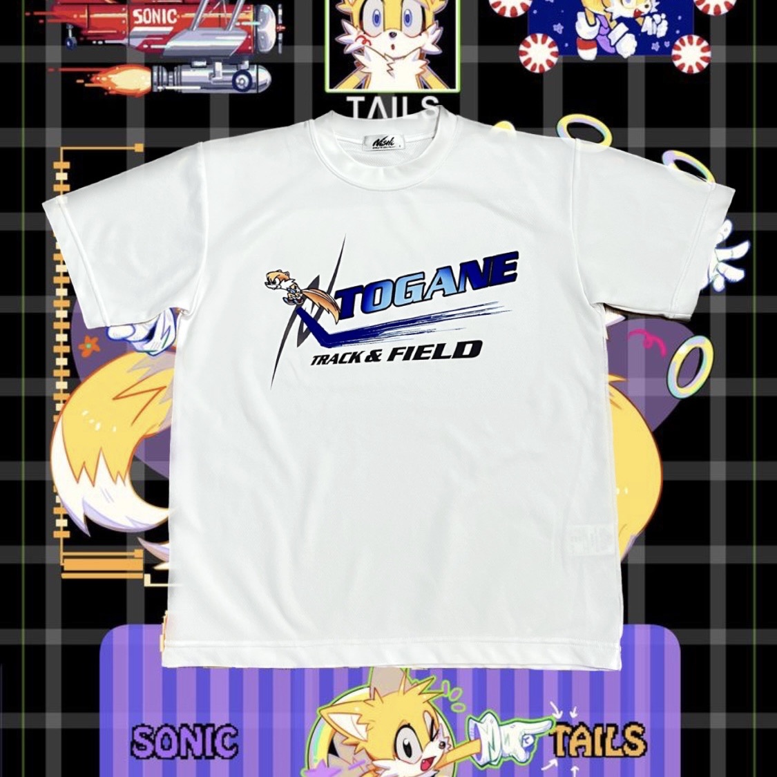소닉의 귀여운 캐릭터 테일즈 프린팅 포인트가 돋보이는 티셔츠 제품입니다.