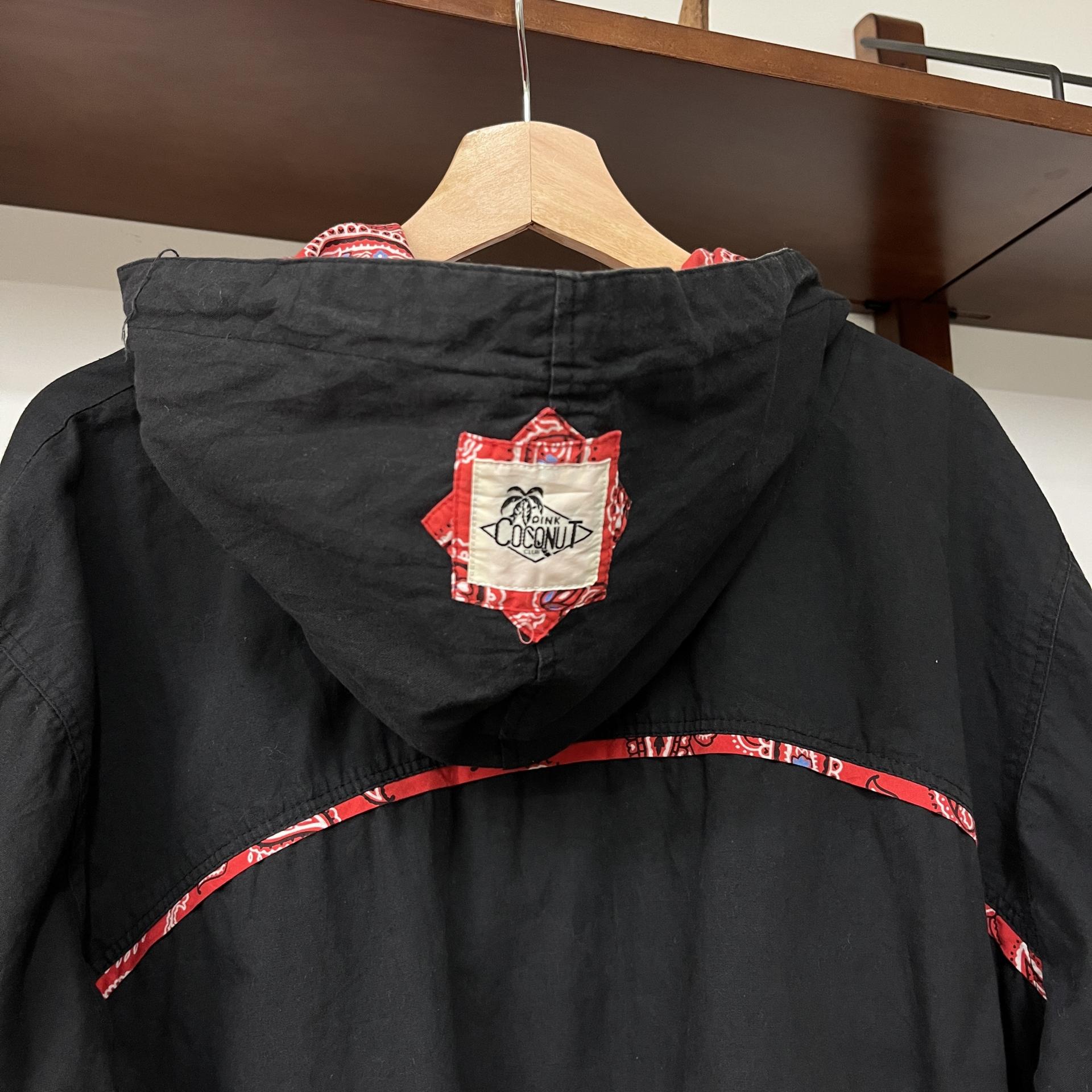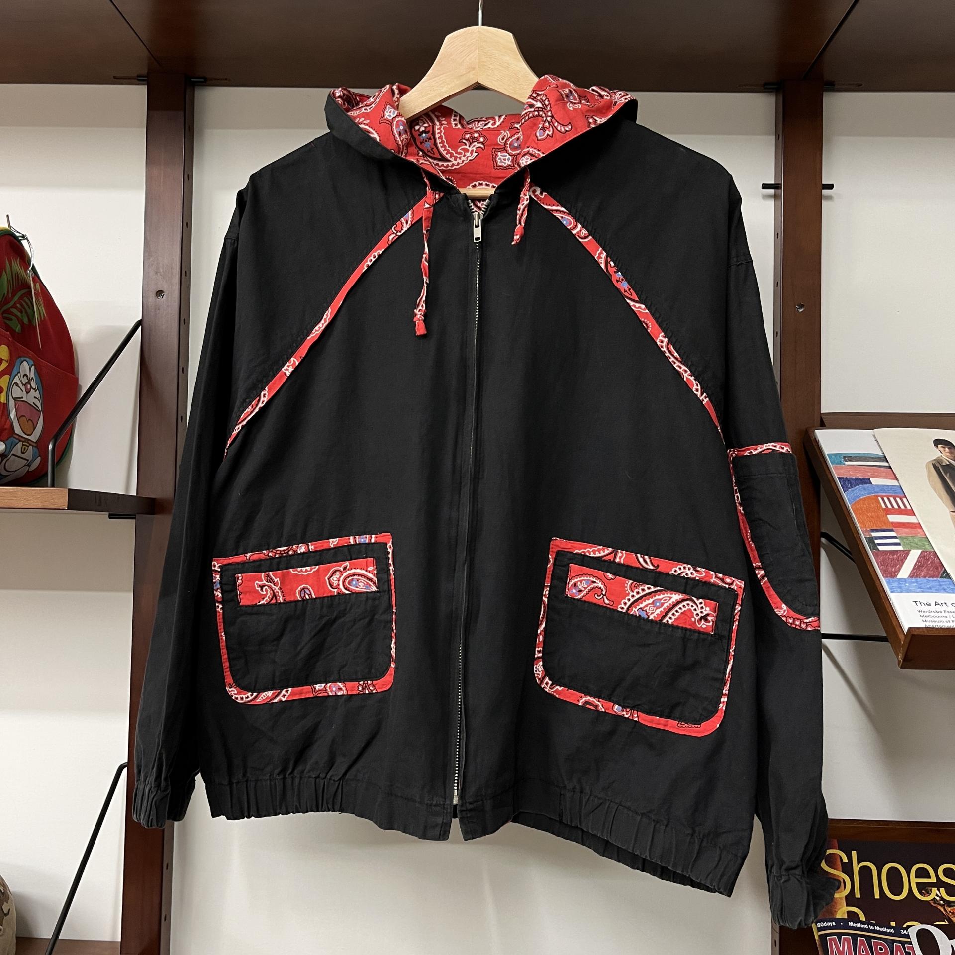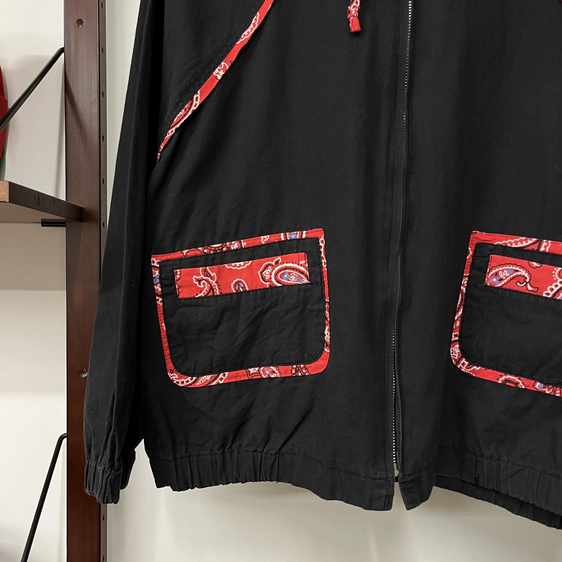 붉은 반다나 패턴 포인트가 돋보이는 가벼운 무게감이 코튼 후디 집업 !