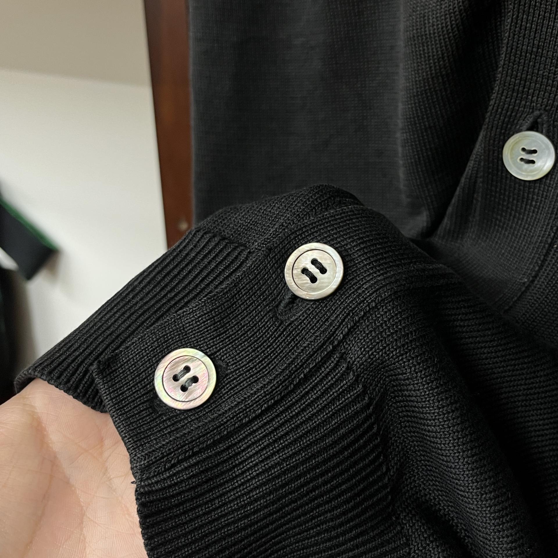 로고 자수 포인트와 고급스러운 자개 버튼들이 돋보이는 제품입니다.