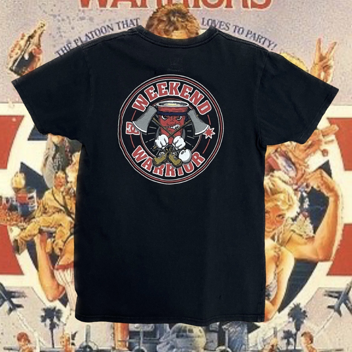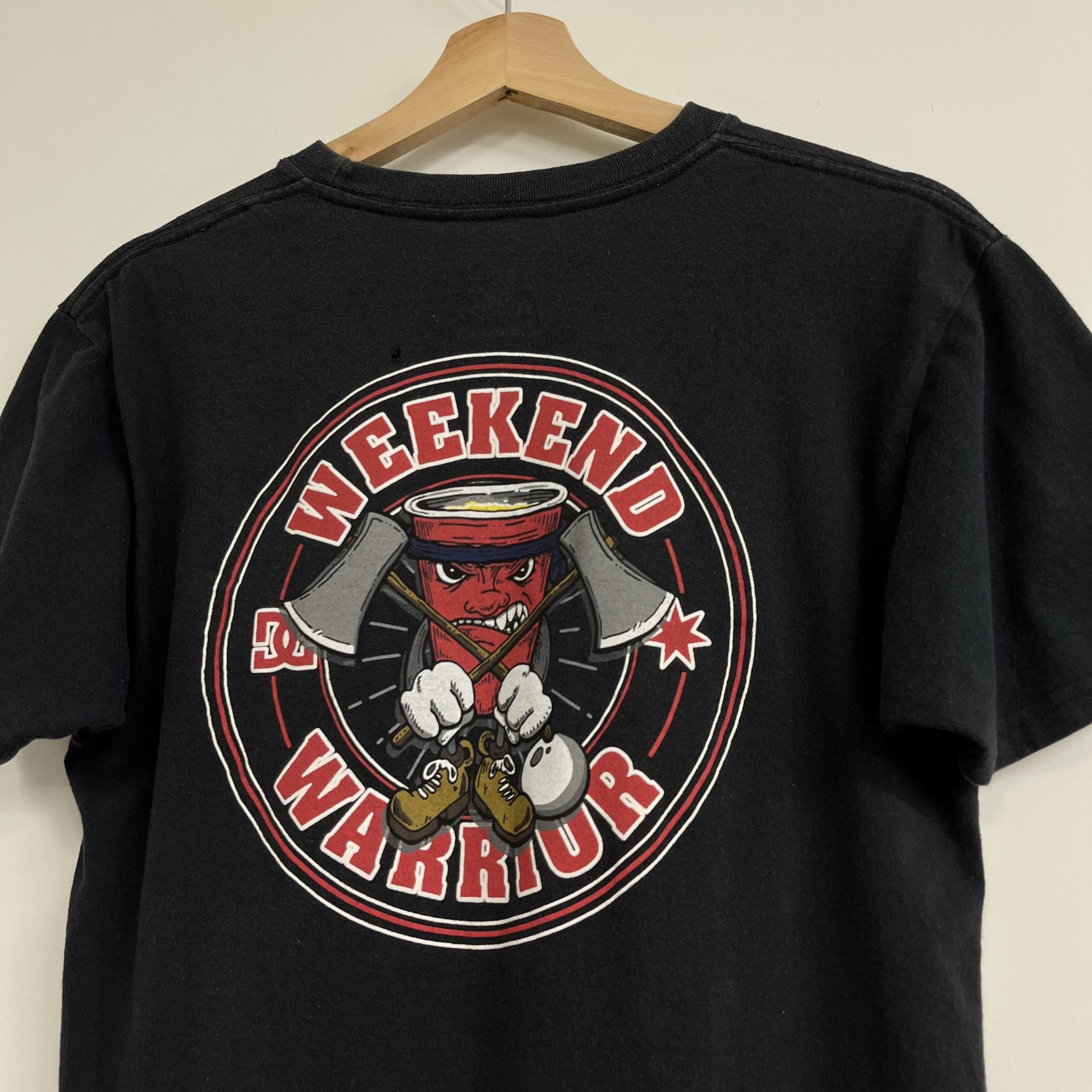 weekend warrior ( 위켄드 워리어 ) 프린팅 포인트가 돋보이는 DC의 티셔츠 아이템입니다.