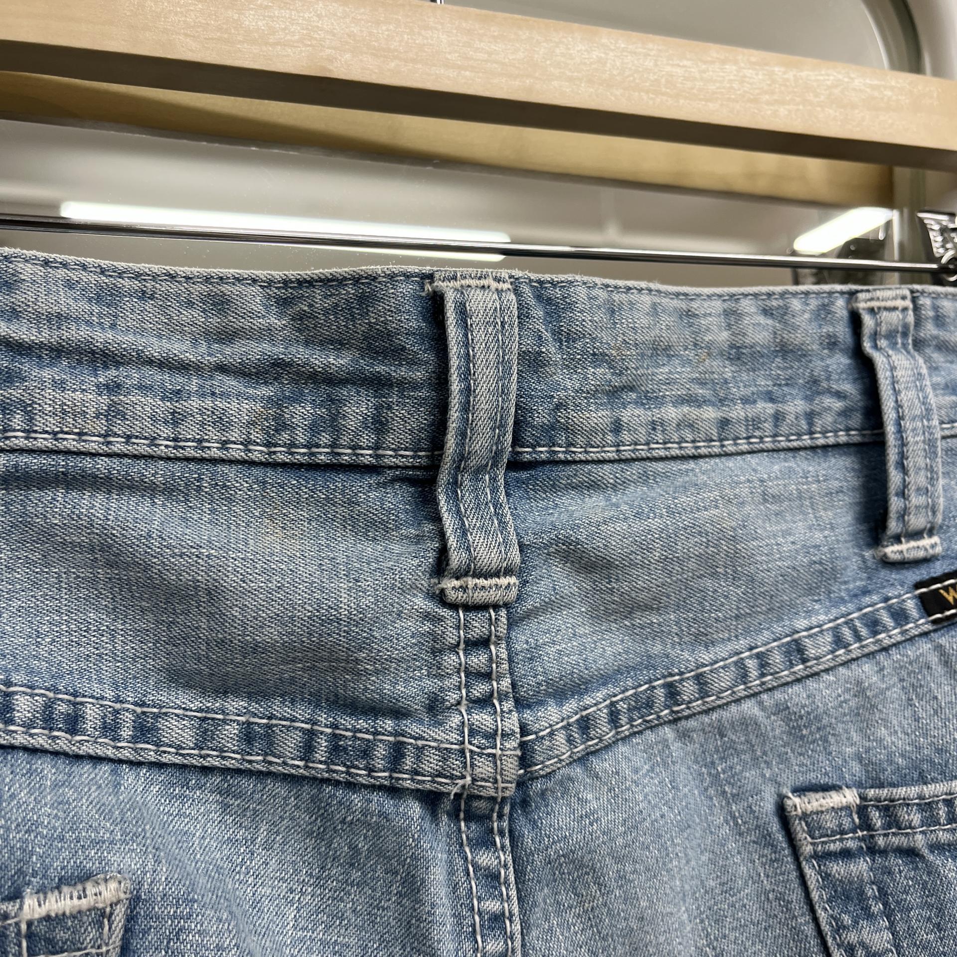 세탁 거친 후 허리쪽 약한 얼룩 외 최상의 컨디션 유지하고 있어 적극 추천드리는 랭글러의 데님 쇼츠 제품입니다.